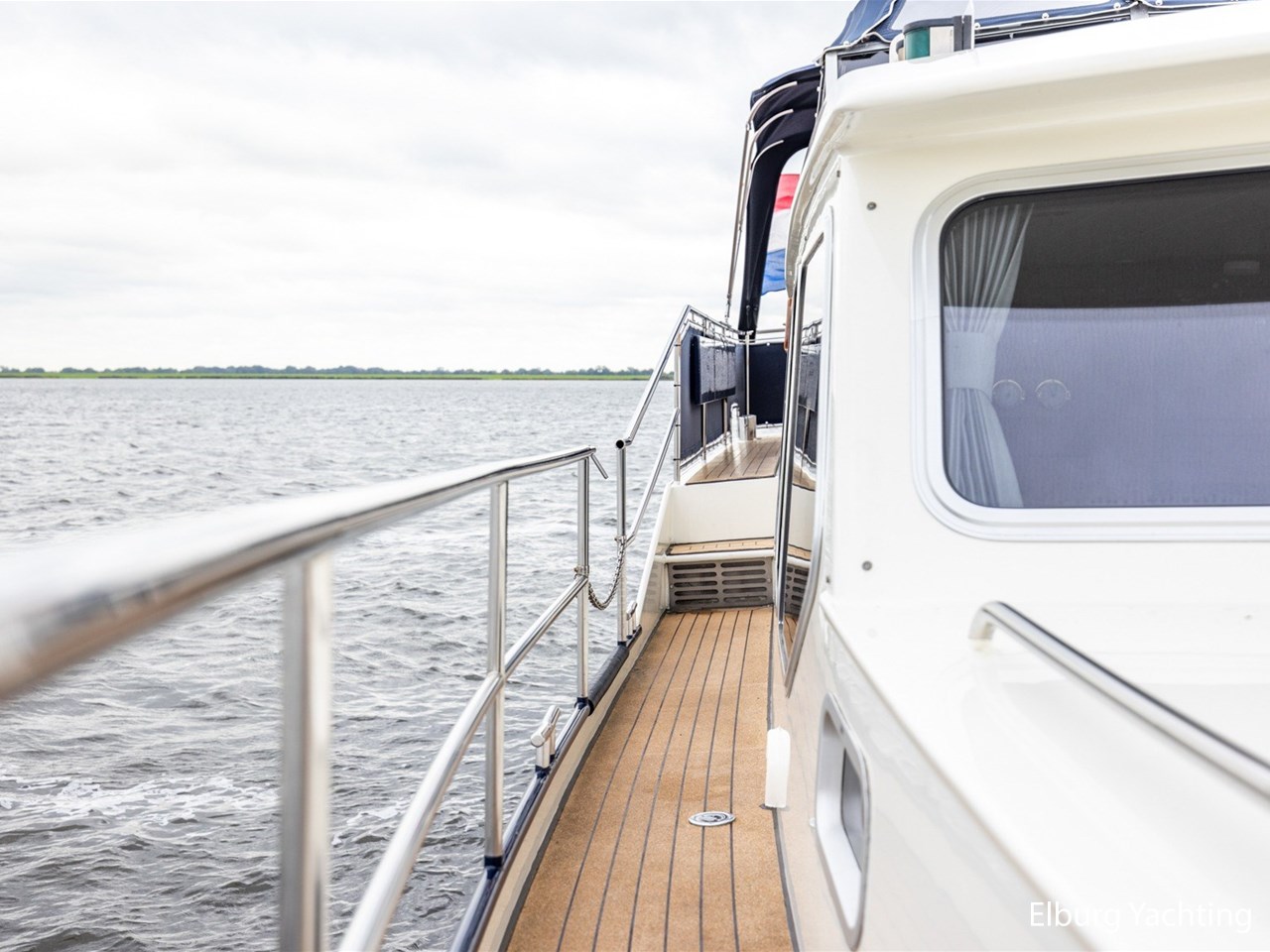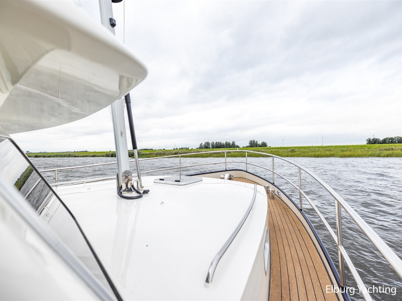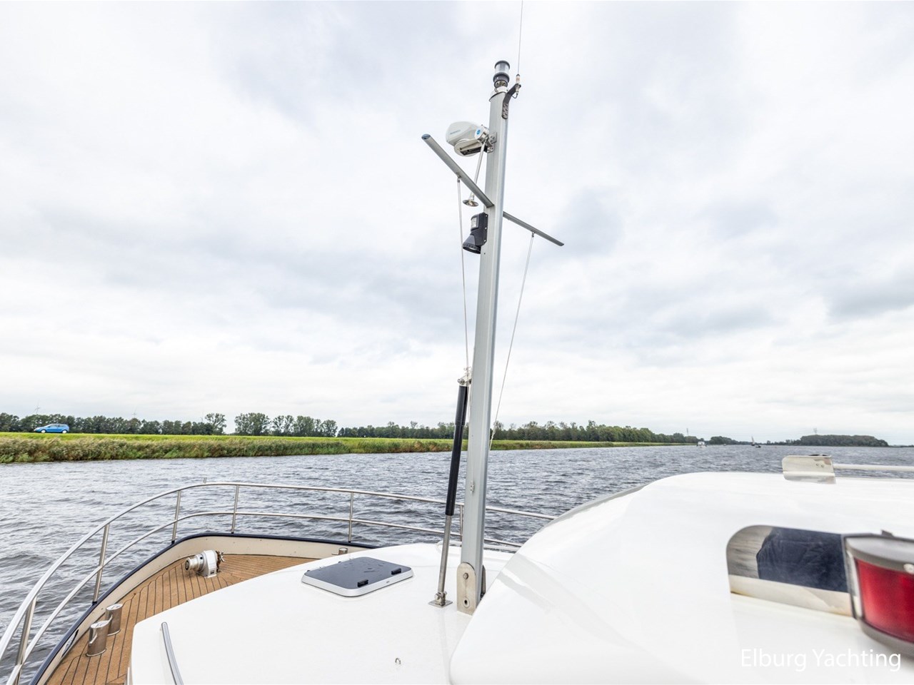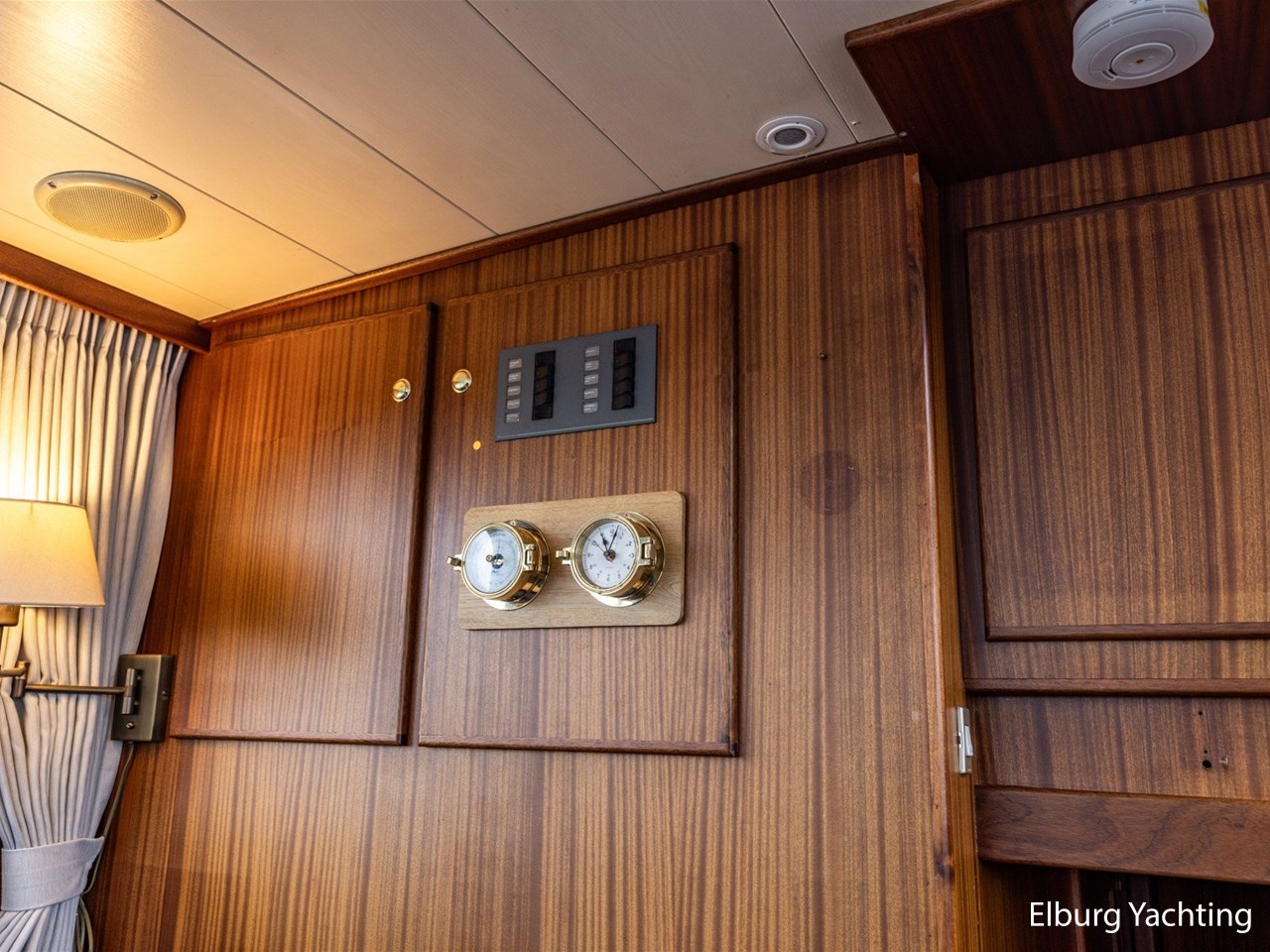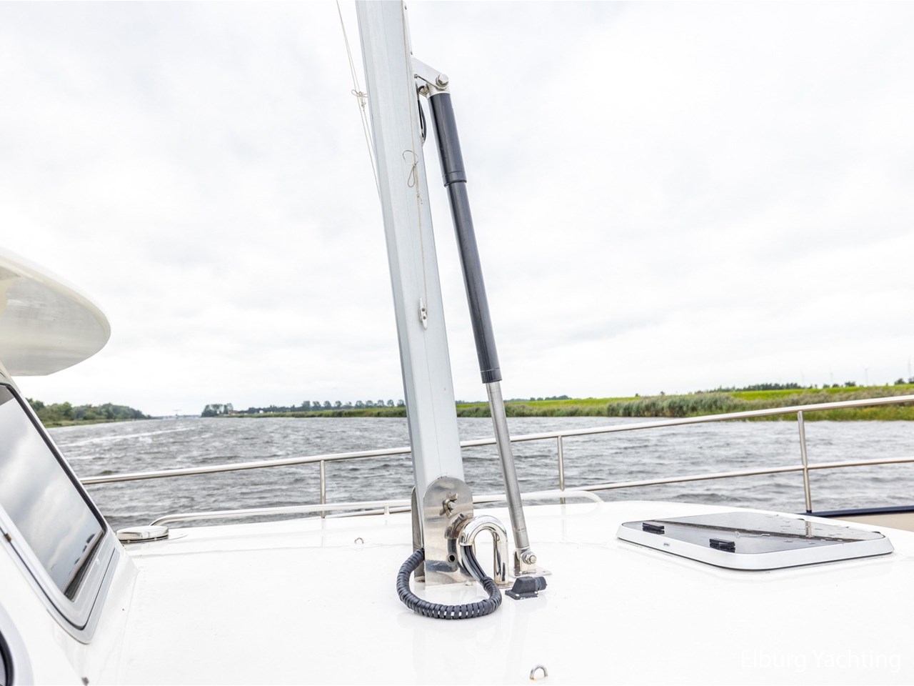 Strakke, goed verzorgde en degelijk gebouwde Privateer 40 XL gebouwd te Privateer Yachts in Uitwellingerga. Rondom is de Privateer 40 XL voorzien van een degelijk dek gemaakt van kurk. Rondom is er niet bezuinigd op de Privateer. Zo valt onder andere de dubbel uitgevoerde r.v.s. zeerailing op alsook de r.v.s. potdeksels. De gangboorden zijn zeer royaal waardoor u zich gemakkelijk verplaatst aan boord. De Privateer 40 XL beschikt over een zeer ruime open kuip, waar zich ook de vaste stuurstand bevindt. De open kuip verbindt zich met de salon via een riante trap. De salon bestaat uit prachtig mahony houten interieur met nette blauwe kussens, te openen ramen aan bak- en stuurboord en een het middelste raam aan de voorzijde kan ook opengeklapt worden. De eigenaarshut is erg royaal uitgevoerd en beschikt over een riant Frans bed, veel opbergruimte, airconditioning en meerdere te openen ramen met muggenhorren. De Privateer 40 XL beschikt over een ruime natte cel met eigen douchecabine en twee aparte elektrische toiletten, luxe 2 persoons vaarstoel bij stuurstand, veel opbergmogelijkheden aan dek in de verschillende bakskisten, volledig afluitbare tent rondom gehele achterdek, klapbare ramen voor lage kruiphoogte, dekwaspomp, 2 x raam in spiegel, Candy wasmachine 120ES.