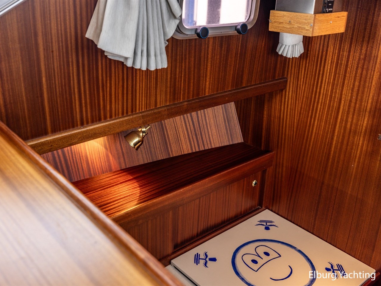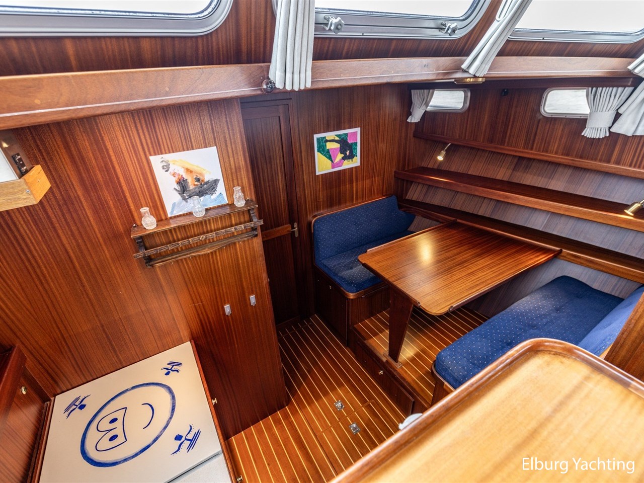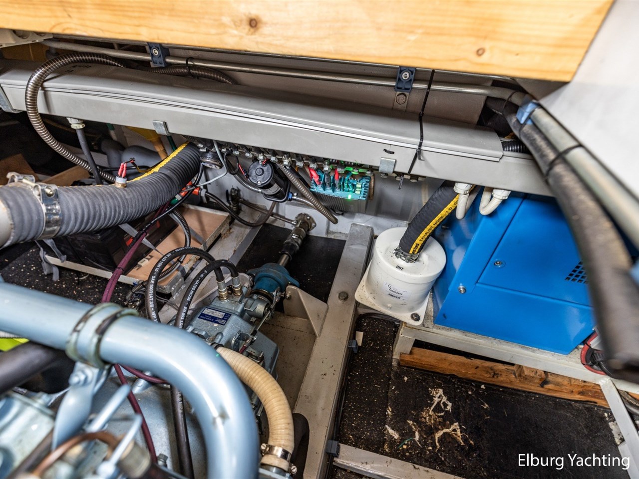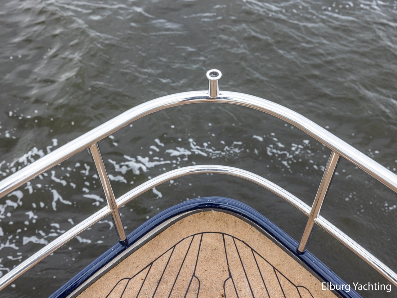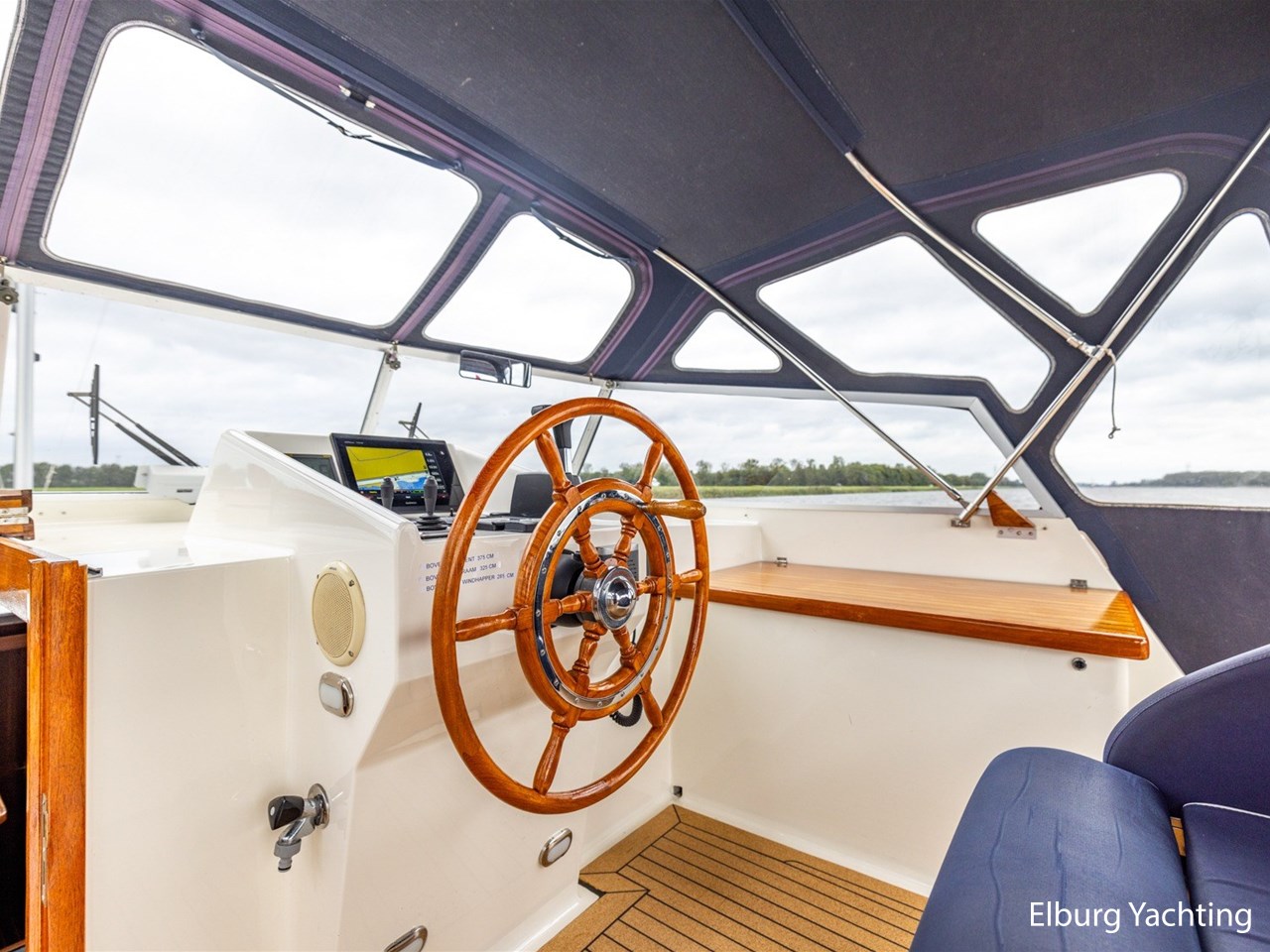 Strakke, goed verzorgde en degelijk gebouwde Privateer 40 XL gebouwd te Privateer Yachts in Uitwellingerga. Rondom is de Privateer 40 XL voorzien van een degelijk dek gemaakt van kurk. Rondom is er niet bezuinigd op de Privateer. Zo valt onder andere de dubbel uitgevoerde r.v.s. zeerailing op alsook de r.v.s. potdeksels. De gangboorden zijn zeer royaal waardoor u zich gemakkelijk verplaatst aan boord. De Privateer 40 XL beschikt over een zeer ruime open kuip, waar zich ook de vaste stuurstand bevindt. De open kuip verbindt zich met de salon via een riante trap. De salon bestaat uit prachtig mahony houten interieur met nette blauwe kussens, te openen ramen aan bak- en stuurboord en een het middelste raam aan de voorzijde kan ook opengeklapt worden. De eigenaarshut is erg royaal uitgevoerd en beschikt over een riant Frans bed, veel opbergruimte, airconditioning en meerdere te openen ramen met muggenhorren. De Privateer 40 XL beschikt over een ruime natte cel met eigen douchecabine en twee aparte elektrische toiletten, luxe 2 persoons vaarstoel bij stuurstand, veel opbergmogelijkheden aan dek in de verschillende bakskisten, volledig afluitbare tent rondom gehele achterdek, klapbare ramen voor lage kruiphoogte, dekwaspomp, 2 x raam in spiegel, Candy wasmachine 120ES.