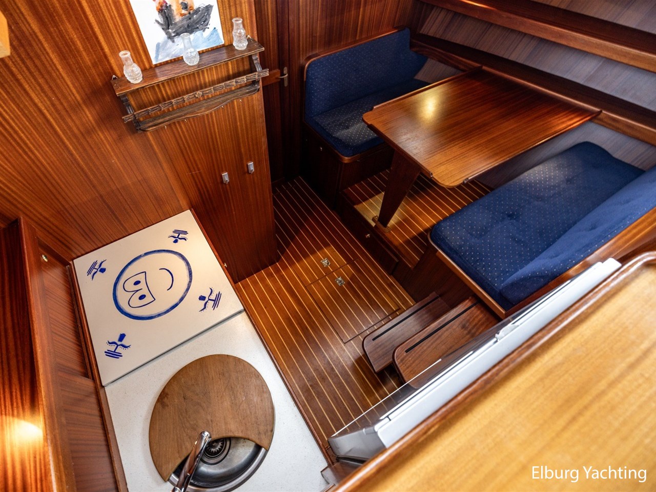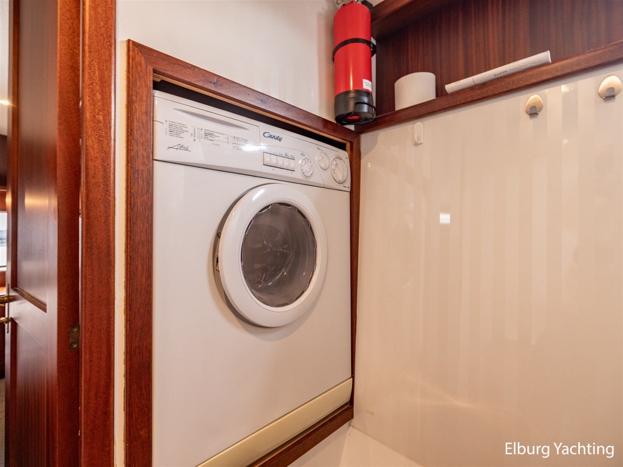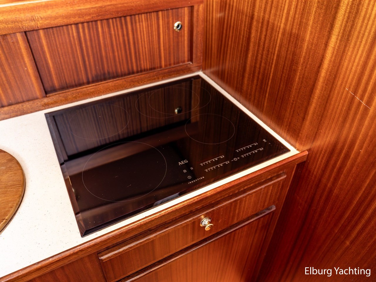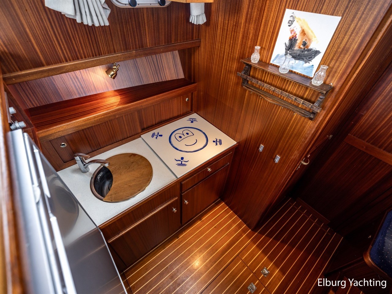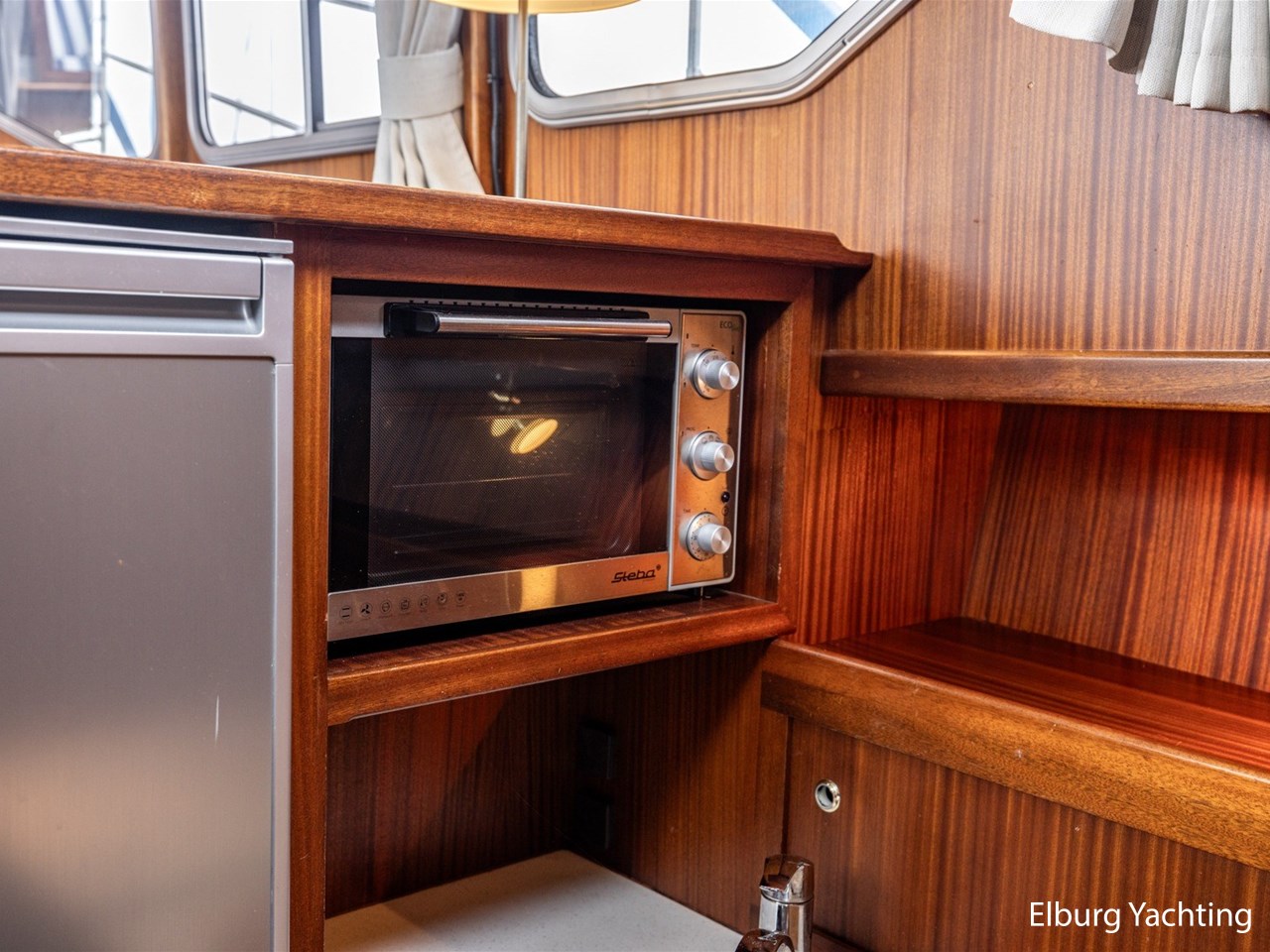 Strakke, goed verzorgde en degelijk gebouwde Privateer 40 XL gebouwd te Privateer Yachts in Uitwellingerga. Rondom is de Privateer 40 XL voorzien van een degelijk dek gemaakt van kurk. Rondom is er niet bezuinigd op de Privateer. Zo valt onder andere de dubbel uitgevoerde r.v.s. zeerailing op alsook de r.v.s. potdeksels. De gangboorden zijn zeer royaal waardoor u zich gemakkelijk verplaatst aan boord. De Privateer 40 XL beschikt over een zeer ruime open kuip, waar zich ook de vaste stuurstand bevindt. De open kuip verbindt zich met de salon via een riante trap. De salon bestaat uit prachtig mahony houten interieur met nette blauwe kussens, te openen ramen aan bak- en stuurboord en een het middelste raam aan de voorzijde kan ook opengeklapt worden. De eigenaarshut is erg royaal uitgevoerd en beschikt over een riant Frans bed, veel opbergruimte, airconditioning en meerdere te openen ramen met muggenhorren. De Privateer 40 XL beschikt over een ruime natte cel met eigen douchecabine en twee aparte elektrische toiletten, luxe 2 persoons vaarstoel bij stuurstand, veel opbergmogelijkheden aan dek in de verschillende bakskisten, volledig afluitbare tent rondom gehele achterdek, klapbare ramen voor lage kruiphoogte, dekwaspomp, 2 x raam in spiegel, Candy wasmachine 120ES.