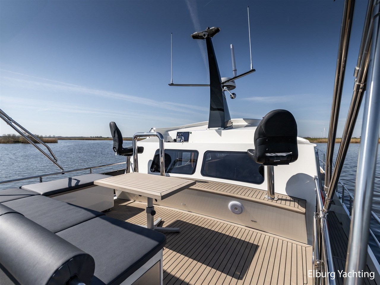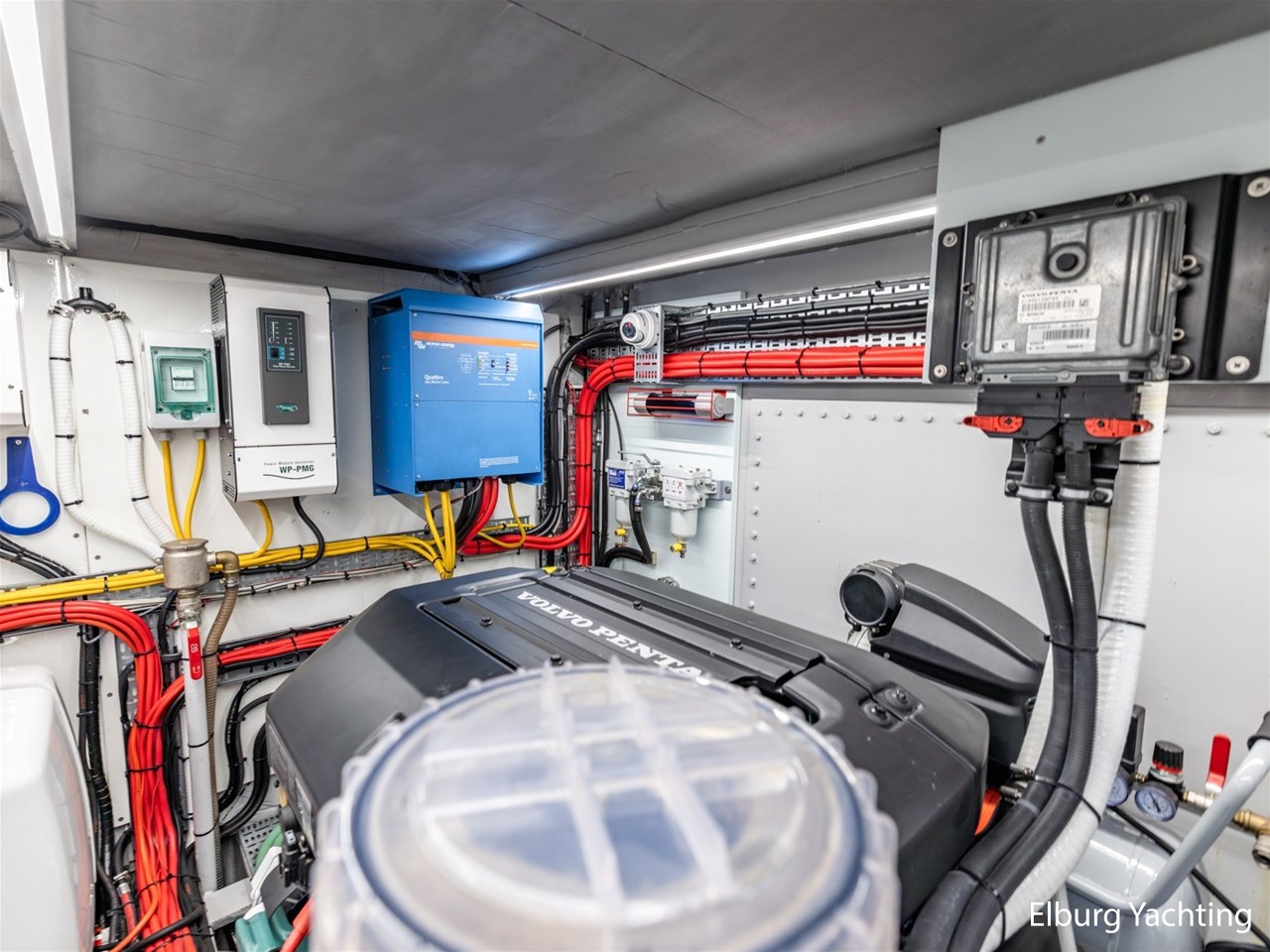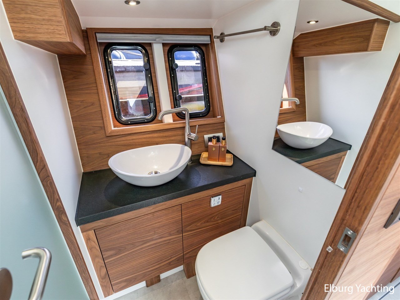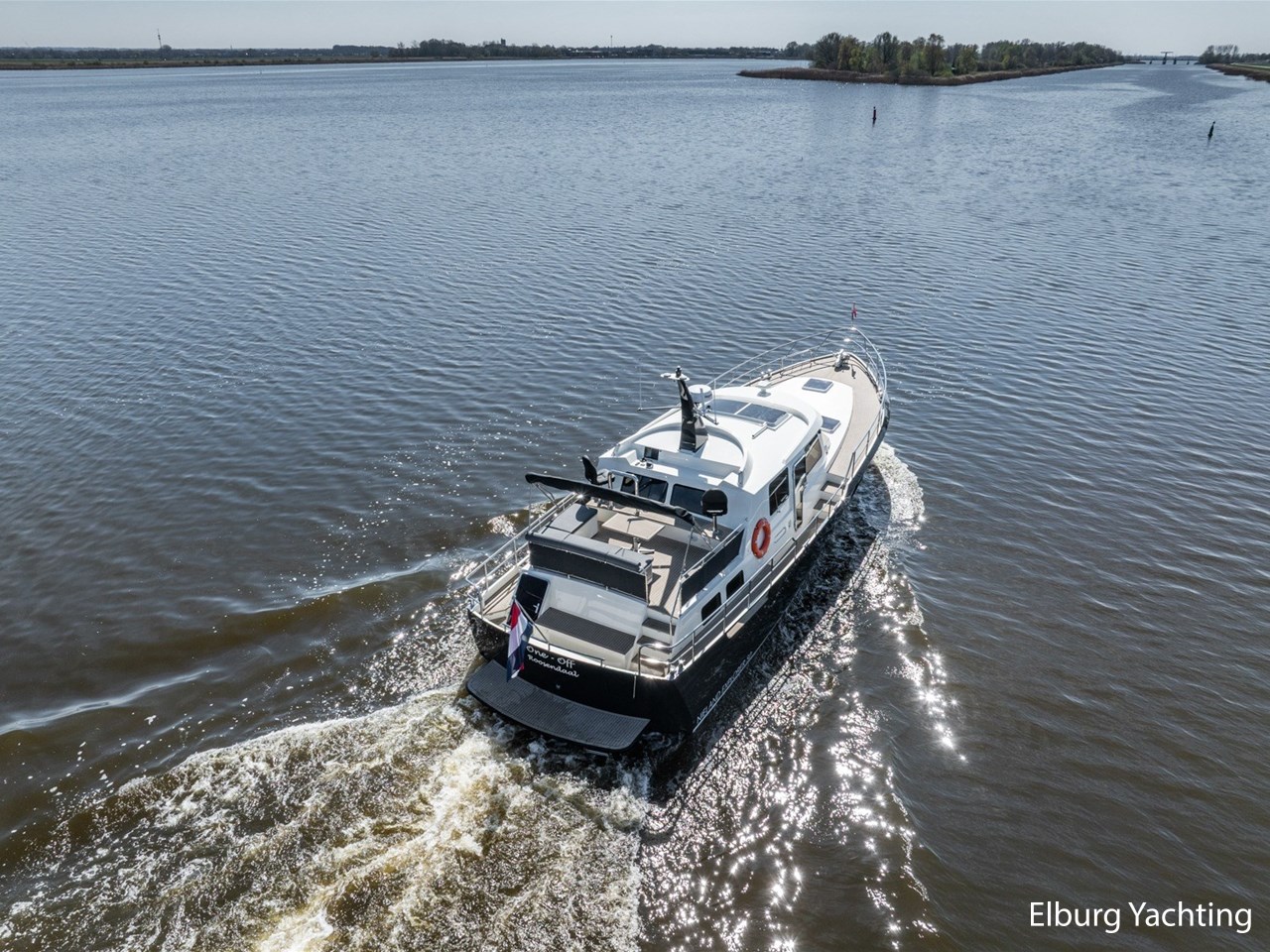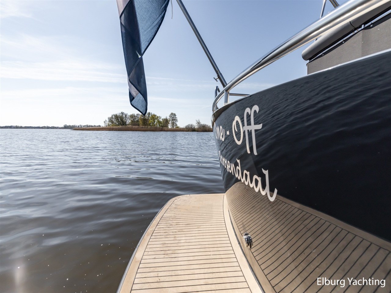 Waanzinnig gebouwde Nieland Explorer 50 door DSA Yachts - Ossenzijl (gebouwd in 2020/2021 en opgeleverd in 2022). Deze fraaie verschijning op het water kenmerkt haar naam "One Off" met verve. Geheel het jacht is doordacht en er is nergens op bezuinigd tijdens het bouwproces. Denk hierbij aan de ruimtelijke indeling van dit jacht in combinatie met de geringe diepgang (ca. 0.98 meter) en de fraaie uitstraling. Rondom is het jacht voorzien van een prachtig en onderhoudsarm Flexiteak dek met een prachtige rvs zeerailing, rvs bolders, dubbelarmige ruitenwissers, een elektrisch neerlaatbare mast, 2 te openen deuren in de spiegel richting het zwemplateau, inklapbare zwemtrap, bimini bij de buitenstuurstand en een ruimtelijk dek met brede gangboorden en voldoende zitgelegenheid. Het vaste stuurhuis is royaal opgezet met rondom goed zicht, genoeg zitgelegenheid, twee zijdeuren naar de gangboorden, Webasto elektrisch schuifdak met muggenhor en een fraaie stuurstand met uitgebreid navigatieapparatuur en een Recaro stuurstoel. Vanuit het vaste stuurhuis is de gezellige salon eenvoudig te benaderen. In de salon bevindt zich een comfortabele zithoek, deur naar het achterdek en de moderne kombuis met hoogwaardig Siemens apparatuur (inductiekookplaat met geïntegreerde afzuiging + vaatwasser + oven/magnetron), Bodega wijnkoeler, de kombuis beschikt over een prachtig granieten aanrechtblad. Vanuit het stuurhuis zijn de twee hutten te benaderen. De master bedroom is aan de voorzijde van het jacht gesitueerd en beschikt over een prachtig vrijstaand tweepersoons bed met veel kastruimte en een royale natte cel met elektrisch toilet, douchecabine, wastafel met granieten blad en kastruimte. De gastenhut beschikt over een tweepersoons vast bed, kastruimte en een tweede natte cel met elektrisch toilet, douchecabine en wastafel met granieten blad. In de gang is een wasruimte gesitueerd met Siemens wasmachine/droger. Door het gehele jacht valt het chique Amerikaans Notenhout interieur op in combinatie met de indirecte LED verlichting. Dit jacht is robuust gebouwd, gezellig vormgegeven en beschikt over een geringe doorvaarthoogte met gestreken mast (ca. 3.60 meter) - een geringere doorvaarthoogte is in overleg te realiseren. Het jacht is eventueel vaarbewijsvrij te varen. Voor vragen en/of het maken van een afspraak bent u 7 dagen per week van harte welkom bij Elburg Yachting
