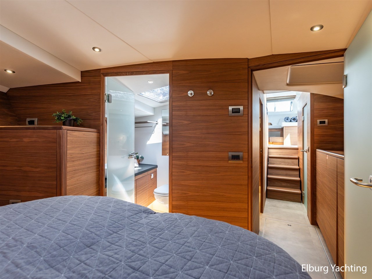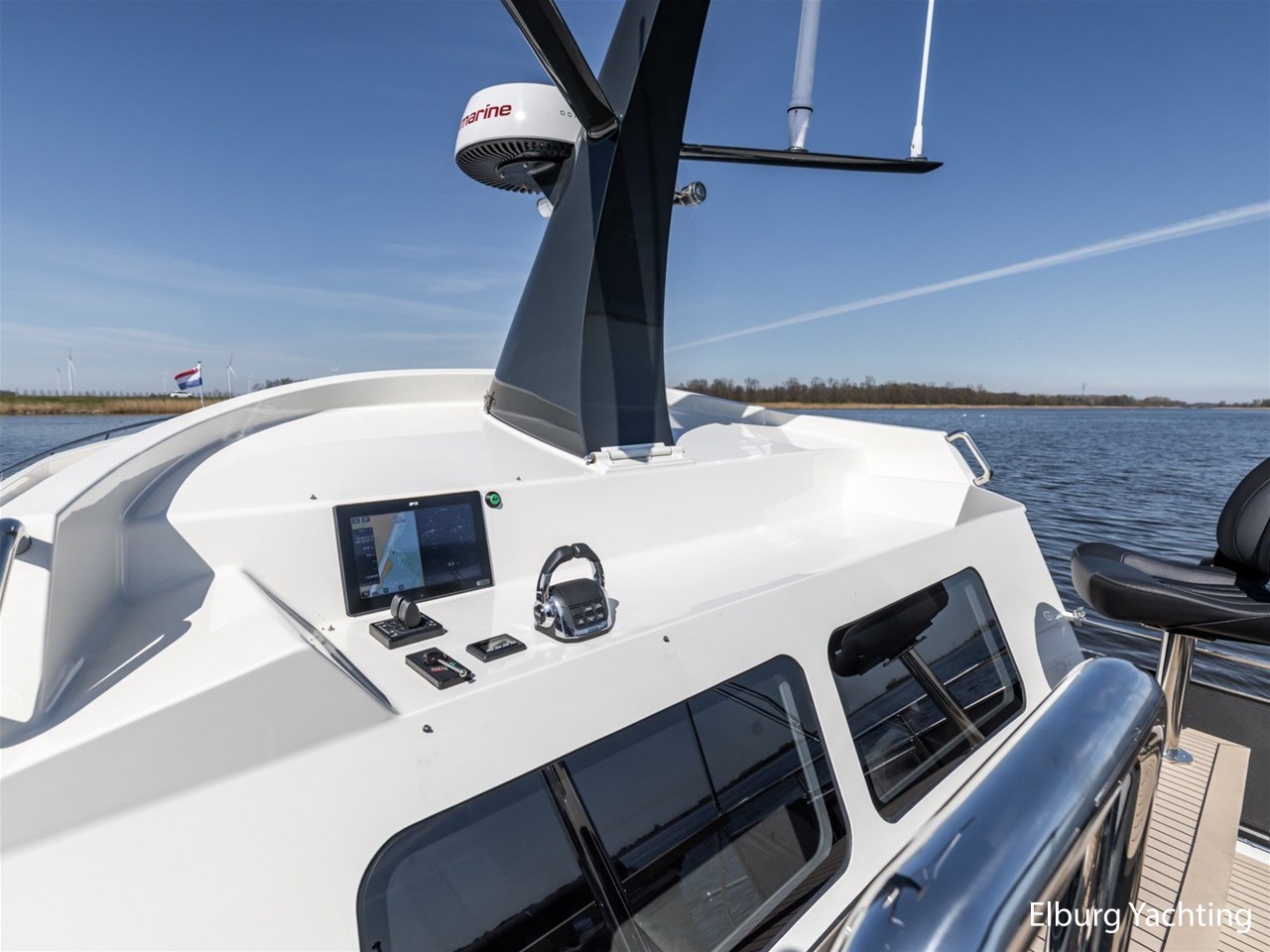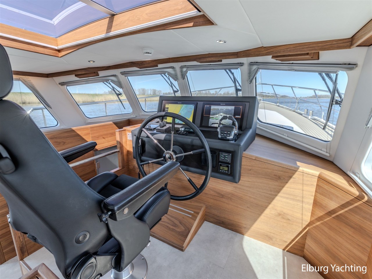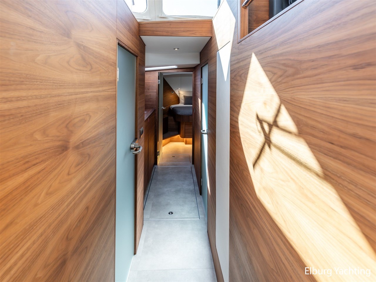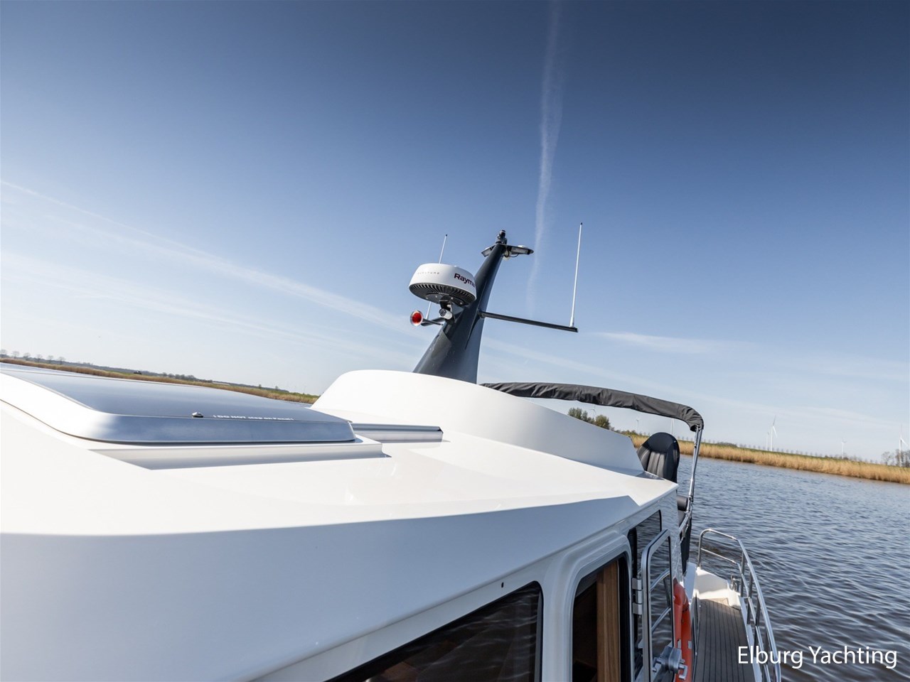 Waanzinnig gebouwde Nieland Explorer 50 door DSA Yachts - Ossenzijl (gebouwd in 2020/2021 en opgeleverd in 2022). Deze fraaie verschijning op het water kenmerkt haar naam "One Off" met verve. Geheel het jacht is doordacht en er is nergens op bezuinigd tijdens het bouwproces. Denk hierbij aan de ruimtelijke indeling van dit jacht in combinatie met de geringe diepgang (ca. 0.98 meter) en de fraaie uitstraling. Rondom is het jacht voorzien van een prachtig en onderhoudsarm Flexiteak dek met een prachtige rvs zeerailing, rvs bolders, dubbelarmige ruitenwissers, een elektrisch neerlaatbare mast, 2 te openen deuren in de spiegel richting het zwemplateau, inklapbare zwemtrap, bimini bij de buitenstuurstand en een ruimtelijk dek met brede gangboorden en voldoende zitgelegenheid. Het vaste stuurhuis is royaal opgezet met rondom goed zicht, genoeg zitgelegenheid, twee zijdeuren naar de gangboorden, Webasto elektrisch schuifdak met muggenhor en een fraaie stuurstand met uitgebreid navigatieapparatuur en een Recaro stuurstoel. Vanuit het vaste stuurhuis is de gezellige salon eenvoudig te benaderen. In de salon bevindt zich een comfortabele zithoek, deur naar het achterdek en de moderne kombuis met hoogwaardig Siemens apparatuur (inductiekookplaat met geïntegreerde afzuiging + vaatwasser + oven/magnetron), Bodega wijnkoeler, de kombuis beschikt over een prachtig granieten aanrechtblad. Vanuit het stuurhuis zijn de twee hutten te benaderen. De master bedroom is aan de voorzijde van het jacht gesitueerd en beschikt over een prachtig vrijstaand tweepersoons bed met veel kastruimte en een royale natte cel met elektrisch toilet, douchecabine, wastafel met granieten blad en kastruimte. De gastenhut beschikt over een tweepersoons vast bed, kastruimte en een tweede natte cel met elektrisch toilet, douchecabine en wastafel met granieten blad. In de gang is een wasruimte gesitueerd met Siemens wasmachine/droger. Door het gehele jacht valt het chique Amerikaans Notenhout interieur op in combinatie met de indirecte LED verlichting. Dit jacht is robuust gebouwd, gezellig vormgegeven en beschikt over een geringe doorvaarthoogte met gestreken mast (ca. 3.60 meter) - een geringere doorvaarthoogte is in overleg te realiseren. Het jacht is eventueel vaarbewijsvrij te varen. Voor vragen en/of het maken van een afspraak bent u 7 dagen per week van harte welkom bij Elburg Yachting