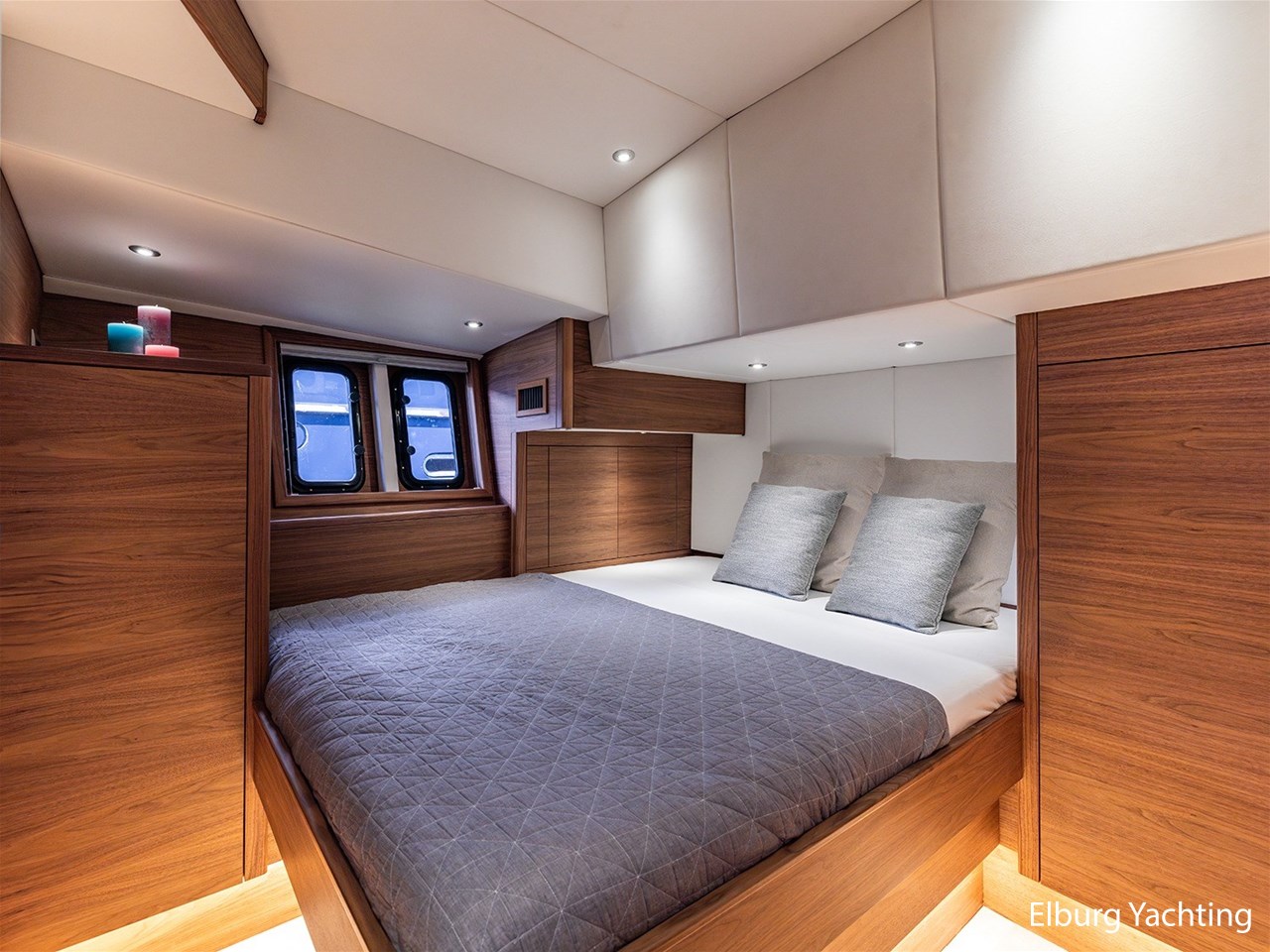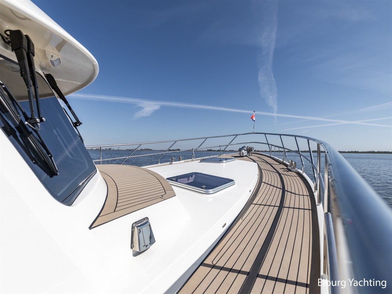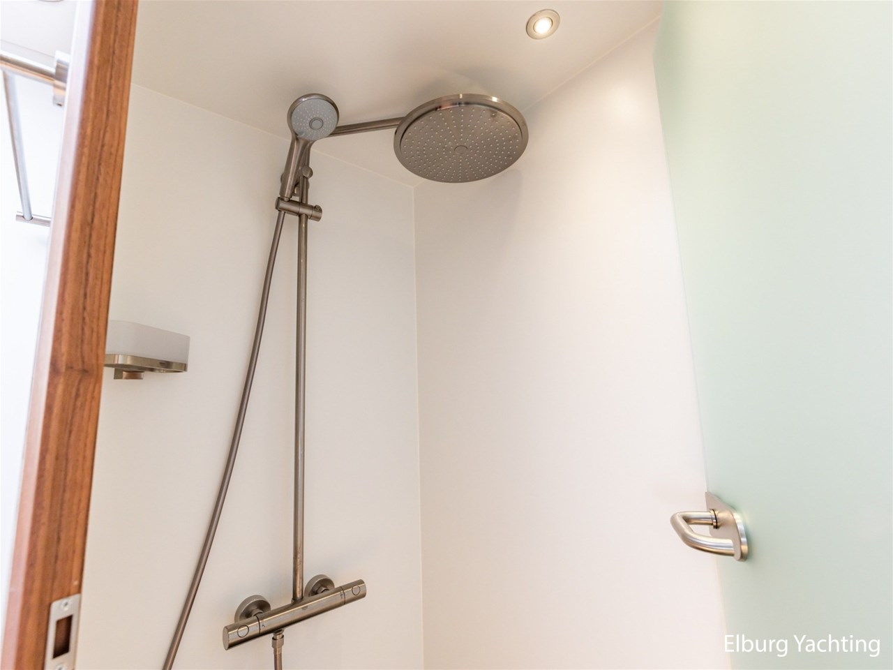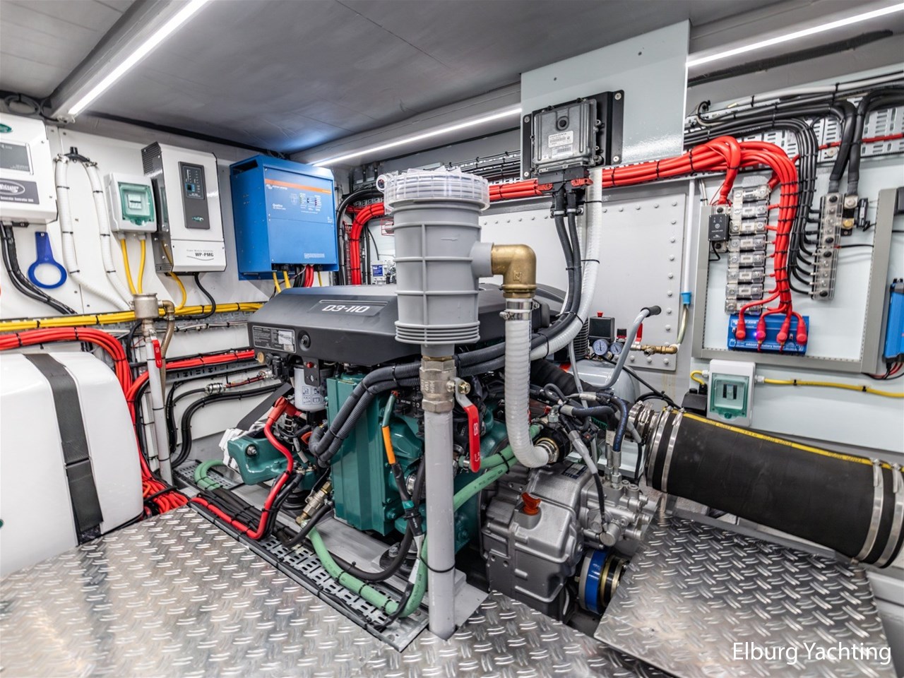 Waanzinnig gebouwde Nieland Explorer 50 door DSA Yachts - Ossenzijl (gebouwd in 2020/2021 en opgeleverd in 2022). Deze fraaie verschijning op het water kenmerkt haar naam "One Off" met verve. Geheel het jacht is doordacht en er is nergens op bezuinigd tijdens het bouwproces. Denk hierbij aan de ruimtelijke indeling van dit jacht in combinatie met de geringe diepgang (ca. 0.98 meter) en de fraaie uitstraling. Rondom is het jacht voorzien van een prachtig en onderhoudsarm Flexiteak dek met een prachtige rvs zeerailing, rvs bolders, dubbelarmige ruitenwissers, een elektrisch neerlaatbare mast, 2 te openen deuren in de spiegel richting het zwemplateau, inklapbare zwemtrap, bimini bij de buitenstuurstand en een ruimtelijk dek met brede gangboorden en voldoende zitgelegenheid. Het vaste stuurhuis is royaal opgezet met rondom goed zicht, genoeg zitgelegenheid, twee zijdeuren naar de gangboorden, Webasto elektrisch schuifdak met muggenhor en een fraaie stuurstand met uitgebreid navigatieapparatuur en een Recaro stuurstoel. Vanuit het vaste stuurhuis is de gezellige salon eenvoudig te benaderen. In de salon bevindt zich een comfortabele zithoek, deur naar het achterdek en de moderne kombuis met hoogwaardig Siemens apparatuur (inductiekookplaat met geïntegreerde afzuiging + vaatwasser + oven/magnetron), Bodega wijnkoeler, de kombuis beschikt over een prachtig granieten aanrechtblad. Vanuit het stuurhuis zijn de twee hutten te benaderen. De master bedroom is aan de voorzijde van het jacht gesitueerd en beschikt over een prachtig vrijstaand tweepersoons bed met veel kastruimte en een royale natte cel met elektrisch toilet, douchecabine, wastafel met granieten blad en kastruimte. De gastenhut beschikt over een tweepersoons vast bed, kastruimte en een tweede natte cel met elektrisch toilet, douchecabine en wastafel met granieten blad. In de gang is een wasruimte gesitueerd met Siemens wasmachine/droger. Door het gehele jacht valt het chique Amerikaans Notenhout interieur op in combinatie met de indirecte LED verlichting. Dit jacht is robuust gebouwd, gezellig vormgegeven en beschikt over een geringe doorvaarthoogte met gestreken mast (ca. 3.60 meter) - een geringere doorvaarthoogte is in overleg te realiseren. Het jacht is eventueel vaarbewijsvrij te varen. Voor vragen en/of het maken van een afspraak bent u 7 dagen per week van harte welkom bij Elburg Yachting