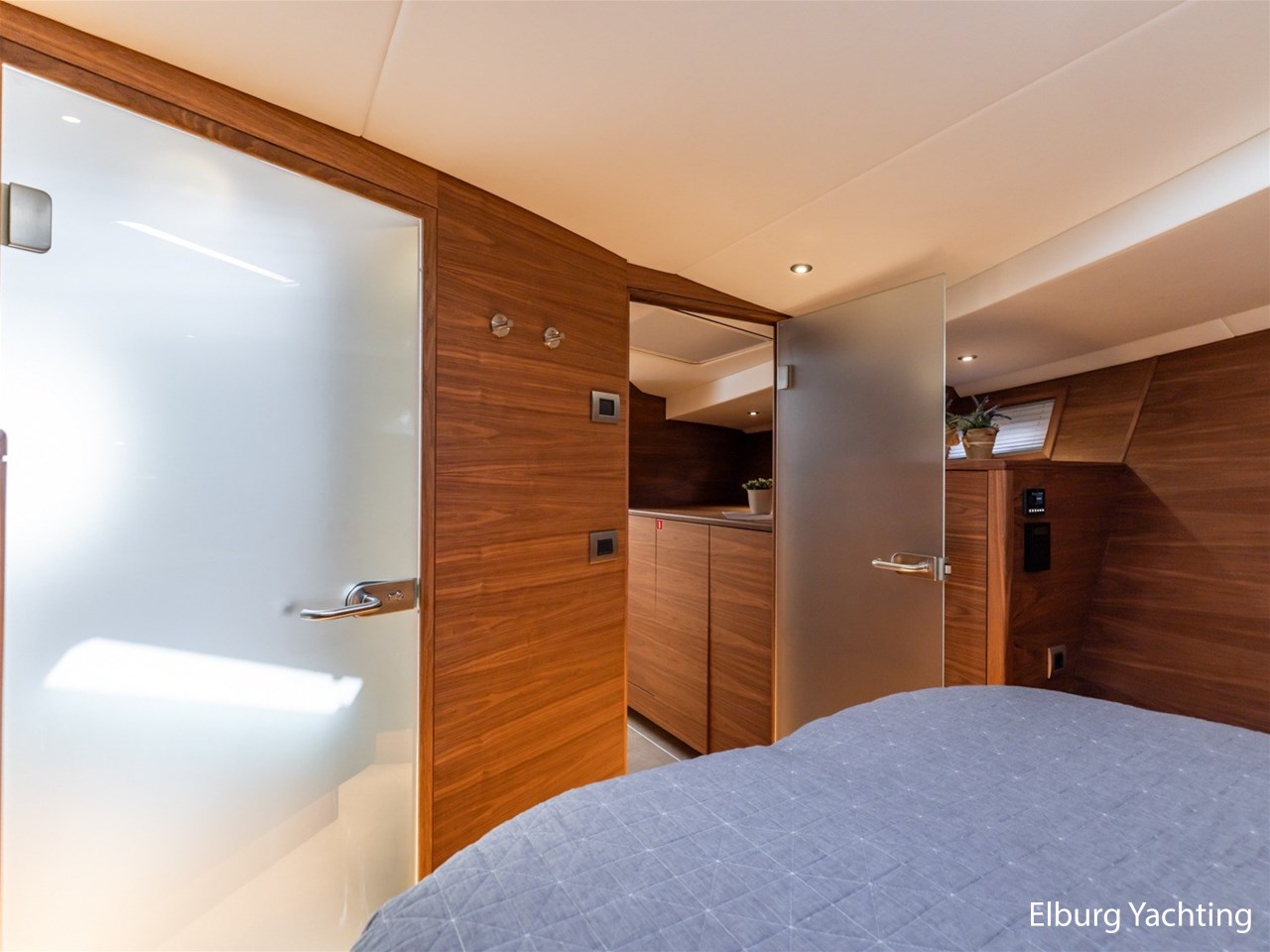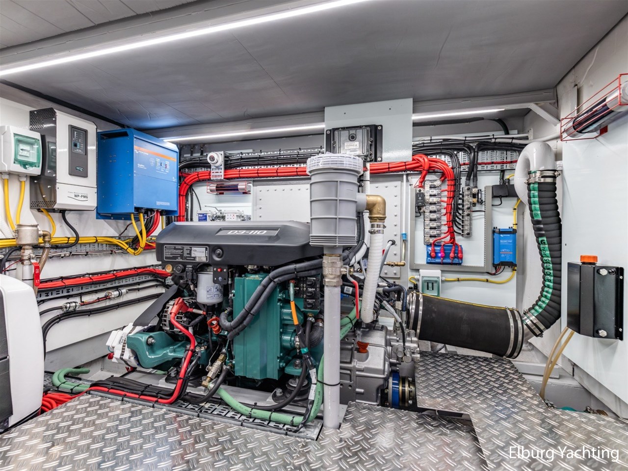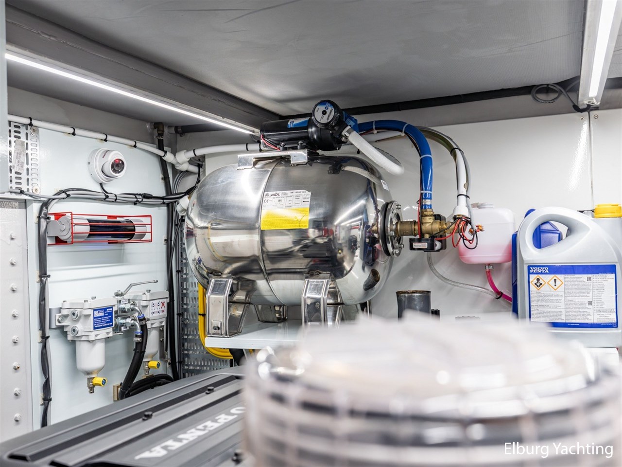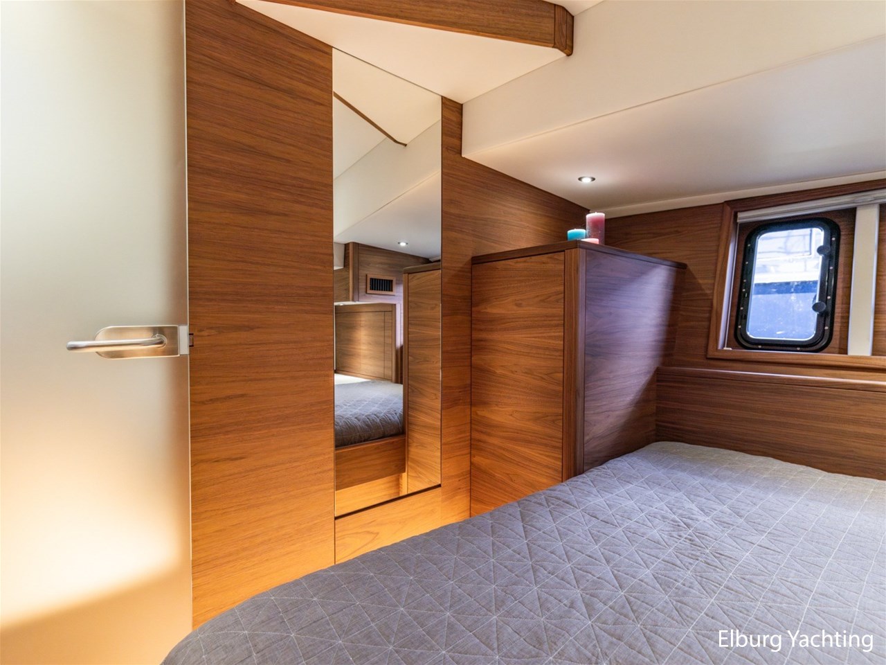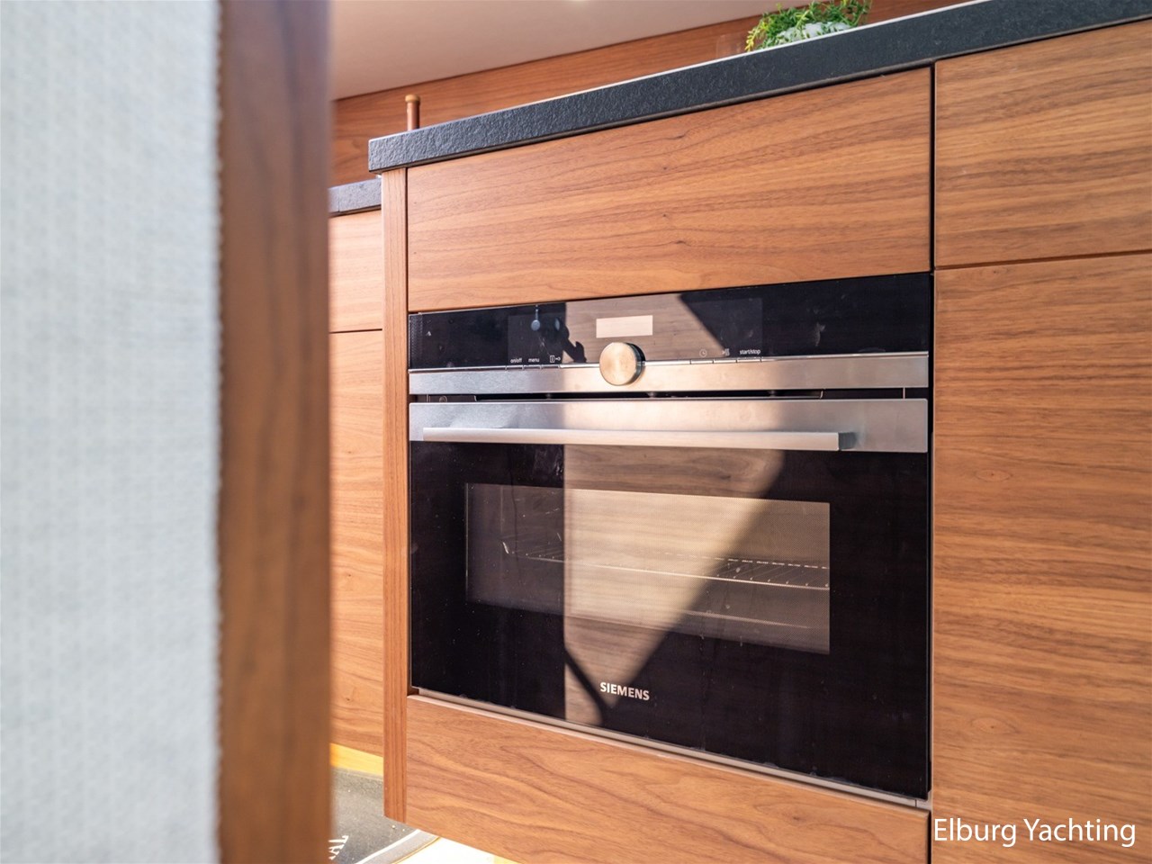 Waanzinnig gebouwde Nieland Explorer 50 door DSA Yachts - Ossenzijl (gebouwd in 2020/2021 en opgeleverd in 2022). Deze fraaie verschijning op het water kenmerkt haar naam "One Off" met verve. Geheel het jacht is doordacht en er is nergens op bezuinigd tijdens het bouwproces. Denk hierbij aan de ruimtelijke indeling van dit jacht in combinatie met de geringe diepgang (ca. 0.98 meter) en de fraaie uitstraling. Rondom is het jacht voorzien van een prachtig en onderhoudsarm Flexiteak dek met een prachtige rvs zeerailing, rvs bolders, dubbelarmige ruitenwissers, een elektrisch neerlaatbare mast, 2 te openen deuren in de spiegel richting het zwemplateau, inklapbare zwemtrap, bimini bij de buitenstuurstand en een ruimtelijk dek met brede gangboorden en voldoende zitgelegenheid. Het vaste stuurhuis is royaal opgezet met rondom goed zicht, genoeg zitgelegenheid, twee zijdeuren naar de gangboorden, Webasto elektrisch schuifdak met muggenhor en een fraaie stuurstand met uitgebreid navigatieapparatuur en een Recaro stuurstoel. Vanuit het vaste stuurhuis is de gezellige salon eenvoudig te benaderen. In de salon bevindt zich een comfortabele zithoek, deur naar het achterdek en de moderne kombuis met hoogwaardig Siemens apparatuur (inductiekookplaat met geïntegreerde afzuiging + vaatwasser + oven/magnetron), Bodega wijnkoeler, de kombuis beschikt over een prachtig granieten aanrechtblad. Vanuit het stuurhuis zijn de twee hutten te benaderen. De master bedroom is aan de voorzijde van het jacht gesitueerd en beschikt over een prachtig vrijstaand tweepersoons bed met veel kastruimte en een royale natte cel met elektrisch toilet, douchecabine, wastafel met granieten blad en kastruimte. De gastenhut beschikt over een tweepersoons vast bed, kastruimte en een tweede natte cel met elektrisch toilet, douchecabine en wastafel met granieten blad. In de gang is een wasruimte gesitueerd met Siemens wasmachine/droger. Door het gehele jacht valt het chique Amerikaans Notenhout interieur op in combinatie met de indirecte LED verlichting. Dit jacht is robuust gebouwd, gezellig vormgegeven en beschikt over een geringe doorvaarthoogte met gestreken mast (ca. 3.60 meter) - een geringere doorvaarthoogte is in overleg te realiseren. Het jacht is eventueel vaarbewijsvrij te varen. Voor vragen en/of het maken van een afspraak bent u 7 dagen per week van harte welkom bij Elburg Yachting