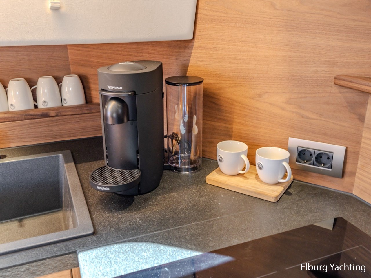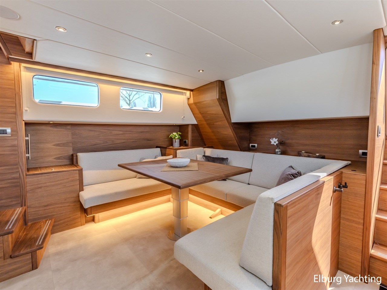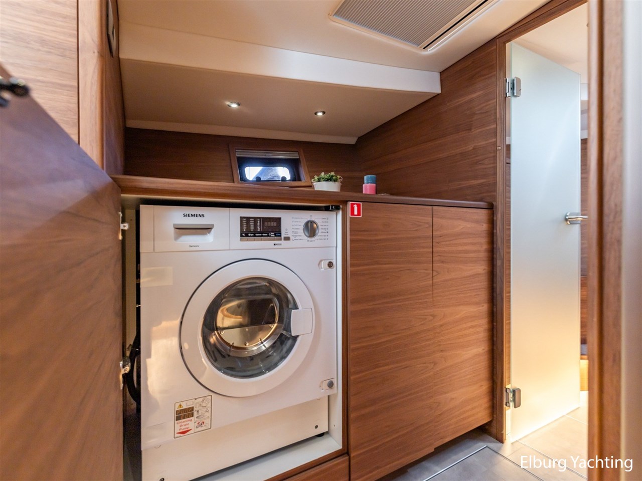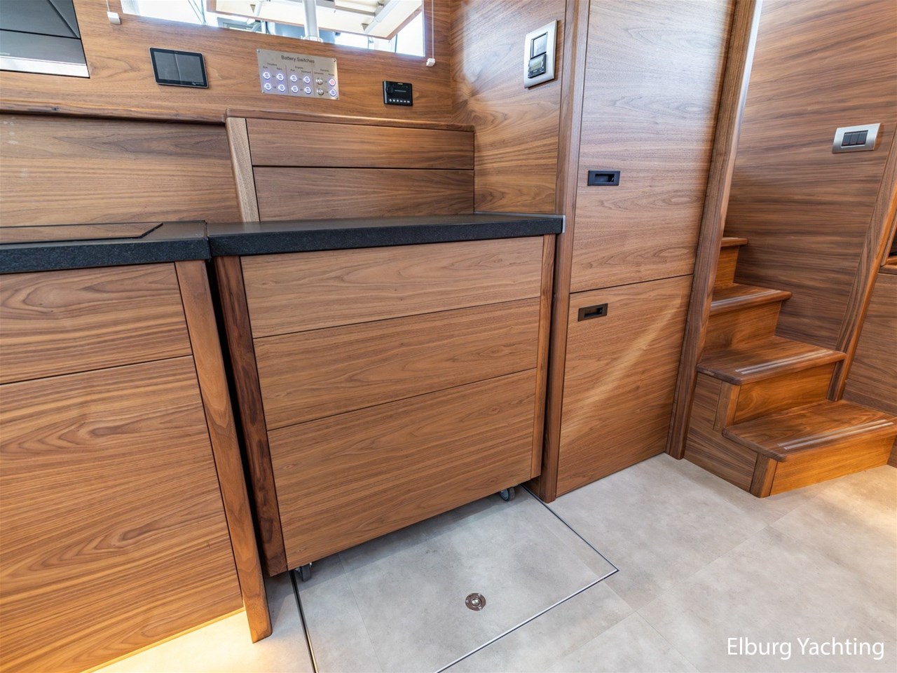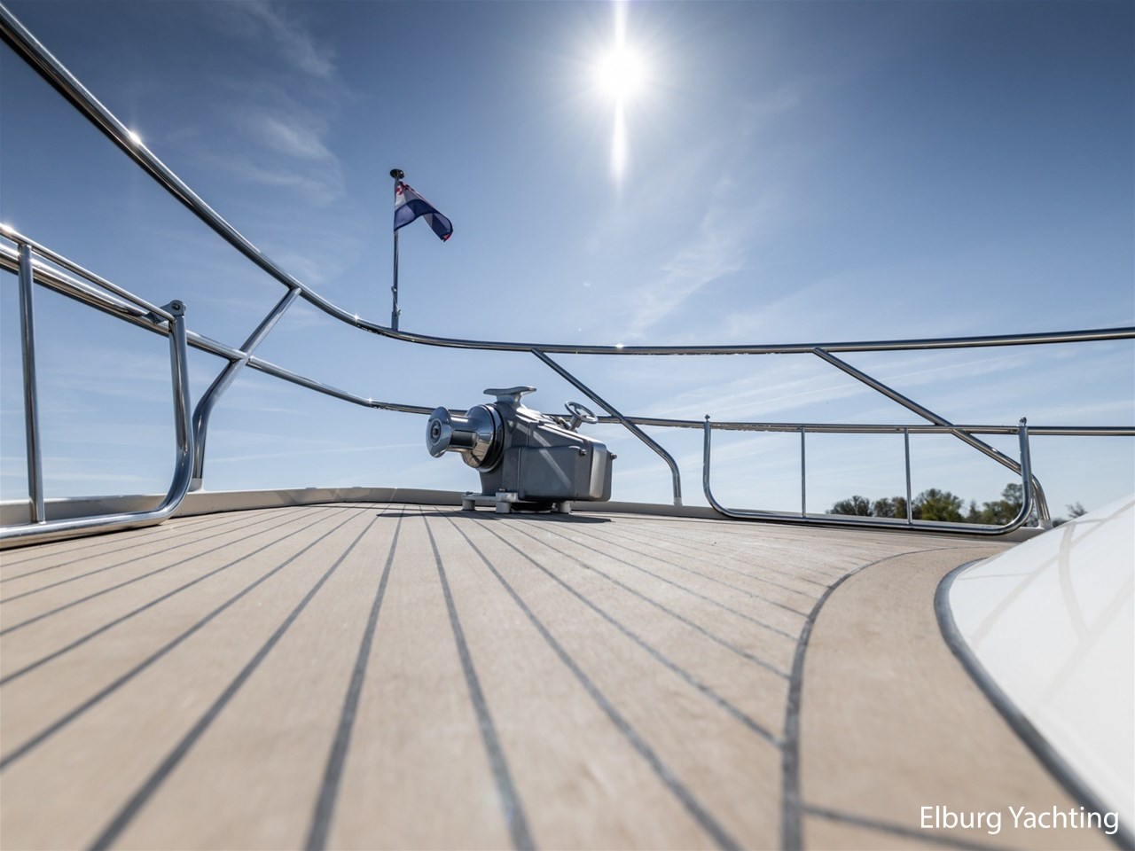 Waanzinnig gebouwde Nieland Explorer 50 door DSA Yachts - Ossenzijl (gebouwd in 2020/2021 en opgeleverd in 2022). Deze fraaie verschijning op het water kenmerkt haar naam "One Off" met verve. Geheel het jacht is doordacht en er is nergens op bezuinigd tijdens het bouwproces. Denk hierbij aan de ruimtelijke indeling van dit jacht in combinatie met de geringe diepgang (ca. 0.98 meter) en de fraaie uitstraling. Rondom is het jacht voorzien van een prachtig en onderhoudsarm Flexiteak dek met een prachtige rvs zeerailing, rvs bolders, dubbelarmige ruitenwissers, een elektrisch neerlaatbare mast, 2 te openen deuren in de spiegel richting het zwemplateau, inklapbare zwemtrap, bimini bij de buitenstuurstand en een ruimtelijk dek met brede gangboorden en voldoende zitgelegenheid. Het vaste stuurhuis is royaal opgezet met rondom goed zicht, genoeg zitgelegenheid, twee zijdeuren naar de gangboorden, Webasto elektrisch schuifdak met muggenhor en een fraaie stuurstand met uitgebreid navigatieapparatuur en een Recaro stuurstoel. Vanuit het vaste stuurhuis is de gezellige salon eenvoudig te benaderen. In de salon bevindt zich een comfortabele zithoek, deur naar het achterdek en de moderne kombuis met hoogwaardig Siemens apparatuur (inductiekookplaat met geïntegreerde afzuiging + vaatwasser + oven/magnetron), Bodega wijnkoeler, de kombuis beschikt over een prachtig granieten aanrechtblad. Vanuit het stuurhuis zijn de twee hutten te benaderen. De master bedroom is aan de voorzijde van het jacht gesitueerd en beschikt over een prachtig vrijstaand tweepersoons bed met veel kastruimte en een royale natte cel met elektrisch toilet, douchecabine, wastafel met granieten blad en kastruimte. De gastenhut beschikt over een tweepersoons vast bed, kastruimte en een tweede natte cel met elektrisch toilet, douchecabine en wastafel met granieten blad. In de gang is een wasruimte gesitueerd met Siemens wasmachine/droger. Door het gehele jacht valt het chique Amerikaans Notenhout interieur op in combinatie met de indirecte LED verlichting. Dit jacht is robuust gebouwd, gezellig vormgegeven en beschikt over een geringe doorvaarthoogte met gestreken mast (ca. 3.60 meter) - een geringere doorvaarthoogte is in overleg te realiseren. Het jacht is eventueel vaarbewijsvrij te varen. Voor vragen en/of het maken van een afspraak bent u 7 dagen per week van harte welkom bij Elburg Yachting