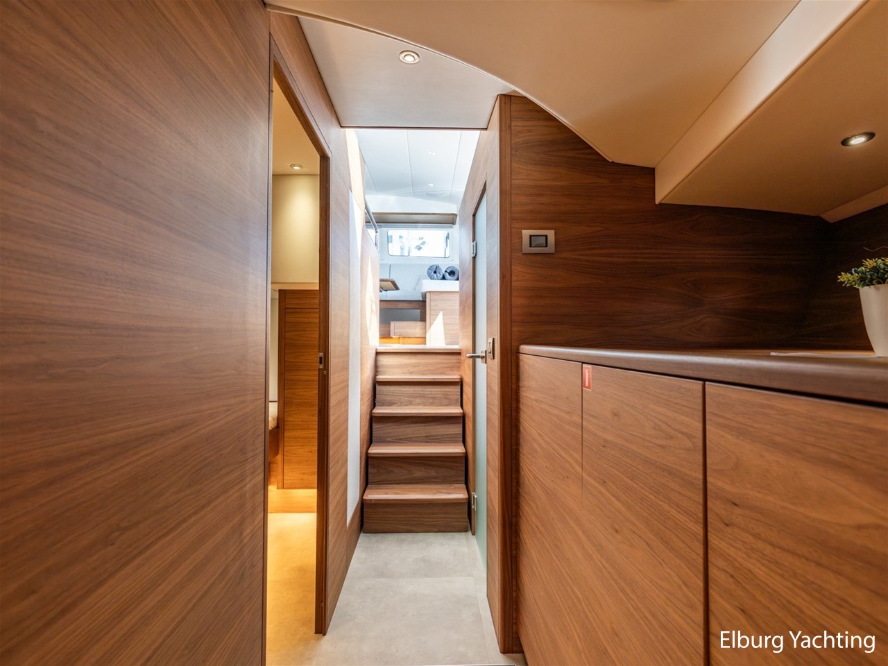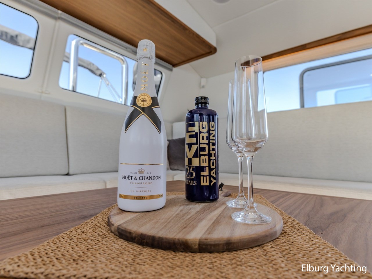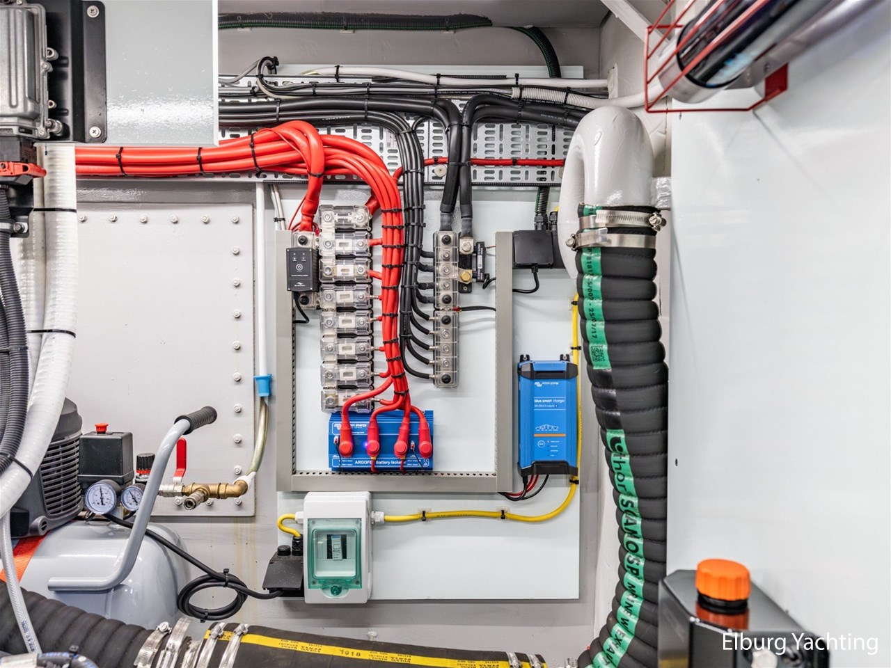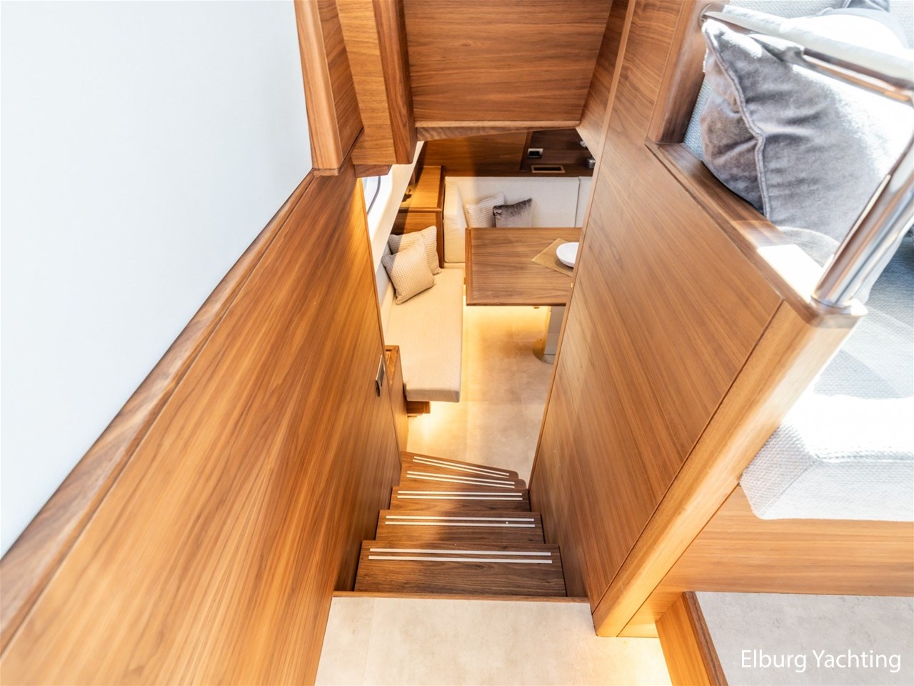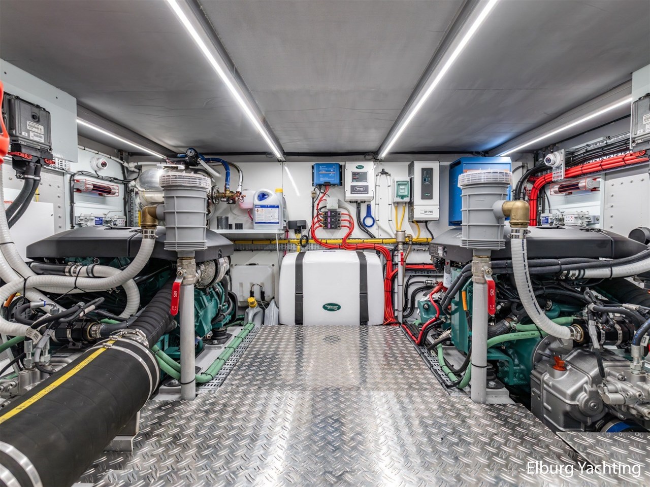 Waanzinnig gebouwde Nieland Explorer 50 door DSA Yachts - Ossenzijl (gebouwd in 2020/2021 en opgeleverd in 2022). Deze fraaie verschijning op het water kenmerkt haar naam "One Off" met verve. Geheel het jacht is doordacht en er is nergens op bezuinigd tijdens het bouwproces. Denk hierbij aan de ruimtelijke indeling van dit jacht in combinatie met de geringe diepgang (ca. 0.98 meter) en de fraaie uitstraling. Rondom is het jacht voorzien van een prachtig en onderhoudsarm Flexiteak dek met een prachtige rvs zeerailing, rvs bolders, dubbelarmige ruitenwissers, een elektrisch neerlaatbare mast, 2 te openen deuren in de spiegel richting het zwemplateau, inklapbare zwemtrap, bimini bij de buitenstuurstand en een ruimtelijk dek met brede gangboorden en voldoende zitgelegenheid. Het vaste stuurhuis is royaal opgezet met rondom goed zicht, genoeg zitgelegenheid, twee zijdeuren naar de gangboorden, Webasto elektrisch schuifdak met muggenhor en een fraaie stuurstand met uitgebreid navigatieapparatuur en een Recaro stuurstoel. Vanuit het vaste stuurhuis is de gezellige salon eenvoudig te benaderen. In de salon bevindt zich een comfortabele zithoek, deur naar het achterdek en de moderne kombuis met hoogwaardig Siemens apparatuur (inductiekookplaat met geïntegreerde afzuiging + vaatwasser + oven/magnetron), Bodega wijnkoeler, de kombuis beschikt over een prachtig granieten aanrechtblad. Vanuit het stuurhuis zijn de twee hutten te benaderen. De master bedroom is aan de voorzijde van het jacht gesitueerd en beschikt over een prachtig vrijstaand tweepersoons bed met veel kastruimte en een royale natte cel met elektrisch toilet, douchecabine, wastafel met granieten blad en kastruimte. De gastenhut beschikt over een tweepersoons vast bed, kastruimte en een tweede natte cel met elektrisch toilet, douchecabine en wastafel met granieten blad. In de gang is een wasruimte gesitueerd met Siemens wasmachine/droger. Door het gehele jacht valt het chique Amerikaans Notenhout interieur op in combinatie met de indirecte LED verlichting. Dit jacht is robuust gebouwd, gezellig vormgegeven en beschikt over een geringe doorvaarthoogte met gestreken mast (ca. 3.60 meter) - een geringere doorvaarthoogte is in overleg te realiseren. Het jacht is eventueel vaarbewijsvrij te varen. Voor vragen en/of het maken van een afspraak bent u 7 dagen per week van harte welkom bij Elburg Yachting