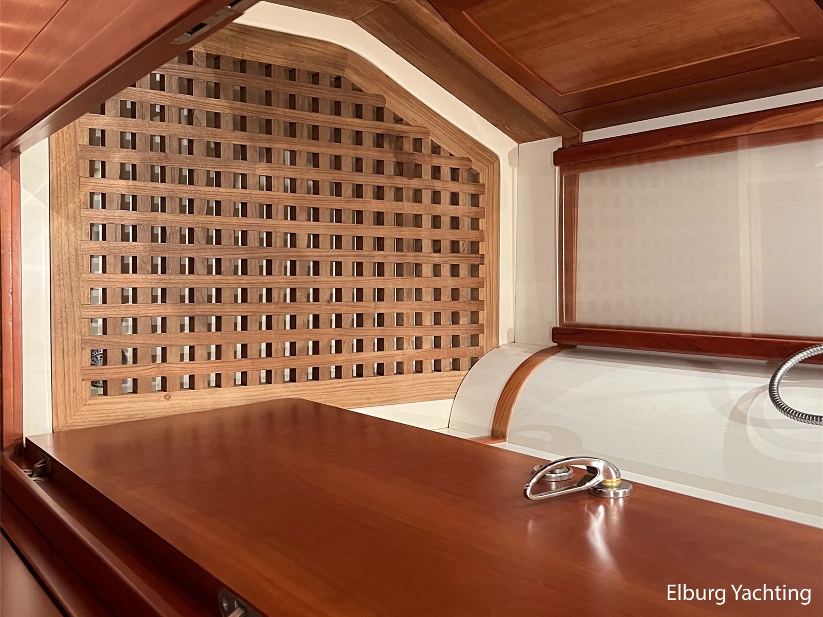 - Kersen hout + teak vloer door gehele schip + ledere bekleding