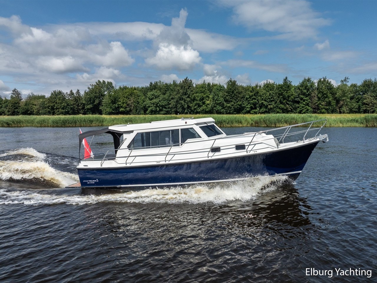 Uiterst fraai vormgegeven Excellent 1000 Touring met een ruimtelijke indeling. Buitenom valt de sportieve lijn van het jacht op in combinatie met de klassieke details zoals de dubbel uitgevoerde r.v.s. zeerailing in combinatie met het r.v.s. anker en r.v.s. ankerbeslag. De Excellent beschikt over comfortabele gangboorden en is middels de 10 r.v.s. bolders in combinatie met de Quick elektrische boeg- en hekschroef gemakkelijk af- en aan te meren. De gezellige open kuip is voorzien van een afsluitbare tent, een rompdeur naar het aangehangen zwemplateau en een prettige bank. Vanuit de open kuip is op gelijkvloerse hoogte de salon bereikbaar middels de vier openslaande deuren. De salon is voorzien van een comfortabele dinette met een ruimte tafel, de overzichtelijke stuurstand en veel bergruimte. In de salon is er middels de royale raampartijen veel natuurlijk licht. Er zijn aan beide zijden 2 schuiframen met hor en een fraai schuifdak. Van binnen is er gekozen voor een moderne ruimtelijke indeling met prachtig notenhout en natuurlijke kleuren. Aan stuurboord is de kombuis gesitueerd met spoelbak, ruime Dometic koelkast en een 3-pits gaskooktoestel met Dometic afzuigsysteem. Aan bakboord is de natte cel gesitueerd met elektrisch toilet, fijne douche en wastafel. Voorin is de eigenaarshut gesitueerd met een vrijstaand Frans bed met veel bergruimte. Voor vragen en/of het maken van een afspraak bent u 7 dagen per week van harte welkom bij Elburg Yachting.