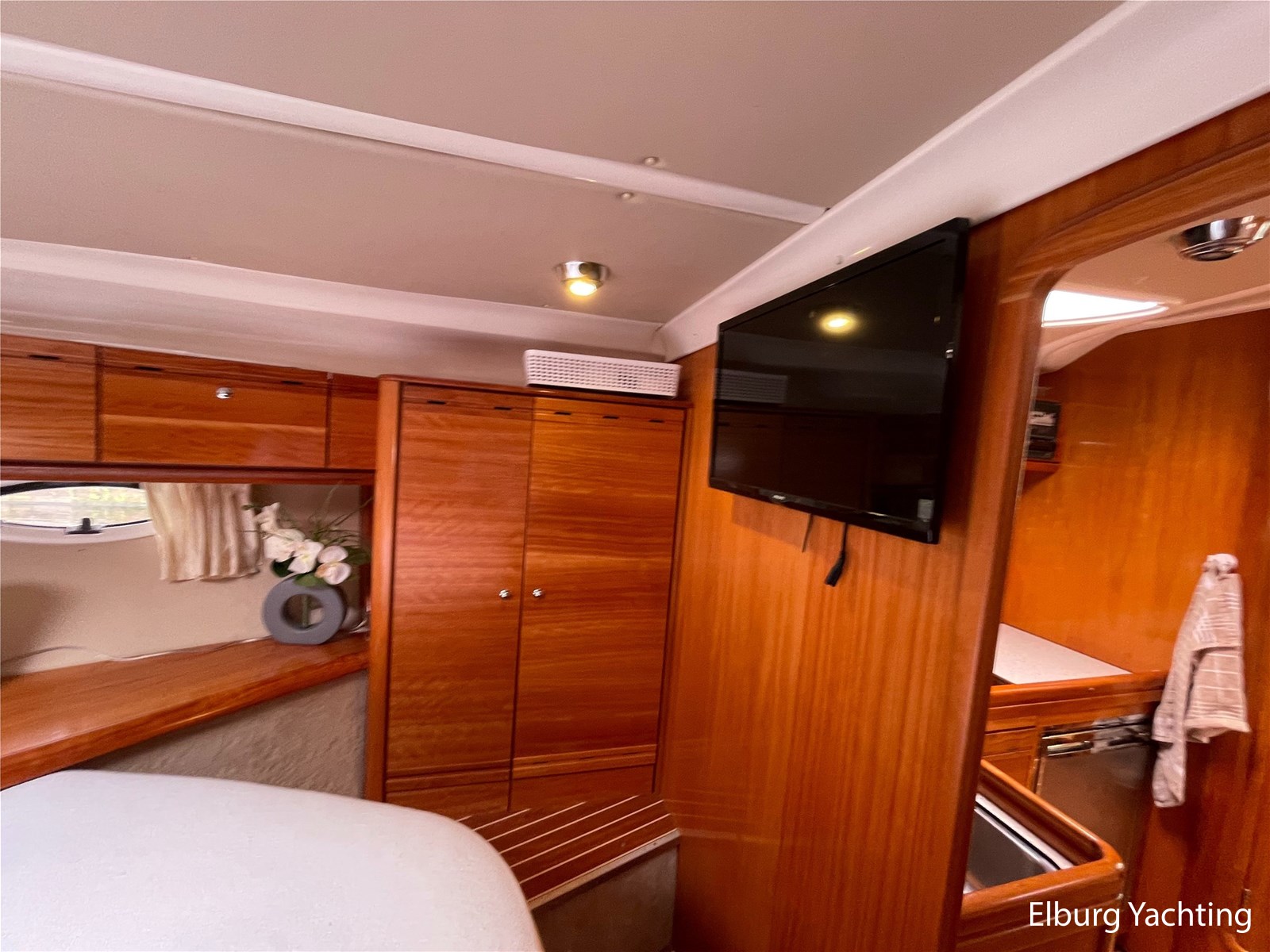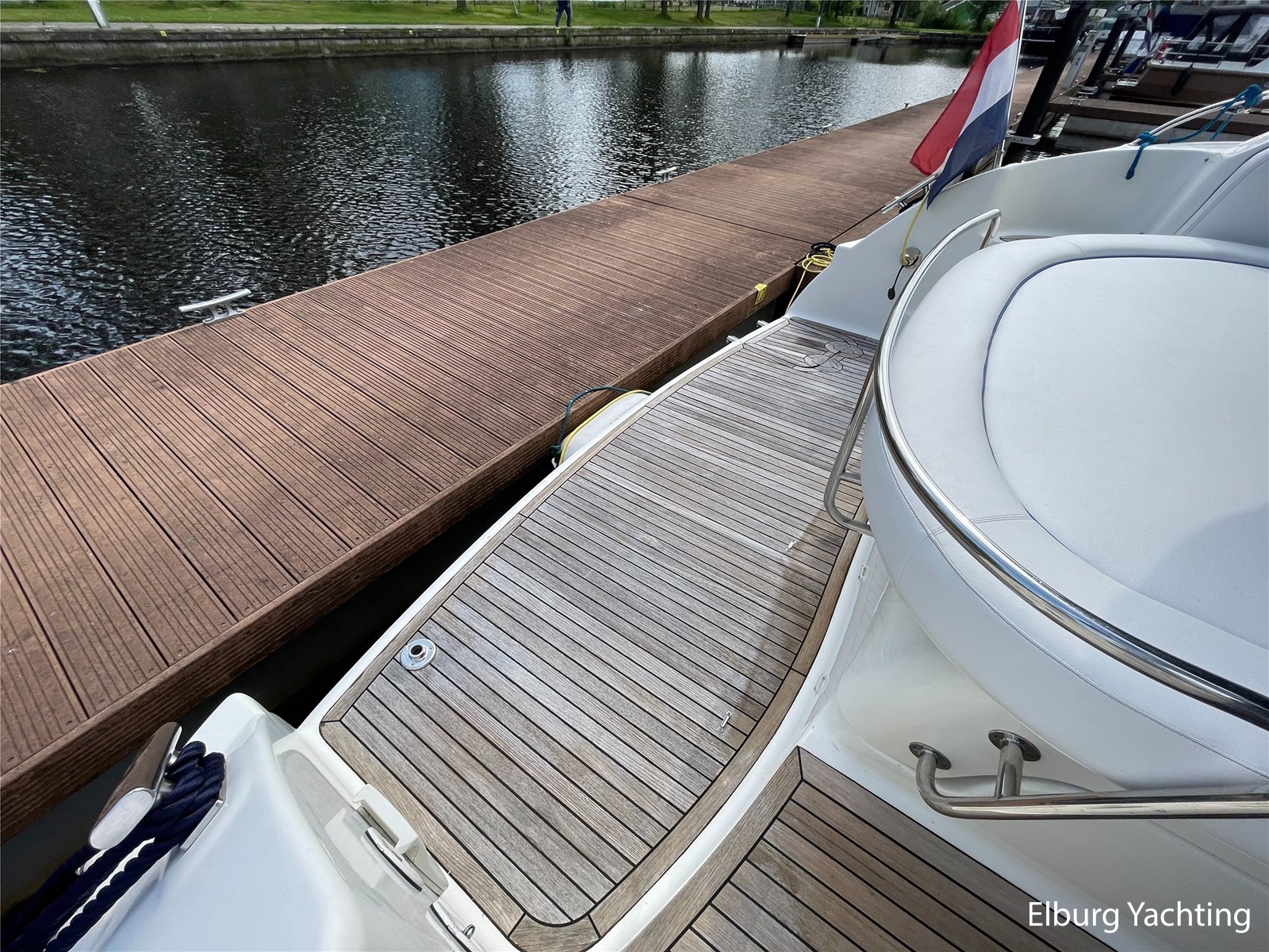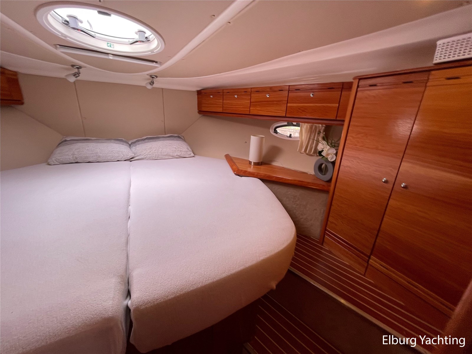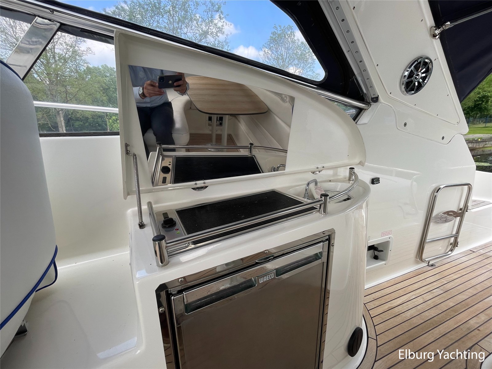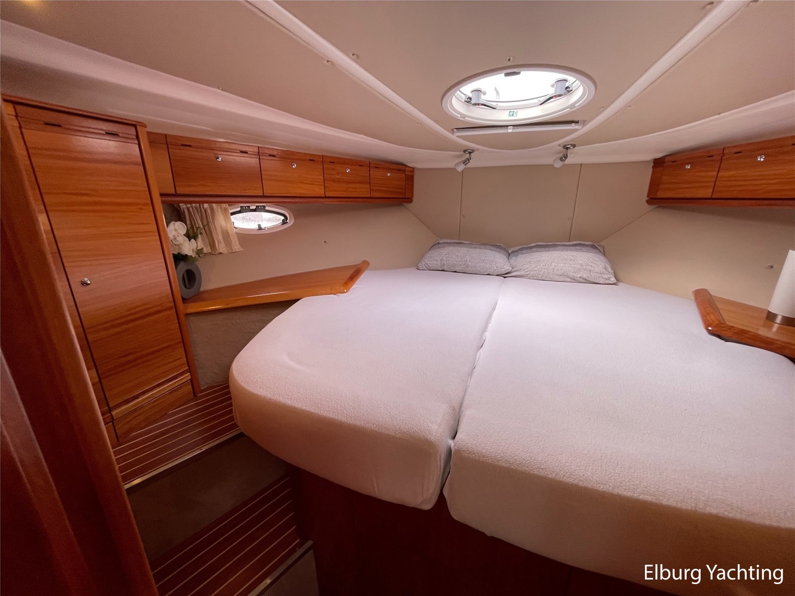 Stoere, sportieve en vooral erg nette Bavaria 37 Sport uit het bouwjaar 2008. Het betreft een fraaie motorboot waar in de loop der jaren goed voor gezorgd is. Zo werd ze door haar huidige eigenaar iedere winter uit het water gehaald en in een droge loods gezet voor de winterstalling. Opvallend aan deze Bavaria 37 Sport is de ongekende ruimte aan boord en de prettige indeling met de twee ruime hutten die slaapgelegenheid bieden aan vier personen. De kuip is ruim opgezet en voorzien van de fijne stuurstand met meevaarbank en een ruime dinette die tevens als zonnebed kan fungeren. Onder het zonnebed is een groot bergluik gesitueerd en vlak daarnaast bevindt zich de wetbar met spoelbak, grill en ruime buitenkoelkast. De kuip is volledig afsluitbaar middels de vernieuwde tent (2022). Door naar binnen is de stahoogte erg prettig. De indeling is praktisch met een fijne dinette met vaste tafel en handige kombuis met veel bergruimte, vernieuwde inductiekookplaat (2023), dubbele spoelbak, magnetron/oven en ruime koelkast met vriesvak. Verder is ze voorzien van 2 ruime hutten (2 persoons vrijstaand Frans bed in de voorkajuit + 2 enkele bedden in de ruime achterkajuit) en een royale natte cel met elektrisch toilet, wastafel en grote afsluitbare douchekabine. Voor vragen en/of het maken van een afspraak bent u 7 dagen per week van harte welkom bij Elburg Yachting.