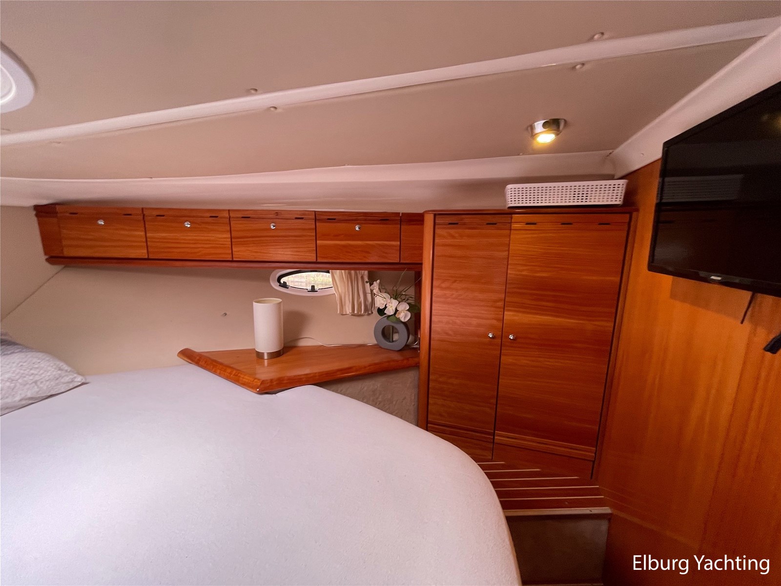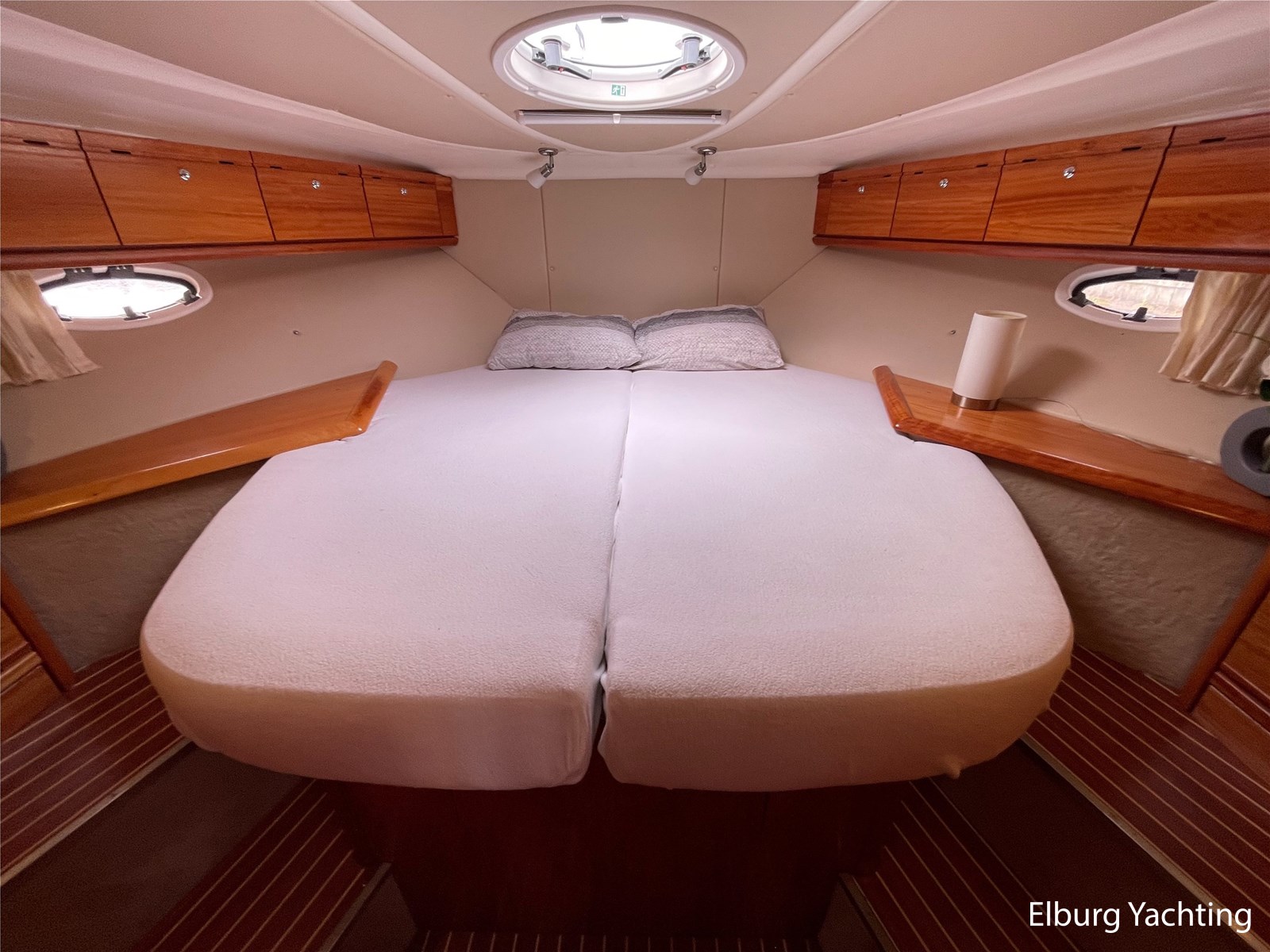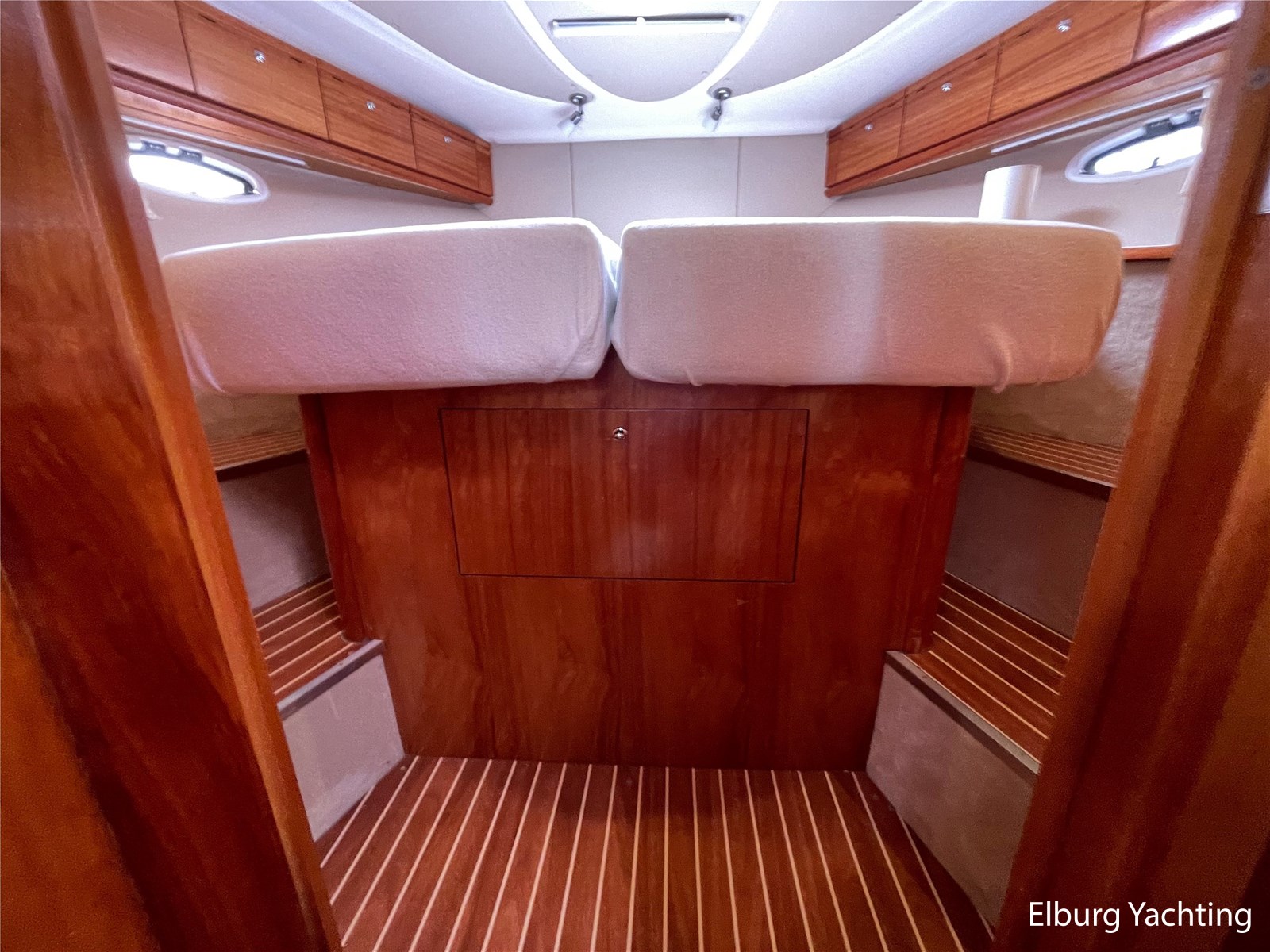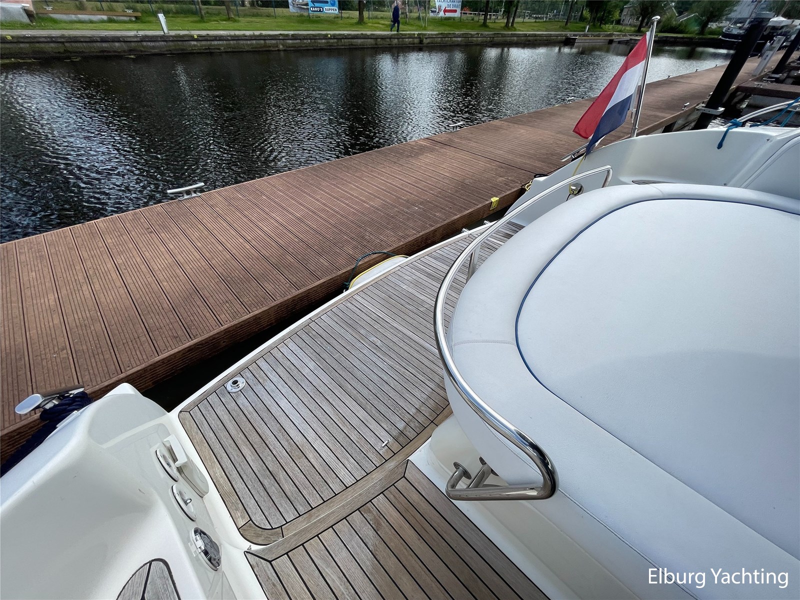 Stoere, sportieve en vooral erg nette Bavaria 37 Sport uit het bouwjaar 2008. Het betreft een fraaie motorboot waar in de loop der jaren goed voor gezorgd is. Zo werd ze door haar huidige eigenaar iedere winter uit het water gehaald en in een droge loods gezet voor de winterstalling. Opvallend aan deze Bavaria 37 Sport is de ongekende ruimte aan boord en de prettige indeling met de twee ruime hutten die slaapgelegenheid bieden aan vier personen. De kuip is ruim opgezet en voorzien van de fijne stuurstand met meevaarbank en een ruime dinette die tevens als zonnebed kan fungeren. Onder het zonnebed is een groot bergluik gesitueerd en vlak daarnaast bevindt zich de wetbar met spoelbak, grill en ruime buitenkoelkast. De kuip is volledig afsluitbaar middels de vernieuwde tent (2022). Door naar binnen is de stahoogte erg prettig. De indeling is praktisch met een fijne dinette met vaste tafel en handige kombuis met veel bergruimte, vernieuwde inductiekookplaat (2023), dubbele spoelbak, magnetron/oven en ruime koelkast met vriesvak. Verder is ze voorzien van 2 ruime hutten (2 persoons vrijstaand Frans bed in de voorkajuit + 2 enkele bedden in de ruime achterkajuit) en een royale natte cel met elektrisch toilet, wastafel en grote afsluitbare douchekabine. Voor vragen en/of het maken van een afspraak bent u 7 dagen per week van harte welkom bij Elburg Yachting.