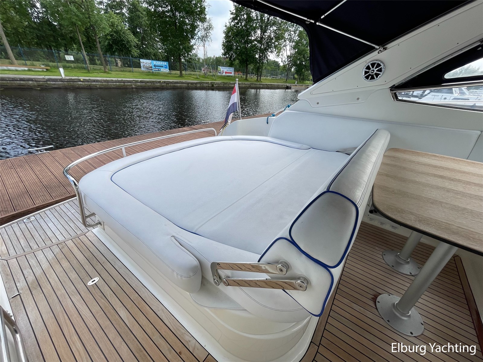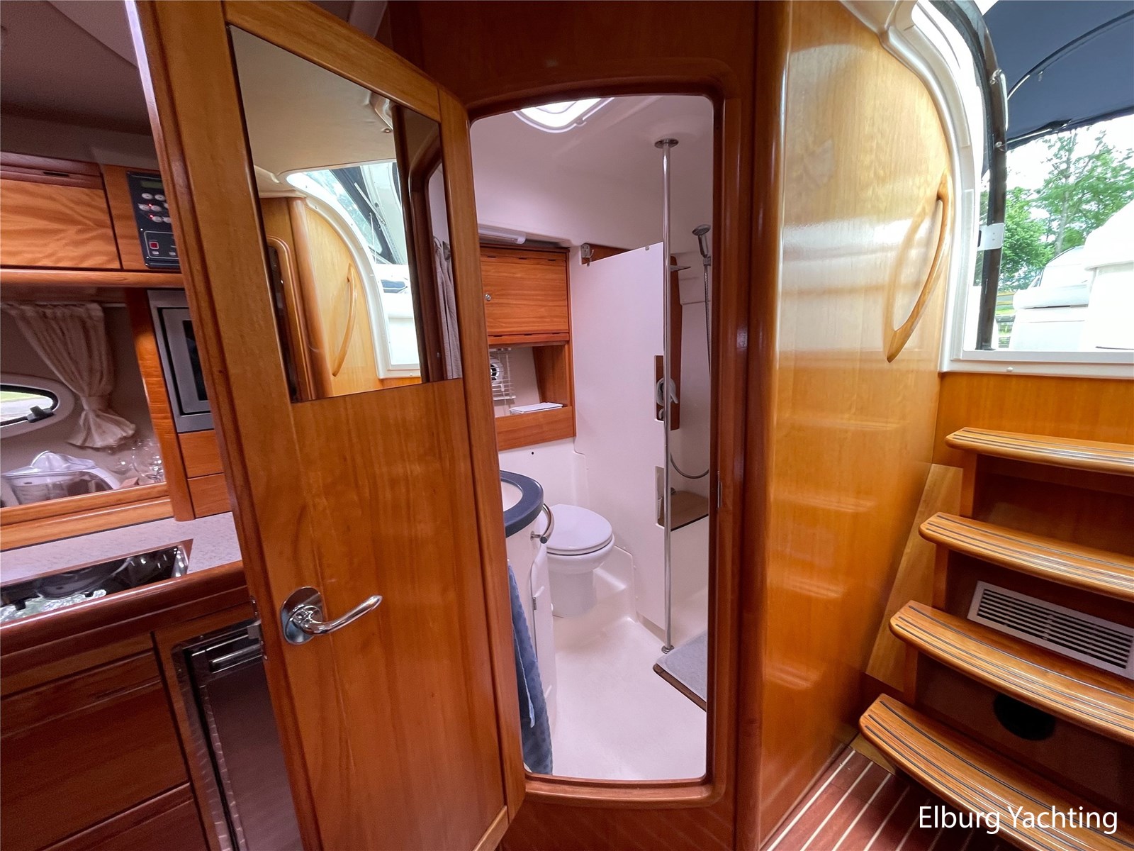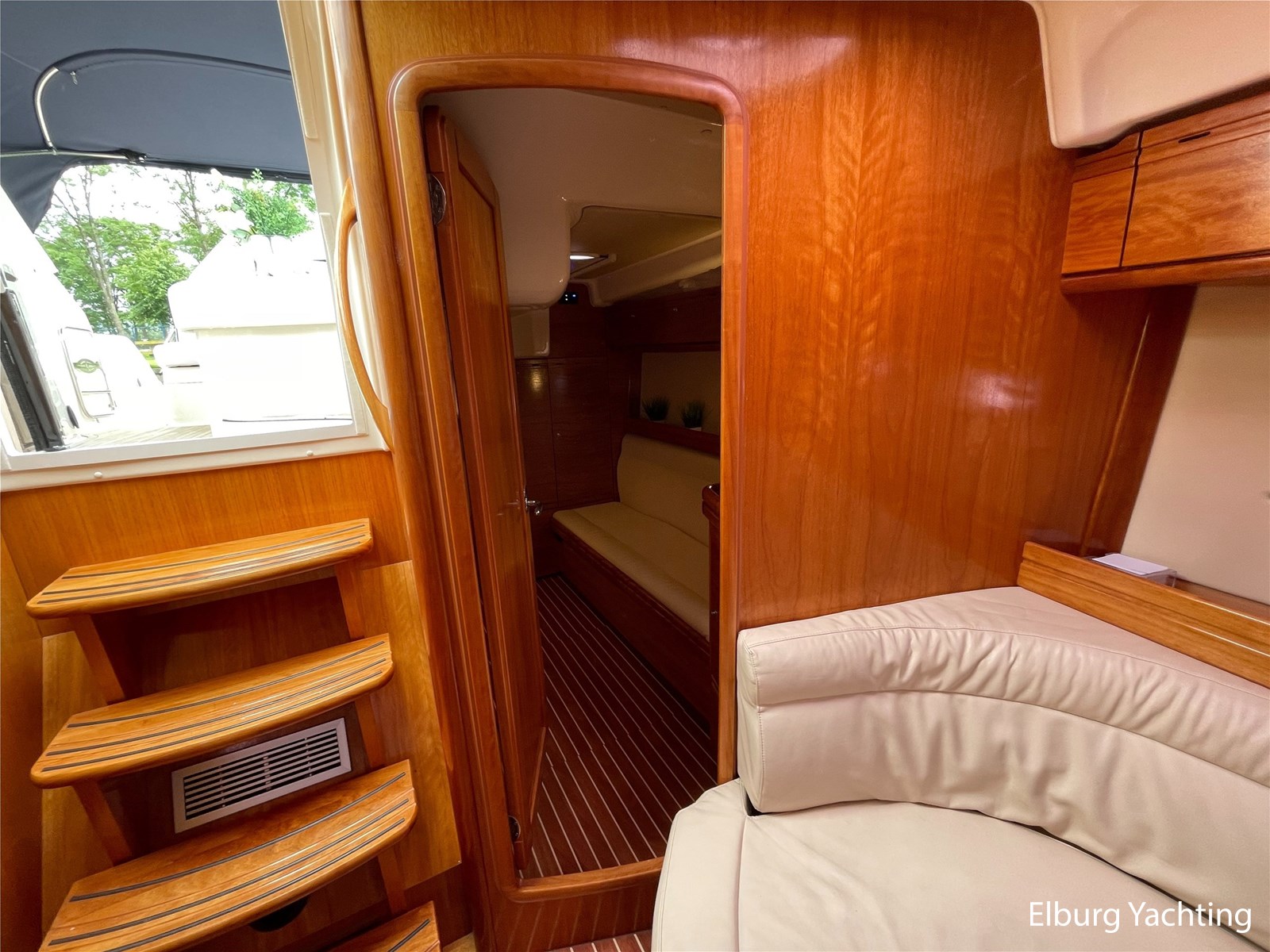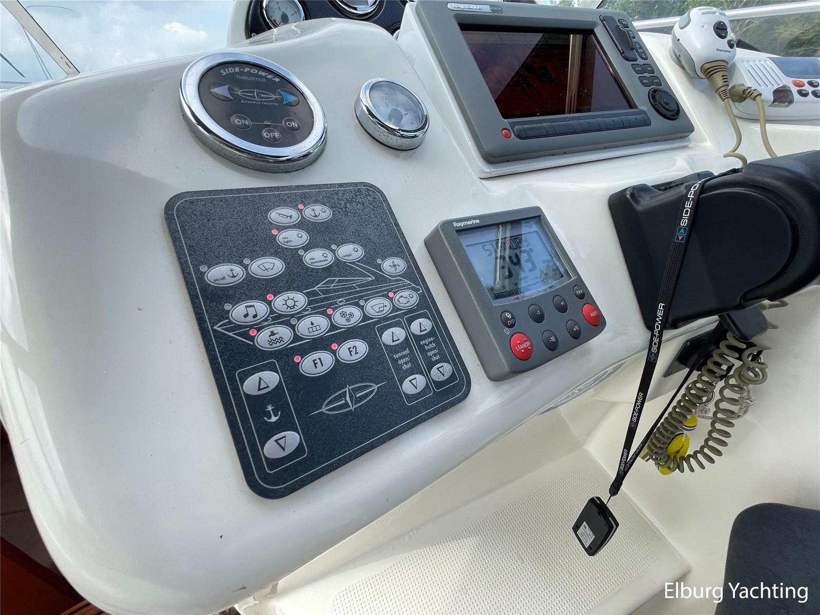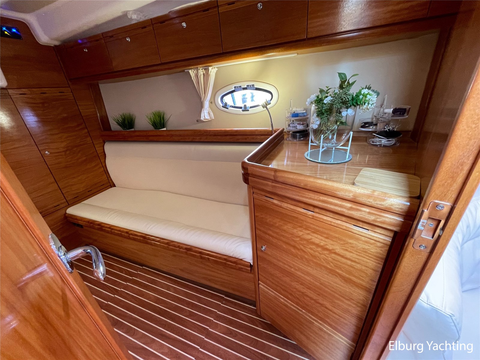 Stoere, sportieve en vooral erg nette Bavaria 37 Sport uit het bouwjaar 2008. Het betreft een fraaie motorboot waar in de loop der jaren goed voor gezorgd is. Zo werd ze door haar huidige eigenaar iedere winter uit het water gehaald en in een droge loods gezet voor de winterstalling. Opvallend aan deze Bavaria 37 Sport is de ongekende ruimte aan boord en de prettige indeling met de twee ruime hutten die slaapgelegenheid bieden aan vier personen. De kuip is ruim opgezet en voorzien van de fijne stuurstand met meevaarbank en een ruime dinette die tevens als zonnebed kan fungeren. Onder het zonnebed is een groot bergluik gesitueerd en vlak daarnaast bevindt zich de wetbar met spoelbak, grill en ruime buitenkoelkast. De kuip is volledig afsluitbaar middels de vernieuwde tent (2022). Door naar binnen is de stahoogte erg prettig. De indeling is praktisch met een fijne dinette met vaste tafel en handige kombuis met veel bergruimte, vernieuwde inductiekookplaat (2023), dubbele spoelbak, magnetron/oven en ruime koelkast met vriesvak. Verder is ze voorzien van 2 ruime hutten (2 persoons vrijstaand Frans bed in de voorkajuit + 2 enkele bedden in de ruime achterkajuit) en een royale natte cel met elektrisch toilet, wastafel en grote afsluitbare douchekabine. Voor vragen en/of het maken van een afspraak bent u 7 dagen per week van harte welkom bij Elburg Yachting.