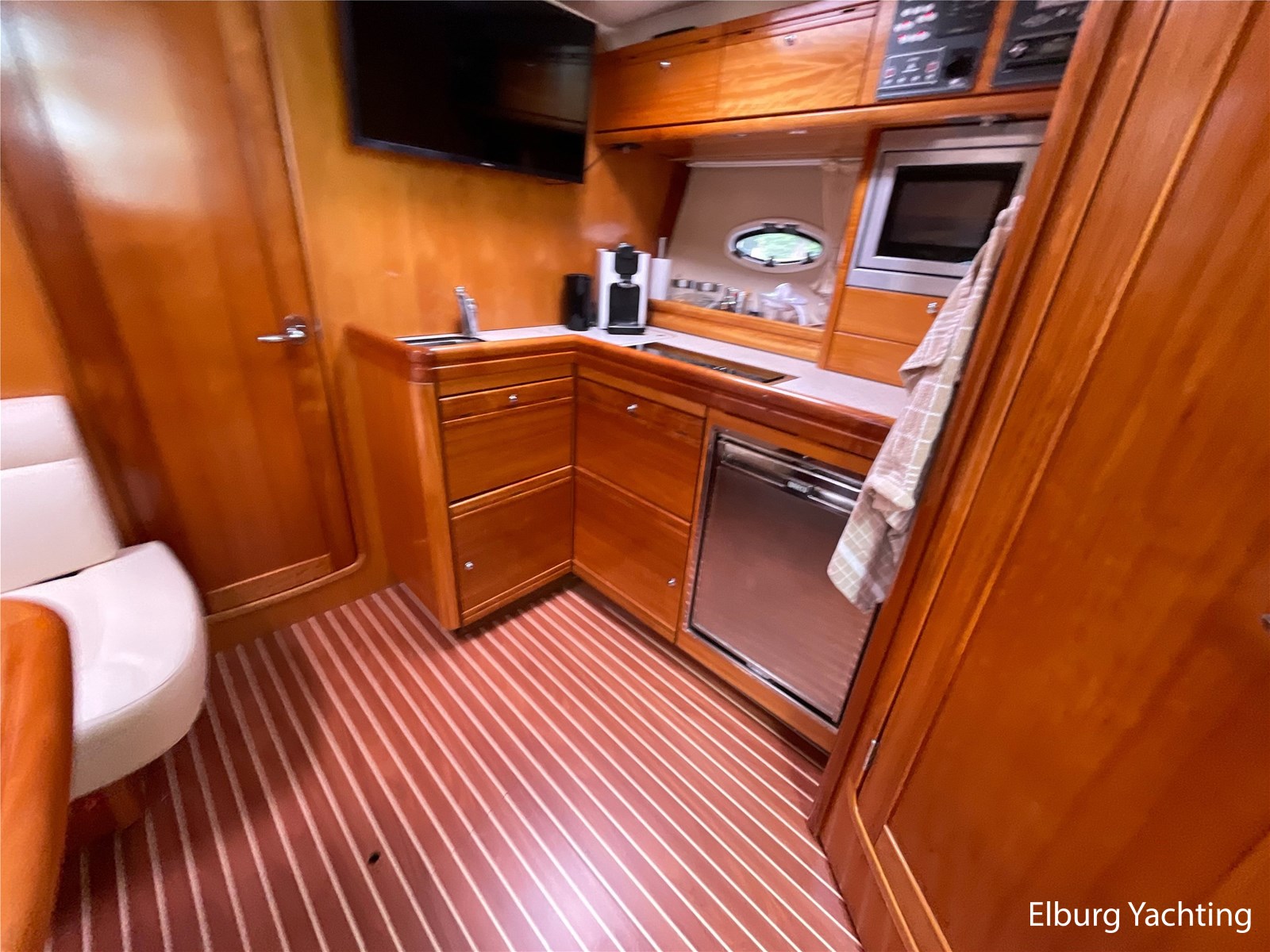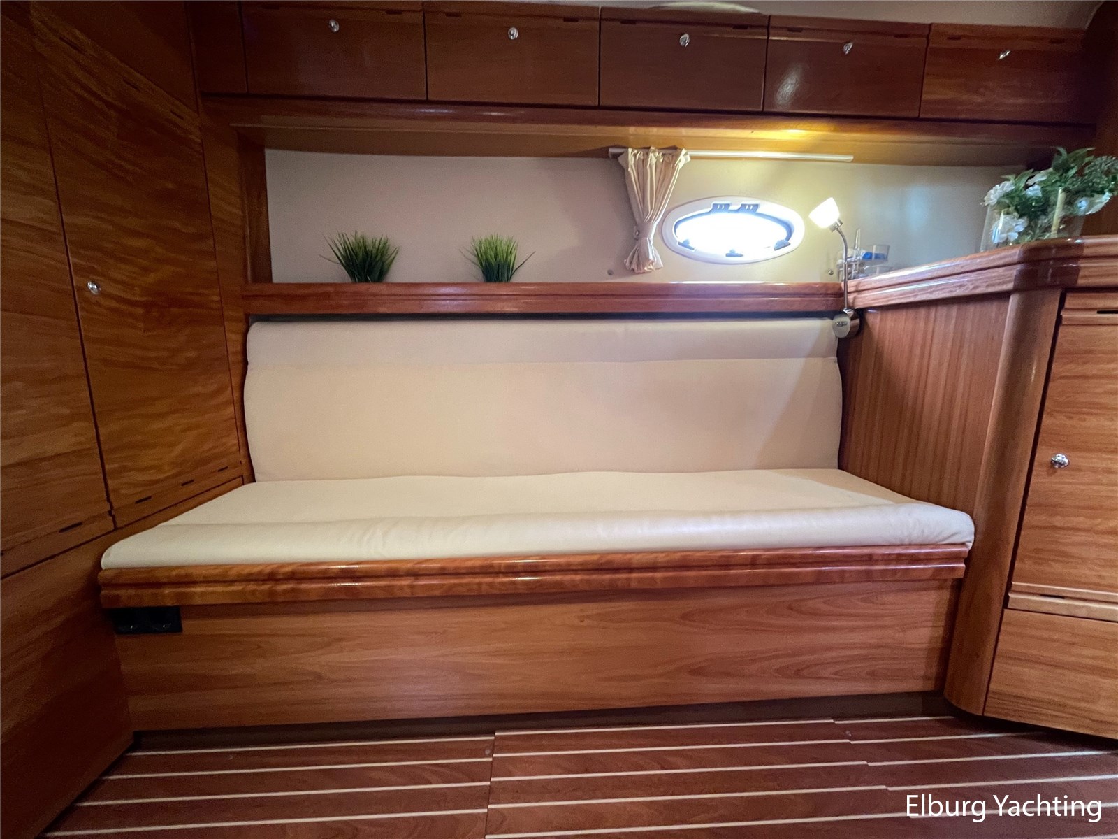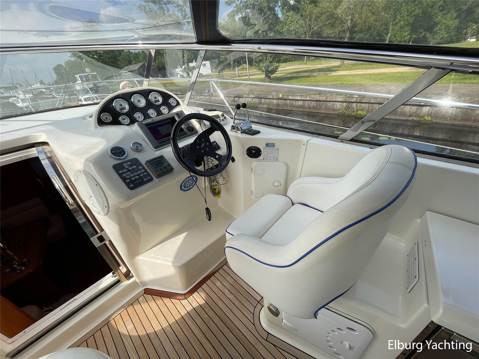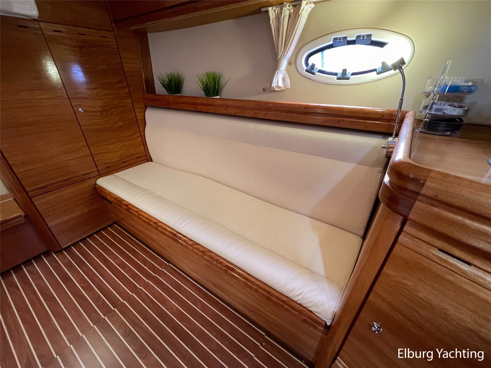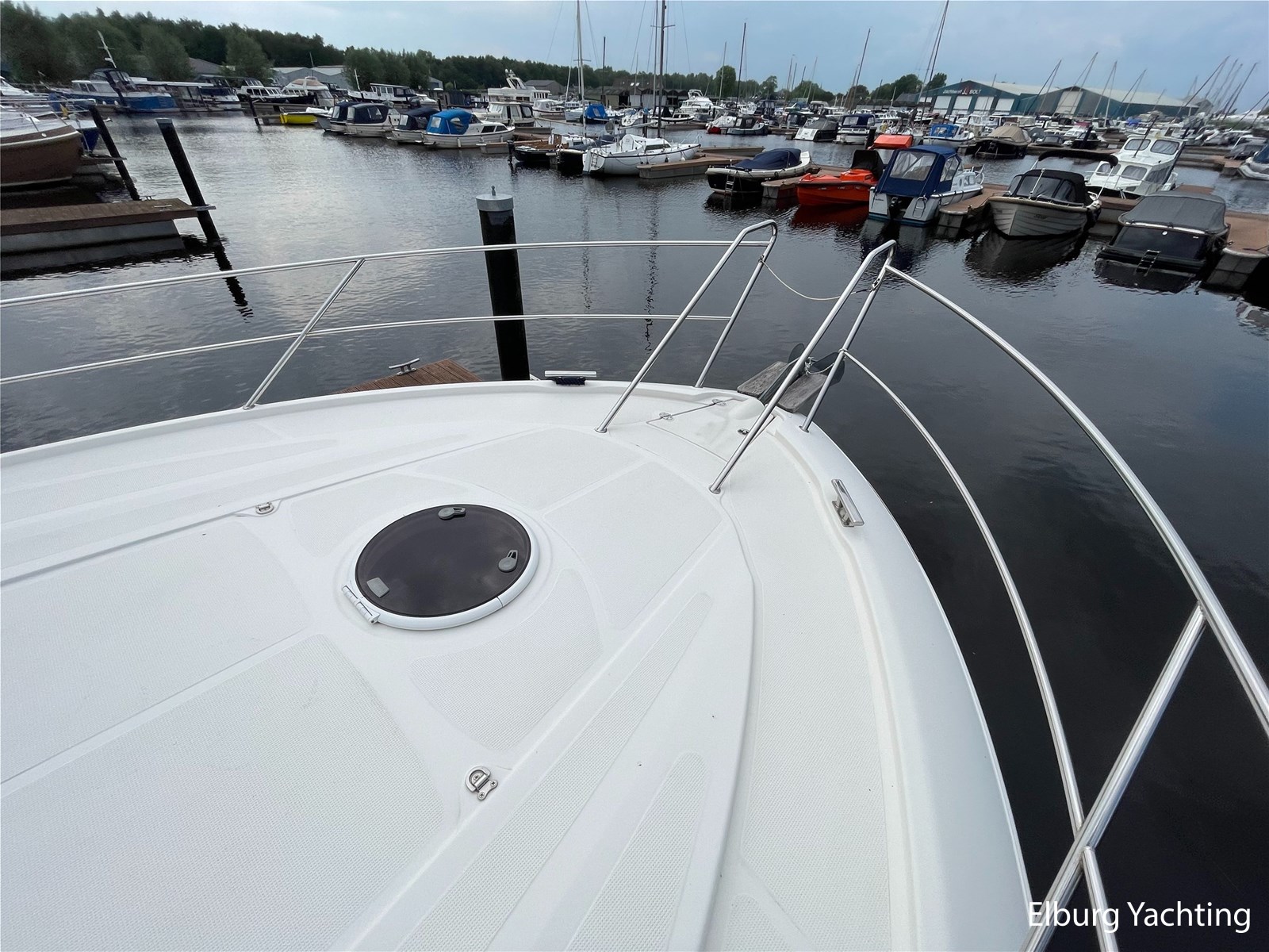 Stoere, sportieve en vooral erg nette Bavaria 37 Sport uit het bouwjaar 2008. Het betreft een fraaie motorboot waar in de loop der jaren goed voor gezorgd is. Zo werd ze door haar huidige eigenaar iedere winter uit het water gehaald en in een droge loods gezet voor de winterstalling. Opvallend aan deze Bavaria 37 Sport is de ongekende ruimte aan boord en de prettige indeling met de twee ruime hutten die slaapgelegenheid bieden aan vier personen. De kuip is ruim opgezet en voorzien van de fijne stuurstand met meevaarbank en een ruime dinette die tevens als zonnebed kan fungeren. Onder het zonnebed is een groot bergluik gesitueerd en vlak daarnaast bevindt zich de wetbar met spoelbak, grill en ruime buitenkoelkast. De kuip is volledig afsluitbaar middels de vernieuwde tent (2022). Door naar binnen is de stahoogte erg prettig. De indeling is praktisch met een fijne dinette met vaste tafel en handige kombuis met veel bergruimte, vernieuwde inductiekookplaat (2023), dubbele spoelbak, magnetron/oven en ruime koelkast met vriesvak. Verder is ze voorzien van 2 ruime hutten (2 persoons vrijstaand Frans bed in de voorkajuit + 2 enkele bedden in de ruime achterkajuit) en een royale natte cel met elektrisch toilet, wastafel en grote afsluitbare douchekabine. Voor vragen en/of het maken van een afspraak bent u 7 dagen per week van harte welkom bij Elburg Yachting.