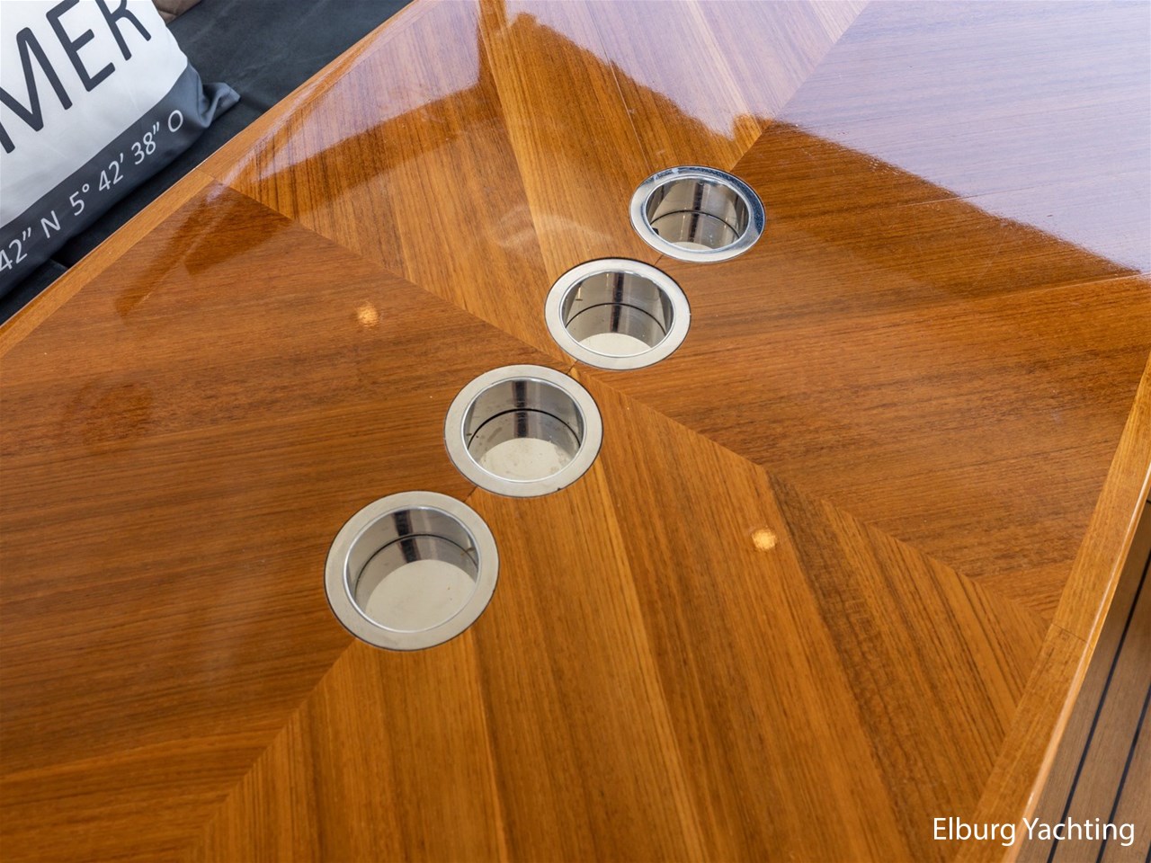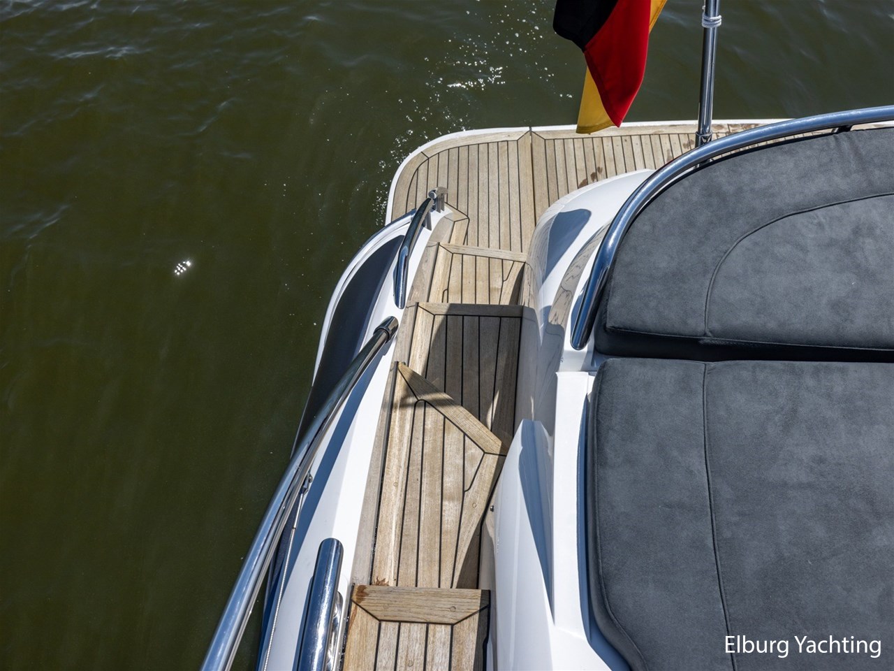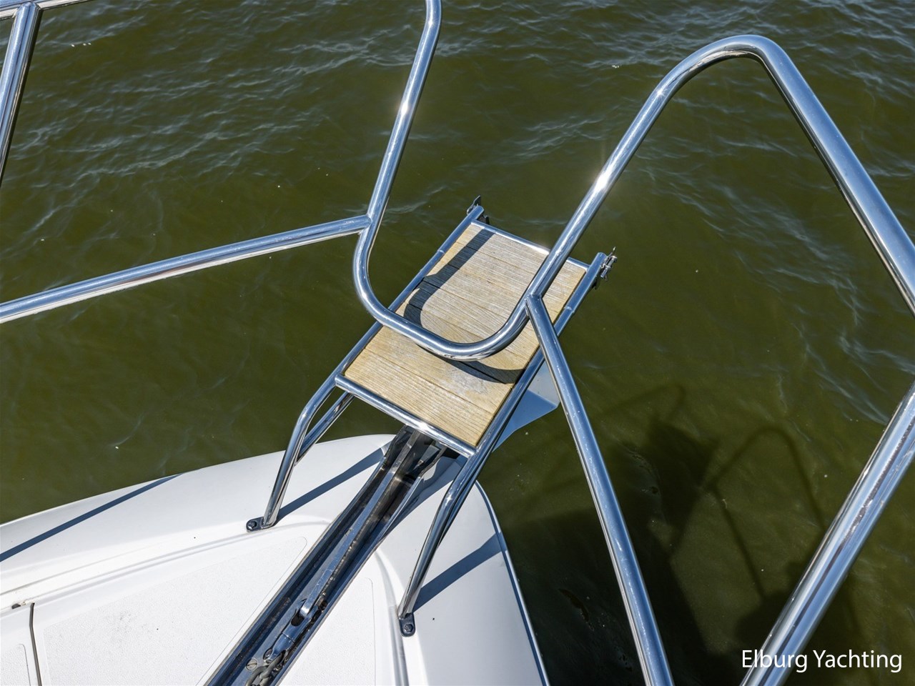 Geïntegreerd met teak dek + r.v.s. zwemtrap