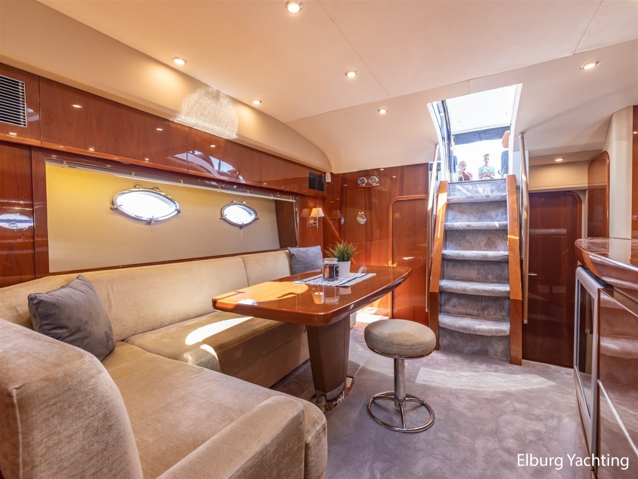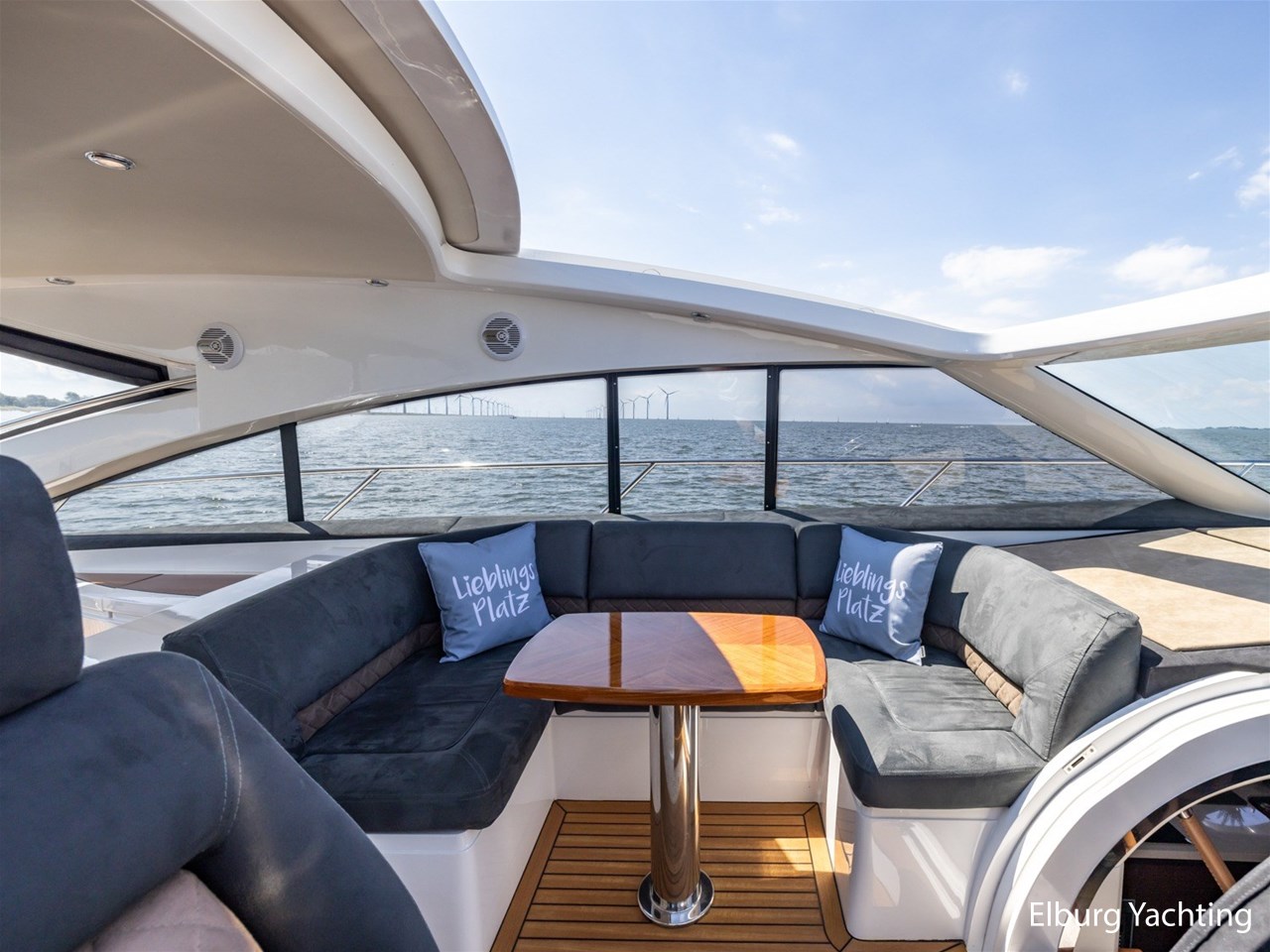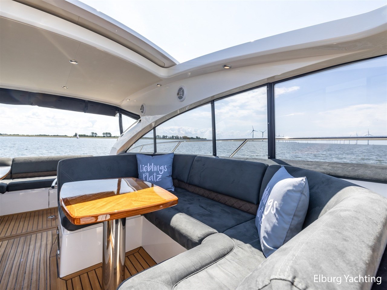 Geïntegreerd met teak dek + r.v.s. zwemtrap