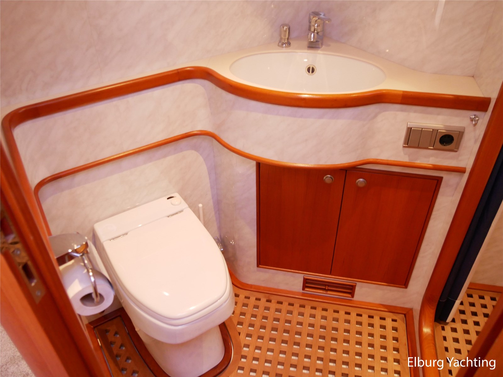- Geintegreerd met teak dek + r.v.s. zwemtrap