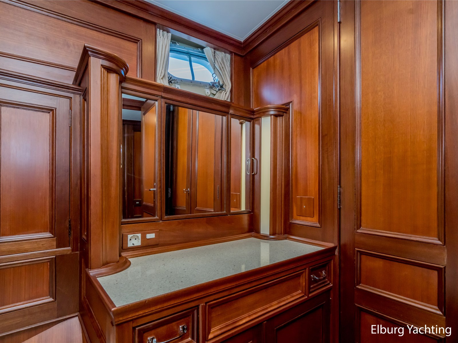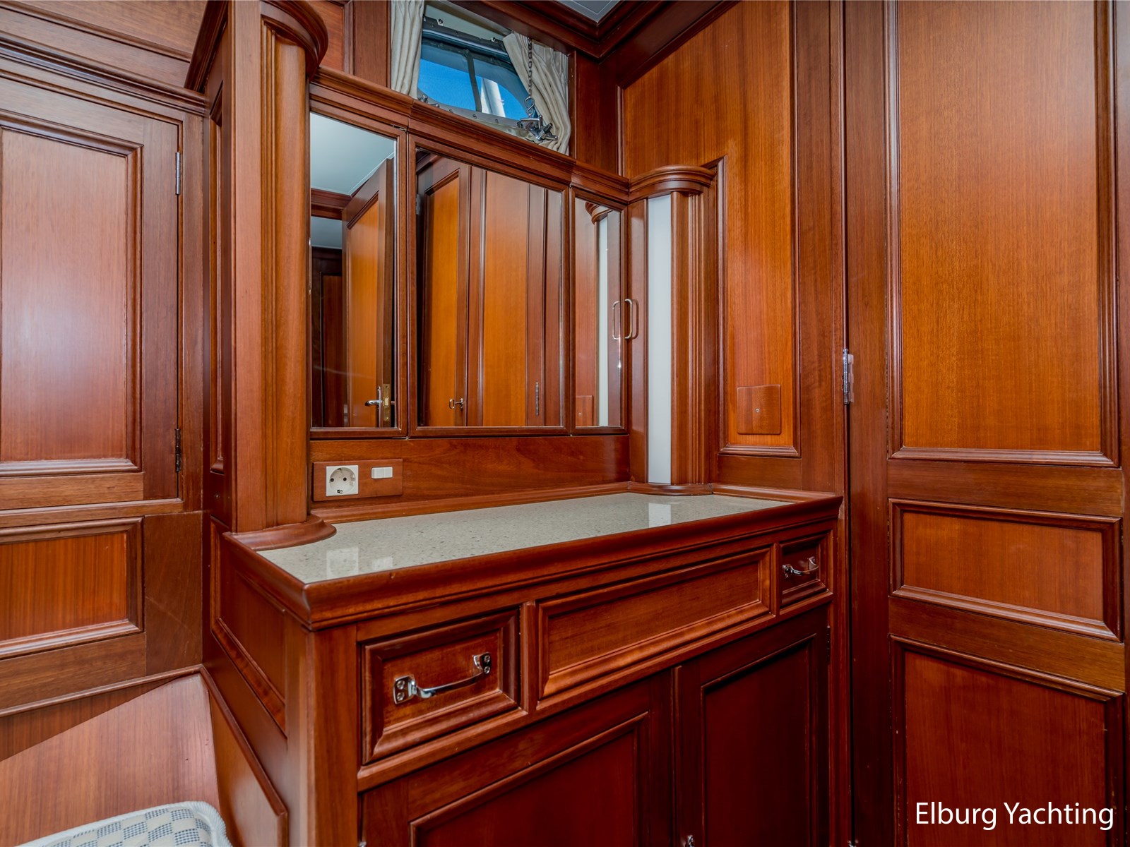 De Lunstroo 56 - (Total Refit 2015) is een stuk maritieme geschiedenis en zonder twijfel een van de meest in het oog springende kotterjachten die rondvaart. Het schip is gelanceerd in 1974, maar heeft in 2015 een volledige refit ondergaan op bij Nicolaas Witsen, waar kosten nog moeite zijn gespaard. Het schip heeft 2 nieuwe Perkins motoren gekregen, welke bekend staan om het lage toerental en laag geluidsniveau. Tijdens de refit is o.a. het volgende uitgevoerd : Nieuw massief teakdek (22 mm), nieuw teak kajuitdak (15 mm), Alle gelakte teakhout elementen van de kajuitopbouw zijn nieuw vervaardigd, verchroomde patrijspoorten, nieuw verpakte raamframes, de gehele elektrische installatie is vernieuwd incl. pompen en andere apparaten, nieuwe navigatieapparatuur, nieuw schroefassen, schroefaslagers, stuwdruklagers en schroeven. Alle tanks zijn open geweest, schoongemaakt en geïnspecteerd. (Zowel diesel, water en vuilwatertanks.), Leidingwerk is gemeten op wanddikte. Romp geschilderd in Awl Grip. Al het blanke lakwerk met impregneerhars en Dubbel UV Coating van Dubbelcoat Van de IJssel. (met uitzondering van de rondhouten), Motorbediening Morse omgebouwd tot elektronische bediening, Kabola CV met warmwatervoorziening gemonteerd, nieuwe stoffering, nieuw matrassen. De Lunstroo 56 beschikt over veel leefruimte in de salon en op het achterdek. Het is een uniek motorjacht met hoogwaardige afwerking met modern comfort en nieuwe techniek, geschikt om voor langere tijd op te verblijven. R.v.s. reling, r.v.s stootlijst, ruime zitgelegenheid in de salon, 7 slaapplaatsen, chroom omrand windscherm, achteringang, 2 x vluchtluik voorin, Miele wasmachine, stahoogte ca. 2 meter, achterhut geschikt voor crewcabine (incl. entree machinekamer), goed geïsoleerde machinekamer. Stereoset BOSE Binnen en Buiten (2015), Lowe TV + Lift (2015), CVO certificaat aanwezig, bilge alarm aanwezig in 3 zone’s . De huidige eigenaar heeft om makkelijker lage bruggen te passeren de voormast gedemonteerd en droog opgeslagen en de achtermast klapbaar gemaakt d.m.v. een lier. Ook is in de stuurboord hut één van de stabelbedden weggenomen om meer ruimte te creëren. De doorvaarthoogte met mast op is ca. 8,40m en met geklapte mast en kuipramen geklapt ca. 2,90m.