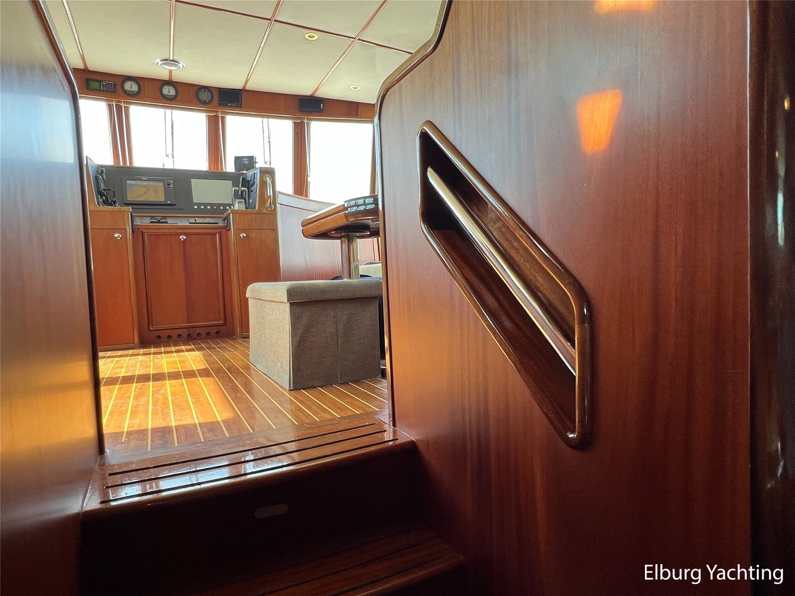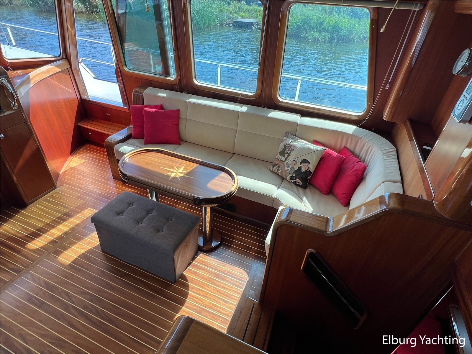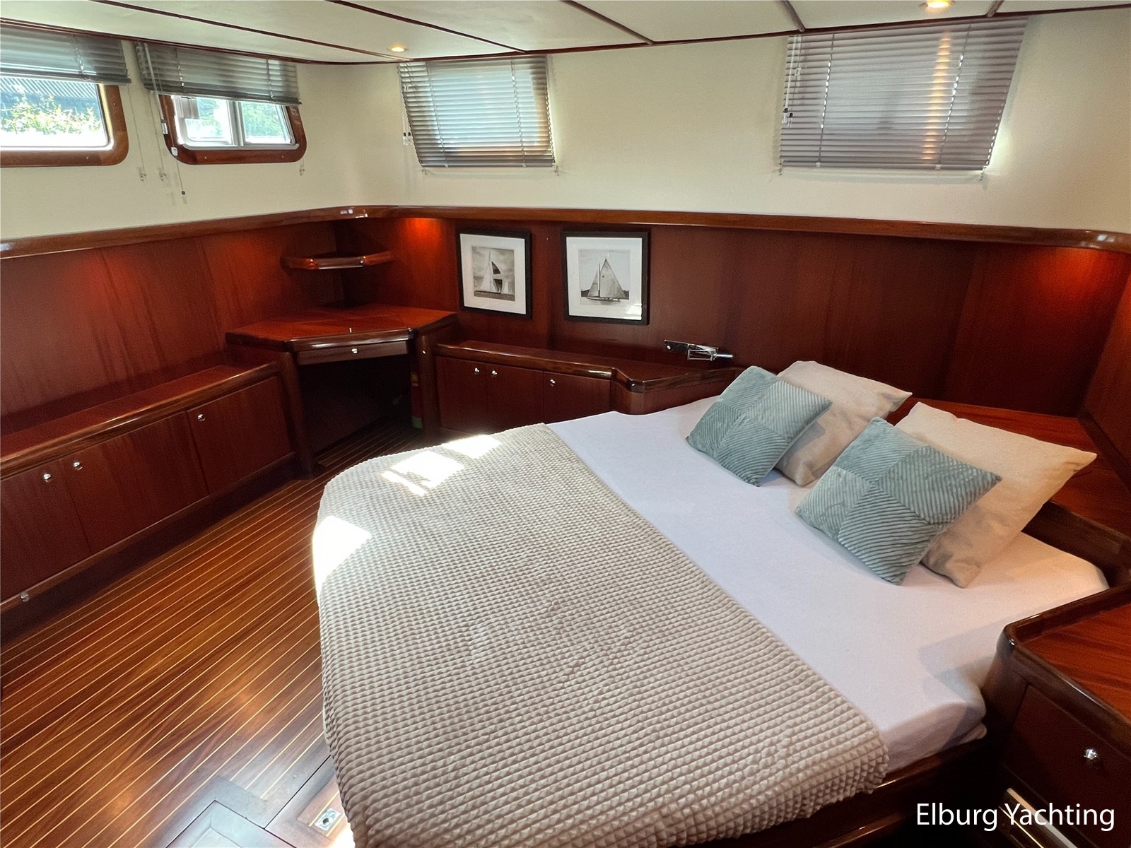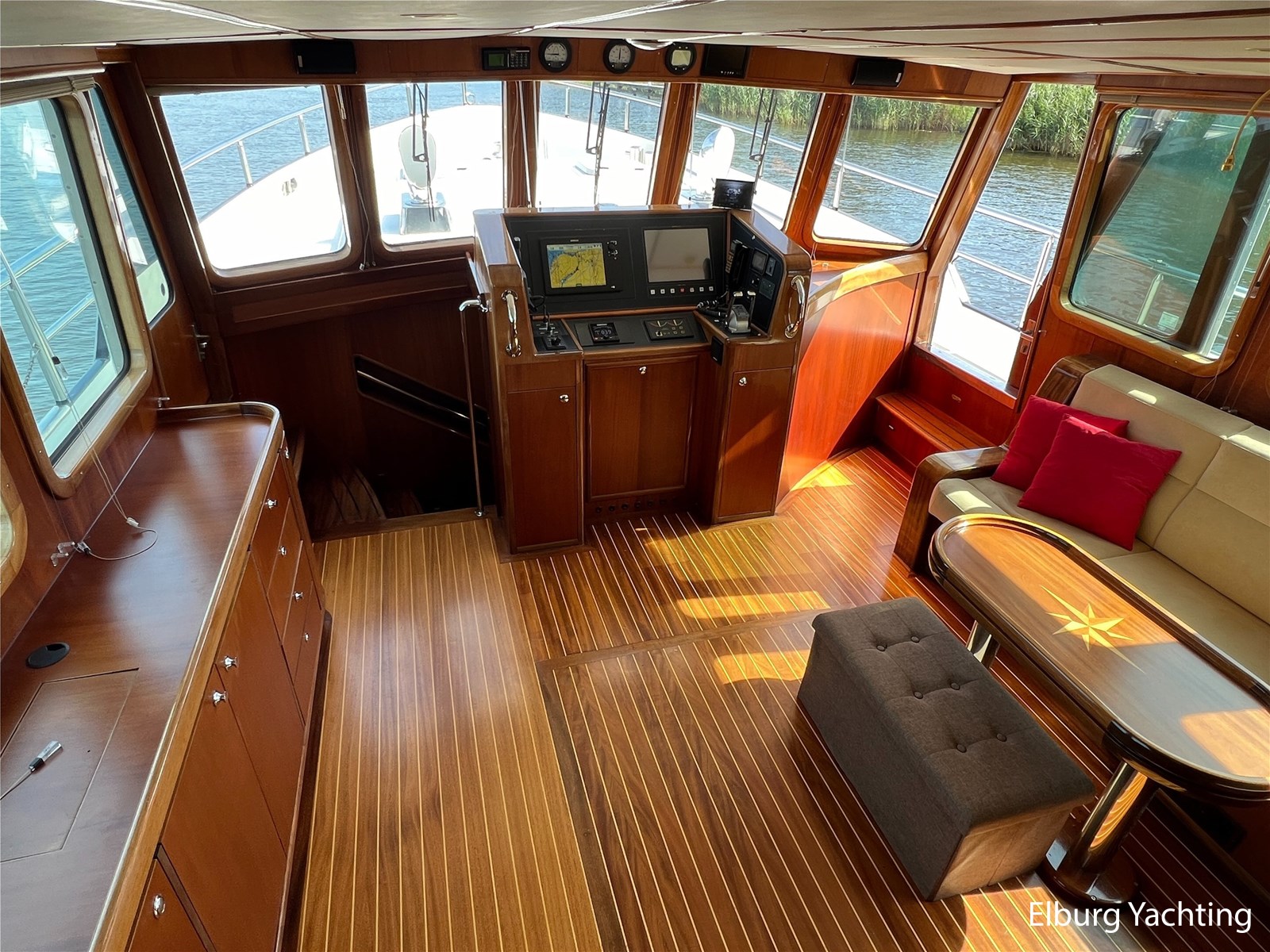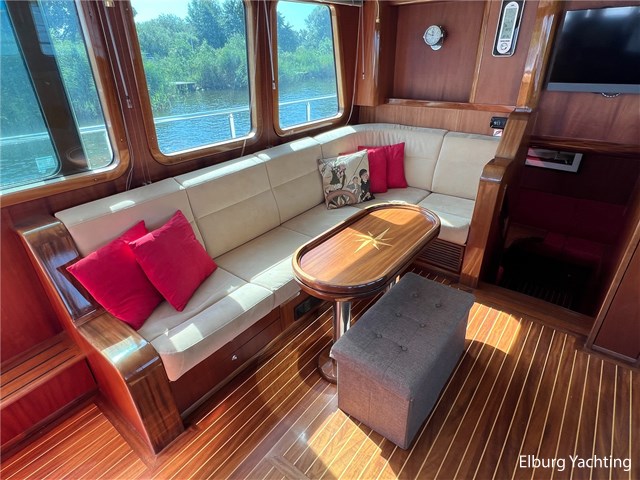 Massief scheeps teakhouten betimmering met een teak vloer door het gehele jacht