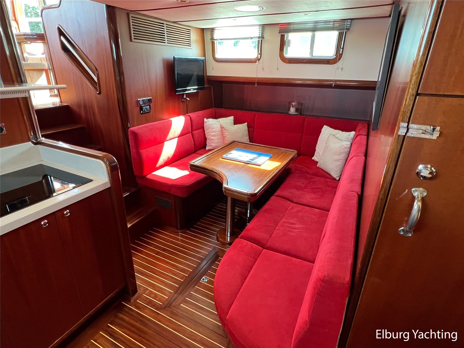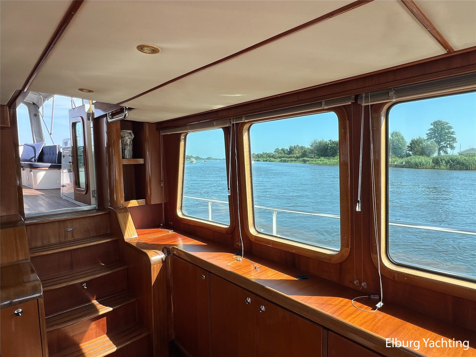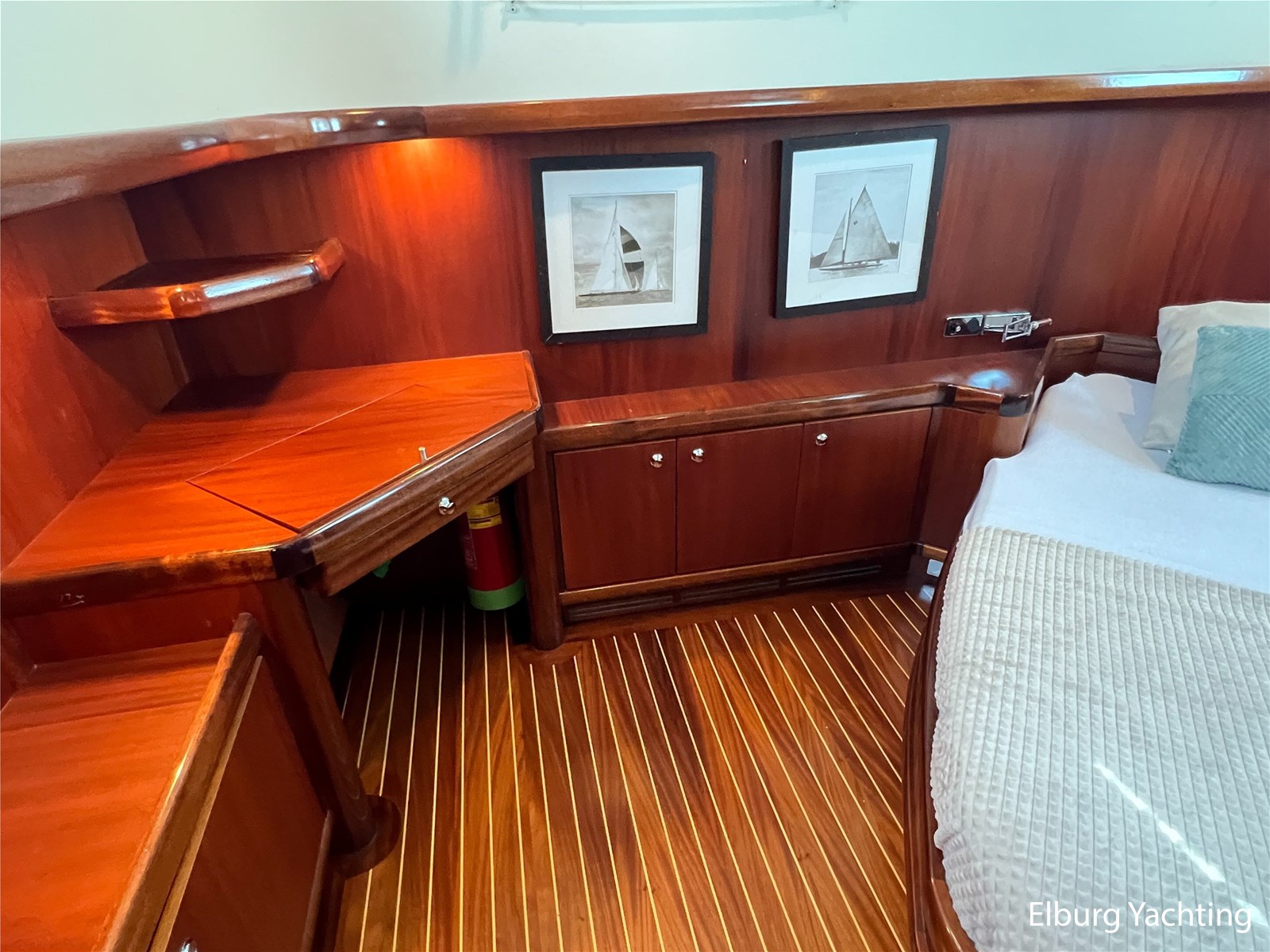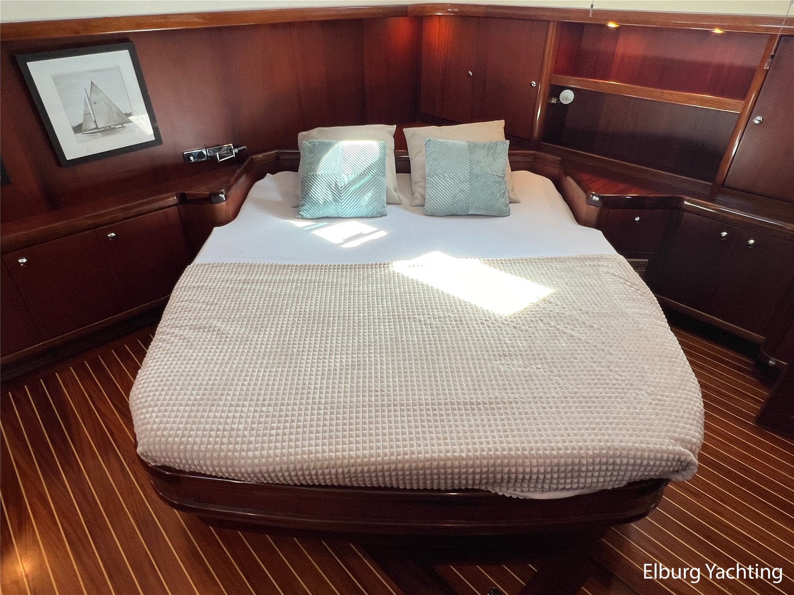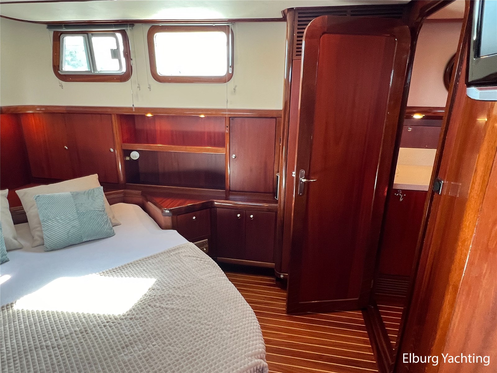 Massief scheeps teakhouten betimmering met een teak vloer door het gehele jacht