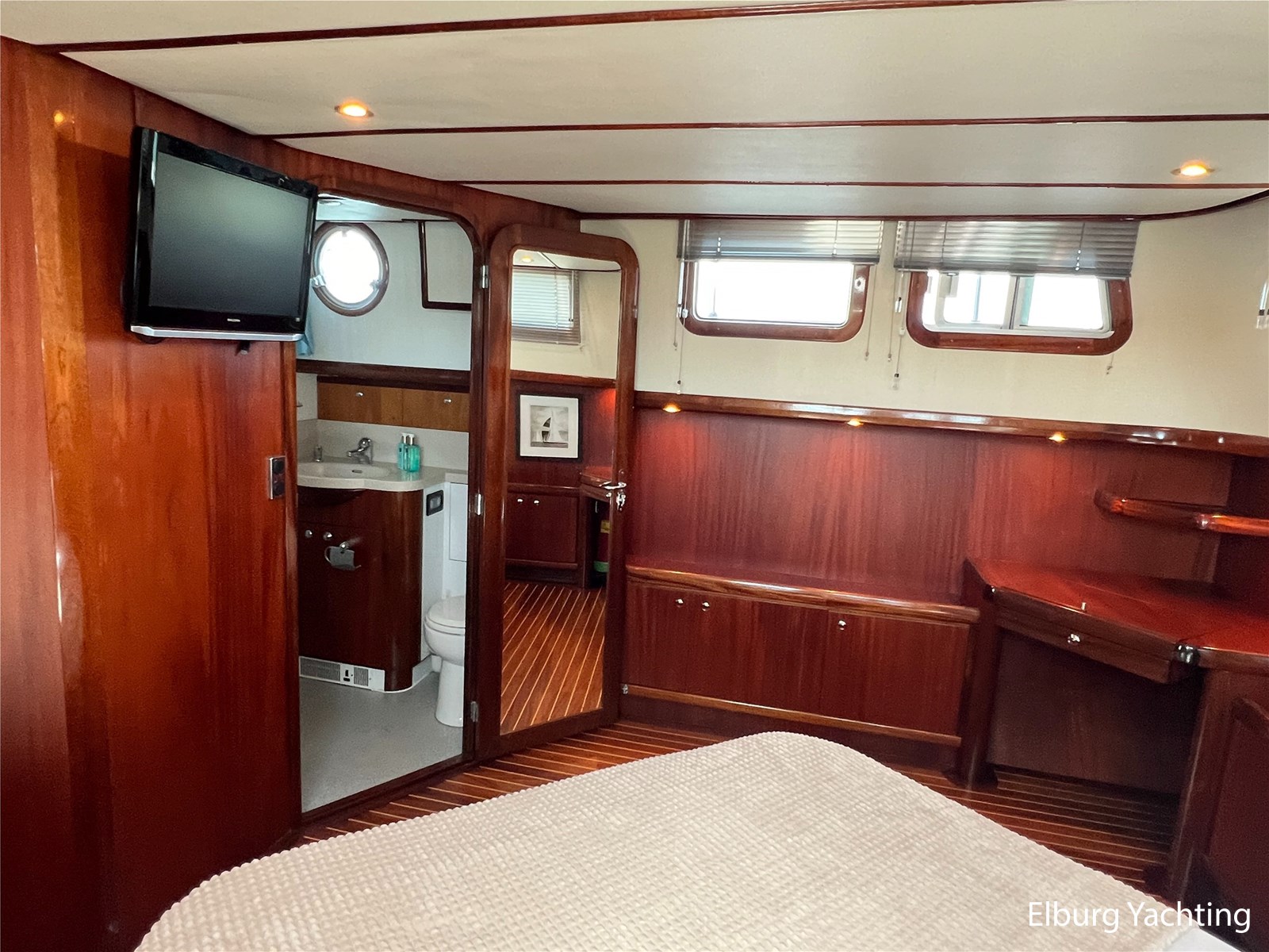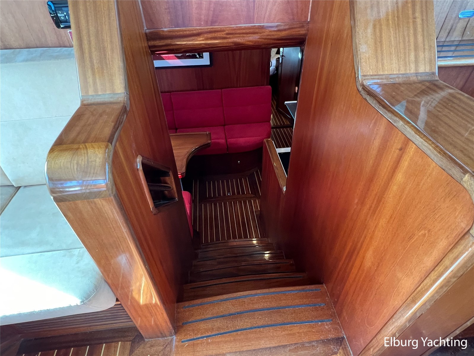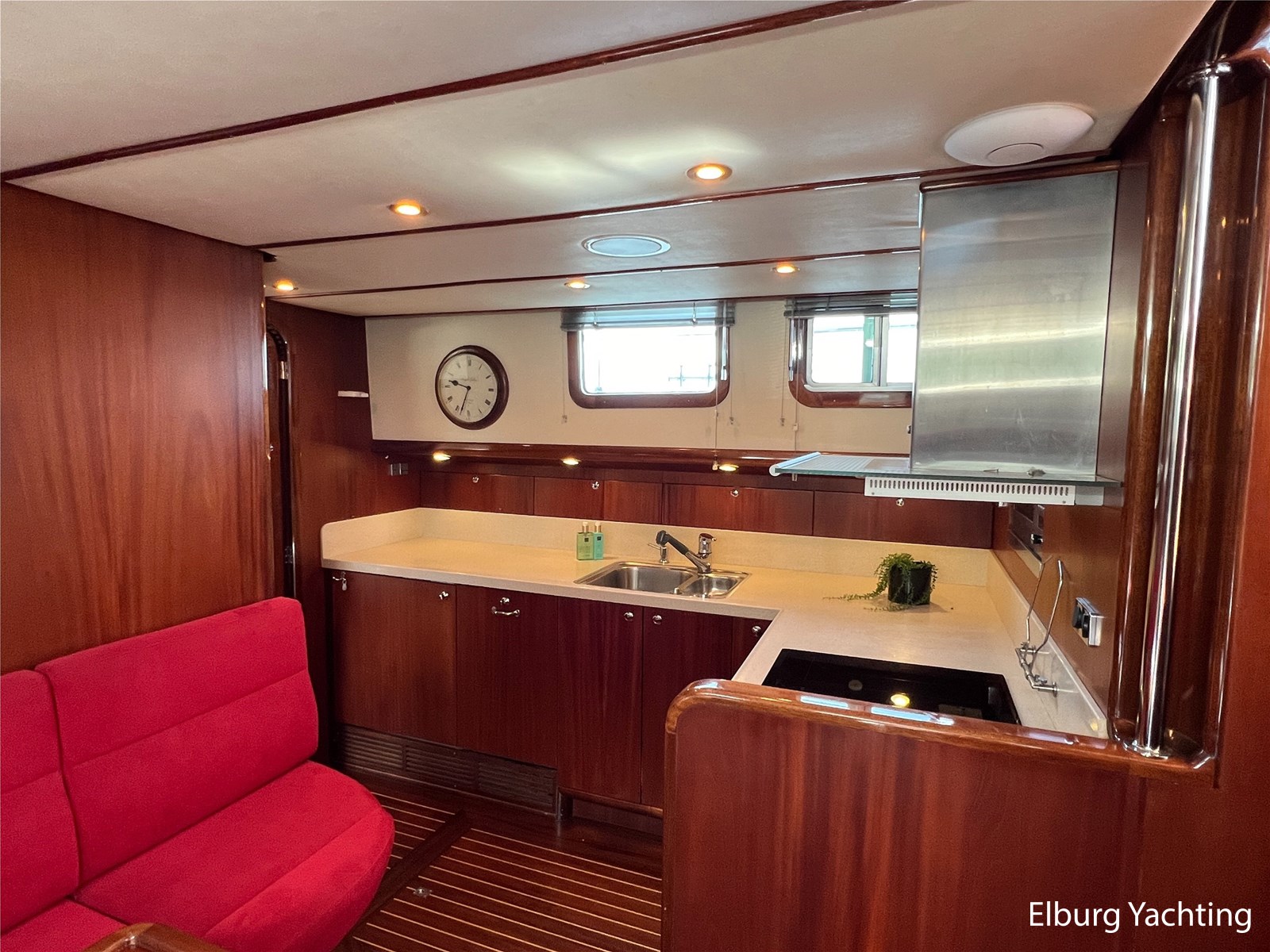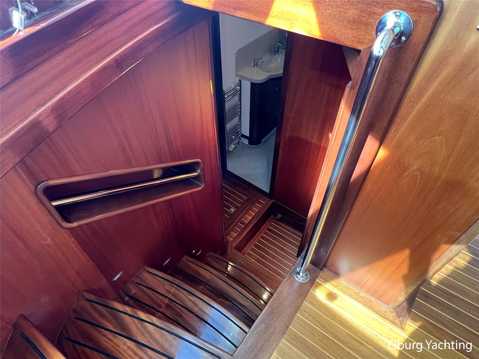 Massief scheeps teakhouten betimmering met een teak vloer door het gehele jacht
