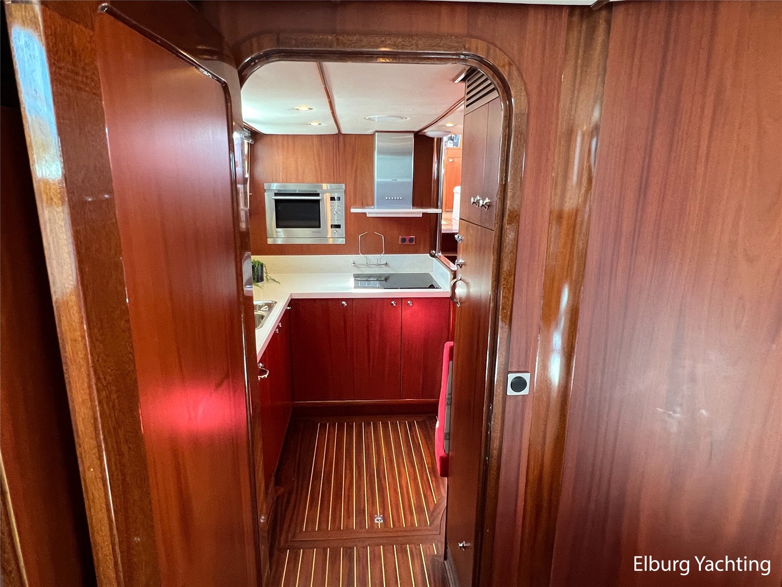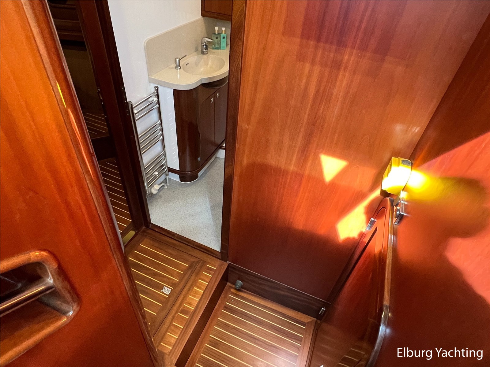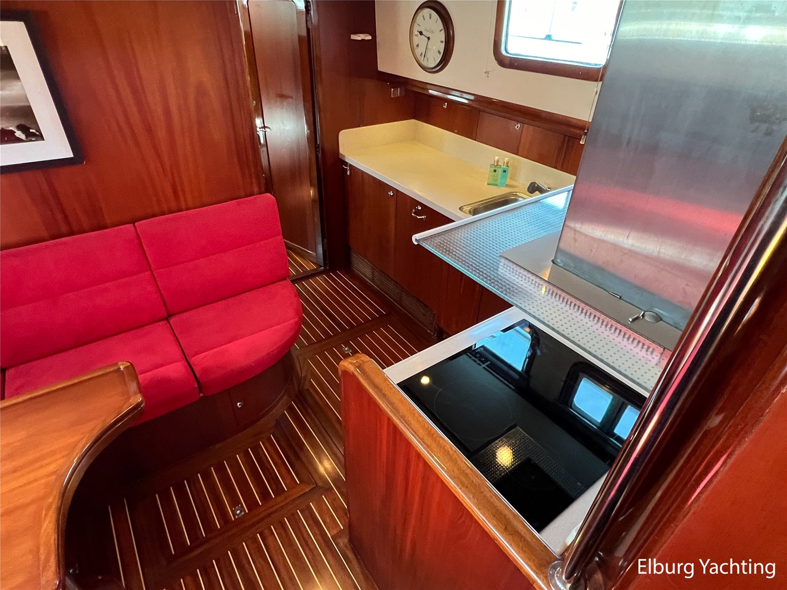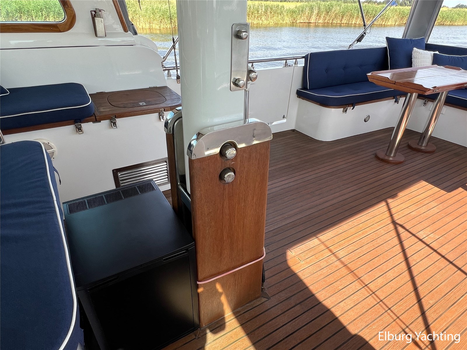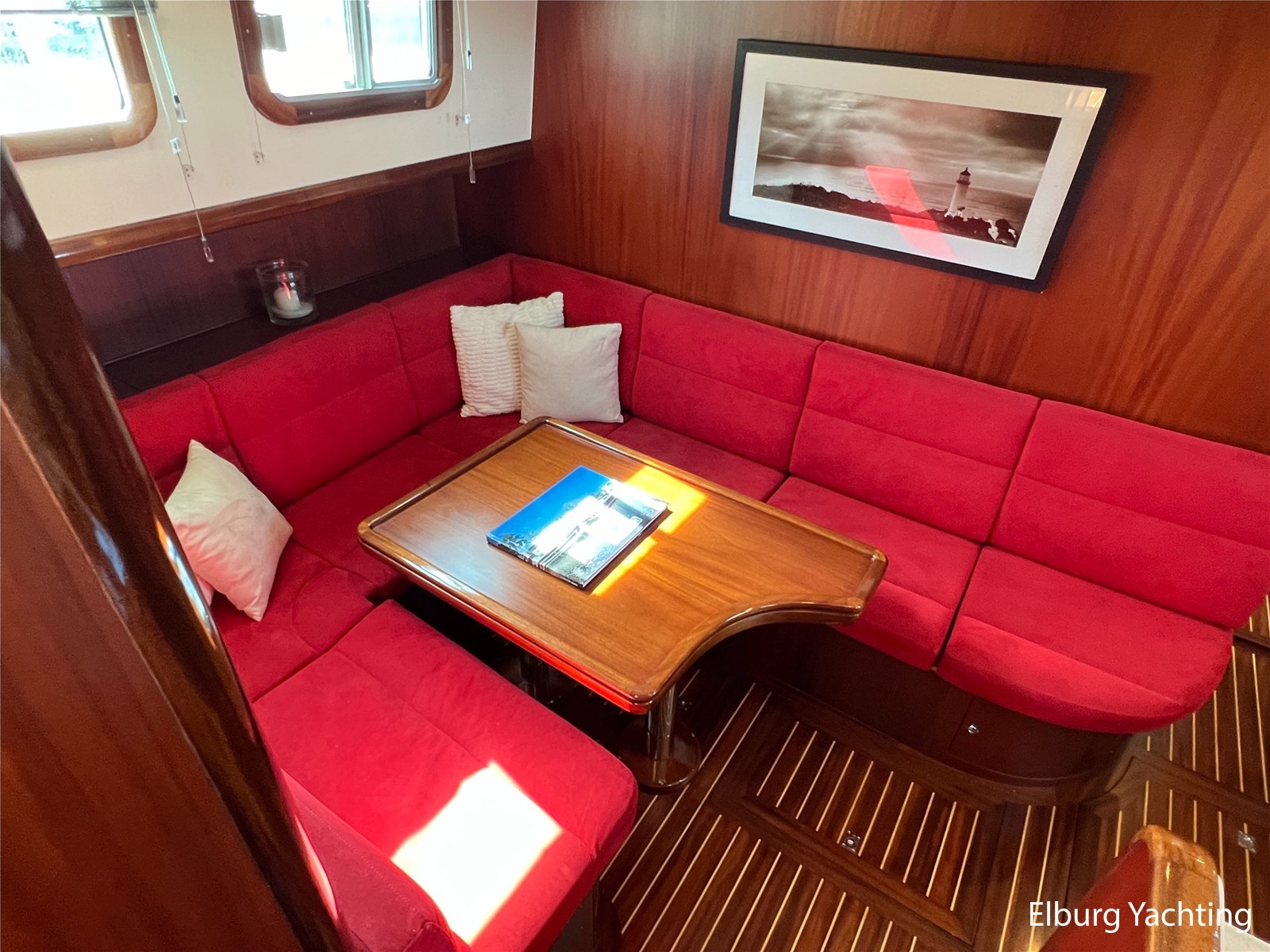 Massief scheeps teakhouten betimmering met een teak vloer door het gehele jacht