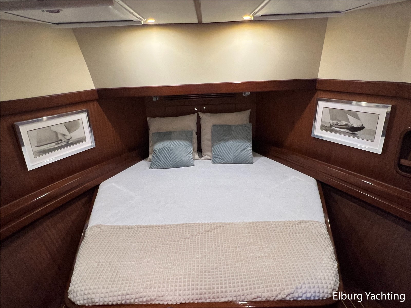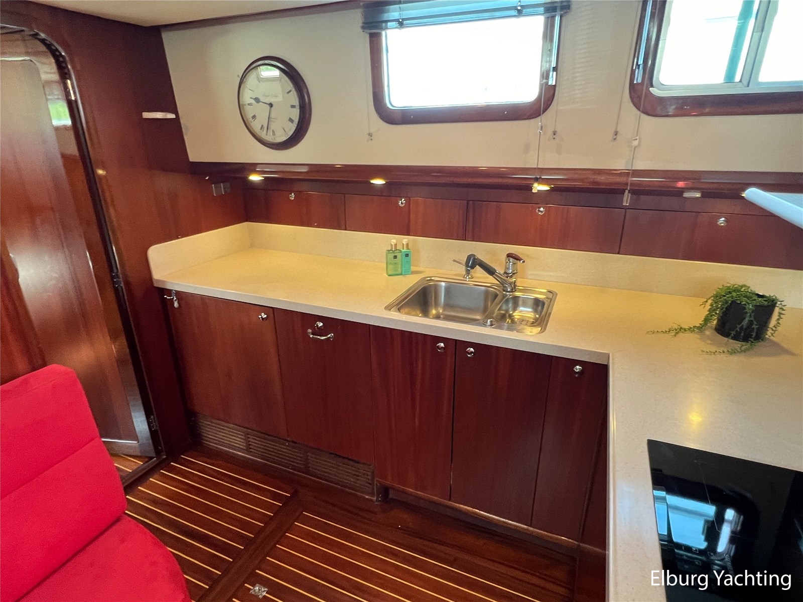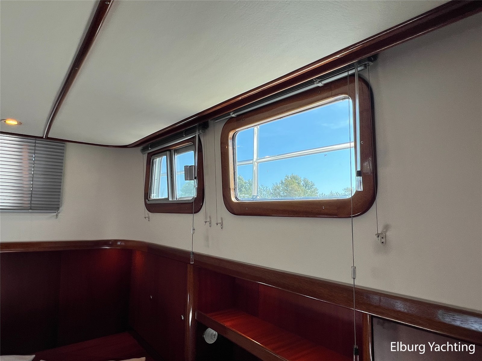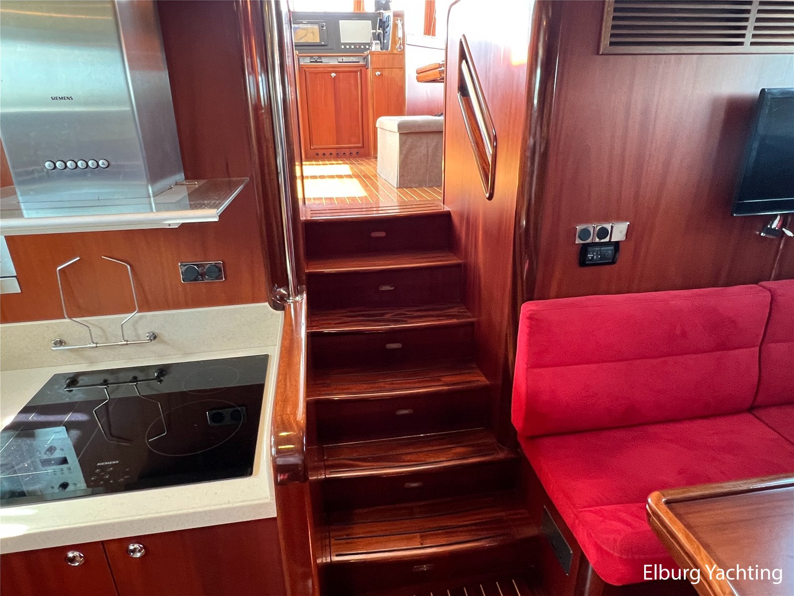Massief scheeps teakhouten betimmering met een teak vloer door het gehele jacht