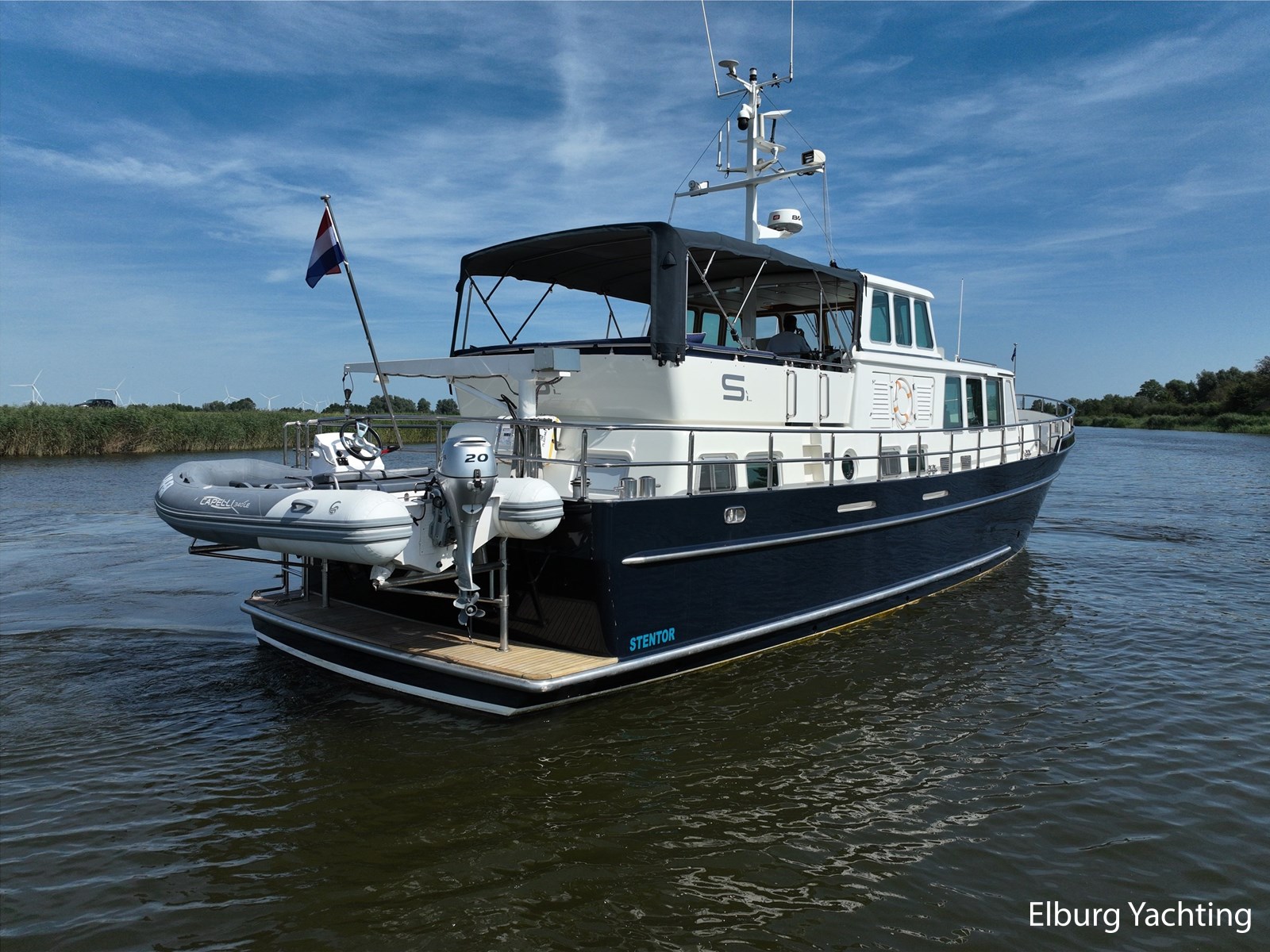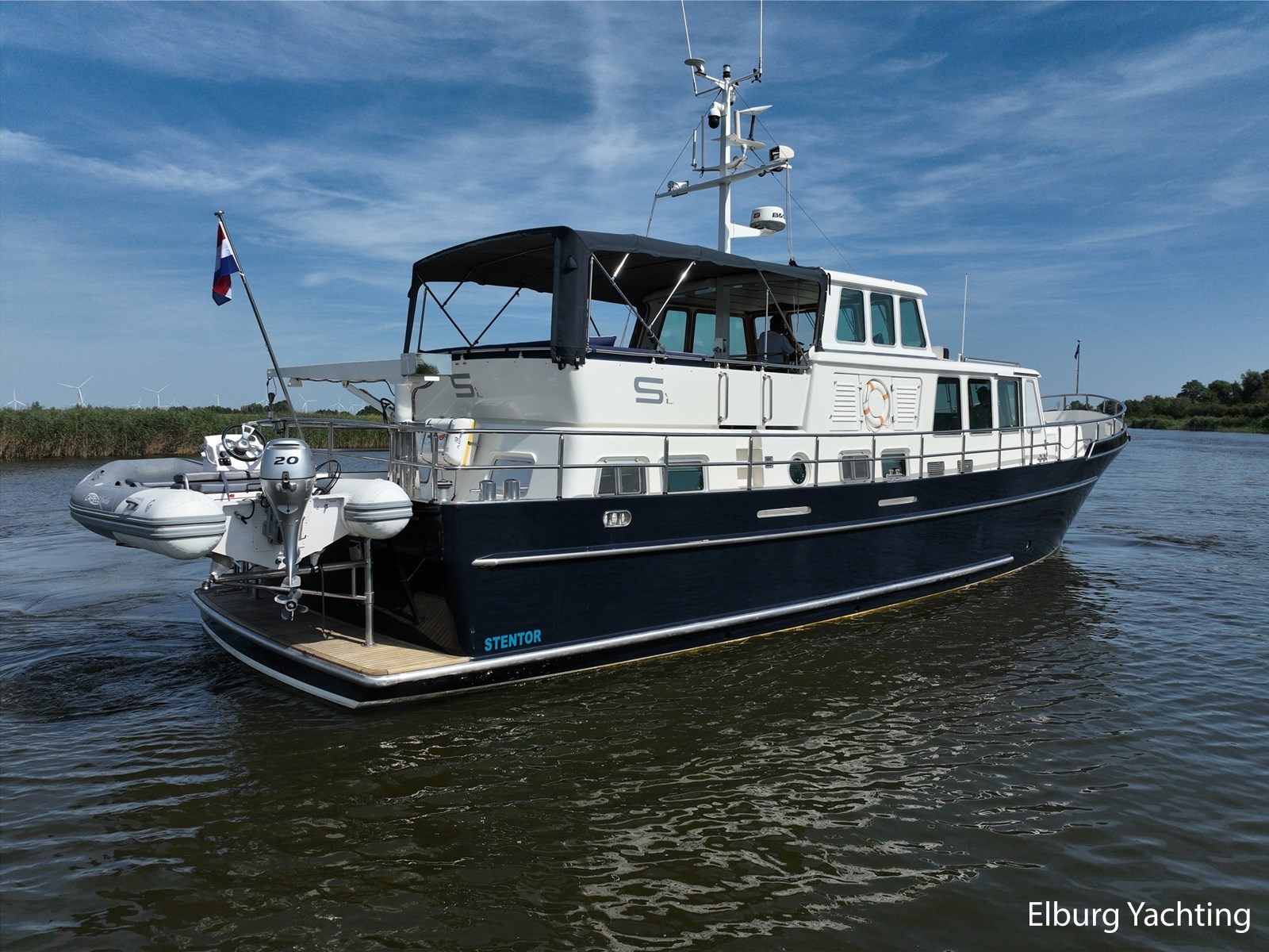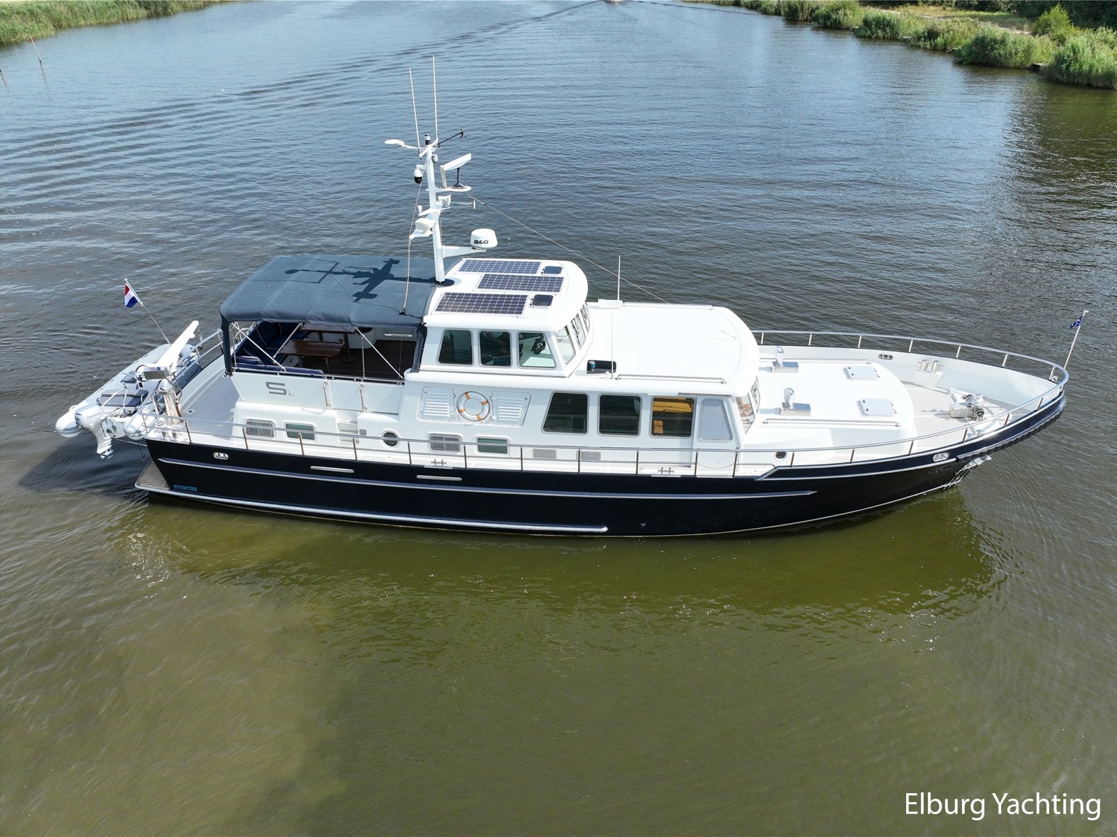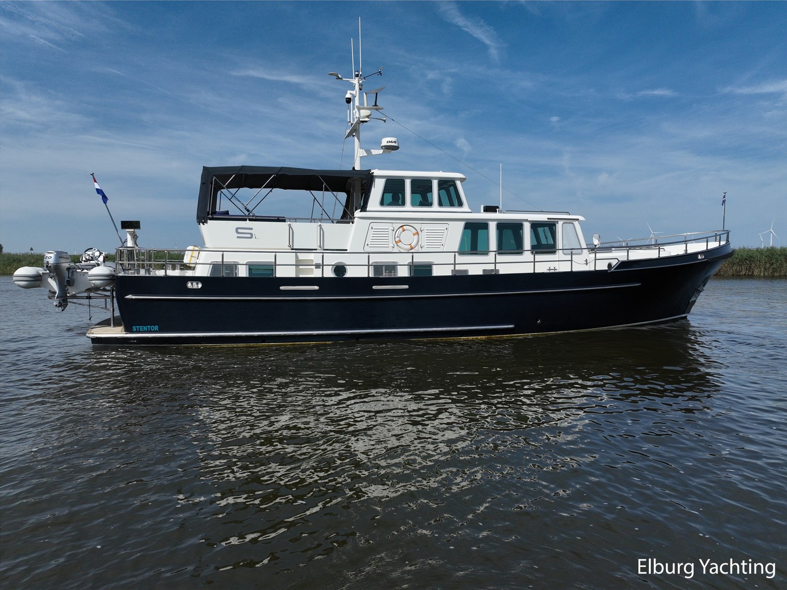 Deze zeewaardige en complete Stentor 1800 is reeds voorzien van een nieuw verfsysteem (opbouw en romp). Ze is getekend door Vripack en in 2002 afgebouwd door de kwalitatief ijzersterke jachtwerf Stentor. Het jacht is degelijk gebouwd met het oog op zeewaardigheid (CE-A). In de afgelopen jaren heeft de huidige eigenaar fors geïnfesteerd in dit jacht. Onder andere is het jacht voorzien van een Raymarine Autopilot systeem op beide stuurstanden, verder is het jacht reeds voorzien van een zonnepanelensysteem met Victron Cerbo besturing welke op afstand afleesbaar is en is er een Victron Quattro omvormer / acculader geplaatst. Het jacht is geschikt voor zeegaande reizen, de hydraulische stabilisatoren in combinatie met het rondspant casco draagt bij aan het comfort op zee. Er is een back-upsysteem voor de hydrauliek geïnstalleerd. De lay-out van dit jacht is goed doordacht en kenmerkt zich met name door het fraaie, ruim opgezette achterdek dat is voorzien van een ruime U-vormige bank, met dubbele tafels en een degelijke achtertent van 2020. De tweede stuurstand bevindt zich in het vaste stuurhuis en is toegankelijk via de schuifdeuren in beide ruime gangboorden. Het vaste stuurhuis dient tevens als Salon en is uitgerust met een comfortabele L-bank en beschikt over veel lichtinval middels de grote raampartijen. De kombuis is beneden het achterdek en is voorzien van een ruim opgezette keuken in L-vorm en een comfortabele dinette. De masterbedroom bevindt zich achter de kombuis en is voorzien van een tweepersoons vrijstaand bed welke diagonaal in de kamer gesitueerd is. Veder beschikt de masterbedroom over veel kastruimte en een ensuite badkamer met wastafel, elektrisch toilet en douchecabine. Voor is de gastenhut gesitueerd met een tweepersoons vrijstaand bed. Vanuit de gang is de tweede badkamer te bereiken alsmede de overzichtelijke machinekamer. De romp en opbouw zijn in 2024 opnieuw gespoten. Voor vragen en/of het maken van een afspraak bent u van harte welkom bij Elburg Yachting.