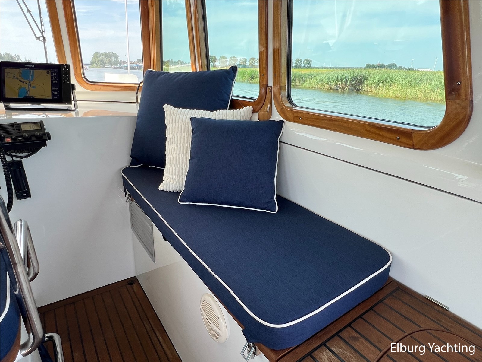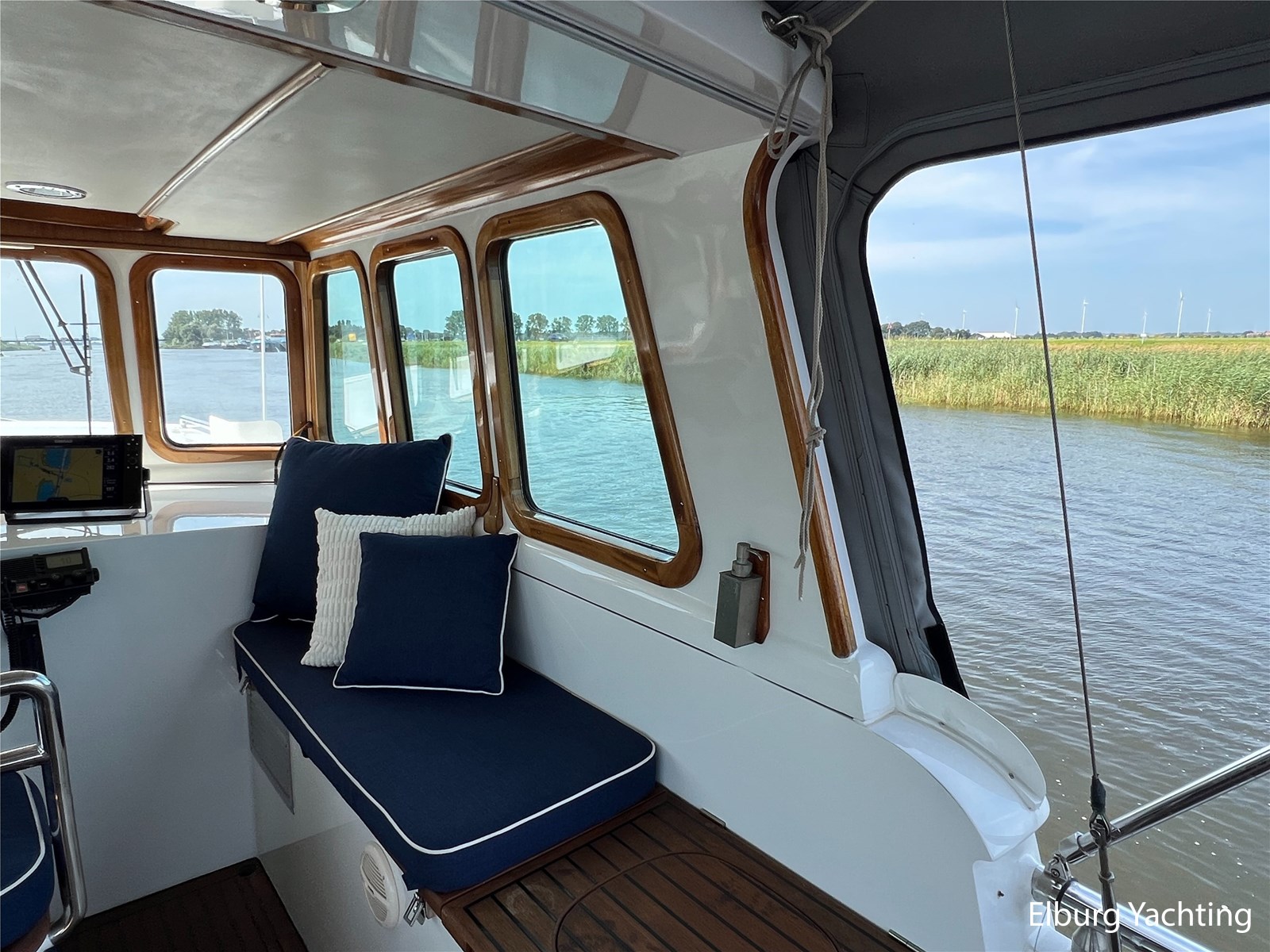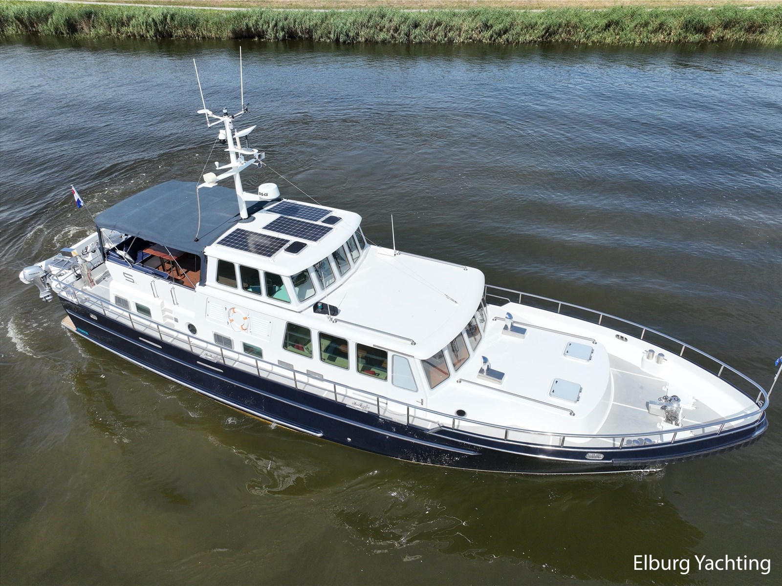Deze zeewaardige en complete Stentor 1800 is reeds voorzien van een nieuw verfsysteem (opbouw en romp). Ze is getekend door Vripack en in 2002 afgebouwd door de kwalitatief ijzersterke jachtwerf Stentor. Het jacht is degelijk gebouwd met het oog op zeewaardigheid (CE-A). In de afgelopen jaren heeft de huidige eigenaar fors geïnfesteerd in dit jacht. Onder andere is het jacht voorzien van een Raymarine Autopilot systeem op beide stuurstanden, verder is het jacht reeds voorzien van een zonnepanelensysteem met Victron Cerbo besturing welke op afstand afleesbaar is en is er een Victron Quattro omvormer / acculader geplaatst. Het jacht is geschikt voor zeegaande reizen, de hydraulische stabilisatoren in combinatie met het rondspant casco draagt bij aan het comfort op zee. Er is een back-upsysteem voor de hydrauliek geïnstalleerd. De lay-out van dit jacht is goed doordacht en kenmerkt zich met name door het fraaie, ruim opgezette achterdek dat is voorzien van een ruime U-vormige bank, met dubbele tafels en een degelijke achtertent van 2020. De tweede stuurstand bevindt zich in het vaste stuurhuis en is toegankelijk via de schuifdeuren in beide ruime gangboorden. Het vaste stuurhuis dient tevens als Salon en is uitgerust met een comfortabele L-bank en beschikt over veel lichtinval middels de grote raampartijen. De kombuis is beneden het achterdek en is voorzien van een ruim opgezette keuken in L-vorm en een comfortabele dinette. De masterbedroom bevindt zich achter de kombuis en is voorzien van een tweepersoons vrijstaand bed welke diagonaal in de kamer gesitueerd is. Veder beschikt de masterbedroom over veel kastruimte en een ensuite badkamer met wastafel, elektrisch toilet en douchecabine. Voor is de gastenhut gesitueerd met een tweepersoons vrijstaand bed. Vanuit de gang is de tweede badkamer te bereiken alsmede de overzichtelijke machinekamer. De romp en opbouw zijn in 2024 opnieuw gespoten. Voor vragen en/of het maken van een afspraak bent u van harte welkom bij Elburg Yachting.