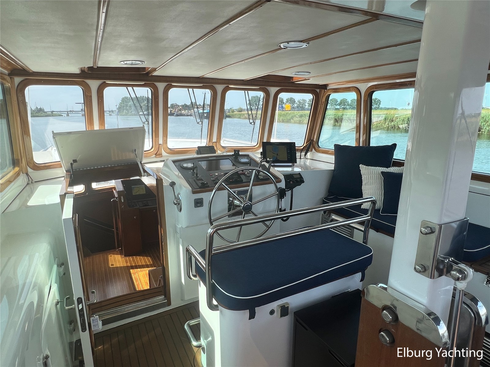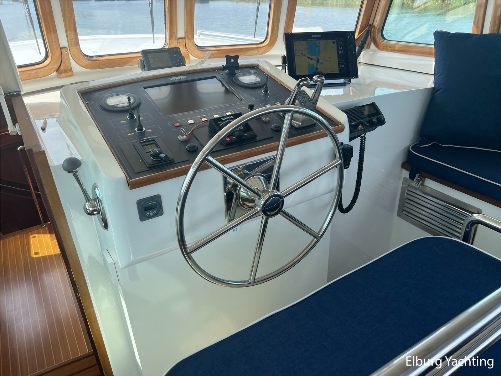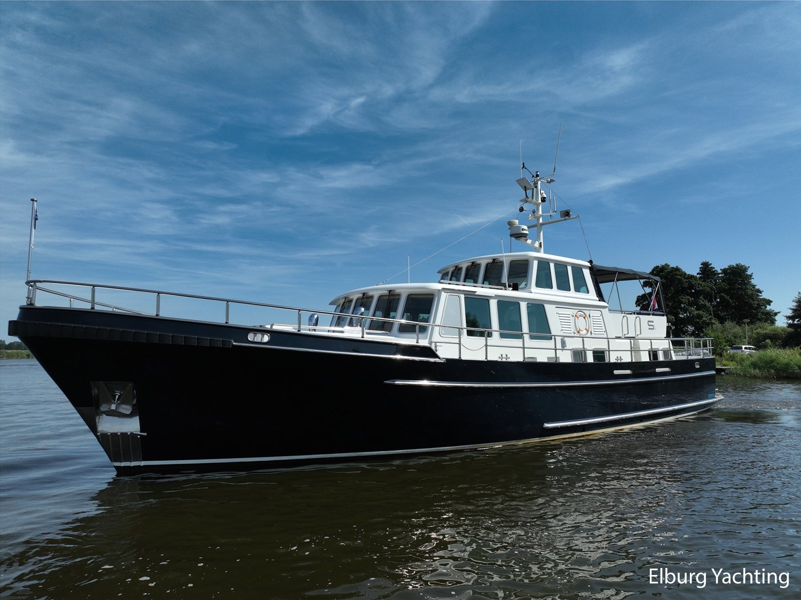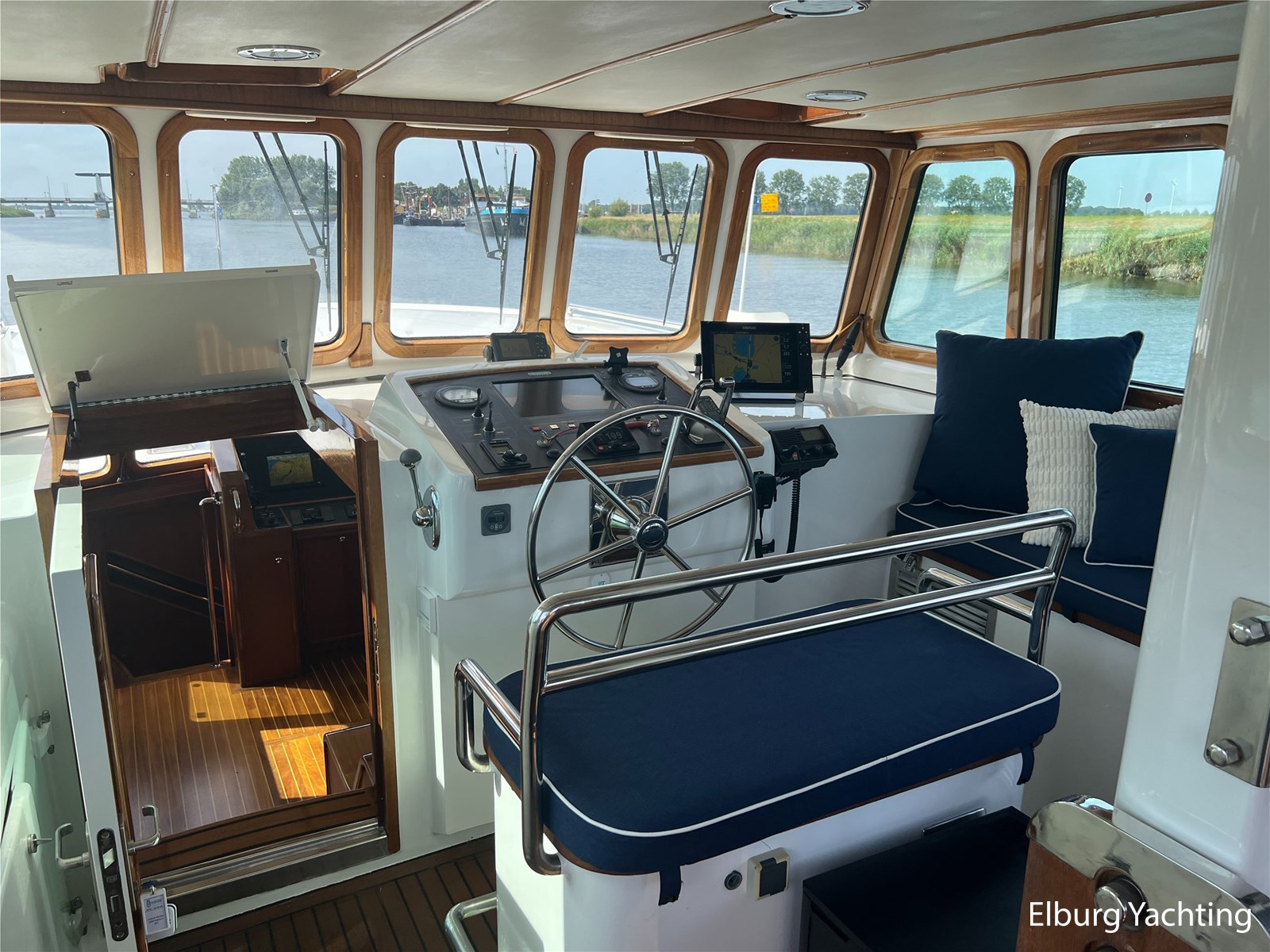 Deze zeewaardige en complete Stentor 1800 is reeds voorzien van een nieuw verfsysteem (opbouw en romp). Ze is getekend door Vripack en in 2002 afgebouwd door de kwalitatief ijzersterke jachtwerf Stentor. Het jacht is degelijk gebouwd met het oog op zeewaardigheid (CE-A). In de afgelopen jaren heeft de huidige eigenaar fors geïnfesteerd in dit jacht. Onder andere is het jacht voorzien van een Raymarine Autopilot systeem op beide stuurstanden, verder is het jacht reeds voorzien van een zonnepanelensysteem met Victron Cerbo besturing welke op afstand afleesbaar is en is er een Victron Quattro omvormer / acculader geplaatst. Het jacht is geschikt voor zeegaande reizen, de hydraulische stabilisatoren in combinatie met het rondspant casco draagt bij aan het comfort op zee. Er is een back-upsysteem voor de hydrauliek geïnstalleerd. De lay-out van dit jacht is goed doordacht en kenmerkt zich met name door het fraaie, ruim opgezette achterdek dat is voorzien van een ruime U-vormige bank, met dubbele tafels en een degelijke achtertent van 2020. De tweede stuurstand bevindt zich in het vaste stuurhuis en is toegankelijk via de schuifdeuren in beide ruime gangboorden. Het vaste stuurhuis dient tevens als Salon en is uitgerust met een comfortabele L-bank en beschikt over veel lichtinval middels de grote raampartijen. De kombuis is beneden het achterdek en is voorzien van een ruim opgezette keuken in L-vorm en een comfortabele dinette. De masterbedroom bevindt zich achter de kombuis en is voorzien van een tweepersoons vrijstaand bed welke diagonaal in de kamer gesitueerd is. Veder beschikt de masterbedroom over veel kastruimte en een ensuite badkamer met wastafel, elektrisch toilet en douchecabine. Voor is de gastenhut gesitueerd met een tweepersoons vrijstaand bed. Vanuit de gang is de tweede badkamer te bereiken alsmede de overzichtelijke machinekamer. De romp en opbouw zijn in 2024 opnieuw gespoten. Voor vragen en/of het maken van een afspraak bent u van harte welkom bij Elburg Yachting.