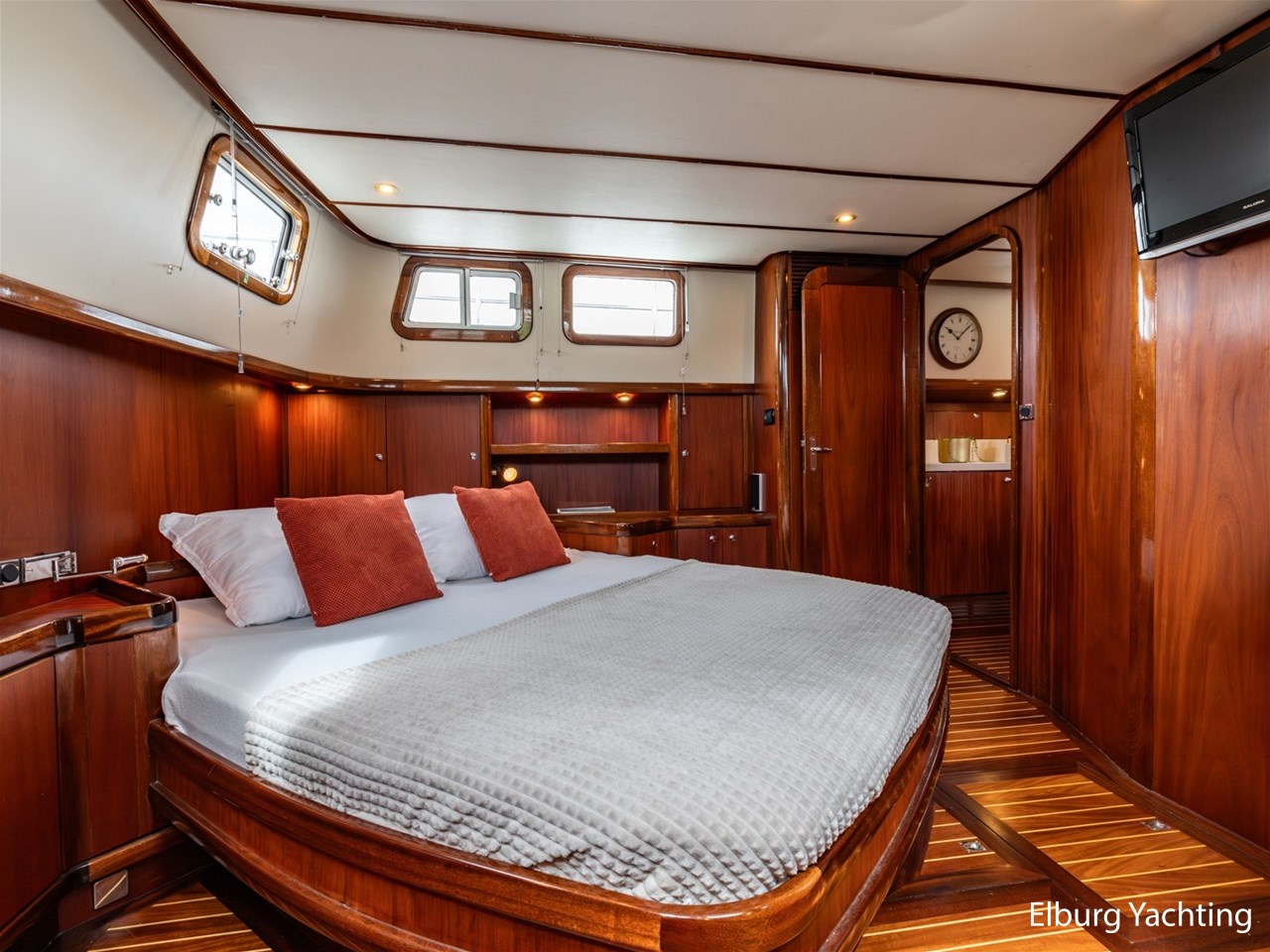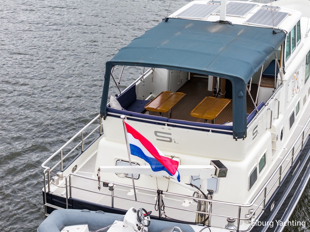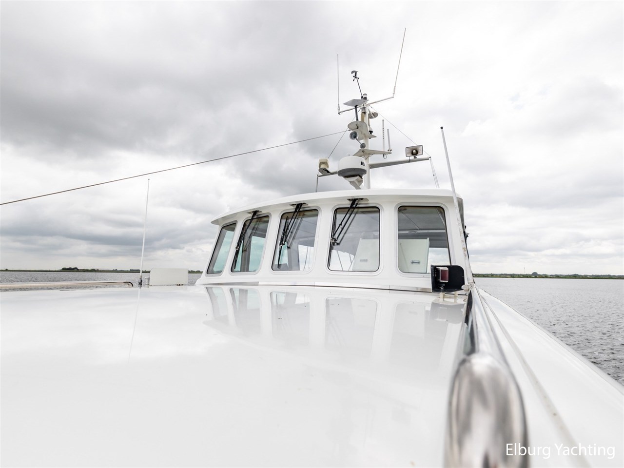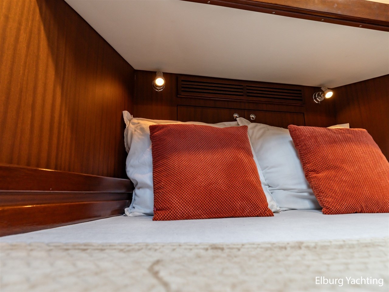 Deze zeewaardige en complete Stentor 1800 is reeds voorzien van een nieuw verfsysteem (opbouw en romp). Ze is getekend door Vripack en in 2002 afgebouwd door de kwalitatief ijzersterke jachtwerf Stentor. Het jacht is degelijk gebouwd met het oog op zeewaardigheid (CE-A). In de afgelopen jaren heeft de huidige eigenaar fors geïnfesteerd in dit jacht. Onder andere is het jacht voorzien van een Raymarine Autopilot systeem op beide stuurstanden, verder is het jacht reeds voorzien van een zonnepanelensysteem met Victron Cerbo besturing welke op afstand afleesbaar is en is er een Victron Quattro omvormer / acculader geplaatst. Het jacht is geschikt voor zeegaande reizen, de hydraulische stabilisatoren in combinatie met het rondspant casco draagt bij aan het comfort op zee. Er is een back-upsysteem voor de hydrauliek geïnstalleerd. De lay-out van dit jacht is goed doordacht en kenmerkt zich met name door het fraaie, ruim opgezette achterdek dat is voorzien van een ruime U-vormige bank, met dubbele tafels en een degelijke achtertent van 2020. De tweede stuurstand bevindt zich in het vaste stuurhuis en is toegankelijk via de schuifdeuren in beide ruime gangboorden. Het vaste stuurhuis dient tevens als Salon en is uitgerust met een comfortabele L-bank en beschikt over veel lichtinval middels de grote raampartijen. De kombuis is beneden het achterdek en is voorzien van een ruim opgezette keuken in L-vorm en een comfortabele dinette. De masterbedroom bevindt zich achter de kombuis en is voorzien van een tweepersoons vrijstaand bed welke diagonaal in de kamer gesitueerd is. Veder beschikt de masterbedroom over veel kastruimte en een ensuite badkamer met wastafel, elektrisch toilet en douchecabine. Voor is de gastenhut gesitueerd met een tweepersoons vrijstaand bed. Vanuit de gang is de tweede badkamer te bereiken alsmede de overzichtelijke machinekamer. De romp en opbouw zijn in 2024 opnieuw gespoten.
