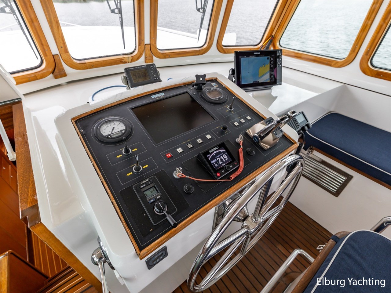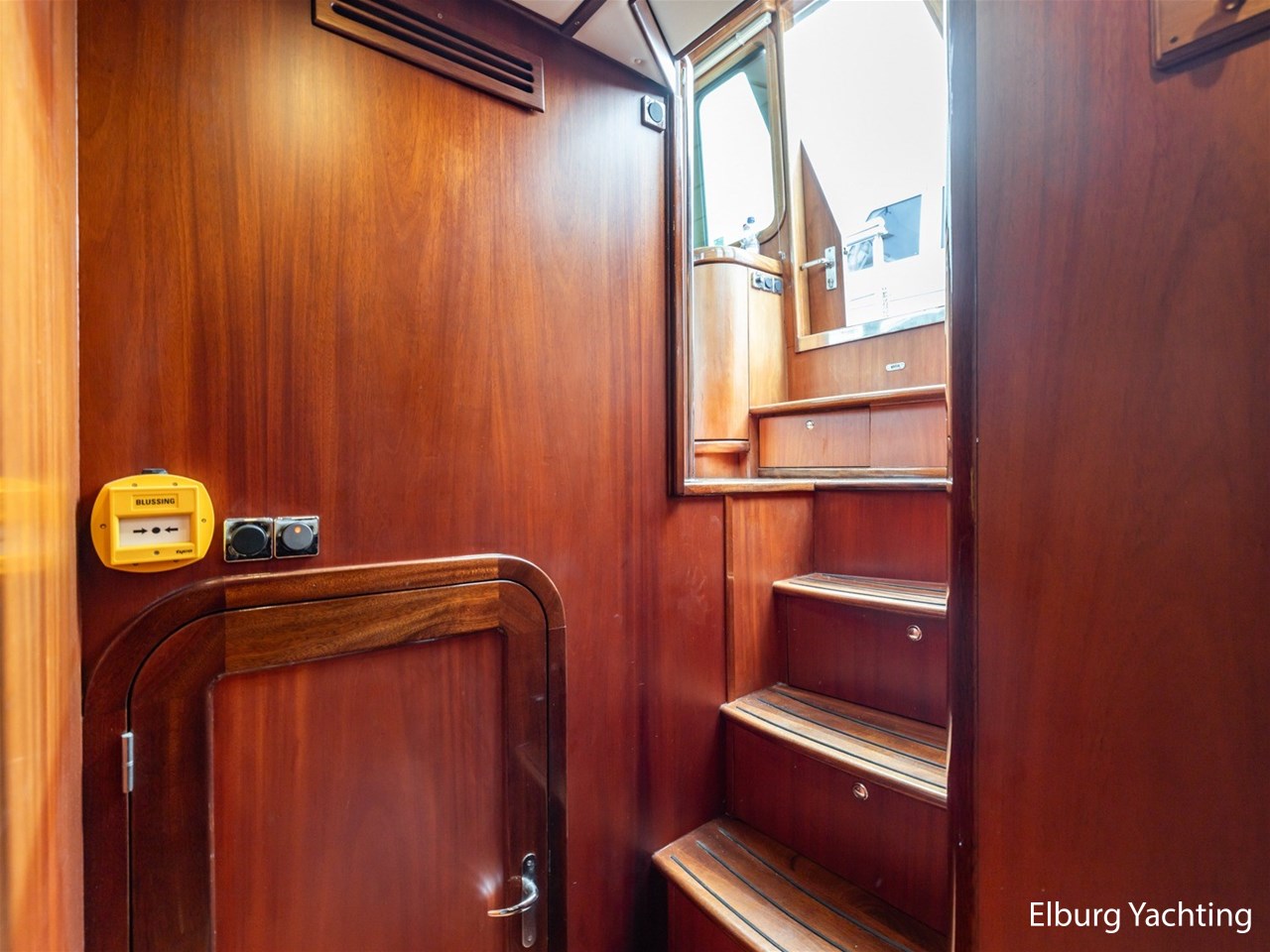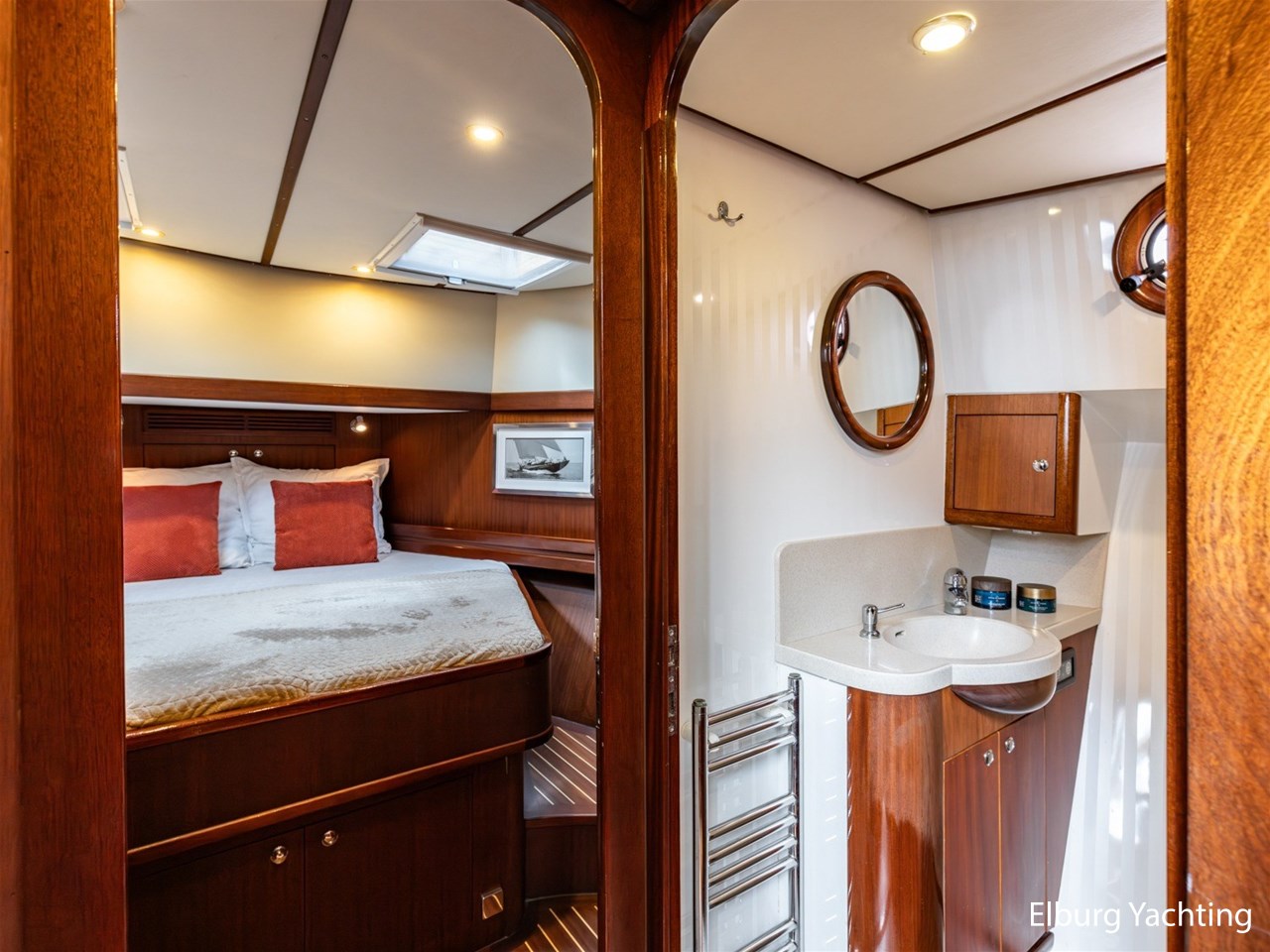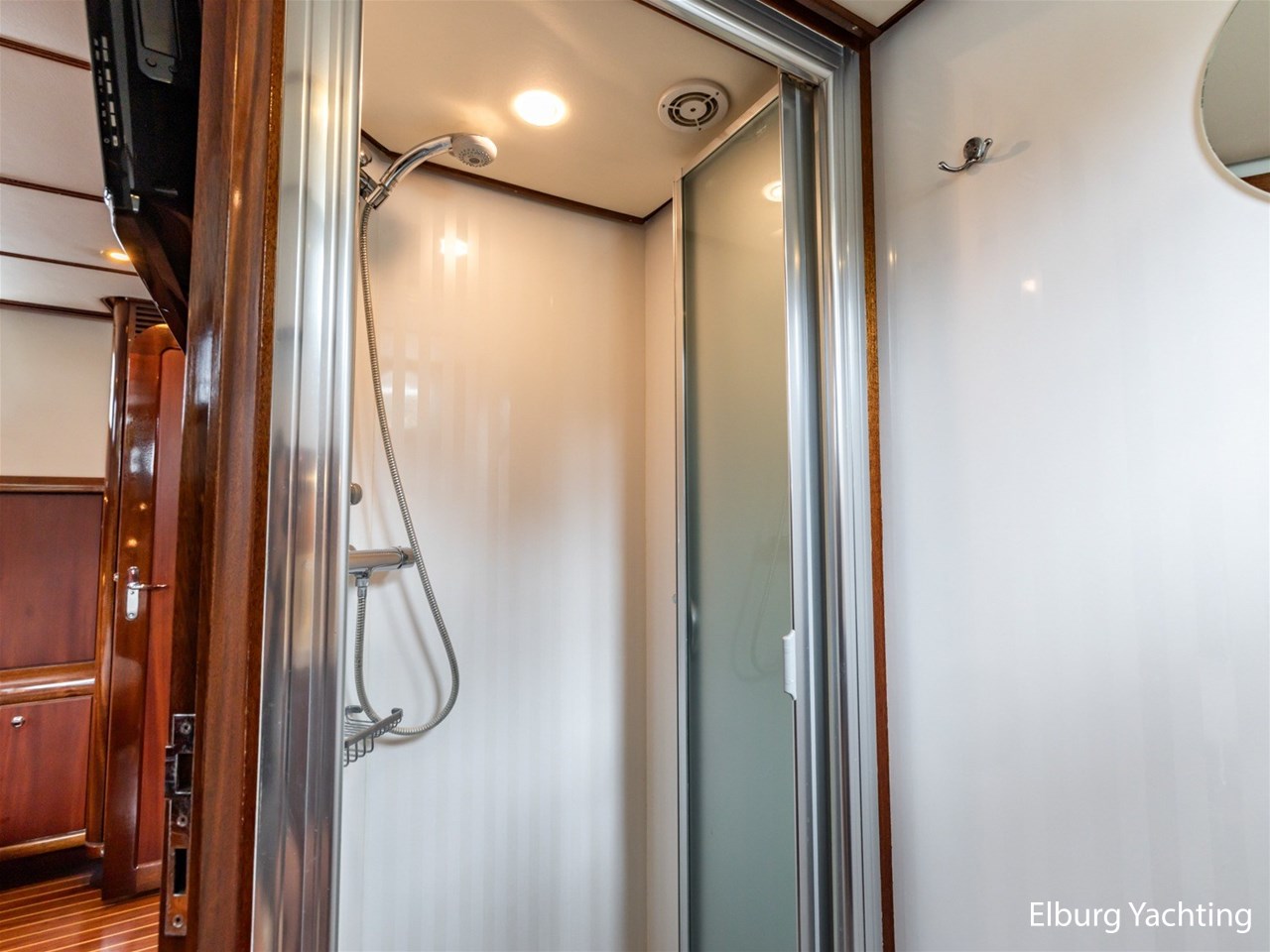 Deze zeewaardige en complete Stentor 1800 is reeds voorzien van een nieuw verfsysteem (opbouw en romp). Ze is getekend door Vripack en in 2002 afgebouwd door de kwalitatief ijzersterke jachtwerf Stentor. Het jacht is degelijk gebouwd met het oog op zeewaardigheid (CE-A). In de afgelopen jaren heeft de huidige eigenaar fors geïnfesteerd in dit jacht. Onder andere is het jacht voorzien van een Raymarine Autopilot systeem op beide stuurstanden, verder is het jacht reeds voorzien van een zonnepanelensysteem met Victron Cerbo besturing welke op afstand afleesbaar is en is er een Victron Quattro omvormer / acculader geplaatst. Het jacht is geschikt voor zeegaande reizen, de hydraulische stabilisatoren in combinatie met het rondspant casco draagt bij aan het comfort op zee. Er is een back-upsysteem voor de hydrauliek geïnstalleerd. De lay-out van dit jacht is goed doordacht en kenmerkt zich met name door het fraaie, ruim opgezette achterdek dat is voorzien van een ruime U-vormige bank, met dubbele tafels en een degelijke achtertent van 2020. De tweede stuurstand bevindt zich in het vaste stuurhuis en is toegankelijk via de schuifdeuren in beide ruime gangboorden. Het vaste stuurhuis dient tevens als Salon en is uitgerust met een comfortabele L-bank en beschikt over veel lichtinval middels de grote raampartijen. De kombuis is beneden het achterdek en is voorzien van een ruim opgezette keuken in L-vorm en een comfortabele dinette. De masterbedroom bevindt zich achter de kombuis en is voorzien van een tweepersoons vrijstaand bed welke diagonaal in de kamer gesitueerd is. Veder beschikt de masterbedroom over veel kastruimte en een ensuite badkamer met wastafel, elektrisch toilet en douchecabine. Voor is de gastenhut gesitueerd met een tweepersoons vrijstaand bed. Vanuit de gang is de tweede badkamer te bereiken alsmede de overzichtelijke machinekamer. De romp en opbouw zijn in 2024 opnieuw gespoten.