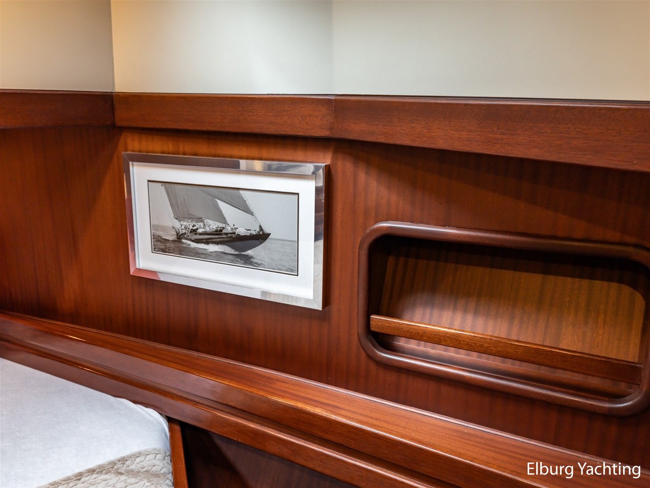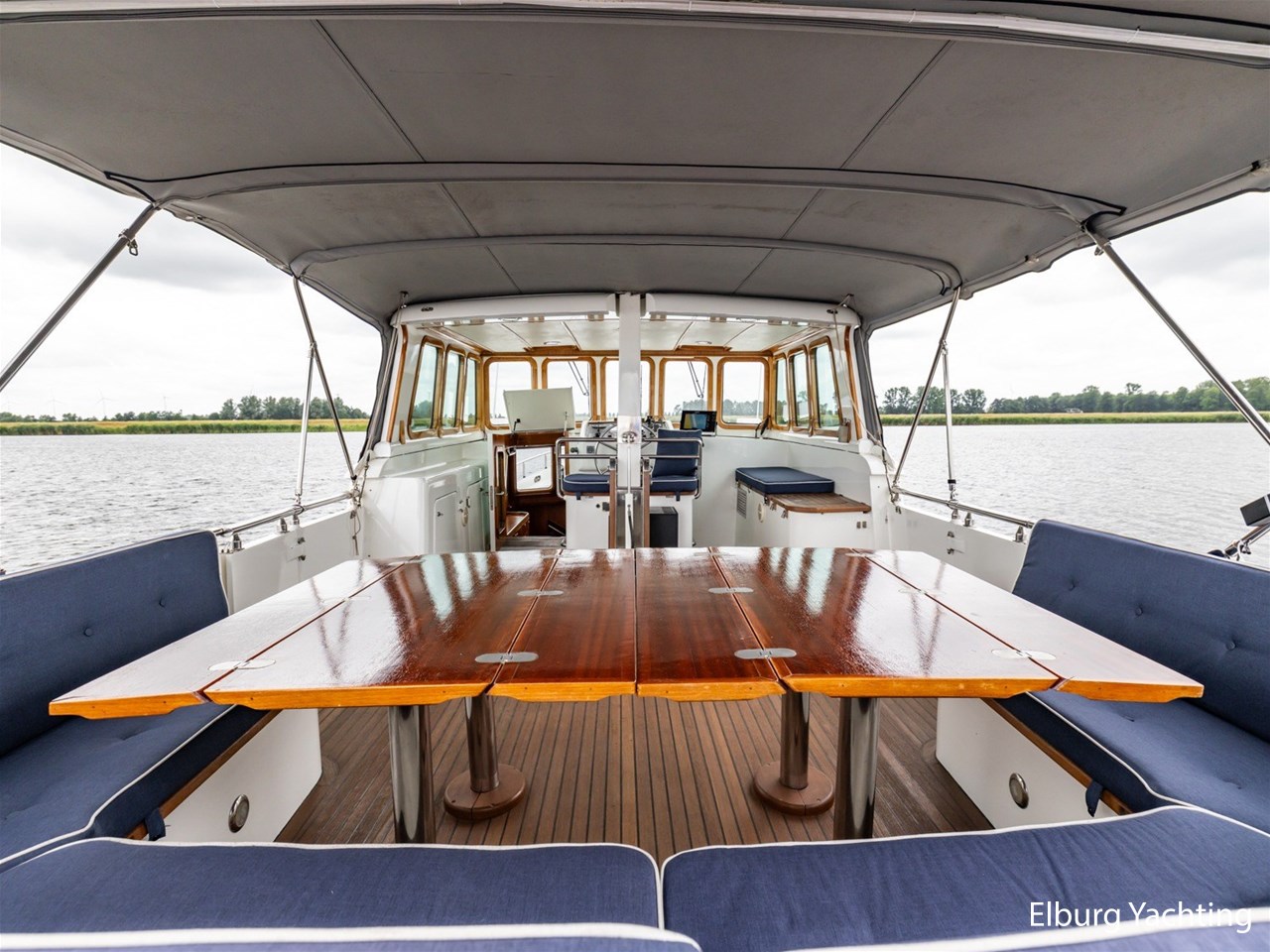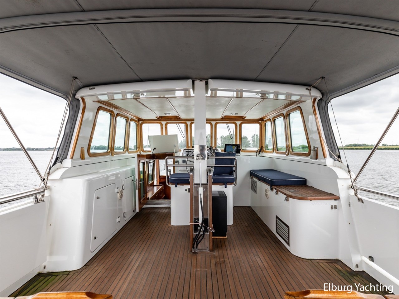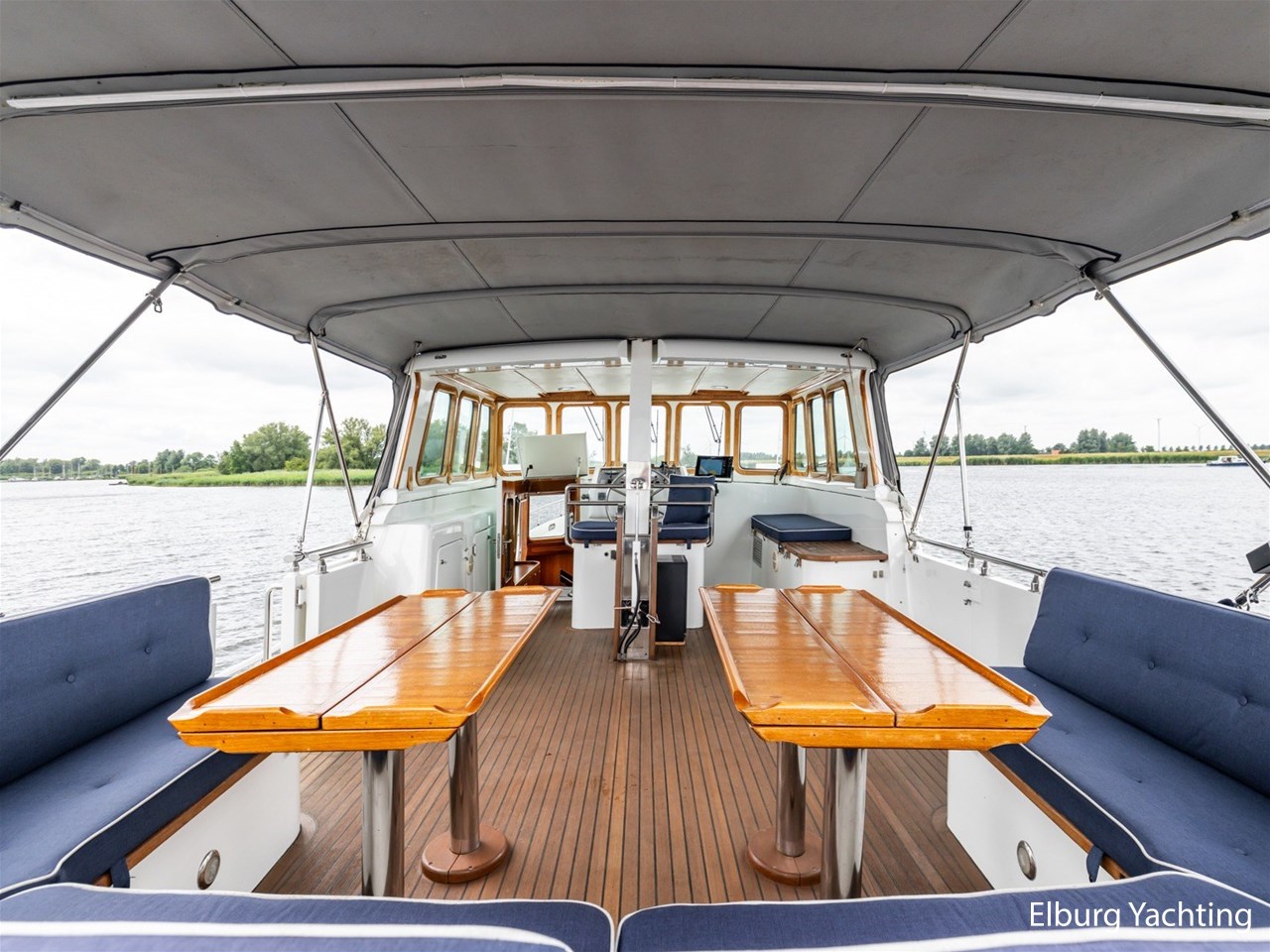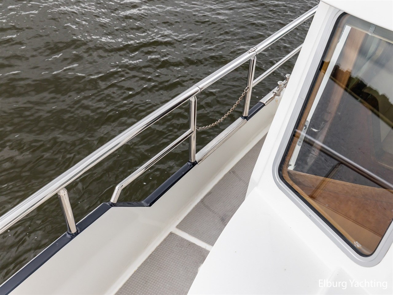 Deze zeewaardige en complete Stentor 1800 is reeds voorzien van een nieuw verfsysteem (opbouw en romp). Ze is getekend door Vripack en in 2002 afgebouwd door de kwalitatief ijzersterke jachtwerf Stentor. Het jacht is degelijk gebouwd met het oog op zeewaardigheid (CE-A). In de afgelopen jaren heeft de huidige eigenaar fors geïnfesteerd in dit jacht. Onder andere is het jacht voorzien van een Raymarine Autopilot systeem op beide stuurstanden, verder is het jacht reeds voorzien van een zonnepanelensysteem met Victron Cerbo besturing welke op afstand afleesbaar is en is er een Victron Quattro omvormer / acculader geplaatst. Het jacht is geschikt voor zeegaande reizen, de hydraulische stabilisatoren in combinatie met het rondspant casco draagt bij aan het comfort op zee. Er is een back-upsysteem voor de hydrauliek geïnstalleerd. De lay-out van dit jacht is goed doordacht en kenmerkt zich met name door het fraaie, ruim opgezette achterdek dat is voorzien van een ruime U-vormige bank, met dubbele tafels en een degelijke achtertent van 2020. De tweede stuurstand bevindt zich in het vaste stuurhuis en is toegankelijk via de schuifdeuren in beide ruime gangboorden. Het vaste stuurhuis dient tevens als Salon en is uitgerust met een comfortabele L-bank en beschikt over veel lichtinval middels de grote raampartijen. De kombuis is beneden het achterdek en is voorzien van een ruim opgezette keuken in L-vorm en een comfortabele dinette. De masterbedroom bevindt zich achter de kombuis en is voorzien van een tweepersoons vrijstaand bed welke diagonaal in de kamer gesitueerd is. Veder beschikt de masterbedroom over veel kastruimte en een ensuite badkamer met wastafel, elektrisch toilet en douchecabine. Voor is de gastenhut gesitueerd met een tweepersoons vrijstaand bed. Vanuit de gang is de tweede badkamer te bereiken alsmede de overzichtelijke machinekamer. De romp en opbouw zijn in 2024 opnieuw gespoten.