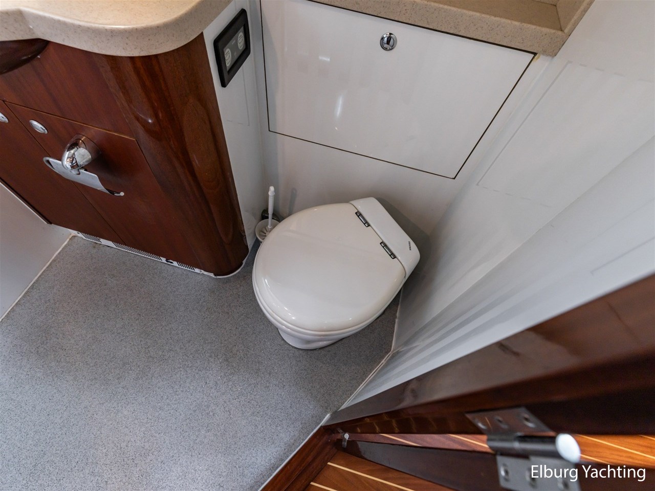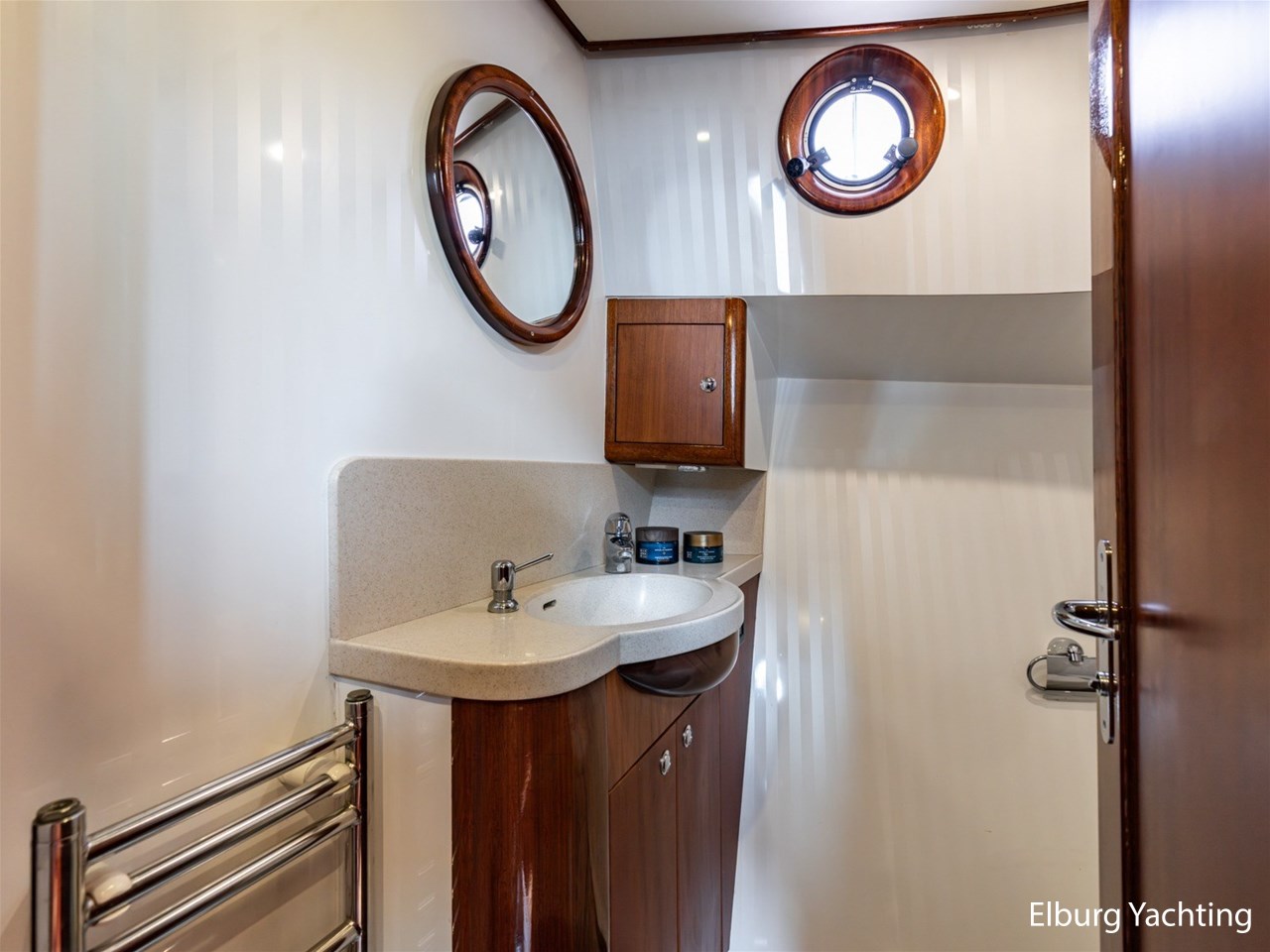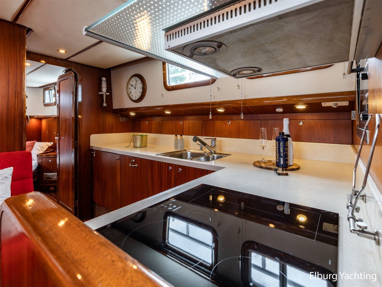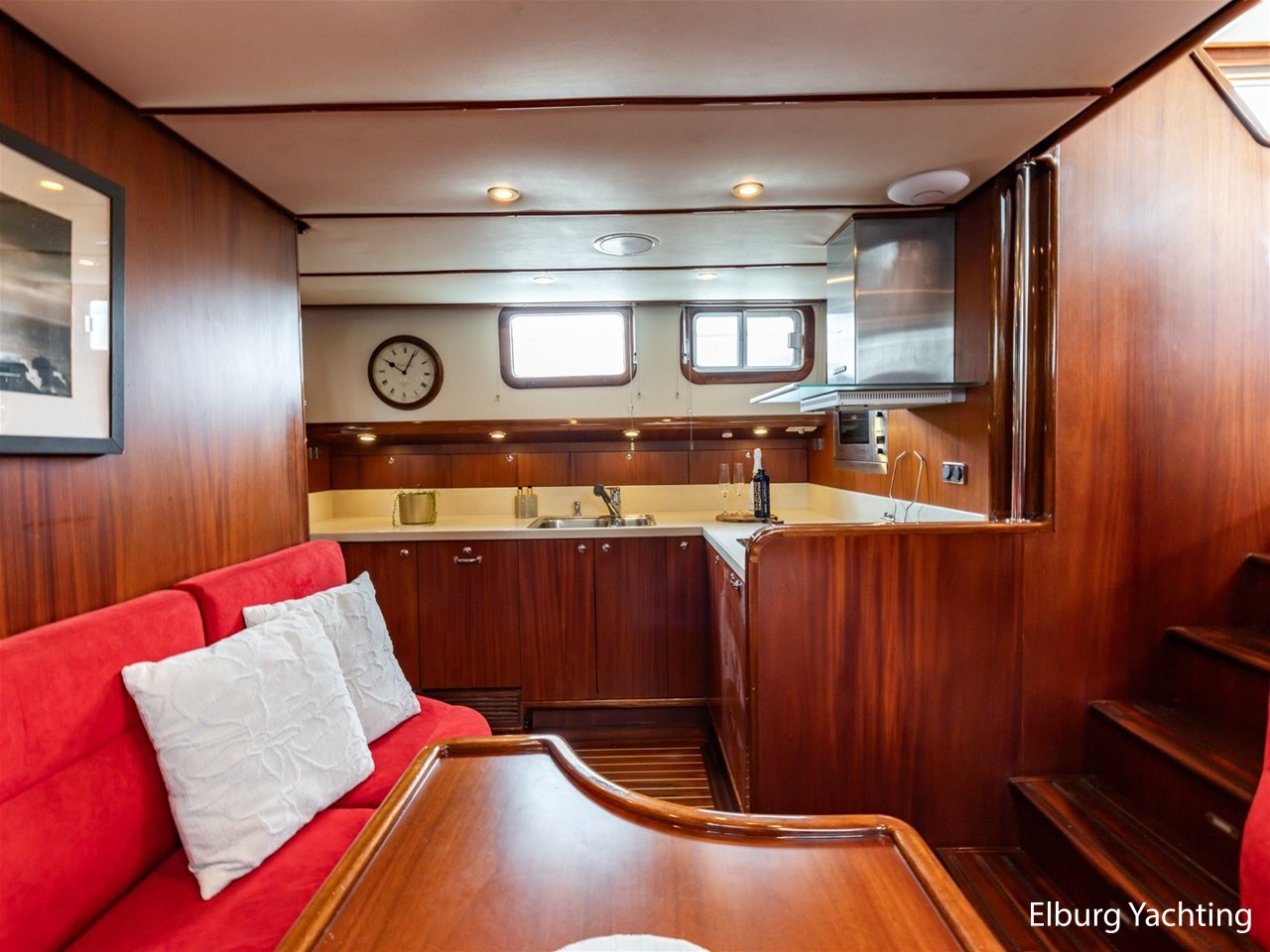 Deze zeewaardige en complete Stentor 1800 is reeds voorzien van een nieuw verfsysteem (opbouw en romp). Ze is getekend door Vripack en in 2002 afgebouwd door de kwalitatief ijzersterke jachtwerf Stentor. Het jacht is degelijk gebouwd met het oog op zeewaardigheid (CE-A). In de afgelopen jaren heeft de huidige eigenaar fors geïnfesteerd in dit jacht. Onder andere is het jacht voorzien van een Raymarine Autopilot systeem op beide stuurstanden, verder is het jacht reeds voorzien van een zonnepanelensysteem met Victron Cerbo besturing welke op afstand afleesbaar is en is er een Victron Quattro omvormer / acculader geplaatst. Het jacht is geschikt voor zeegaande reizen, de hydraulische stabilisatoren in combinatie met het rondspant casco draagt bij aan het comfort op zee. Er is een back-upsysteem voor de hydrauliek geïnstalleerd. De lay-out van dit jacht is goed doordacht en kenmerkt zich met name door het fraaie, ruim opgezette achterdek dat is voorzien van een ruime U-vormige bank, met dubbele tafels en een degelijke achtertent van 2020. De tweede stuurstand bevindt zich in het vaste stuurhuis en is toegankelijk via de schuifdeuren in beide ruime gangboorden. Het vaste stuurhuis dient tevens als Salon en is uitgerust met een comfortabele L-bank en beschikt over veel lichtinval middels de grote raampartijen. De kombuis is beneden het achterdek en is voorzien van een ruim opgezette keuken in L-vorm en een comfortabele dinette. De masterbedroom bevindt zich achter de kombuis en is voorzien van een tweepersoons vrijstaand bed welke diagonaal in de kamer gesitueerd is. Veder beschikt de masterbedroom over veel kastruimte en een ensuite badkamer met wastafel, elektrisch toilet en douchecabine. Voor is de gastenhut gesitueerd met een tweepersoons vrijstaand bed. Vanuit de gang is de tweede badkamer te bereiken alsmede de overzichtelijke machinekamer. De romp en opbouw zijn in 2024 opnieuw gespoten.