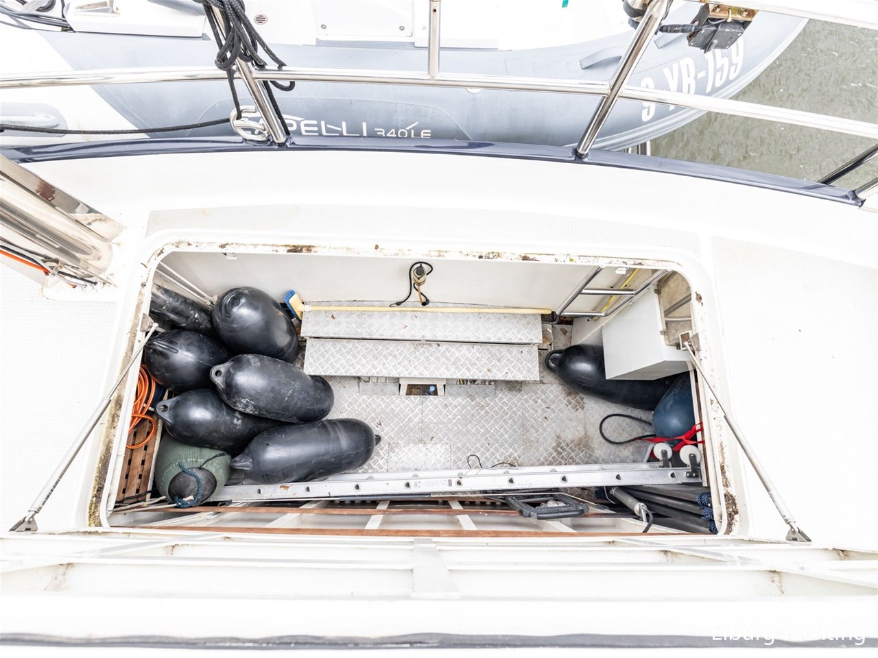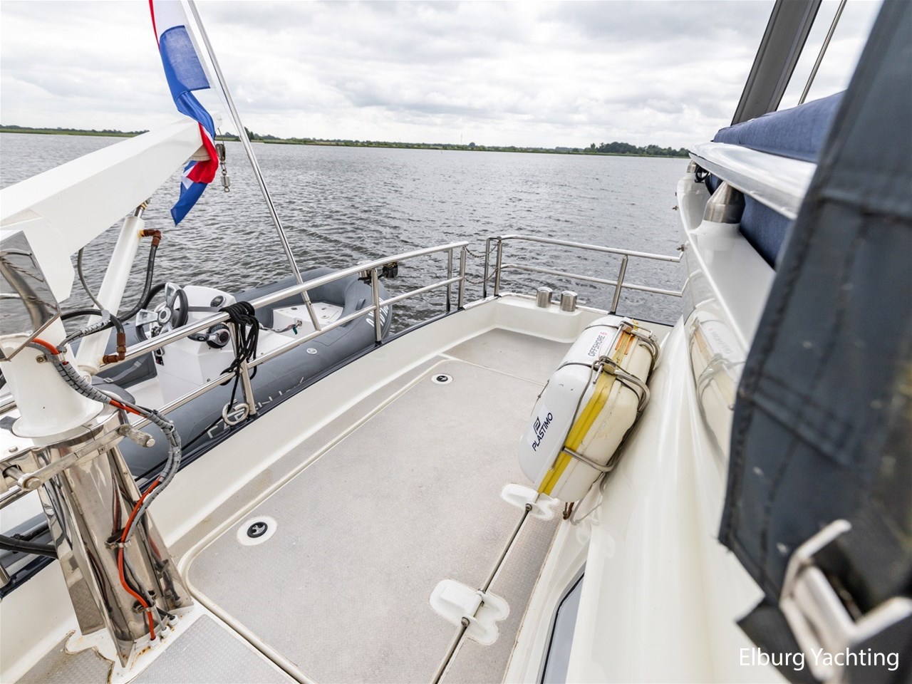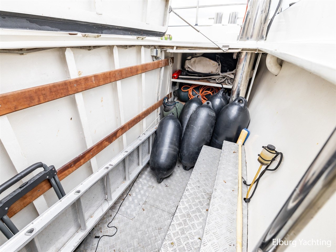 - Hydraulische dekkraan + r.v.s. steunstangen voor bijboot