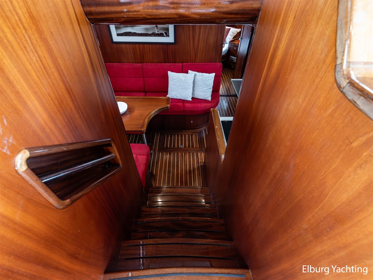 - Massief scheeps teakhouten betimmering met een teak vloer door het gehele jacht