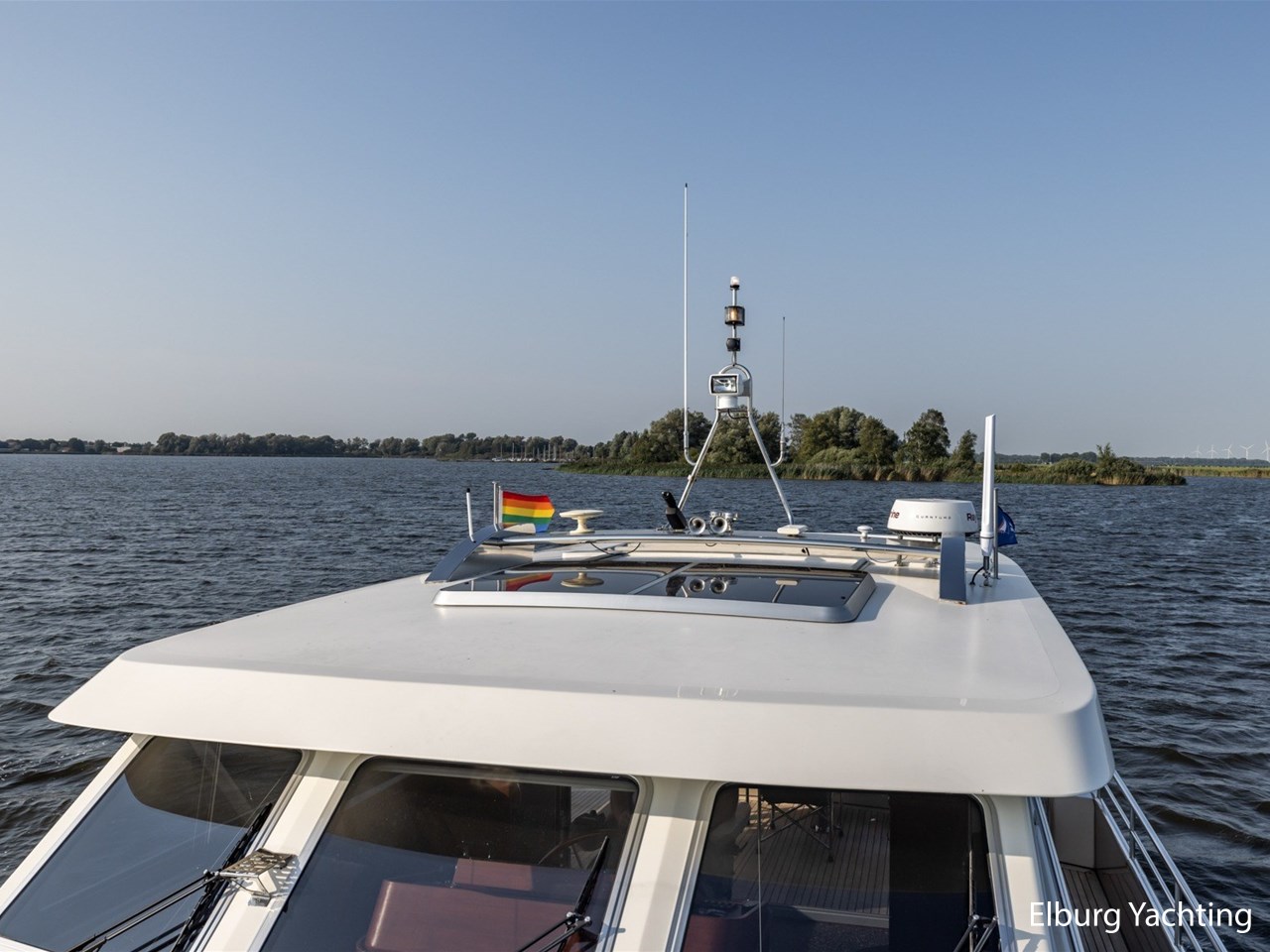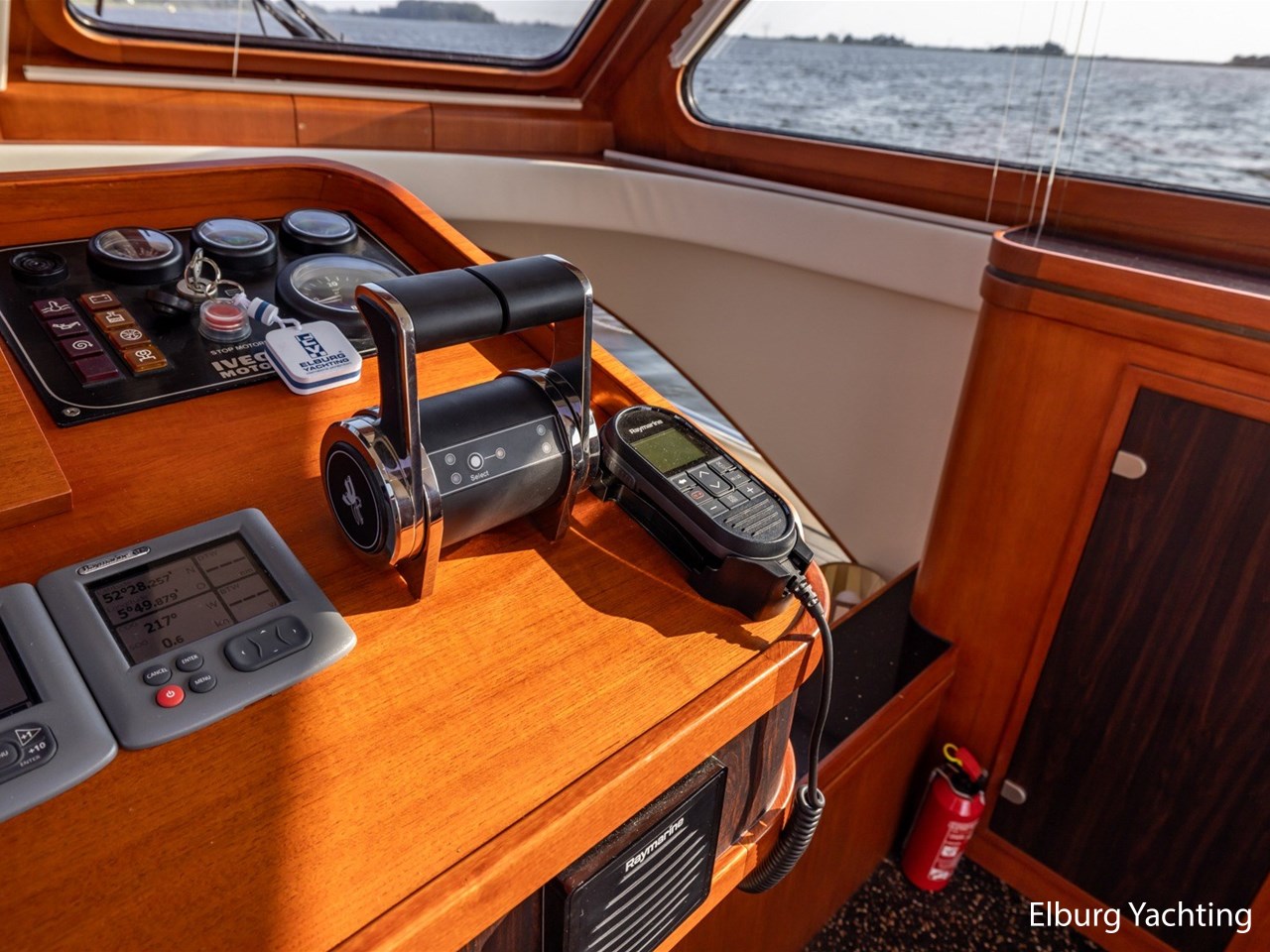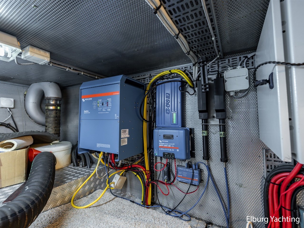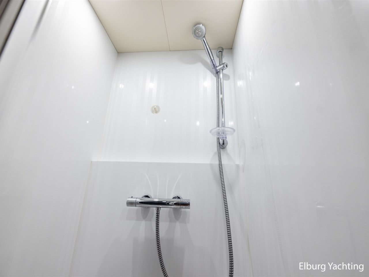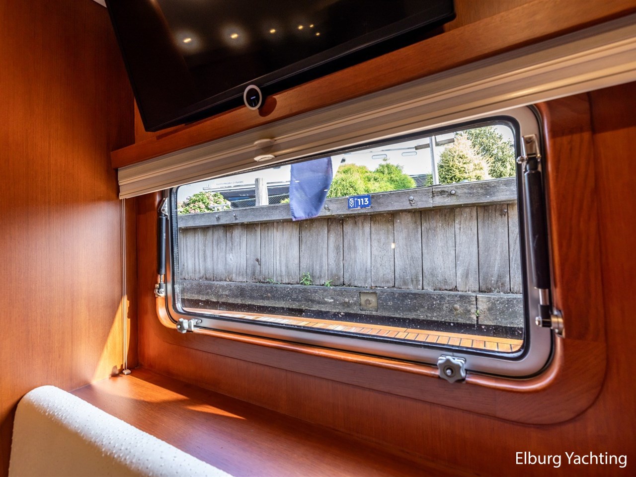 Deze Van der Heijden 58 Diamond met vast stuurhuis beschikt over: Vast overdekt achterdek met elektrisch cabrio dak voorzien van vaste bank met bijbehorende kussens, volledig afsluitbare tent rondom achterdek, aluminium pui in stuurhuis in 4 delen open te klappen deuren over gehele breedte, elektrisch bedienbaar schuifdak in stuurhuis, luxe Norsap stuurstoel met stuurautomaat bediening in leuning verwerkt, zijramen stuurhuis uit een deel, dimbare LED verlichting, airconditioning aan boord, veel kastruimte met ophangmogelijkheden, softclose lades, Zanussi was/droog combinatie, TV op lift in salon + TV in achterhut, kluis, centraal stofzuigsysteem, horren voor patrijspoorten en luiken, plissegordijnen, open ruimte achter dashboard naar salon (goede lichtinval), 2 x vrijstaand bed (vrijstaand bed eigenaarshut met uitzicht op raam in de spiegel), camera systeem (BB camera defect), ruime gangboorden met vaste verschansing en dubbele r.v.s. reling, buiten verlichting, r.v.s. fenderhouders, roerstandindicator, kickspace op achterdek, dekwassysteem, voordek voorzien van extra bediening voor motoren en stuurautomaat, toegankelijke machinekamer voorzien van goede isolatie, klapbare r.v.s. mast, afneembare zijladder, 3 x zonnepanelen op het dek gecombineerd met een Victron Smart Solar MPPT 250/60, Victron Cerbo display met mogelijkheid tot uitlezen via telefoon. De 3e hut in het voorschip aan BB-zijde kan relatief gemakkelijk worden omgebouwd naar en 2-persoons stapelbed door een jachttimmerman. Voor vragen en/of het maken van een afspraak bent u 7 dagen per week van harte welkom bij Elburg Yachting.