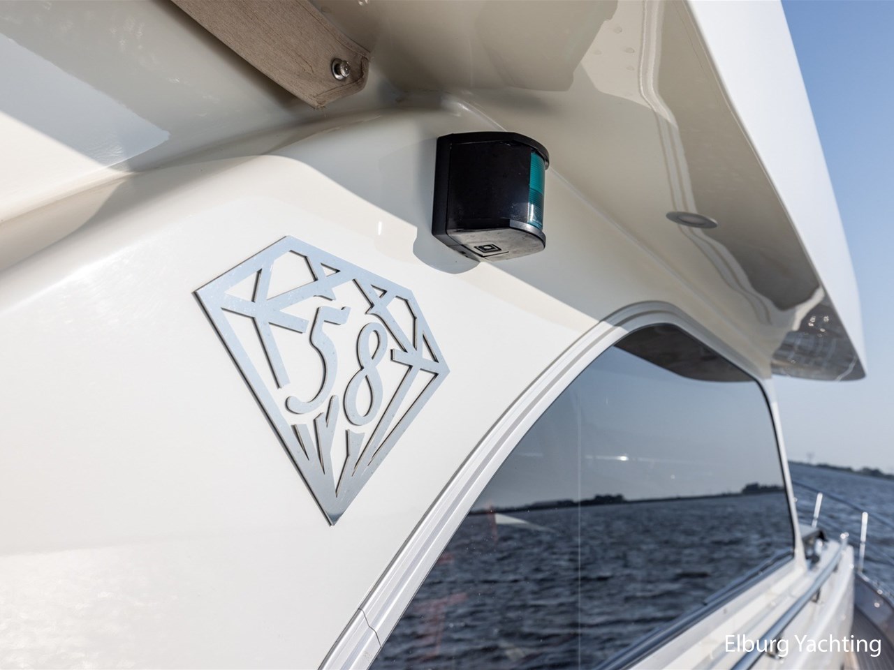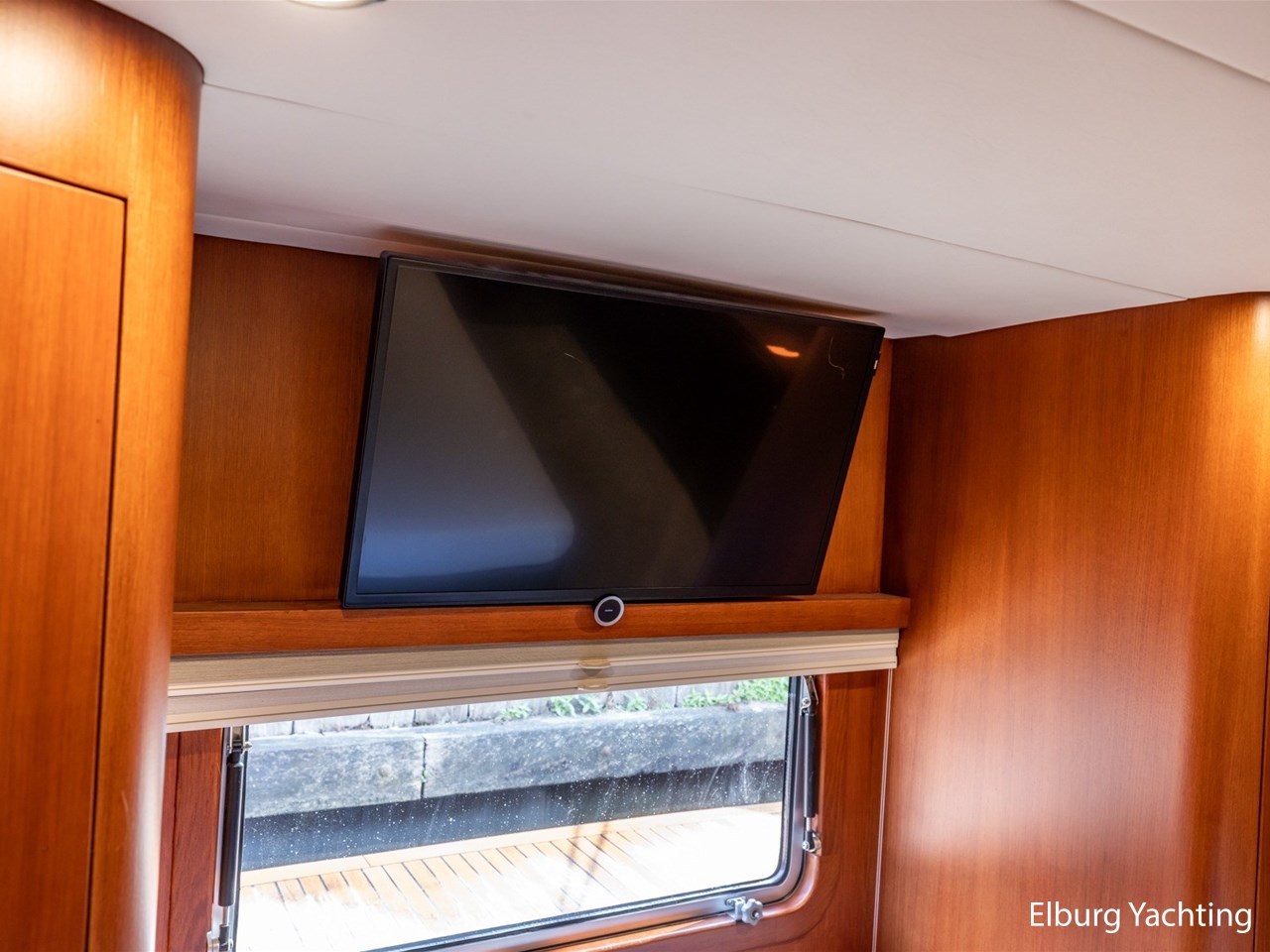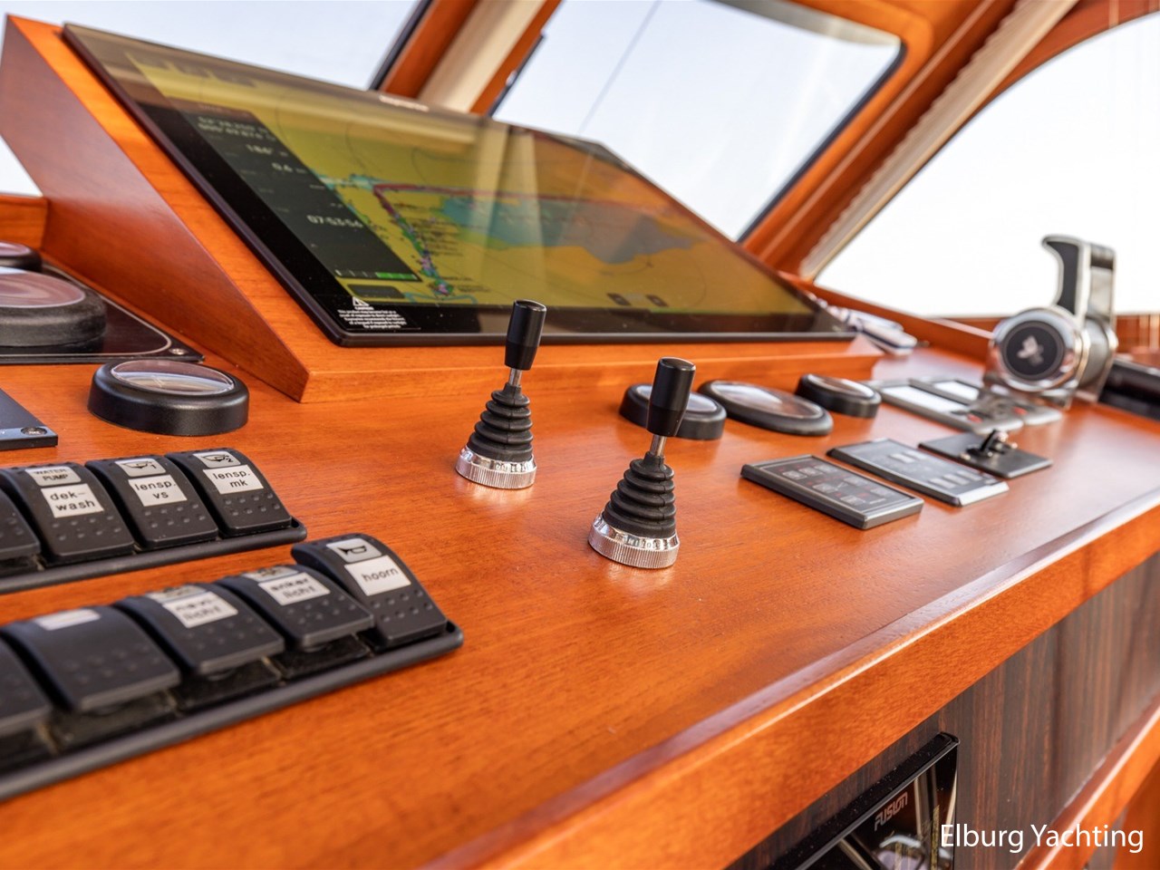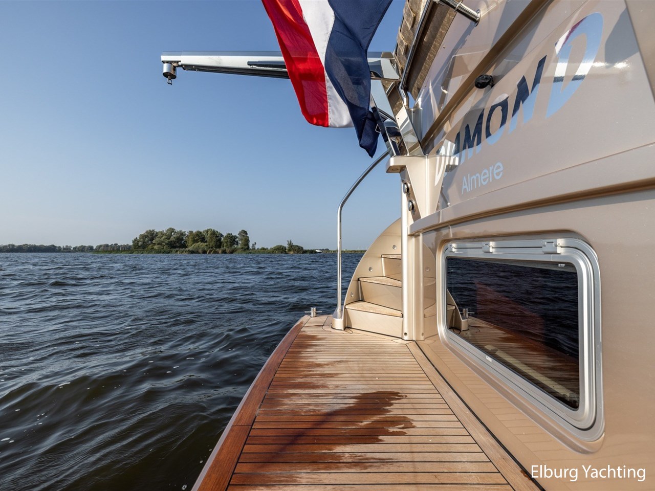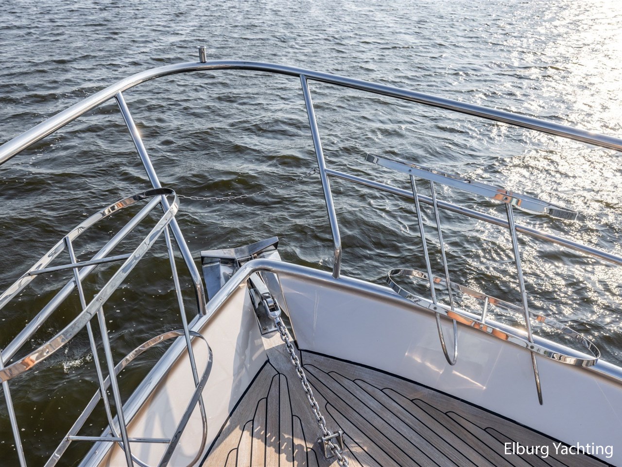Deze Van der Heijden 58 Diamond met vast stuurhuis beschikt over: Vast overdekt achterdek met elektrisch cabrio dak voorzien van vaste bank met bijbehorende kussens, volledig afsluitbare tent rondom achterdek, aluminium pui in stuurhuis in 4 delen open te klappen deuren over gehele breedte, elektrisch bedienbaar schuifdak in stuurhuis, luxe Norsap stuurstoel met stuurautomaat bediening in leuning verwerkt, zijramen stuurhuis uit een deel, dimbare LED verlichting, airconditioning aan boord, veel kastruimte met ophangmogelijkheden, softclose lades, Zanussi was/droog combinatie, TV op lift in salon + TV in achterhut, kluis, centraal stofzuigsysteem, horren voor patrijspoorten en luiken, plissegordijnen, open ruimte achter dashboard naar salon (goede lichtinval), 2 x vrijstaand bed (vrijstaand bed eigenaarshut met uitzicht op raam in de spiegel), camera systeem (BB camera defect), ruime gangboorden met vaste verschansing en dubbele r.v.s. reling, buiten verlichting, r.v.s. fenderhouders, roerstandindicator, kickspace op achterdek, dekwassysteem, voordek voorzien van extra bediening voor motoren en stuurautomaat, toegankelijke machinekamer voorzien van goede isolatie, klapbare r.v.s. mast, afneembare zijladder, 3 x zonnepanelen op het dek gecombineerd met een Victron Smart Solar MPPT 250/60, Victron Cerbo display met mogelijkheid tot uitlezen via telefoon. De 3e hut in het voorschip aan BB-zijde kan relatief gemakkelijk worden omgebouwd naar en 2-persoons stapelbed door een jachttimmerman. Voor vragen en/of het maken van een afspraak bent u 7 dagen per week van harte welkom bij Elburg Yachting.