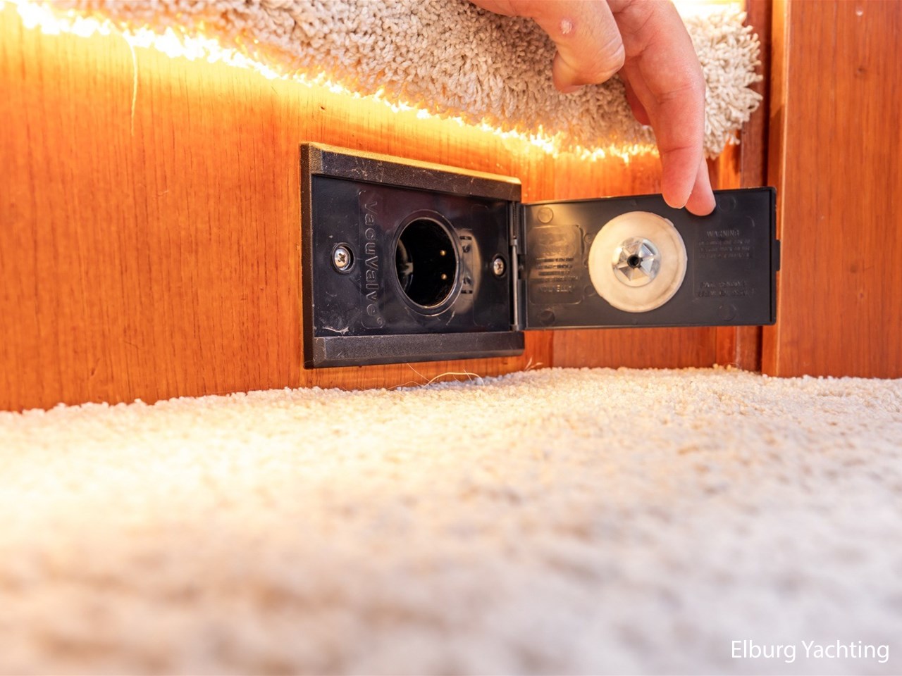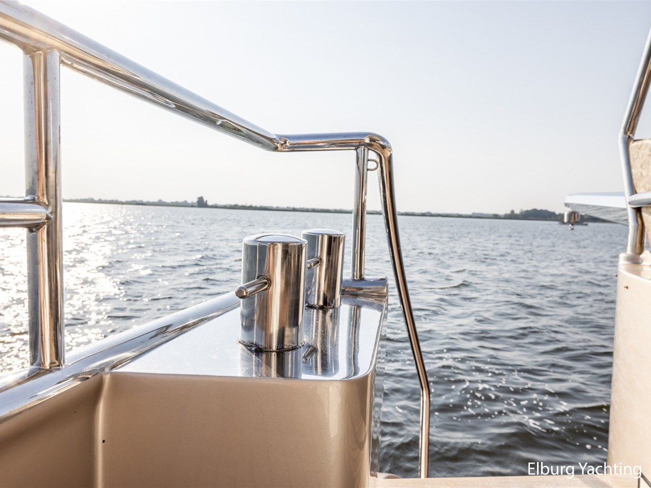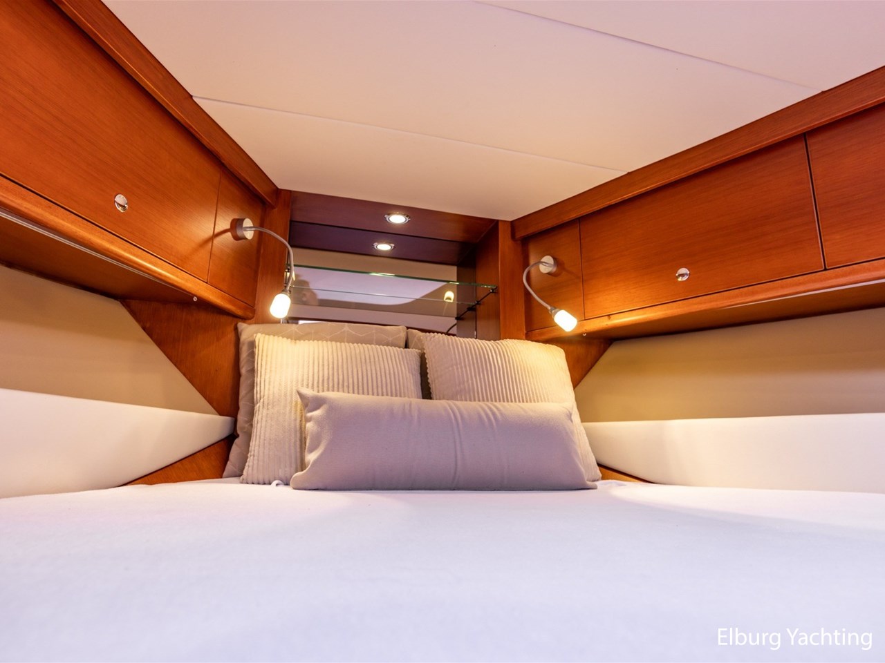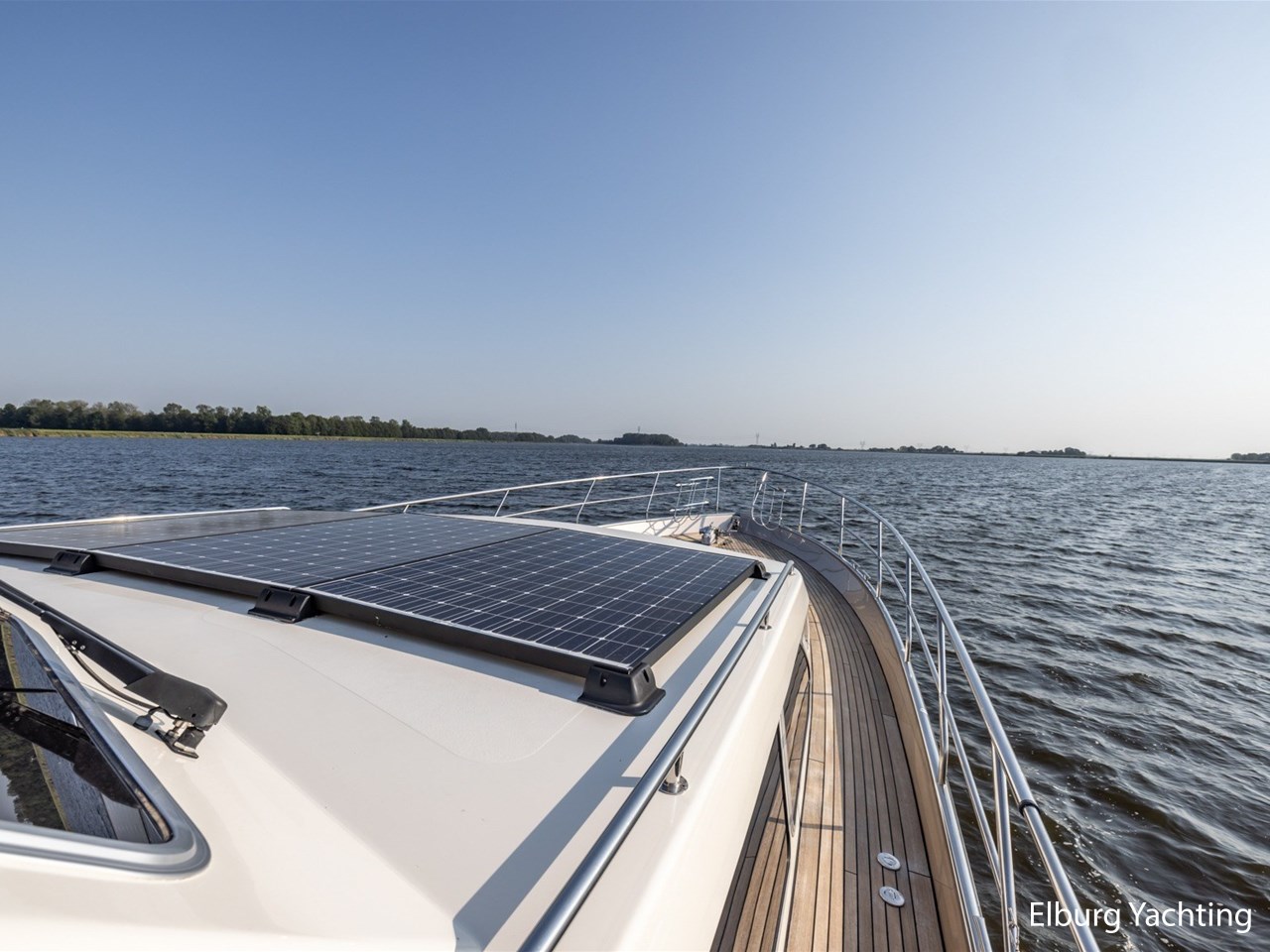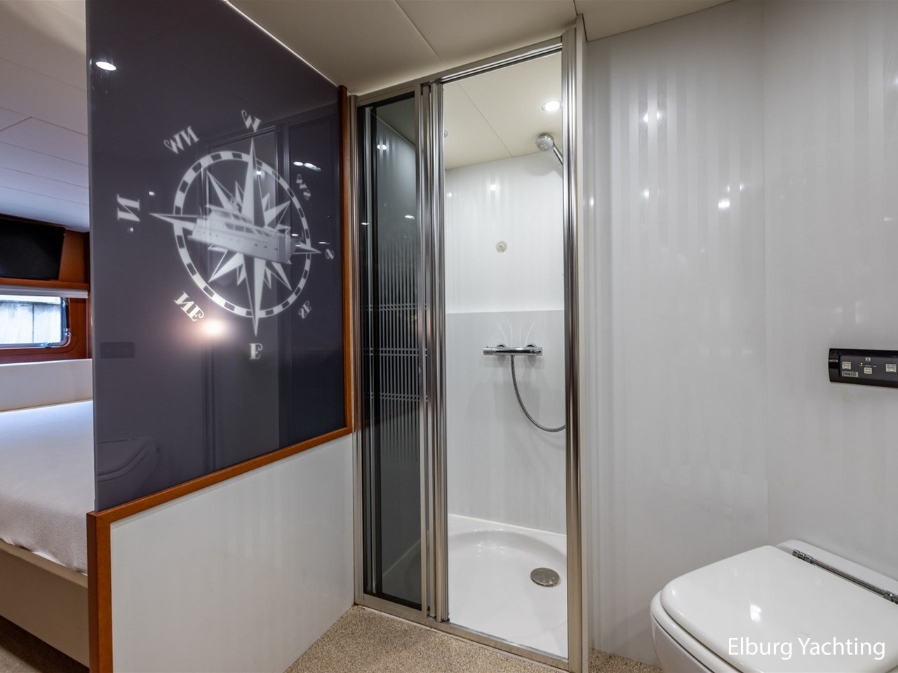 Deze Van der Heijden 58 Diamond met vast stuurhuis beschikt over: Vast overdekt achterdek met elektrisch cabrio dak voorzien van vaste bank met bijbehorende kussens, volledig afsluitbare tent rondom achterdek, aluminium pui in stuurhuis in 4 delen open te klappen deuren over gehele breedte, elektrisch bedienbaar schuifdak in stuurhuis, luxe Norsap stuurstoel met stuurautomaat bediening in leuning verwerkt, zijramen stuurhuis uit een deel, dimbare LED verlichting, airconditioning aan boord, veel kastruimte met ophangmogelijkheden, softclose lades, Zanussi was/droog combinatie, TV op lift in salon + TV in achterhut, kluis, centraal stofzuigsysteem, horren voor patrijspoorten en luiken, plissegordijnen, open ruimte achter dashboard naar salon (goede lichtinval), 2 x vrijstaand bed (vrijstaand bed eigenaarshut met uitzicht op raam in de spiegel), camera systeem (BB camera defect), ruime gangboorden met vaste verschansing en dubbele r.v.s. reling, buiten verlichting, r.v.s. fenderhouders, roerstandindicator, kickspace op achterdek, dekwassysteem, voordek voorzien van extra bediening voor motoren en stuurautomaat, toegankelijke machinekamer voorzien van goede isolatie, klapbare r.v.s. mast, afneembare zijladder, 3 x zonnepanelen op het dek gecombineerd met een Victron Smart Solar MPPT 250/60, Victron Cerbo display met mogelijkheid tot uitlezen via telefoon. De 3e hut in het voorschip aan BB-zijde kan relatief gemakkelijk worden omgebouwd naar en 2-persoons stapelbed door een jachttimmerman. Voor vragen en/of het maken van een afspraak bent u 7 dagen per week van harte welkom bij Elburg Yachting.