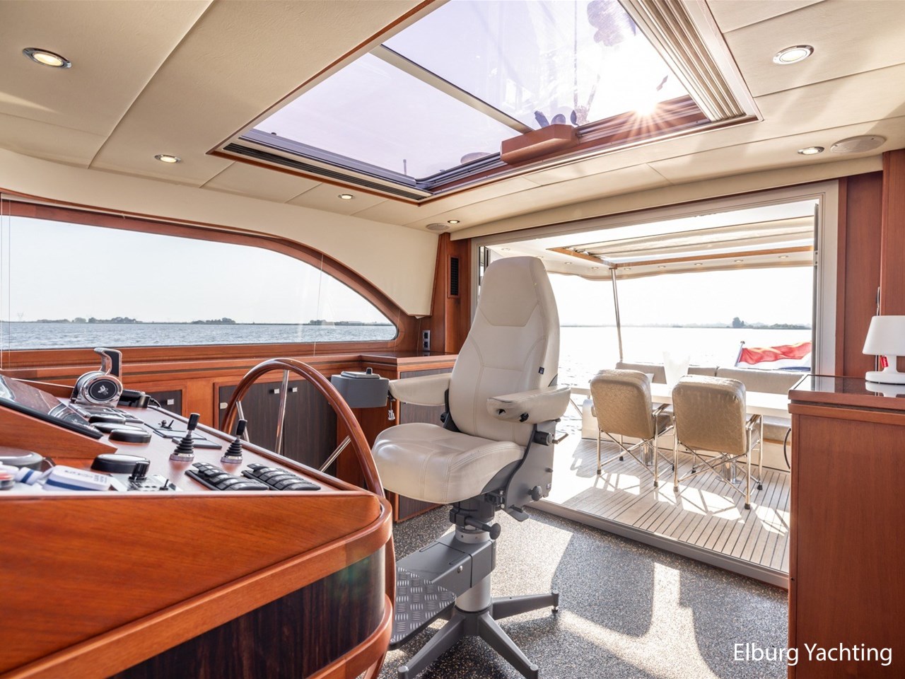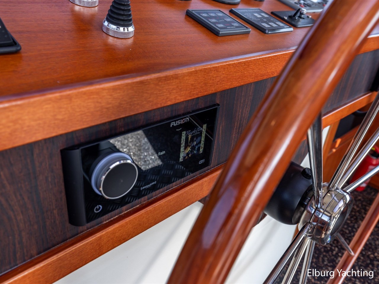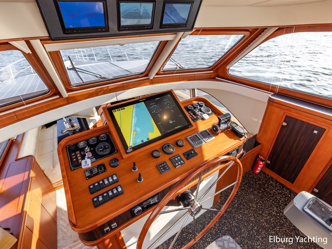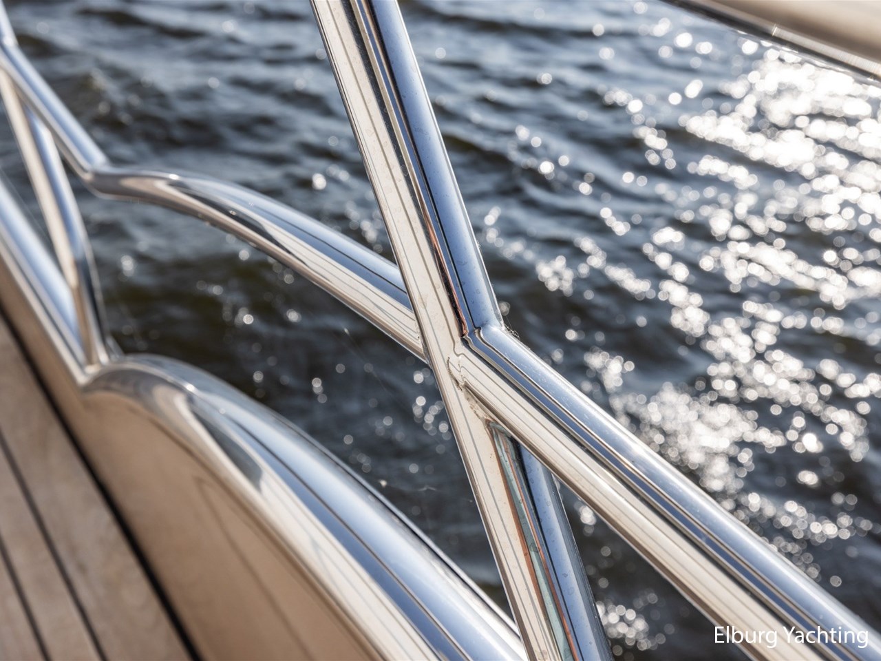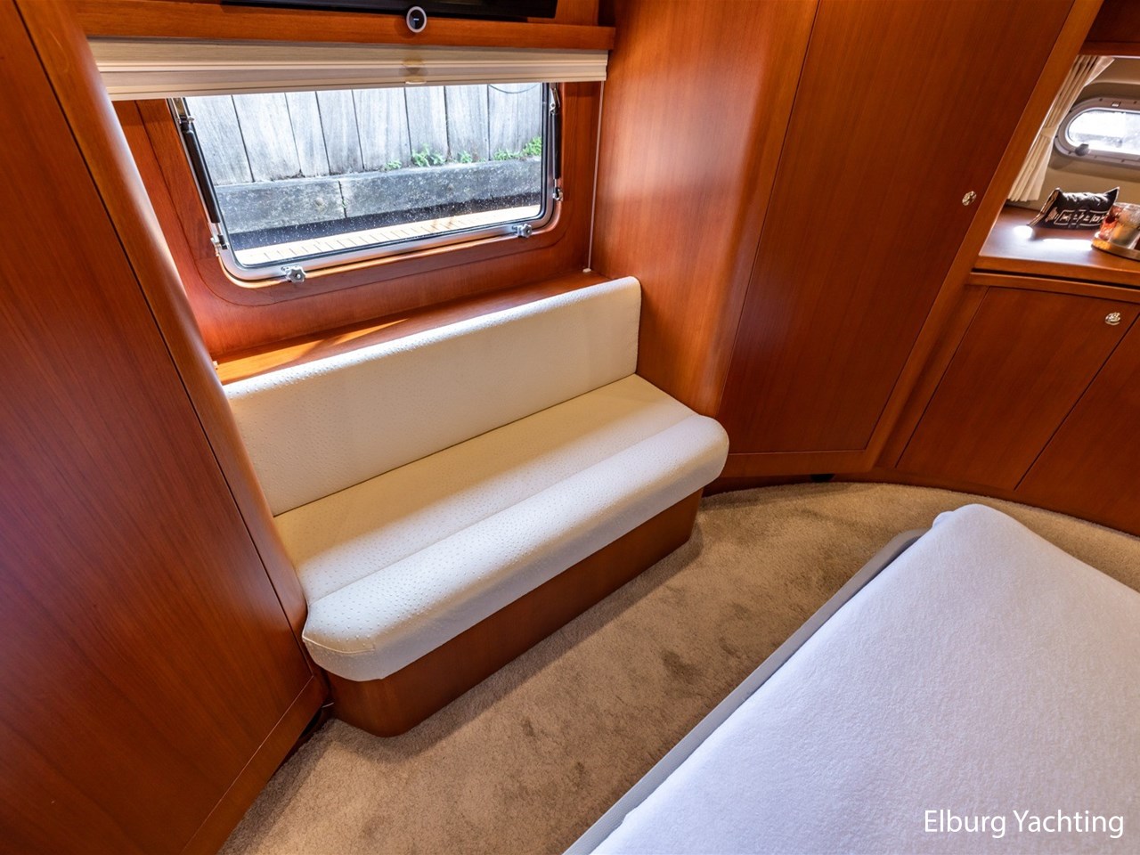 Deze Van der Heijden 58 Diamond met vast stuurhuis beschikt over: Vast overdekt achterdek met elektrisch cabrio dak voorzien van vaste bank met bijbehorende kussens, volledig afsluitbare tent rondom achterdek, aluminium pui in stuurhuis in 4 delen open te klappen deuren over gehele breedte, elektrisch bedienbaar schuifdak in stuurhuis, luxe Norsap stuurstoel met stuurautomaat bediening in leuning verwerkt, zijramen stuurhuis uit een deel, dimbare LED verlichting, airconditioning aan boord, veel kastruimte met ophangmogelijkheden, softclose lades, Zanussi was/droog combinatie, TV op lift in salon + TV in achterhut, kluis, centraal stofzuigsysteem, horren voor patrijspoorten en luiken, plissegordijnen, open ruimte achter dashboard naar salon (goede lichtinval), 2 x vrijstaand bed (vrijstaand bed eigenaarshut met uitzicht op raam in de spiegel), camera systeem (BB camera defect), ruime gangboorden met vaste verschansing en dubbele r.v.s. reling, buiten verlichting, r.v.s. fenderhouders, roerstandindicator, kickspace op achterdek, dekwassysteem, voordek voorzien van extra bediening voor motoren en stuurautomaat, toegankelijke machinekamer voorzien van goede isolatie, klapbare r.v.s. mast, afneembare zijladder, 3 x zonnepanelen op het dek gecombineerd met een Victron Smart Solar MPPT 250/60, Victron Cerbo display met mogelijkheid tot uitlezen via telefoon. De 3e hut in het voorschip aan BB-zijde kan relatief gemakkelijk worden omgebouwd naar en 2-persoons stapelbed door een jachttimmerman. Voor vragen en/of het maken van een afspraak bent u 7 dagen per week van harte welkom bij Elburg Yachting.