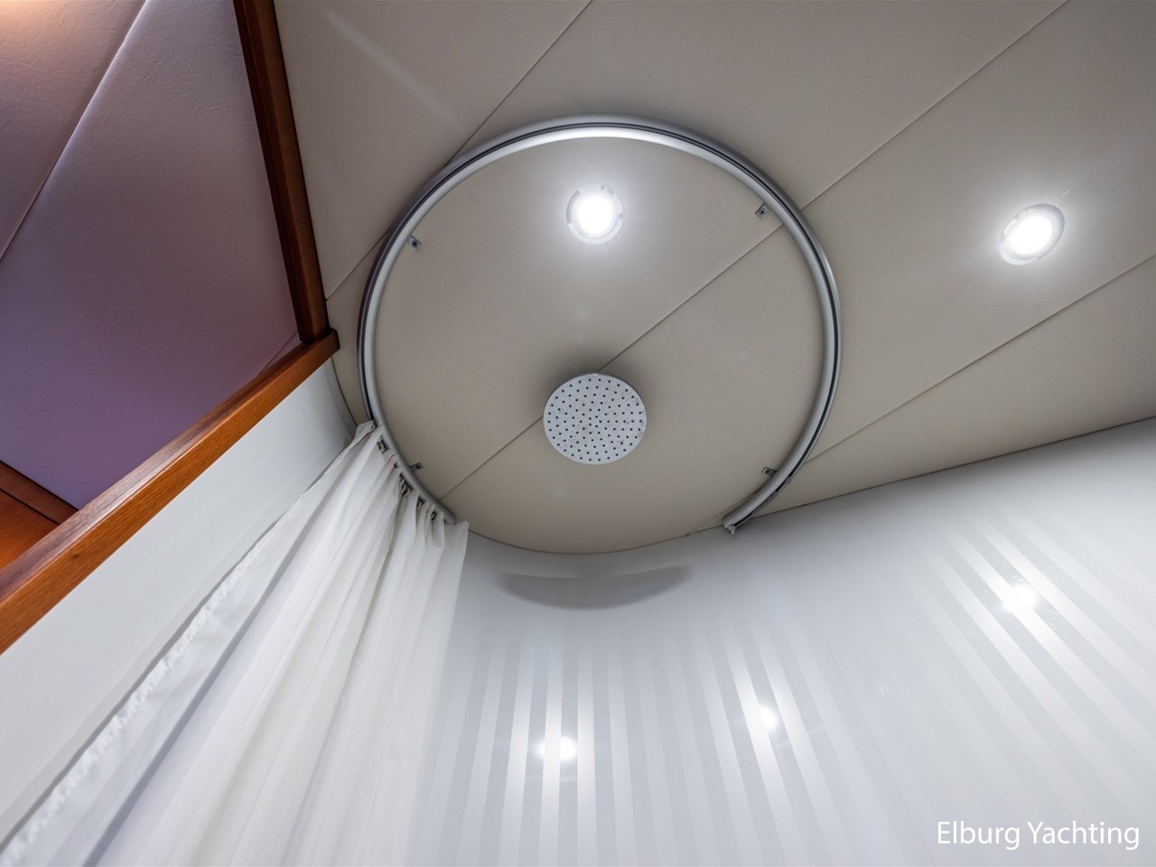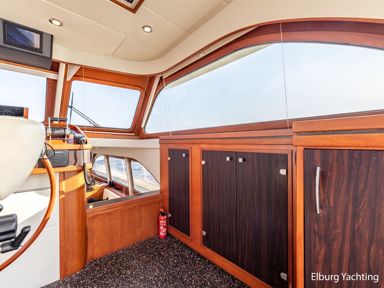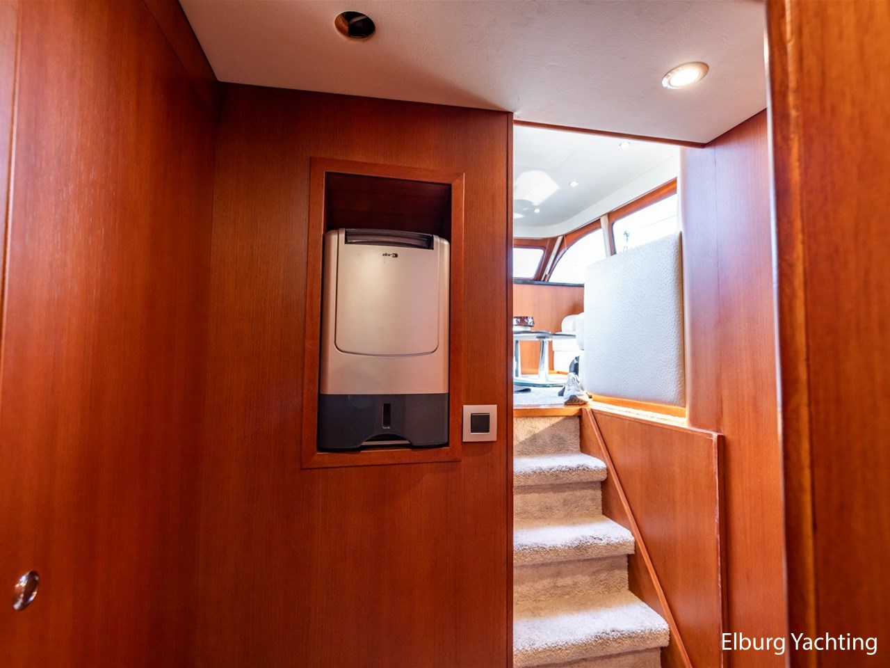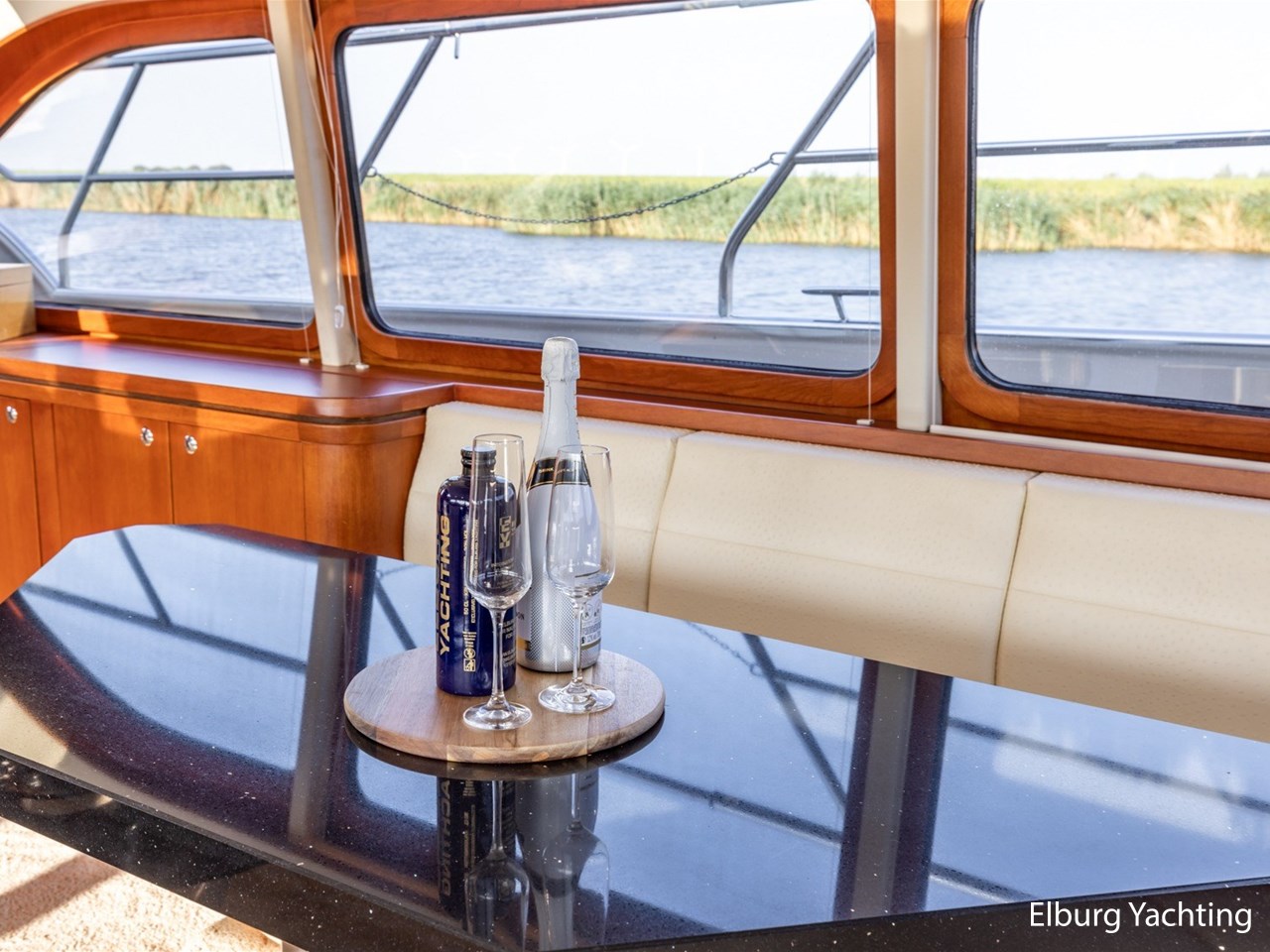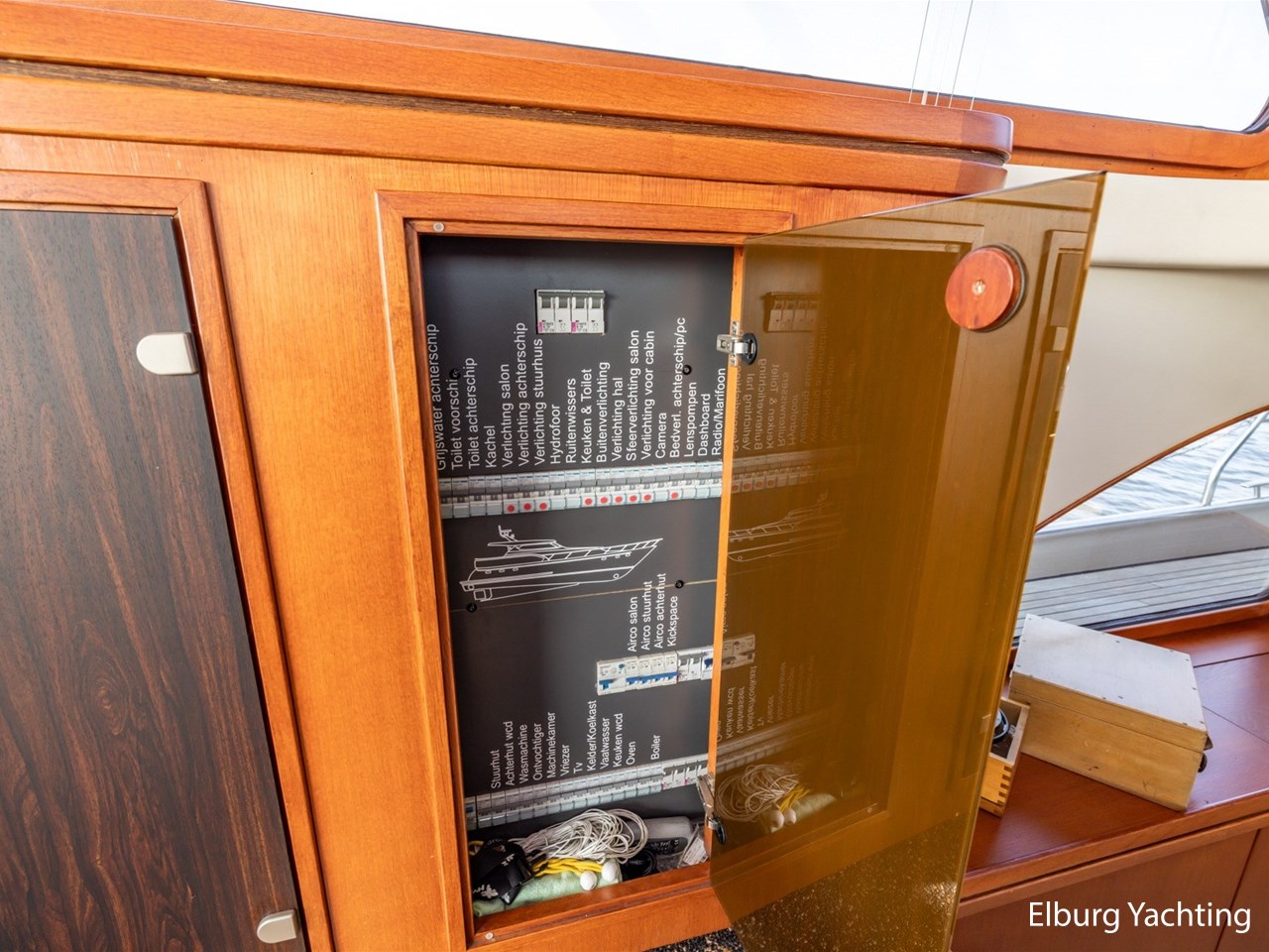 Deze Van der Heijden 58 Diamond met vast stuurhuis beschikt over: Vast overdekt achterdek met elektrisch cabrio dak voorzien van vaste bank met bijbehorende kussens, volledig afsluitbare tent rondom achterdek, aluminium pui in stuurhuis in 4 delen open te klappen deuren over gehele breedte, elektrisch bedienbaar schuifdak in stuurhuis, luxe Norsap stuurstoel met stuurautomaat bediening in leuning verwerkt, zijramen stuurhuis uit een deel, dimbare LED verlichting, airconditioning aan boord, veel kastruimte met ophangmogelijkheden, softclose lades, Zanussi was/droog combinatie, TV op lift in salon + TV in achterhut, kluis, centraal stofzuigsysteem, horren voor patrijspoorten en luiken, plissegordijnen, open ruimte achter dashboard naar salon (goede lichtinval), 2 x vrijstaand bed (vrijstaand bed eigenaarshut met uitzicht op raam in de spiegel), camera systeem (BB camera defect), ruime gangboorden met vaste verschansing en dubbele r.v.s. reling, buiten verlichting, r.v.s. fenderhouders, roerstandindicator, kickspace op achterdek, dekwassysteem, voordek voorzien van extra bediening voor motoren en stuurautomaat, toegankelijke machinekamer voorzien van goede isolatie, klapbare r.v.s. mast, afneembare zijladder, 3 x zonnepanelen op het dek gecombineerd met een Victron Smart Solar MPPT 250/60, Victron Cerbo display met mogelijkheid tot uitlezen via telefoon. De 3e hut in het voorschip aan BB-zijde kan relatief gemakkelijk worden omgebouwd naar en 2-persoons stapelbed door een jachttimmerman. Voor vragen en/of het maken van een afspraak bent u 7 dagen per week van harte welkom bij Elburg Yachting.