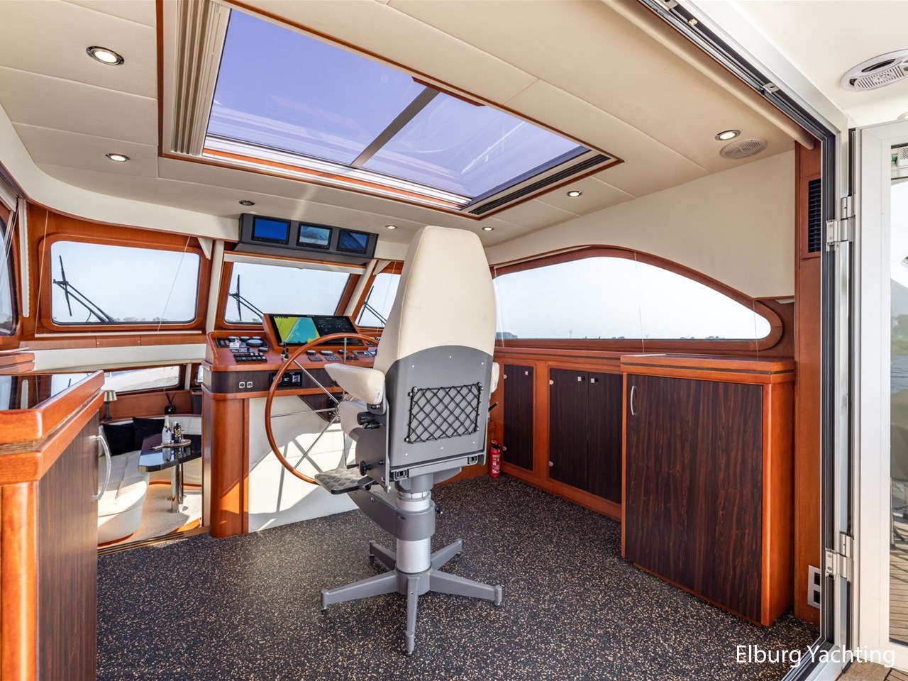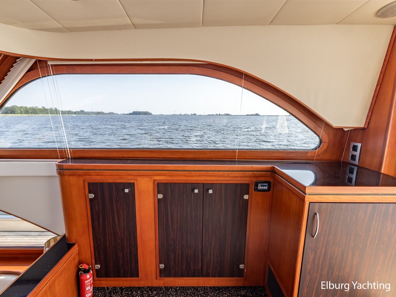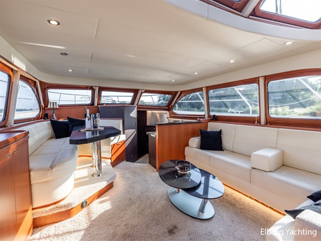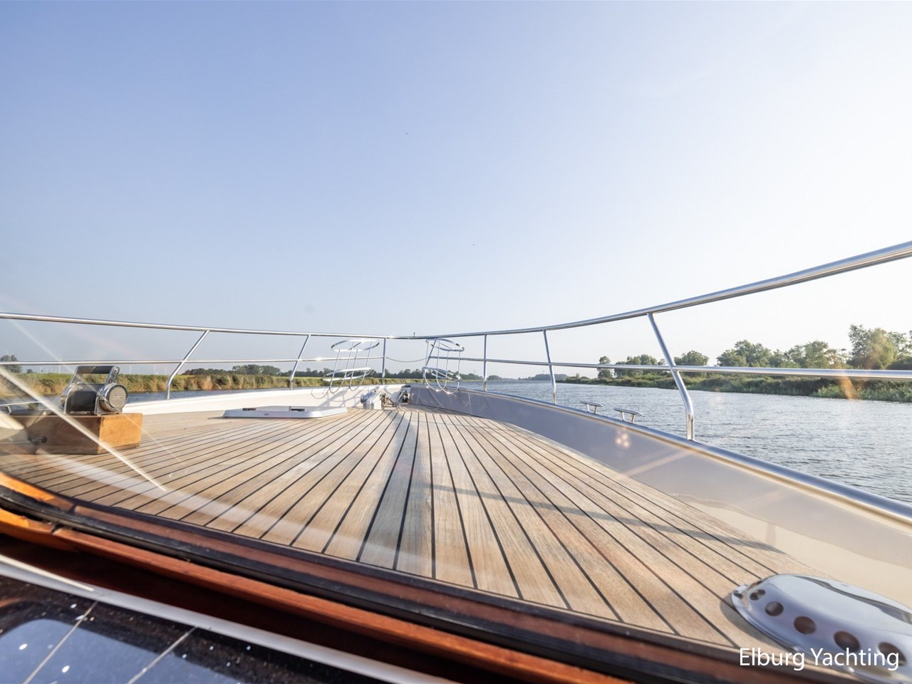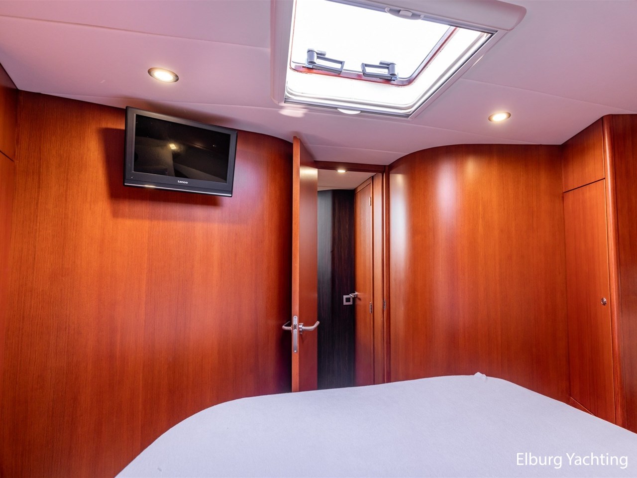 Deze Van der Heijden 58 Diamond met vast stuurhuis beschikt over: Vast overdekt achterdek met elektrisch cabrio dak voorzien van vaste bank met bijbehorende kussens, volledig afsluitbare tent rondom achterdek, aluminium pui in stuurhuis in 4 delen open te klappen deuren over gehele breedte, elektrisch bedienbaar schuifdak in stuurhuis, luxe Norsap stuurstoel met stuurautomaat bediening in leuning verwerkt, zijramen stuurhuis uit een deel, dimbare LED verlichting, airconditioning aan boord, veel kastruimte met ophangmogelijkheden, softclose lades, Zanussi was/droog combinatie, TV op lift in salon + TV in achterhut, kluis, centraal stofzuigsysteem, horren voor patrijspoorten en luiken, plissegordijnen, open ruimte achter dashboard naar salon (goede lichtinval), 2 x vrijstaand bed (vrijstaand bed eigenaarshut met uitzicht op raam in de spiegel), camera systeem (BB camera defect), ruime gangboorden met vaste verschansing en dubbele r.v.s. reling, buiten verlichting, r.v.s. fenderhouders, roerstandindicator, kickspace op achterdek, dekwassysteem, voordek voorzien van extra bediening voor motoren en stuurautomaat, toegankelijke machinekamer voorzien van goede isolatie, klapbare r.v.s. mast, afneembare zijladder, 3 x zonnepanelen op het dek gecombineerd met een Victron Smart Solar MPPT 250/60, Victron Cerbo display met mogelijkheid tot uitlezen via telefoon. De 3e hut in het voorschip aan BB-zijde kan relatief gemakkelijk worden omgebouwd naar en 2-persoons stapelbed door een jachttimmerman. Voor vragen en/of het maken van een afspraak bent u 7 dagen per week van harte welkom bij Elburg Yachting.