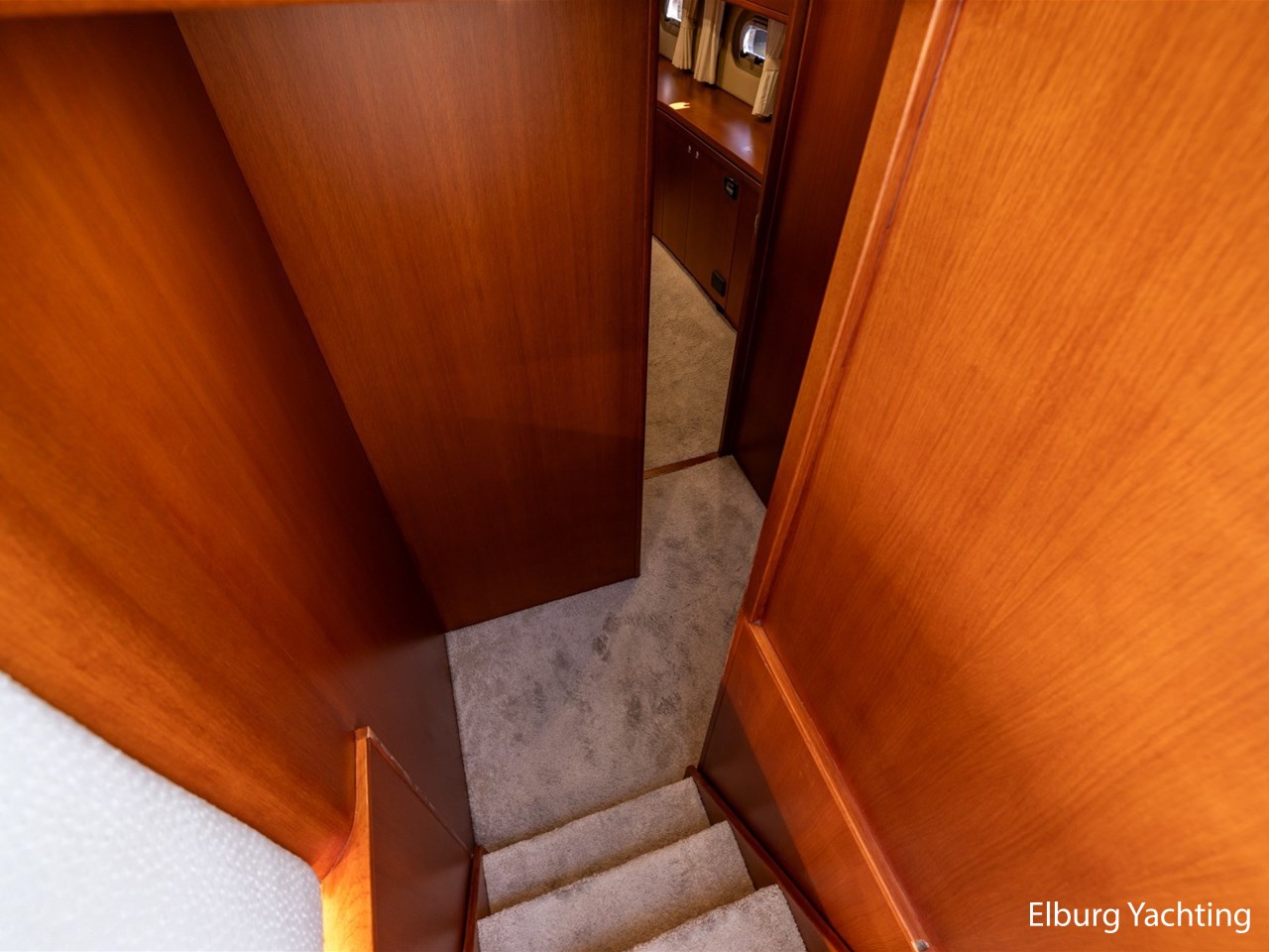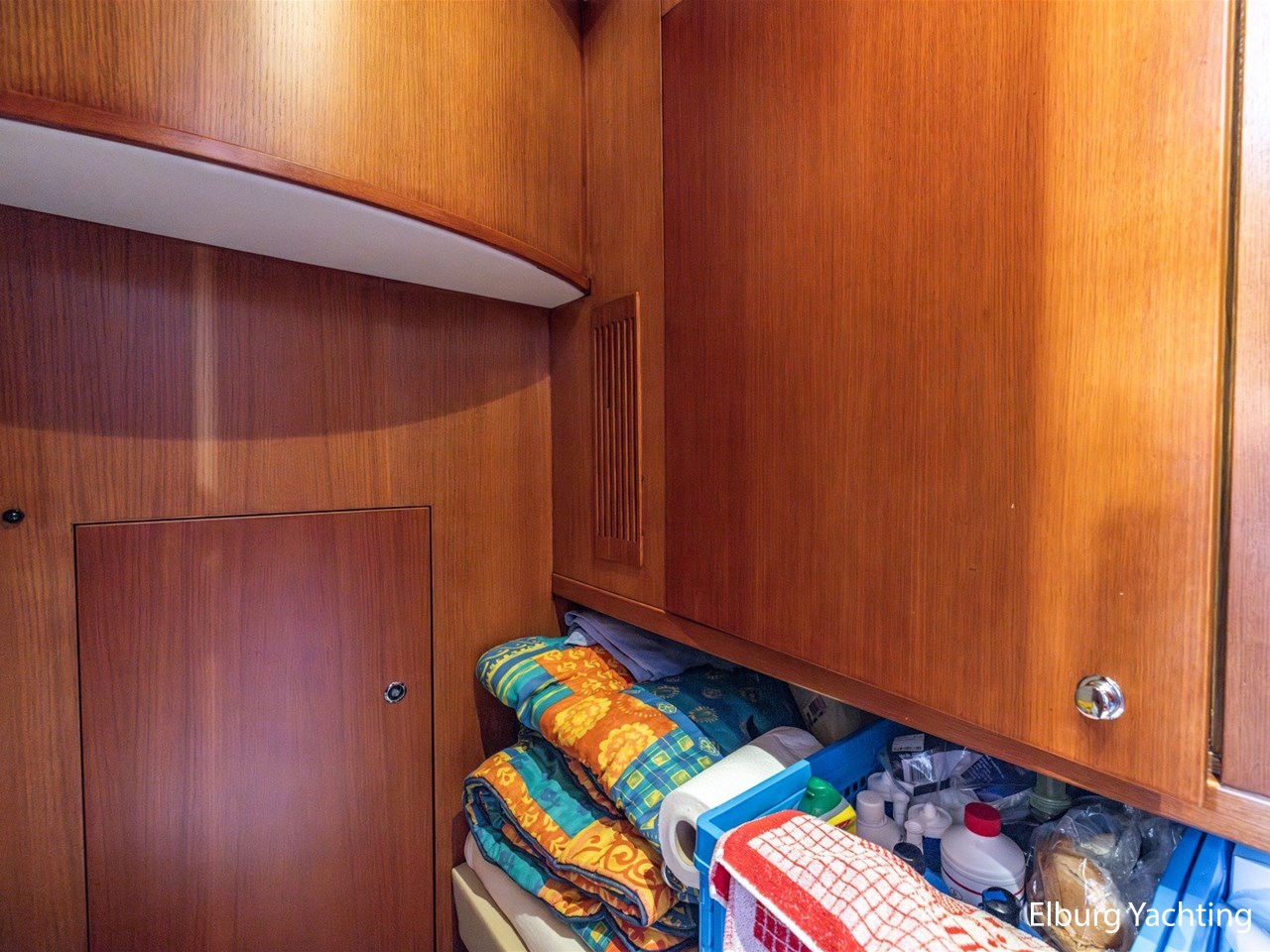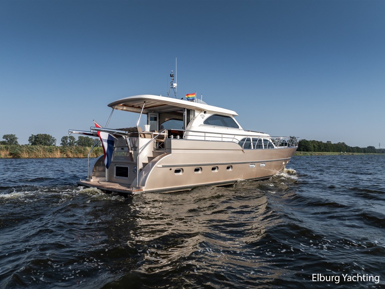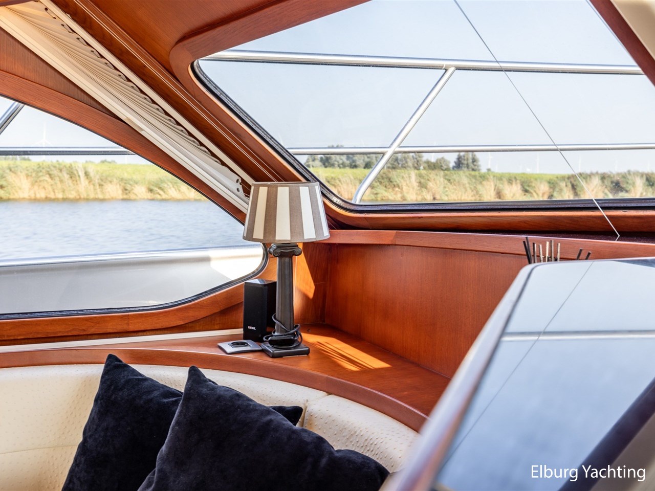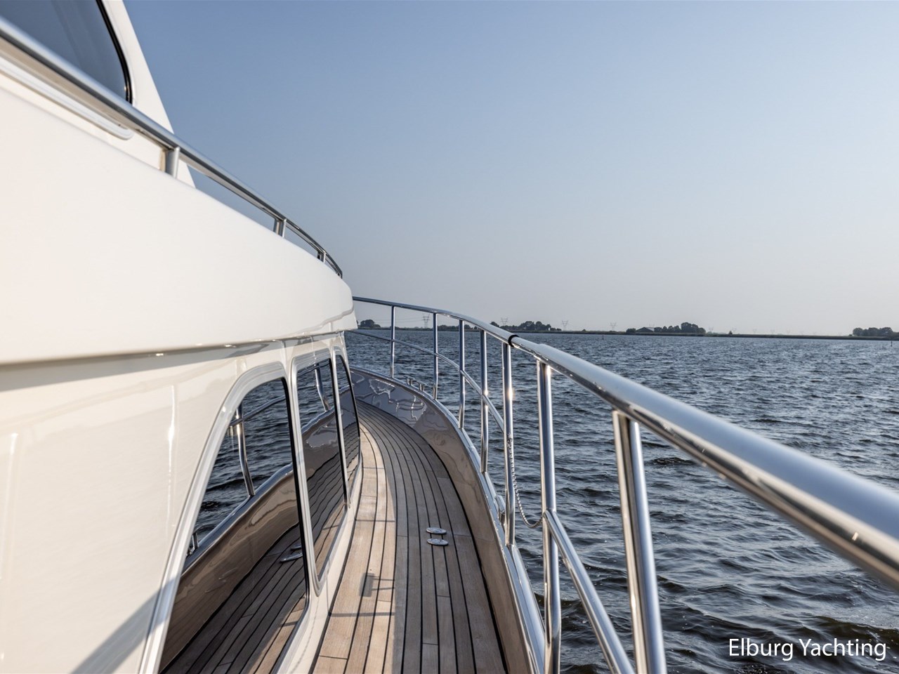 Deze Van der Heijden 58 Diamond met vast stuurhuis beschikt over: Vast overdekt achterdek met elektrisch cabrio dak voorzien van vaste bank met bijbehorende kussens, volledig afsluitbare tent rondom achterdek, aluminium pui in stuurhuis in 4 delen open te klappen deuren over gehele breedte, elektrisch bedienbaar schuifdak in stuurhuis, luxe Norsap stuurstoel met stuurautomaat bediening in leuning verwerkt, zijramen stuurhuis uit een deel, dimbare LED verlichting, airconditioning aan boord, veel kastruimte met ophangmogelijkheden, softclose lades, Zanussi was/droog combinatie, TV op lift in salon + TV in achterhut, kluis, centraal stofzuigsysteem, horren voor patrijspoorten en luiken, plissegordijnen, open ruimte achter dashboard naar salon (goede lichtinval), 2 x vrijstaand bed (vrijstaand bed eigenaarshut met uitzicht op raam in de spiegel), camera systeem (BB camera defect), ruime gangboorden met vaste verschansing en dubbele r.v.s. reling, buiten verlichting, r.v.s. fenderhouders, roerstandindicator, kickspace op achterdek, dekwassysteem, voordek voorzien van extra bediening voor motoren en stuurautomaat, toegankelijke machinekamer voorzien van goede isolatie, klapbare r.v.s. mast, afneembare zijladder, 3 x zonnepanelen op het dek gecombineerd met een Victron Smart Solar MPPT 250/60, Victron Cerbo display met mogelijkheid tot uitlezen via telefoon. De 3e hut in het voorschip aan BB-zijde kan relatief gemakkelijk worden omgebouwd naar en 2-persoons stapelbed door een jachttimmerman. Voor vragen en/of het maken van een afspraak bent u 7 dagen per week van harte welkom bij Elburg Yachting.