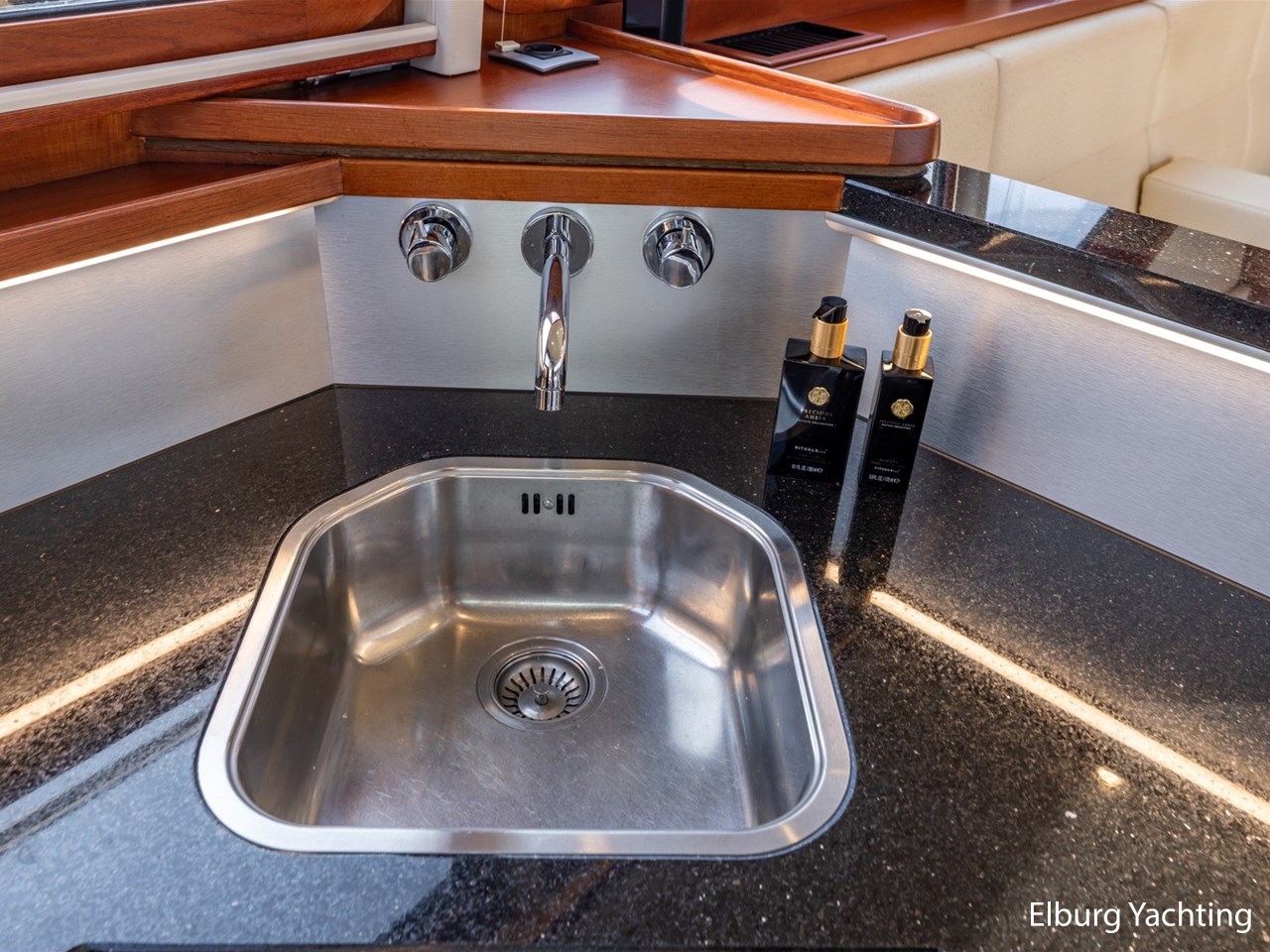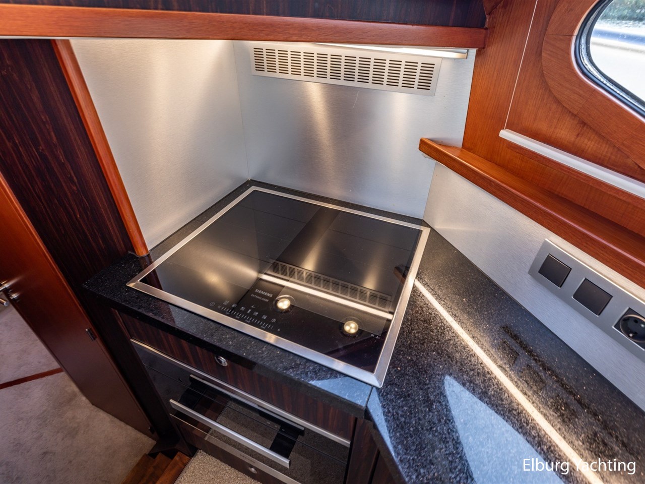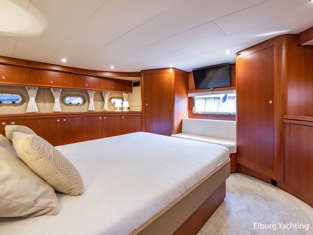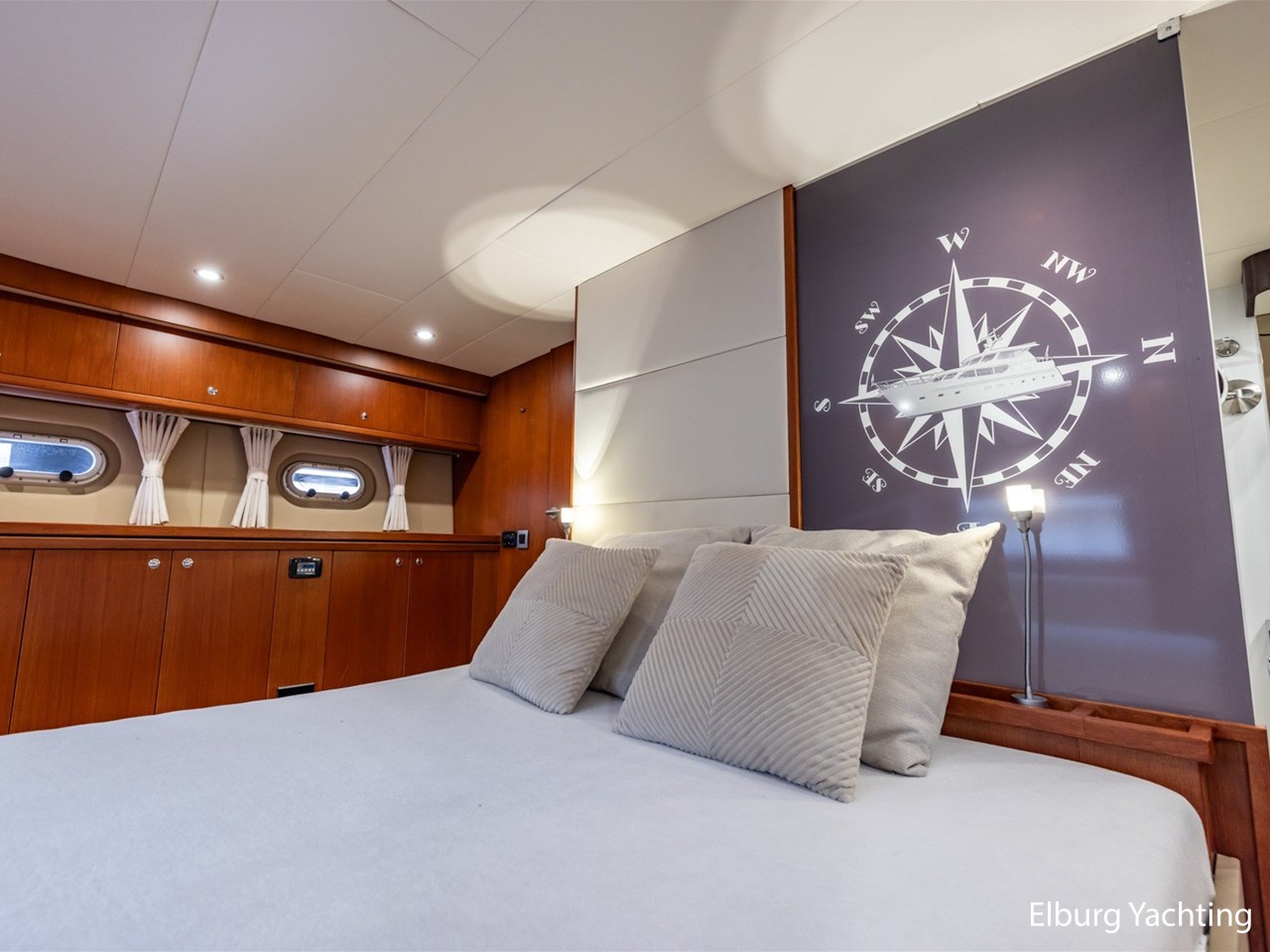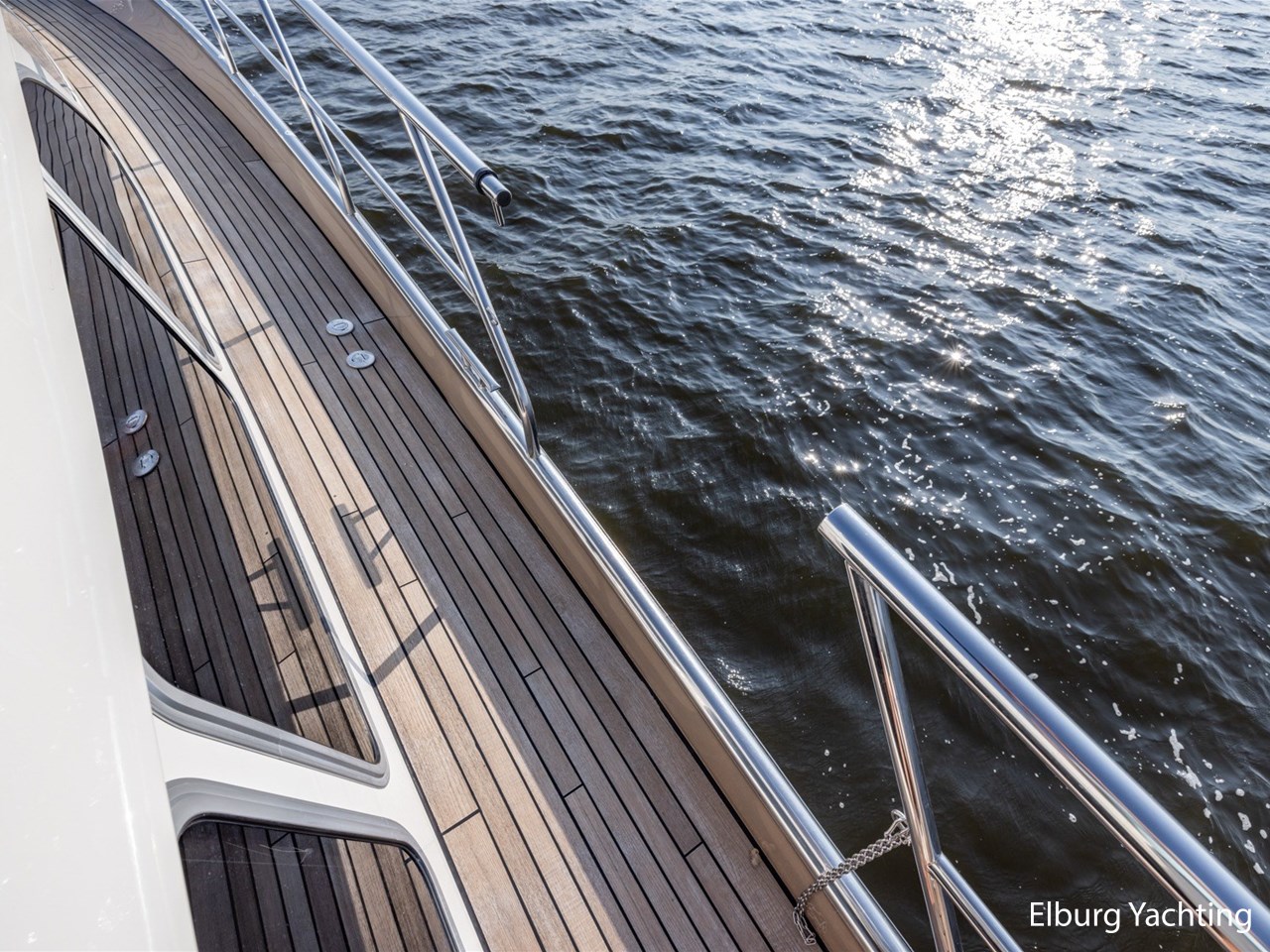 Deze Van der Heijden 58 Diamond met vast stuurhuis beschikt over: Vast overdekt achterdek met elektrisch cabrio dak voorzien van vaste bank met bijbehorende kussens, volledig afsluitbare tent rondom achterdek, aluminium pui in stuurhuis in 4 delen open te klappen deuren over gehele breedte, elektrisch bedienbaar schuifdak in stuurhuis, luxe Norsap stuurstoel met stuurautomaat bediening in leuning verwerkt, zijramen stuurhuis uit een deel, dimbare LED verlichting, airconditioning aan boord, veel kastruimte met ophangmogelijkheden, softclose lades, Zanussi was/droog combinatie, TV op lift in salon + TV in achterhut, kluis, centraal stofzuigsysteem, horren voor patrijspoorten en luiken, plissegordijnen, open ruimte achter dashboard naar salon (goede lichtinval), 2 x vrijstaand bed (vrijstaand bed eigenaarshut met uitzicht op raam in de spiegel), camera systeem (BB camera defect), ruime gangboorden met vaste verschansing en dubbele r.v.s. reling, buiten verlichting, r.v.s. fenderhouders, roerstandindicator, kickspace op achterdek, dekwassysteem, voordek voorzien van extra bediening voor motoren en stuurautomaat, toegankelijke machinekamer voorzien van goede isolatie, klapbare r.v.s. mast, afneembare zijladder, 3 x zonnepanelen op het dek gecombineerd met een Victron Smart Solar MPPT 250/60, Victron Cerbo display met mogelijkheid tot uitlezen via telefoon. De 3e hut in het voorschip aan BB-zijde kan relatief gemakkelijk worden omgebouwd naar en 2-persoons stapelbed door een jachttimmerman. Voor vragen en/of het maken van een afspraak bent u 7 dagen per week van harte welkom bij Elburg Yachting.