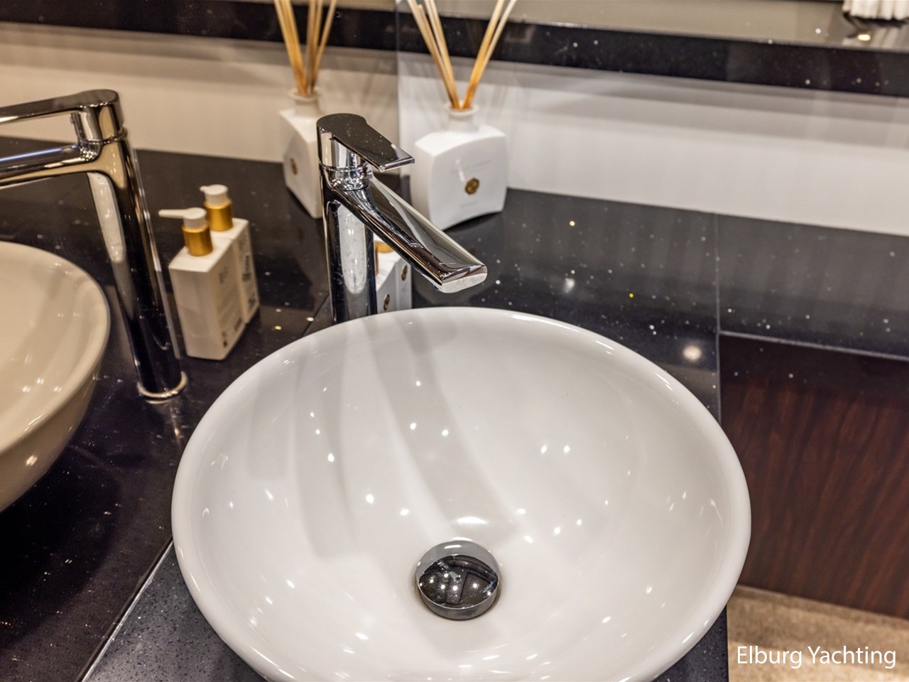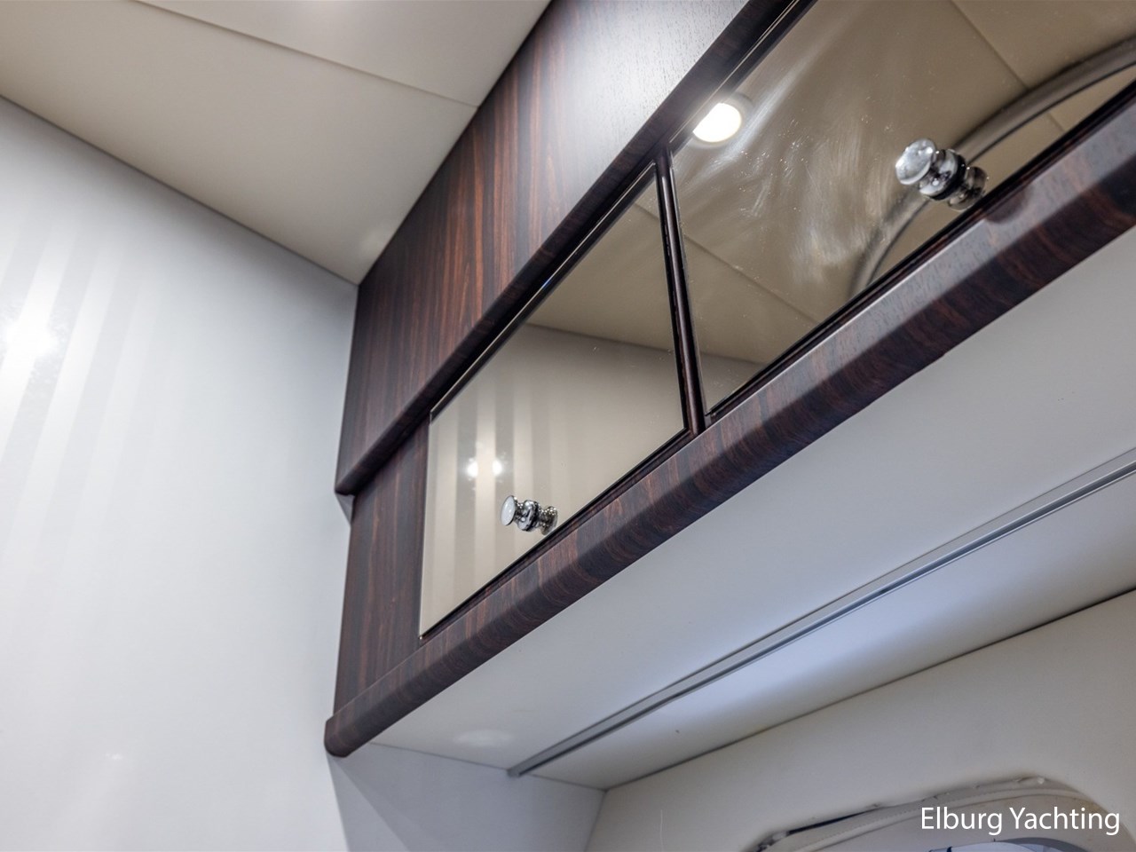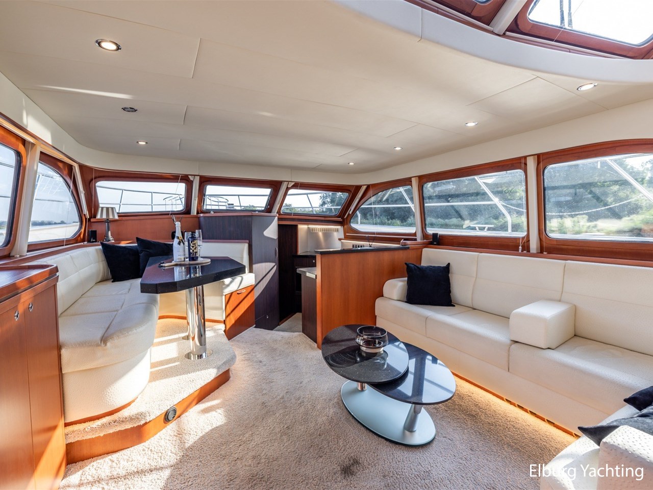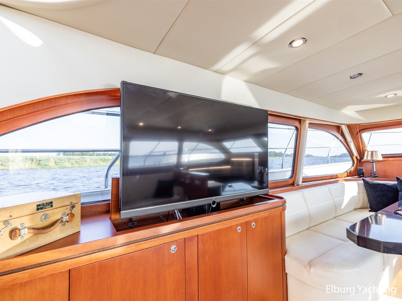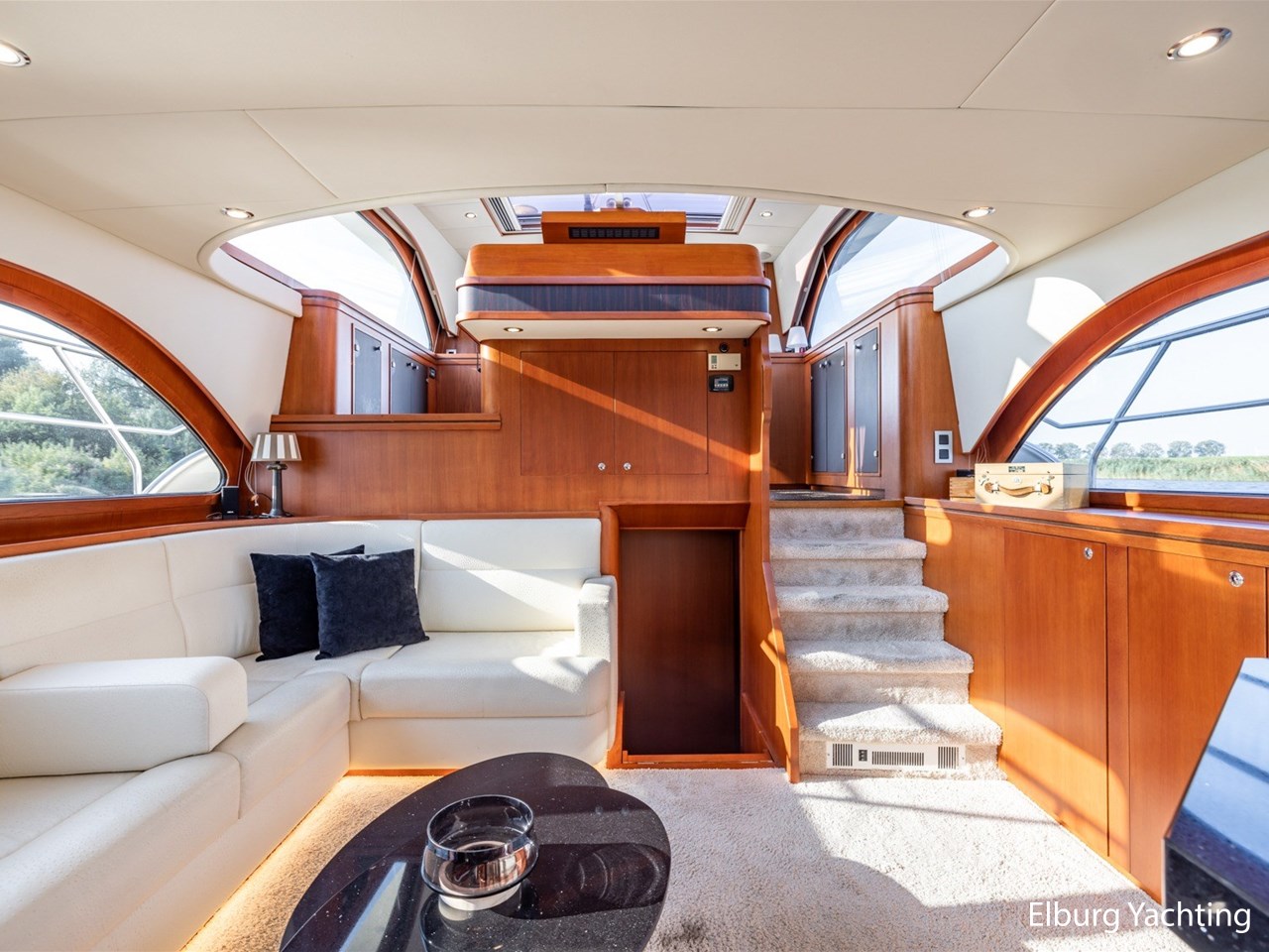 Deze Van der Heijden 58 Diamond met vast stuurhuis beschikt over: Vast overdekt achterdek met elektrisch cabrio dak voorzien van vaste bank met bijbehorende kussens, volledig afsluitbare tent rondom achterdek, aluminium pui in stuurhuis in 4 delen open te klappen deuren over gehele breedte, elektrisch bedienbaar schuifdak in stuurhuis, luxe Norsap stuurstoel met stuurautomaat bediening in leuning verwerkt, zijramen stuurhuis uit een deel, dimbare LED verlichting, airconditioning aan boord, veel kastruimte met ophangmogelijkheden, softclose lades, Zanussi was/droog combinatie, TV op lift in salon + TV in achterhut, kluis, centraal stofzuigsysteem, horren voor patrijspoorten en luiken, plissegordijnen, open ruimte achter dashboard naar salon (goede lichtinval), 2 x vrijstaand bed (vrijstaand bed eigenaarshut met uitzicht op raam in de spiegel), camera systeem (BB camera defect), ruime gangboorden met vaste verschansing en dubbele r.v.s. reling, buiten verlichting, r.v.s. fenderhouders, roerstandindicator, kickspace op achterdek, dekwassysteem, voordek voorzien van extra bediening voor motoren en stuurautomaat, toegankelijke machinekamer voorzien van goede isolatie, klapbare r.v.s. mast, afneembare zijladder, 3 x zonnepanelen op het dek gecombineerd met een Victron Smart Solar MPPT 250/60, Victron Cerbo display met mogelijkheid tot uitlezen via telefoon. De 3e hut in het voorschip aan BB-zijde kan relatief gemakkelijk worden omgebouwd naar en 2-persoons stapelbed door een jachttimmerman. Voor vragen en/of het maken van een afspraak bent u 7 dagen per week van harte welkom bij Elburg Yachting.
