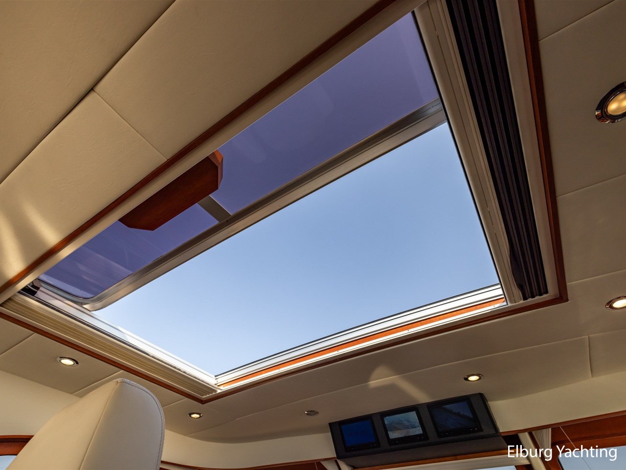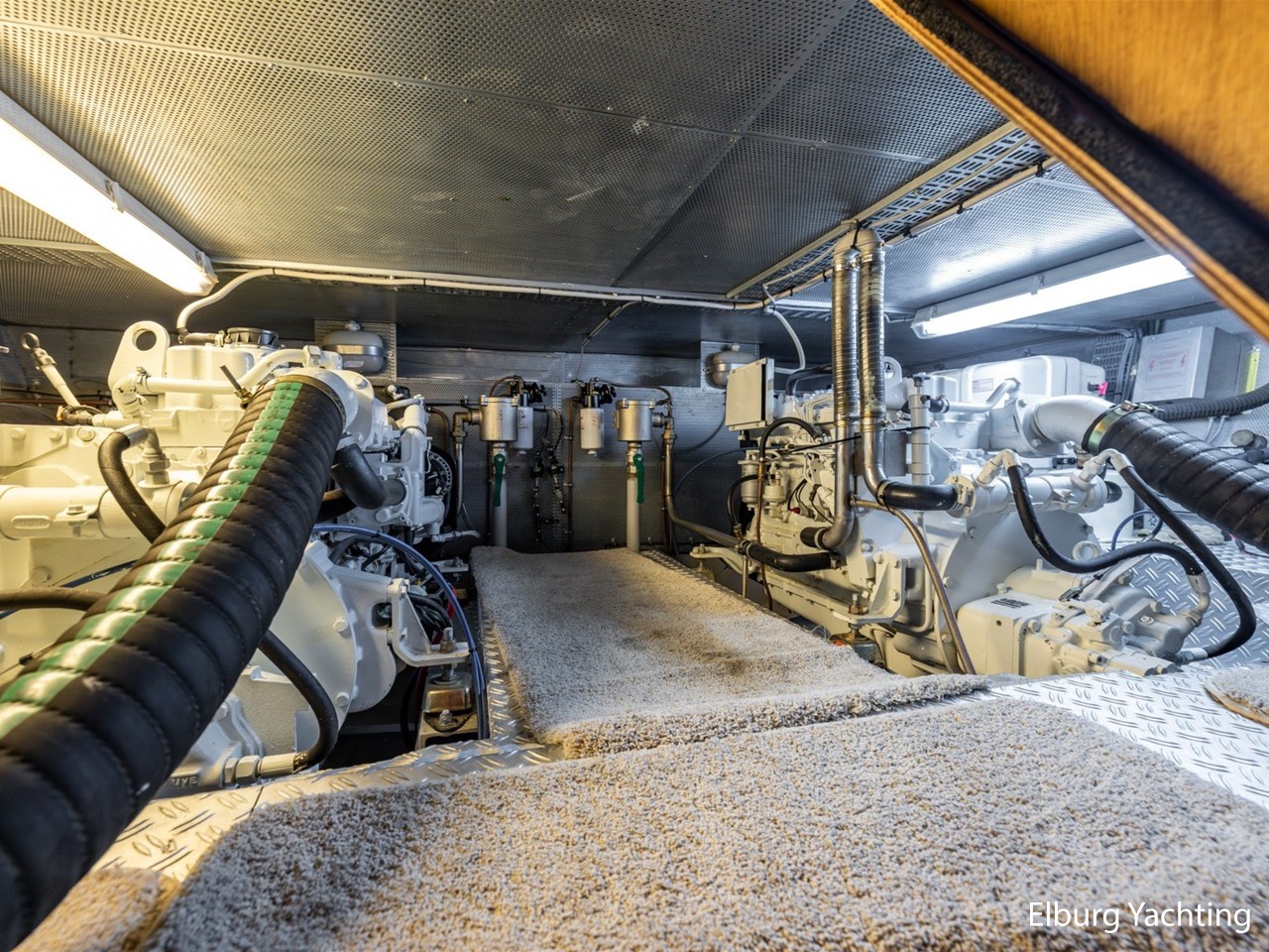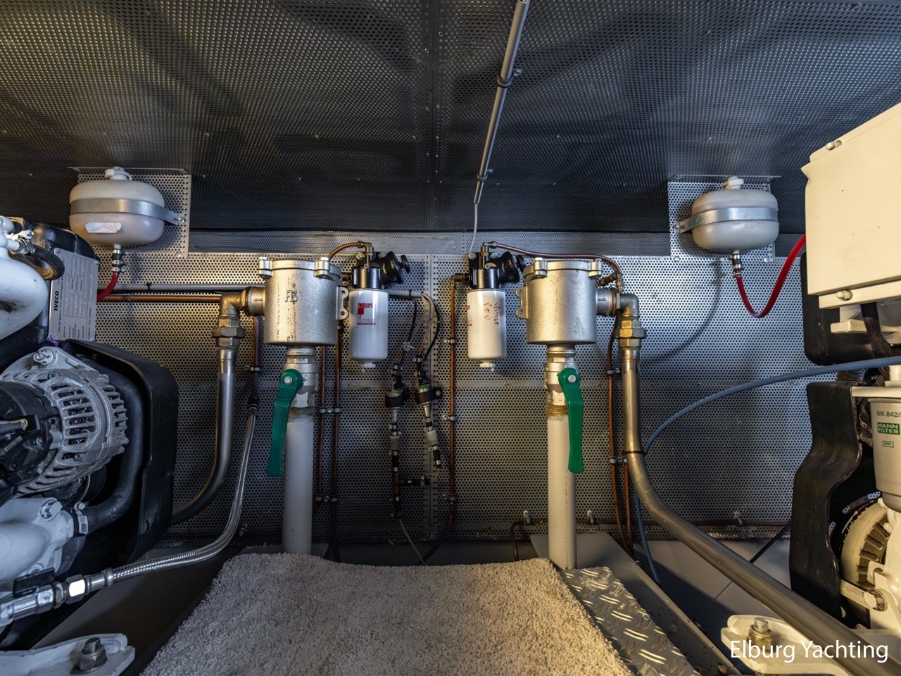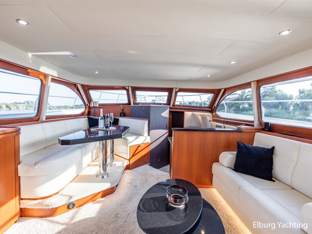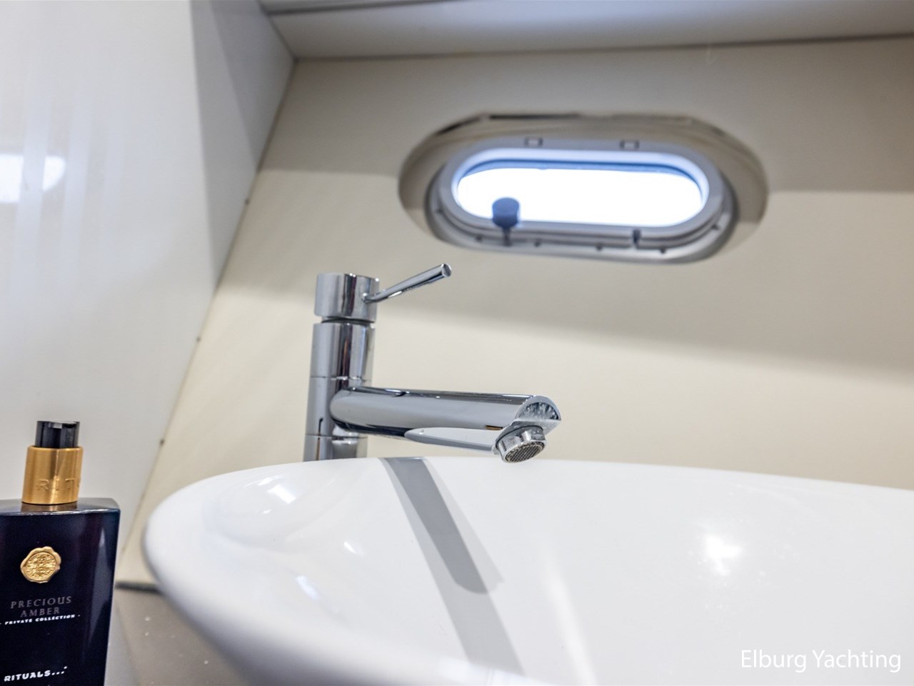 Deze Van der Heijden 58 Diamond met vast stuurhuis beschikt over: Vast overdekt achterdek met elektrisch cabrio dak voorzien van vaste bank met bijbehorende kussens, volledig afsluitbare tent rondom achterdek, aluminium pui in stuurhuis in 4 delen open te klappen deuren over gehele breedte, elektrisch bedienbaar schuifdak in stuurhuis, luxe Norsap stuurstoel met stuurautomaat bediening in leuning verwerkt, zijramen stuurhuis uit een deel, dimbare LED verlichting, airconditioning aan boord, veel kastruimte met ophangmogelijkheden, softclose lades, Zanussi was/droog combinatie, TV op lift in salon + TV in achterhut, kluis, centraal stofzuigsysteem, horren voor patrijspoorten en luiken, plissegordijnen, open ruimte achter dashboard naar salon (goede lichtinval), 2 x vrijstaand bed (vrijstaand bed eigenaarshut met uitzicht op raam in de spiegel), camera systeem (BB camera defect), ruime gangboorden met vaste verschansing en dubbele r.v.s. reling, buiten verlichting, r.v.s. fenderhouders, roerstandindicator, kickspace op achterdek, dekwassysteem, voordek voorzien van extra bediening voor motoren en stuurautomaat, toegankelijke machinekamer voorzien van goede isolatie, klapbare r.v.s. mast, afneembare zijladder, 3 x zonnepanelen op het dek gecombineerd met een Victron Smart Solar MPPT 250/60, Victron Cerbo display met mogelijkheid tot uitlezen via telefoon. De 3e hut in het voorschip aan BB-zijde kan relatief gemakkelijk worden omgebouwd naar en 2-persoons stapelbed door een jachttimmerman. Voor vragen en/of het maken van een afspraak bent u 7 dagen per week van harte welkom bij Elburg Yachting.