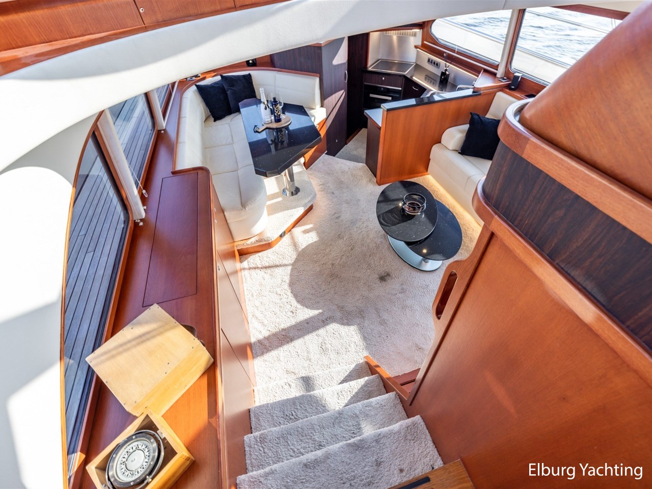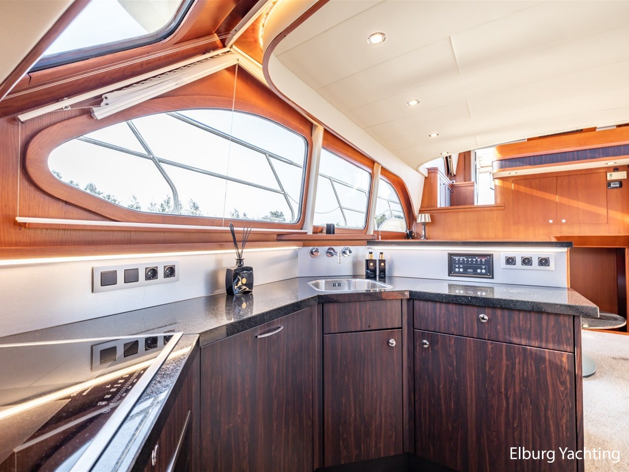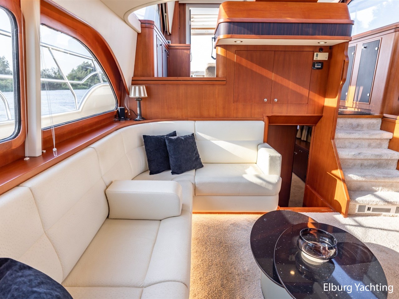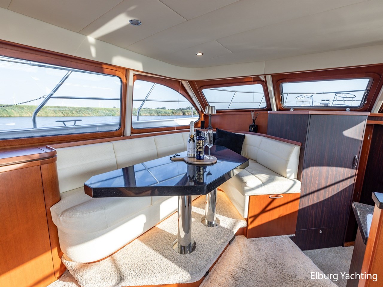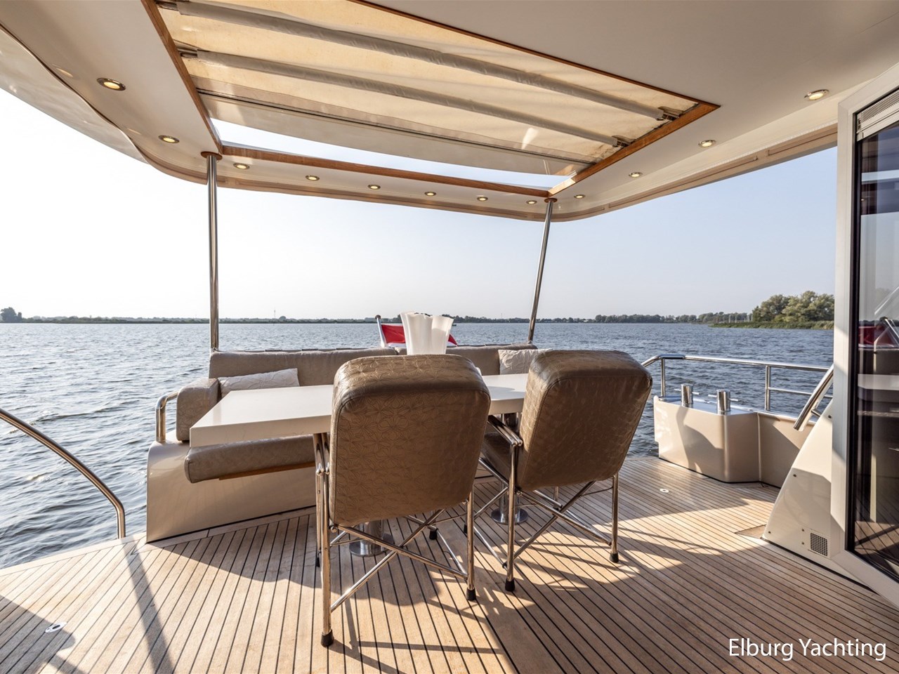 Deze Van der Heijden 58 Diamond met vast stuurhuis beschikt over: Vast overdekt achterdek met elektrisch cabrio dak voorzien van vaste bank met bijbehorende kussens, volledig afsluitbare tent rondom achterdek, aluminium pui in stuurhuis in 4 delen open te klappen deuren over gehele breedte, elektrisch bedienbaar schuifdak in stuurhuis, luxe Norsap stuurstoel met stuurautomaat bediening in leuning verwerkt, zijramen stuurhuis uit een deel, dimbare LED verlichting, airconditioning aan boord, veel kastruimte met ophangmogelijkheden, softclose lades, Zanussi was/droog combinatie, TV op lift in salon + TV in achterhut, kluis, centraal stofzuigsysteem, horren voor patrijspoorten en luiken, plissegordijnen, open ruimte achter dashboard naar salon (goede lichtinval), 2 x vrijstaand bed (vrijstaand bed eigenaarshut met uitzicht op raam in de spiegel), camera systeem (BB camera defect), ruime gangboorden met vaste verschansing en dubbele r.v.s. reling, buiten verlichting, r.v.s. fenderhouders, roerstandindicator, kickspace op achterdek, dekwassysteem, voordek voorzien van extra bediening voor motoren en stuurautomaat, toegankelijke machinekamer voorzien van goede isolatie, klapbare r.v.s. mast, afneembare zijladder, 3 x zonnepanelen op het dek gecombineerd met een Victron Smart Solar MPPT 250/60, Victron Cerbo display met mogelijkheid tot uitlezen via telefoon. De 3e hut in het voorschip aan BB-zijde kan relatief gemakkelijk worden omgebouwd naar en 2-persoons stapelbed door een jachttimmerman. Voor vragen en/of het maken van een afspraak bent u 7 dagen per week van harte welkom bij Elburg Yachting.