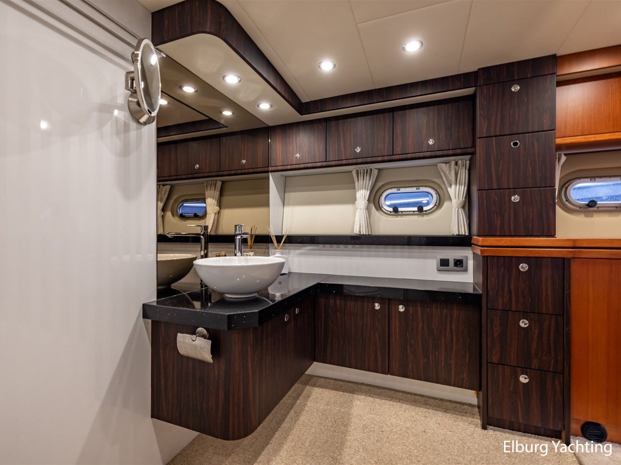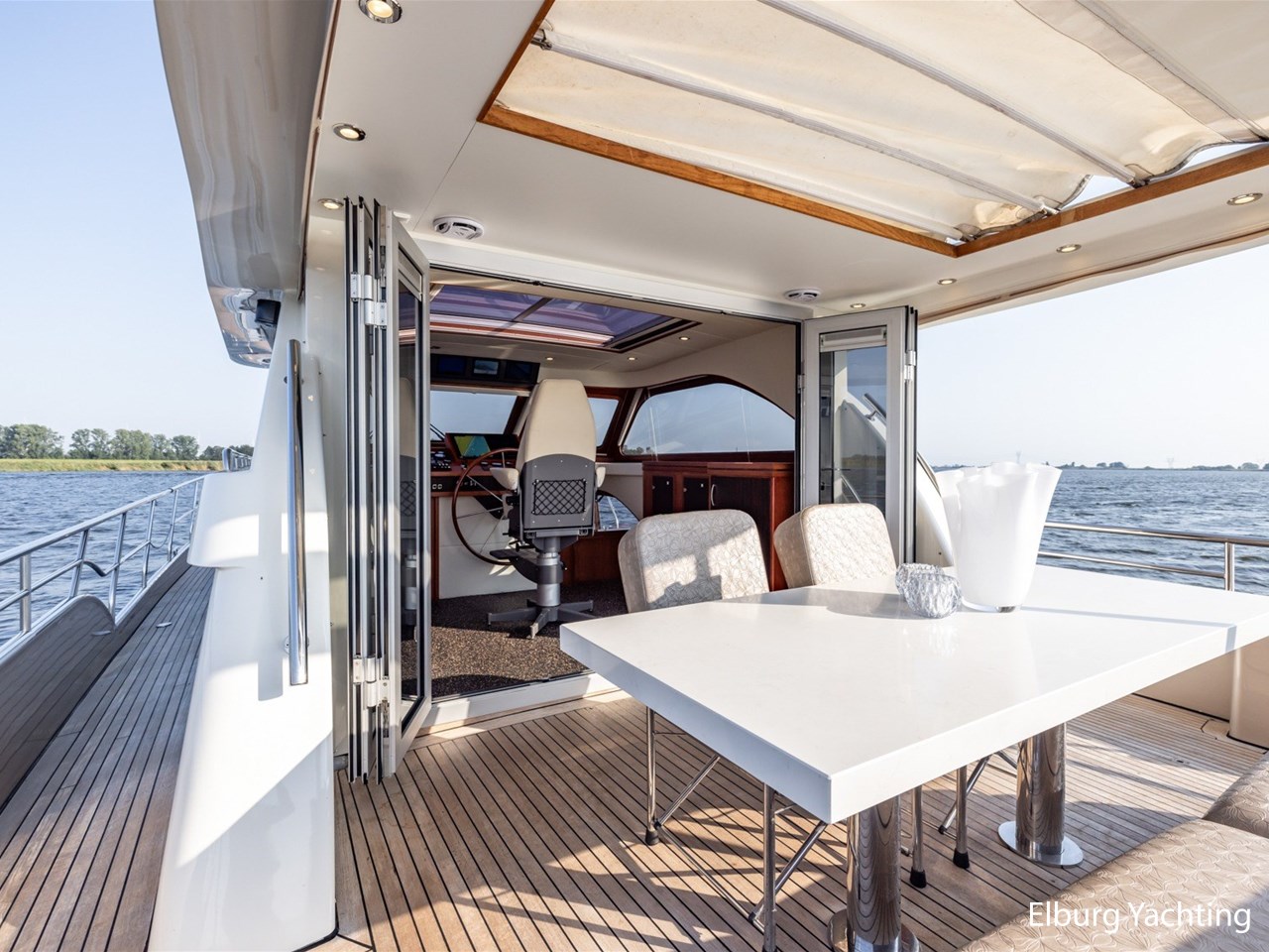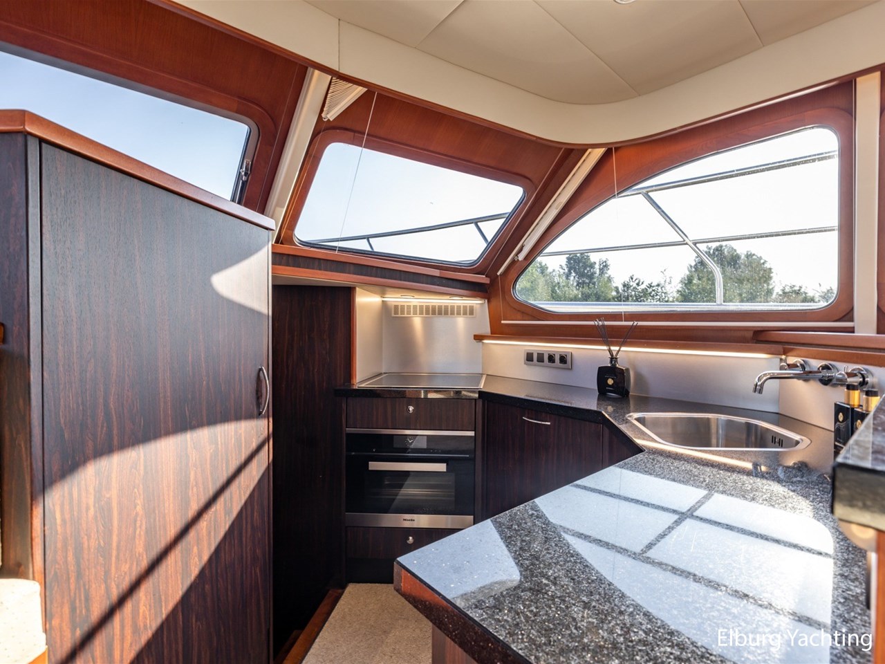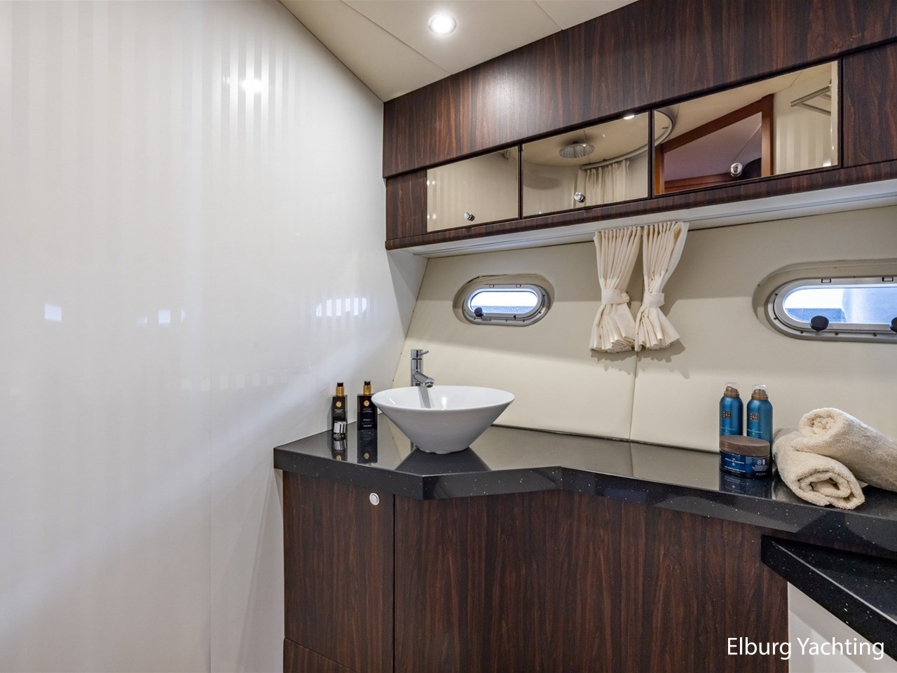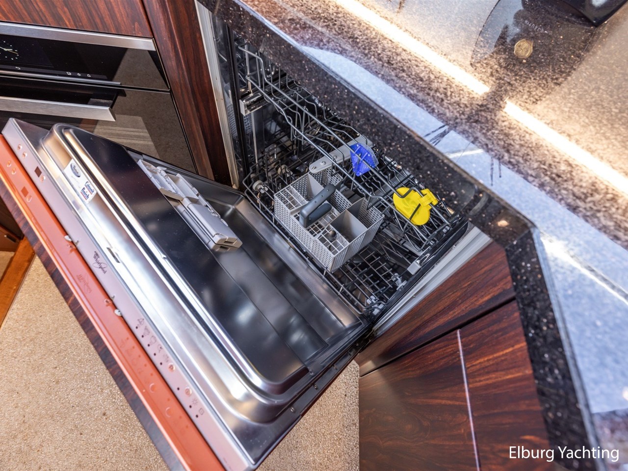 Deze Van der Heijden 58 Diamond met vast stuurhuis beschikt over: Vast overdekt achterdek met elektrisch cabrio dak voorzien van vaste bank met bijbehorende kussens, volledig afsluitbare tent rondom achterdek, aluminium pui in stuurhuis in 4 delen open te klappen deuren over gehele breedte, elektrisch bedienbaar schuifdak in stuurhuis, luxe Norsap stuurstoel met stuurautomaat bediening in leuning verwerkt, zijramen stuurhuis uit een deel, dimbare LED verlichting, airconditioning aan boord, veel kastruimte met ophangmogelijkheden, softclose lades, Zanussi was/droog combinatie, TV op lift in salon + TV in achterhut, kluis, centraal stofzuigsysteem, horren voor patrijspoorten en luiken, plissegordijnen, open ruimte achter dashboard naar salon (goede lichtinval), 2 x vrijstaand bed (vrijstaand bed eigenaarshut met uitzicht op raam in de spiegel), camera systeem (BB camera defect), ruime gangboorden met vaste verschansing en dubbele r.v.s. reling, buiten verlichting, r.v.s. fenderhouders, roerstandindicator, kickspace op achterdek, dekwassysteem, voordek voorzien van extra bediening voor motoren en stuurautomaat, toegankelijke machinekamer voorzien van goede isolatie, klapbare r.v.s. mast, afneembare zijladder, 3 x zonnepanelen op het dek gecombineerd met een Victron Smart Solar MPPT 250/60, Victron Cerbo display met mogelijkheid tot uitlezen via telefoon. De 3e hut in het voorschip aan BB-zijde kan relatief gemakkelijk worden omgebouwd naar en 2-persoons stapelbed door een jachttimmerman. Voor vragen en/of het maken van een afspraak bent u 7 dagen per week van harte welkom bij Elburg Yachting.