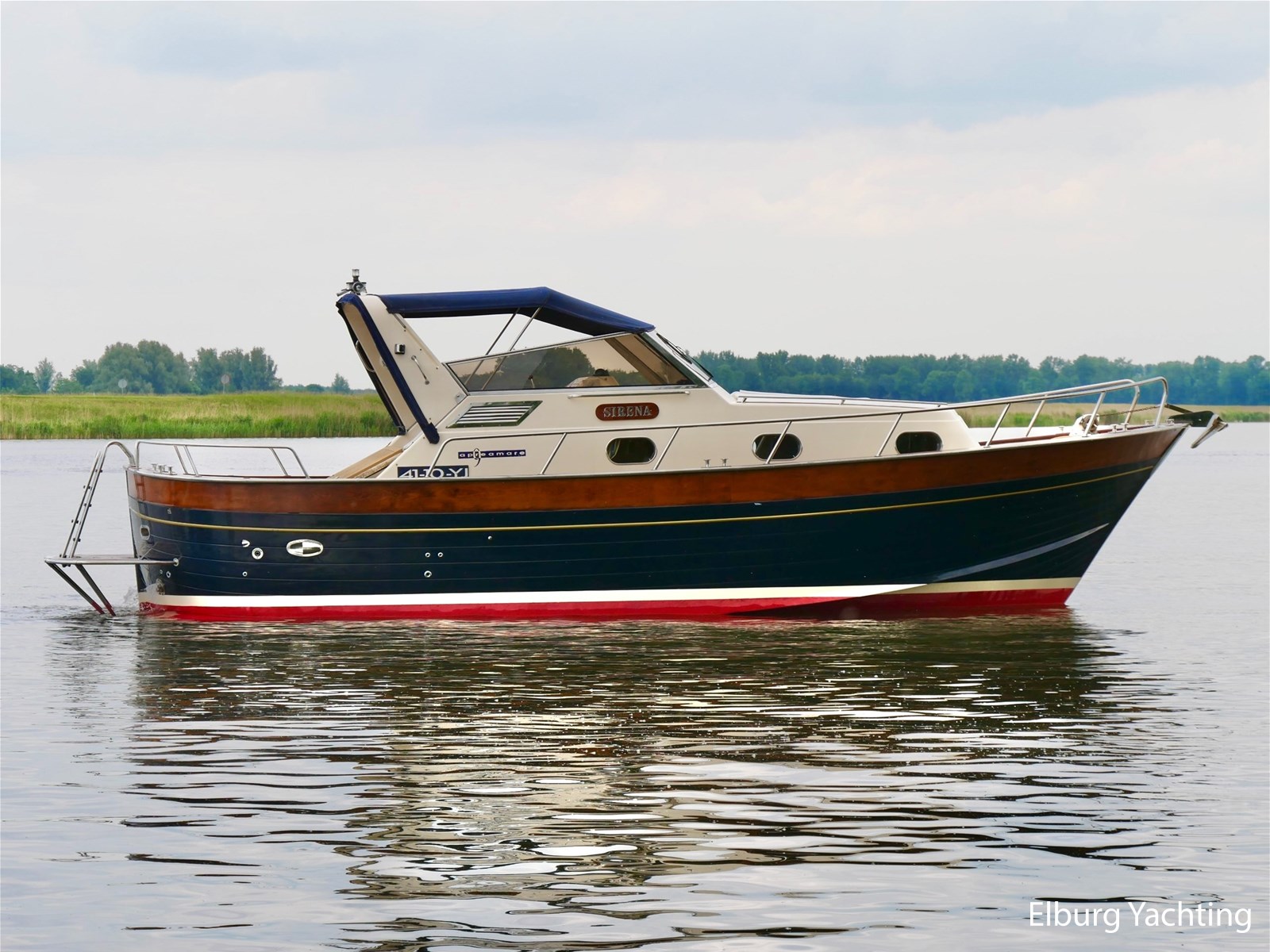 Origineel Nederlands geleverde Apreamare 9 Semi Cabinato. Met haar charmante klassieke uitstraling is het een mooie verschijning op het water. Deze Apreamare is uitgerust met: Afsluitbare tent rondom stuurstand, geintegreede kuipbanken met bijbehorende kussens (2021), groot zwemplatform, Bluetooth radio + 2 x buiten speakers, LED verlichting in salon, vaste stuurstoel + meevaarbank, TV in salon, zonnebed op voordek, r.v.s. railing + r.v.s. bolders, dekwaspomp, elektrisch beweegbaar motorluik. In 2024 is al het houtwerk aan de buitenzijde kaal gehaald en daarna voorzien van 7 lagen Sigma Cetol TGX Gloss en nieuwe kitnaden aangebracht. Verder zijn er in 2024 de volgende werkzaamheden uitgevoerd: Antifouling en anodes vernieuwd, lichtaccu vervangen, acculader vernieuwd, verlichting spots vervangen door LED, Victron 2000W omvormer geïnstalleerd. In 2021 is het volledige dek vervangen voor kunststof Flexiteek voor minimaal onderhoud aan het dek.