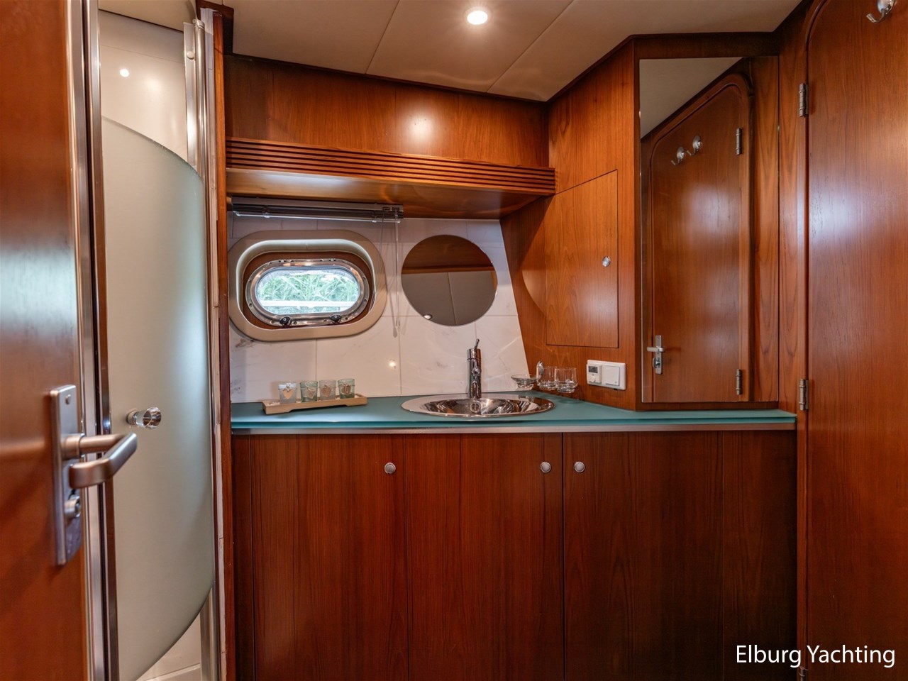 Rijk uitgeruste Valk Continental 1700 met vast stuurhuis. In het oog springende kenmerken voor dit motorjacht zijn de 3 hutten indeling, gelijkvloerse ruime en lichte salon, stuurhuis met riante hoekbank, complete techniek met hydraulische boeg- en hekschroef, DMS stabilisatoren en een Hullvane voor een comfortabel vaarplezier, centrale verwarming door het gehele schip en airconditioning, 12kVA generator om volledig zelfvoorzienend op het water te zijn. Deze Valk Continental 1700 is uitgevoerd met: Geïntegreerde kuipbank met afneembare zitkussens inclusief afdekhoes, buitentafel met gelakt teakhouten blad, halfronde trap naar het achterdek, afneembare zijtrap voor opstap gangboord, buitenverlichting, ovale r.v.s. reling rondom, r.v.s. fenderhouders op voordek, groot elektrisch bedienbaar schuifdak in stuurhuis met hor + 2 x schuiframen, in 4 delen te openen achterpui, luxe vaste stuurstoel met elektrische verstelmogelijkheid, roerstandaanwijzer, motorinformatie zowel analoog als digitaal, Mastervolt power system control panel, hordeur in stuurhuis, Miele vaatwasser, volwaardige Miele wasmachine en droger, tanks met mangaten, dubbele hydrauliek pomp gemonteerd op de hoofdmotor, afstandsbediening voor bediening boeg- en hekschroef, elektrisch klapbare mast, toegang machinekamer zowel via vloerluik in salon en zij-ingang, afneembare bijbootsteunen op het zwemplateau. In 2025 zijn de volgende werkzaamheden uitgevoerd: teakdek opnieuw gerubberd en geschuurd, 4 x houten klapdeuren naar stuurhuis opnieuw gelakt, romp en opbouw volledig gepoetst, antifouling aangebracht.