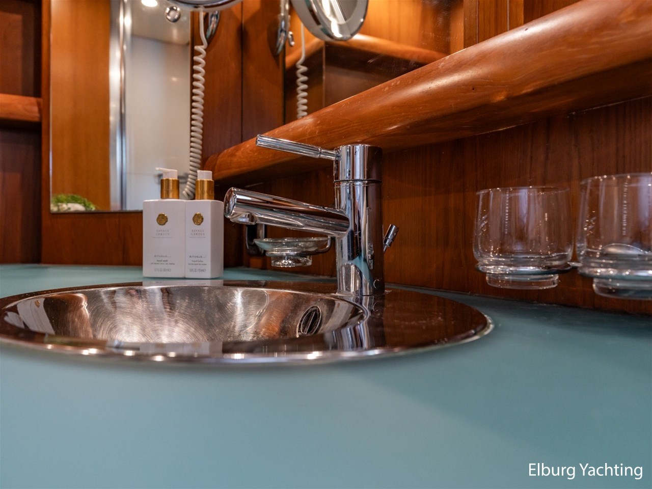 - 6 x vast (1 x 2 pers. vrijstaand bed in achterhut + 2 x 1 pers. stapelbed in SB-hut voorschip + 2 x 1 pers. V-bed in voorhut)