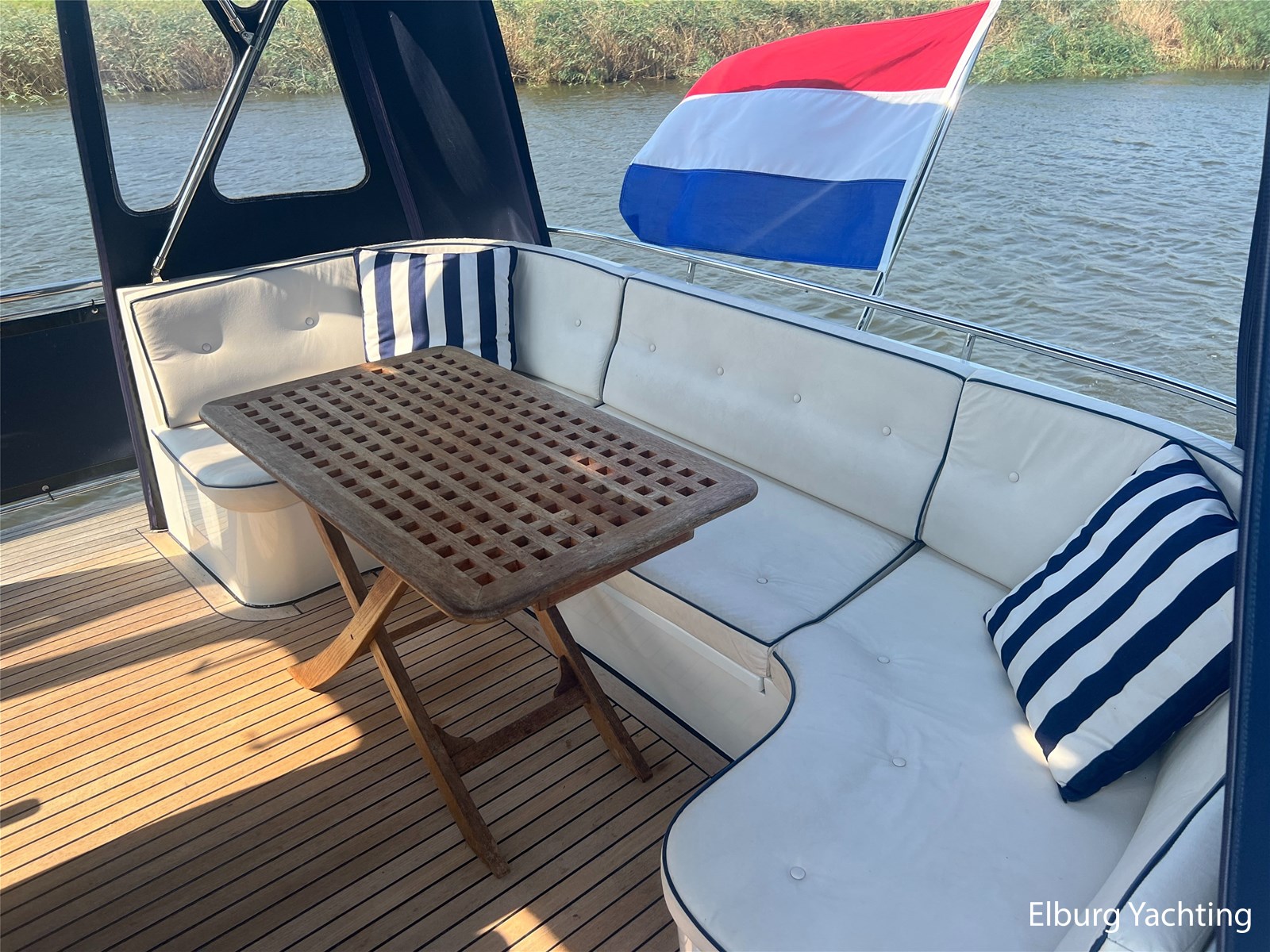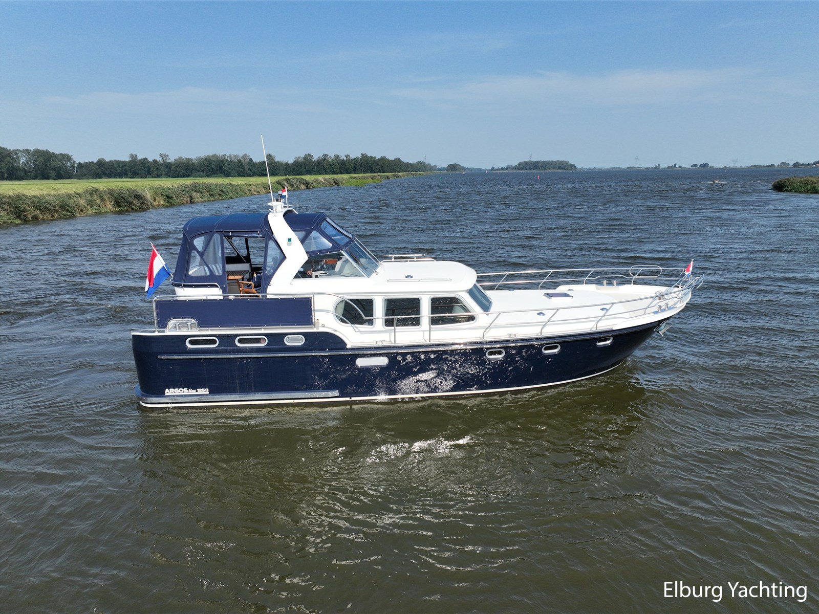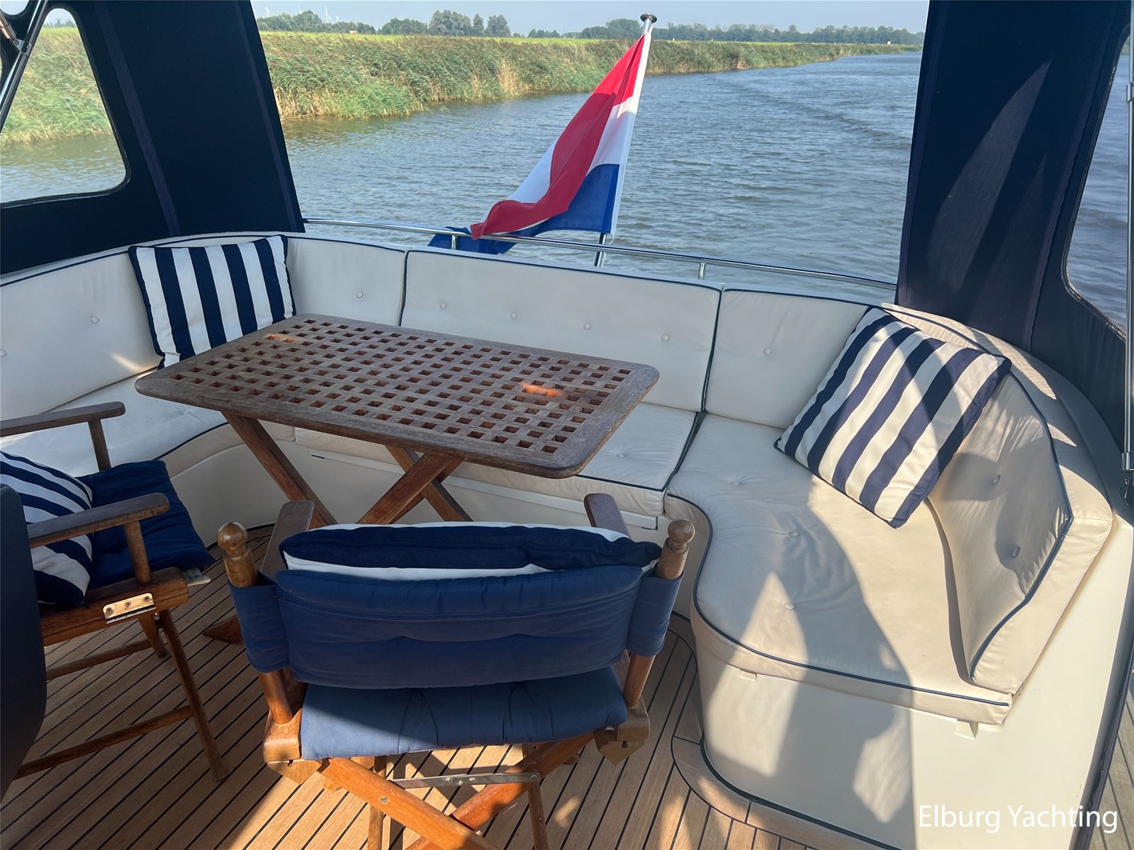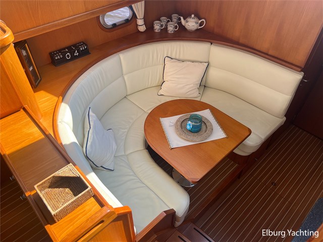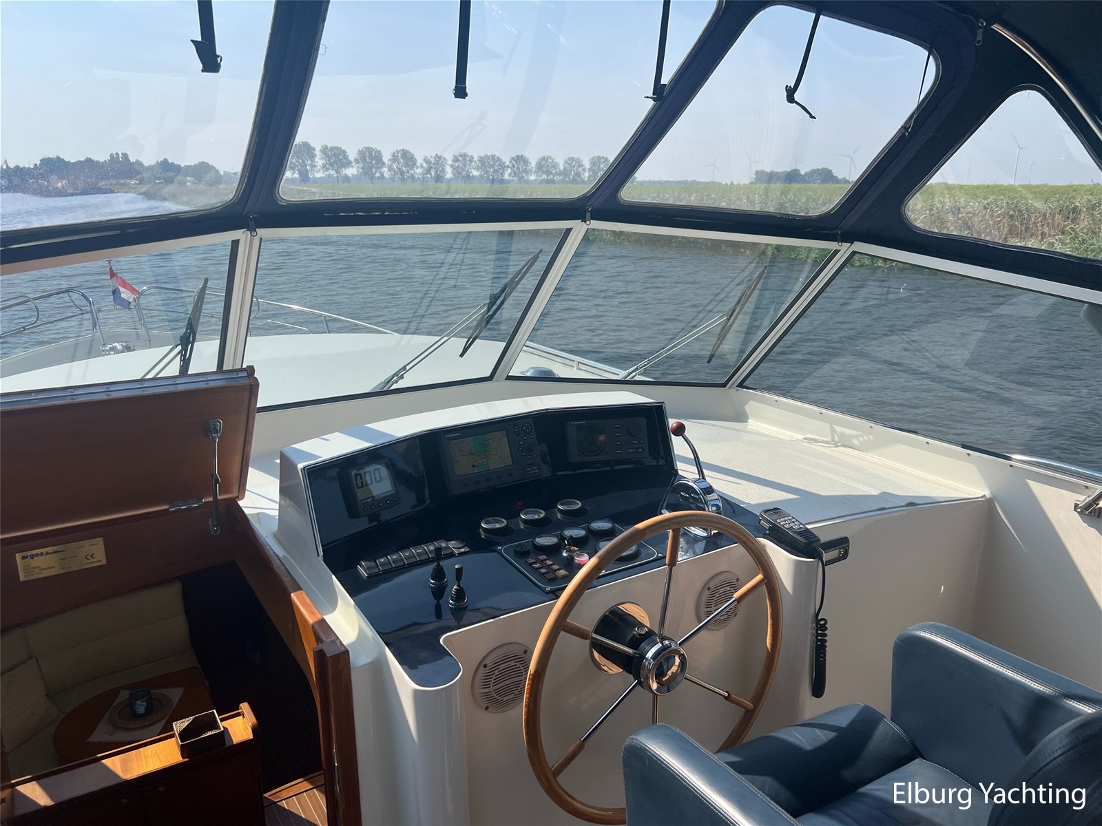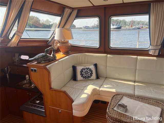 Deze Argos Line 12.50 wordt gekenmerkt door haar grote leefruimte zowel aan dek als in het interieur. Het schip heeft een ruime u bank op het achterdek met een comfortabele zit. De tent is over het gehele achterdek afsluitbaar zodat er ook met minder weer comfortabel buiten gezeten kan worden in combinatie met de uitblaasopeningen van de verwarming. De ramen in de tent zijn in 2024 vervangen. Daarnaast beschikt het schip over twee zeer ruime luie trappen naar het achterdek wat het zwemmen of op en afstappen erg vergemakkelijkt. Binnen is het schip uitgerust met een volwaardige salon, dinette en twee riante hutten met een vrijstaand bed en een frans bed. Verder wordt dit schip geleverd met o.a: r.v.s. bolders, ruime gangboorden, 2 x uitsparing in reling voor gemakkelijk afstappen, separate r.v.s. trap om vanuit de reling op laaggelegen steiger te komen, dubbele r.v.s. reling rondom, klapbare beugel, stalen gangboorden, overzichtelijk dashboard, ruim opgezet interieur, 3 x ruitenwissers, verlaagbare tafel in dinette voor extra te creëren slaapmogelijkheid, dubbel glas, vanaf boven de waterlijn volledig geisoleerd, raam in spiegel eigenaarshut, muggenhorren, separate douche, dubbele dynamo. Voor vragen en/of het maken van een afspraak bent u 7 dagen per week van harte welkom bij Elburg Yachting.