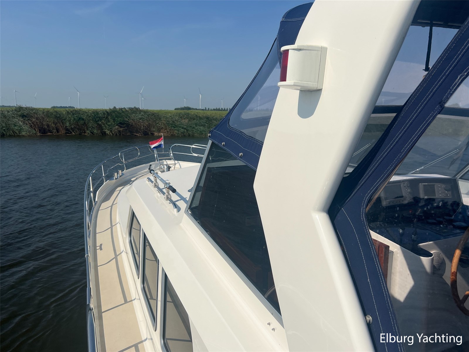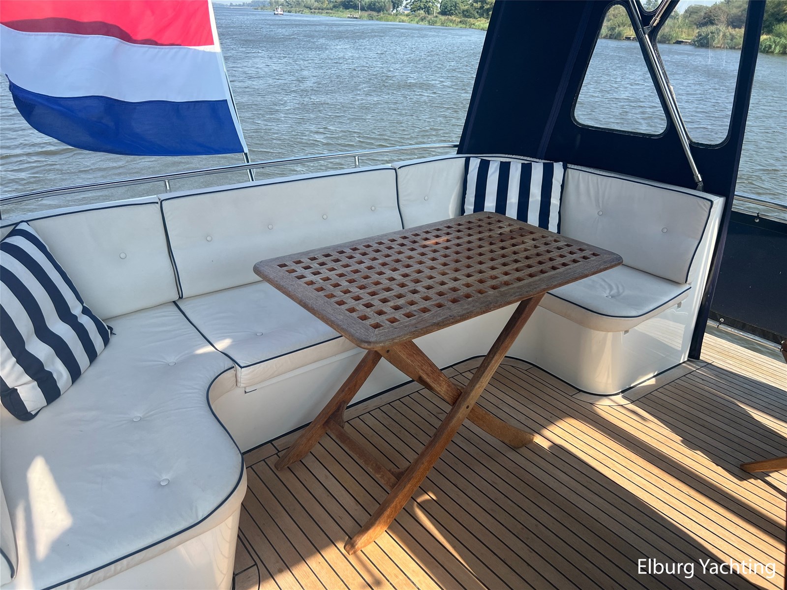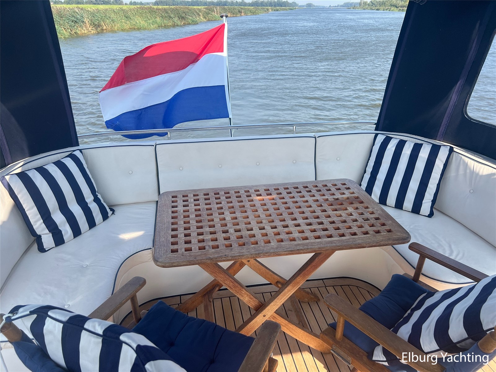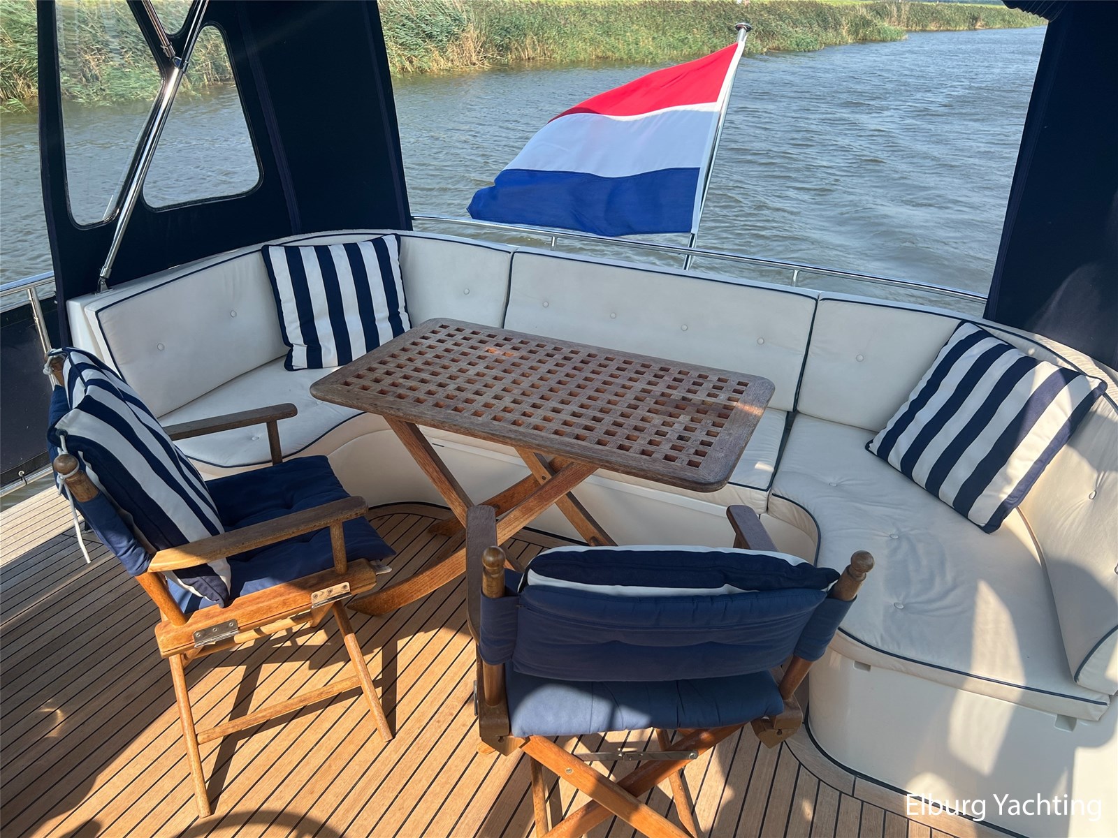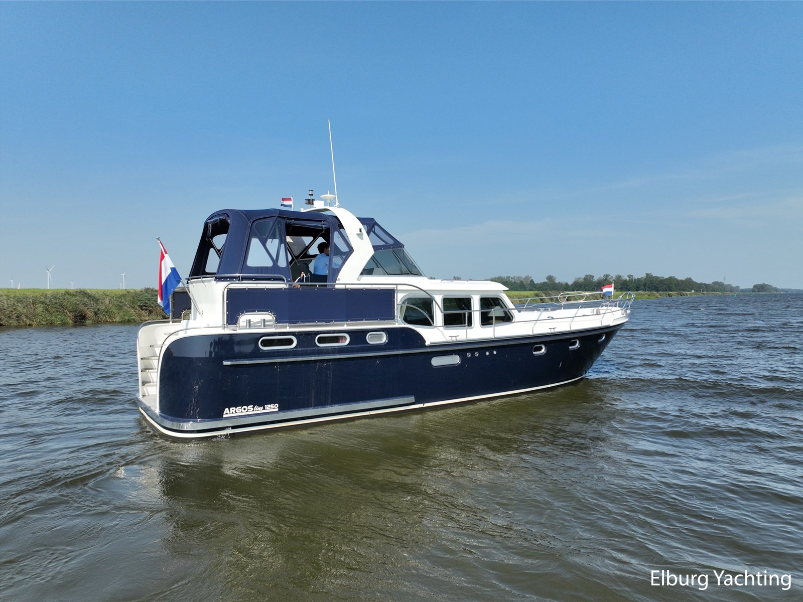 Deze Argos Line 12.50 wordt gekenmerkt door haar grote leefruimte zowel aan dek als in het interieur. Het schip heeft een ruime u bank op het achterdek met een comfortabele zit. De tent is over het gehele achterdek afsluitbaar zodat er ook met minder weer comfortabel buiten gezeten kan worden in combinatie met de uitblaasopeningen van de verwarming. De ramen in de tent zijn in 2024 vervangen. Daarnaast beschikt het schip over twee zeer ruime luie trappen naar het achterdek wat het zwemmen of op en afstappen erg vergemakkelijkt. Binnen is het schip uitgerust met een volwaardige salon, dinette en twee riante hutten met een vrijstaand bed en een frans bed. Verder wordt dit schip geleverd met o.a: r.v.s. bolders, ruime gangboorden, 2 x uitsparing in reling voor gemakkelijk afstappen, separate r.v.s. trap om vanuit de reling op laaggelegen steiger te komen, dubbele r.v.s. reling rondom, klapbare beugel, stalen gangboorden, overzichtelijk dashboard, ruim opgezet interieur, 3 x ruitenwissers, verlaagbare tafel in dinette voor extra te creëren slaapmogelijkheid, dubbel glas, vanaf boven de waterlijn volledig geisoleerd, raam in spiegel eigenaarshut, muggenhorren, separate douche, dubbele dynamo. Voor vragen en/of het maken van een afspraak bent u 7 dagen per week van harte welkom bij Elburg Yachting.